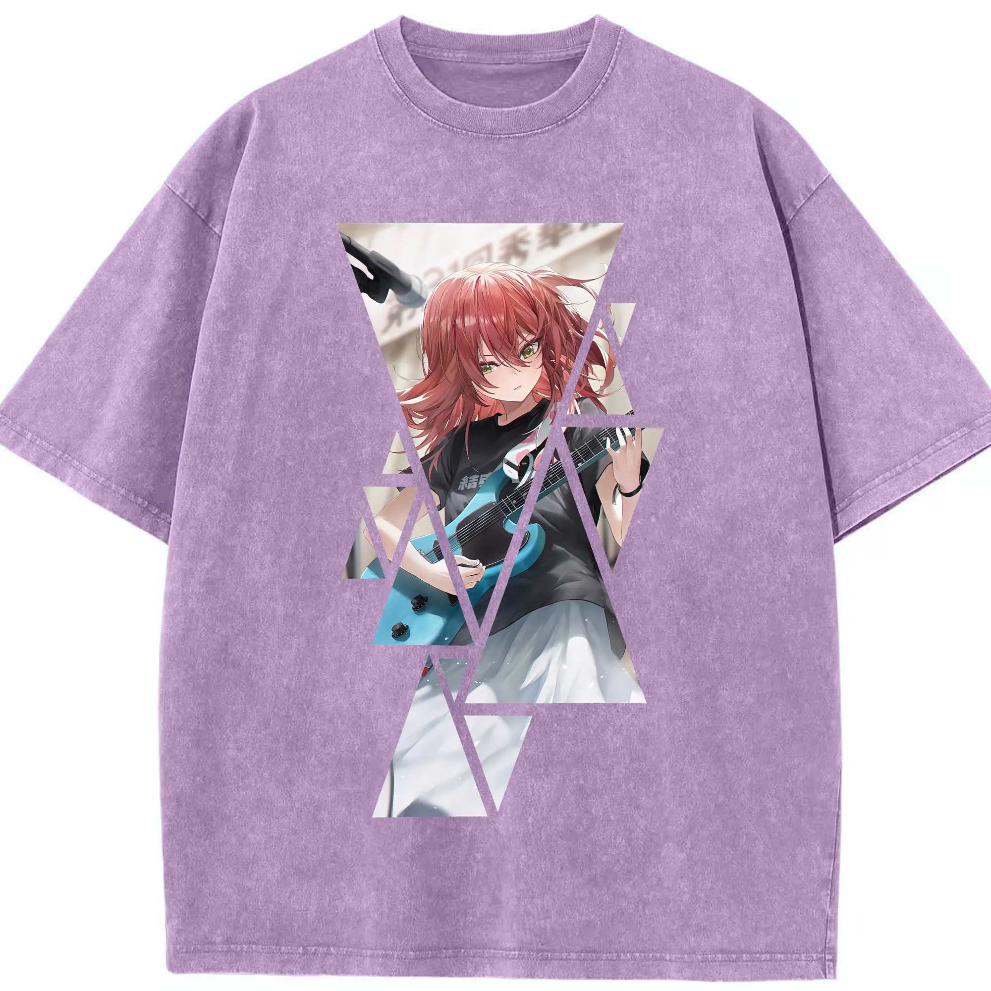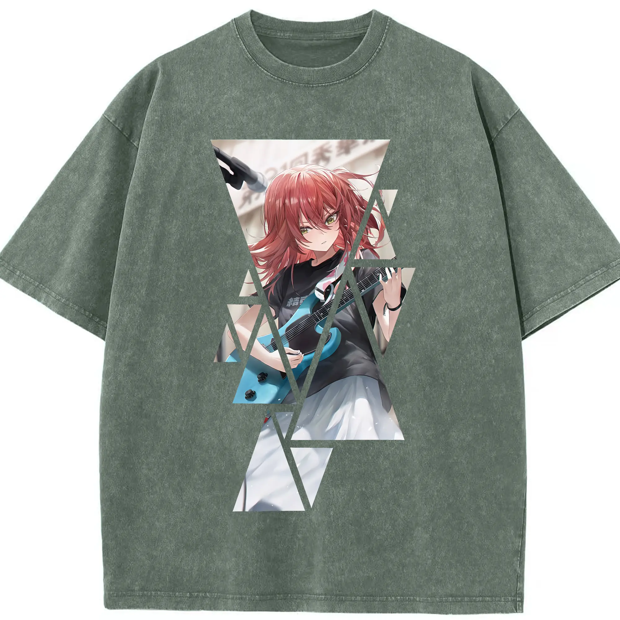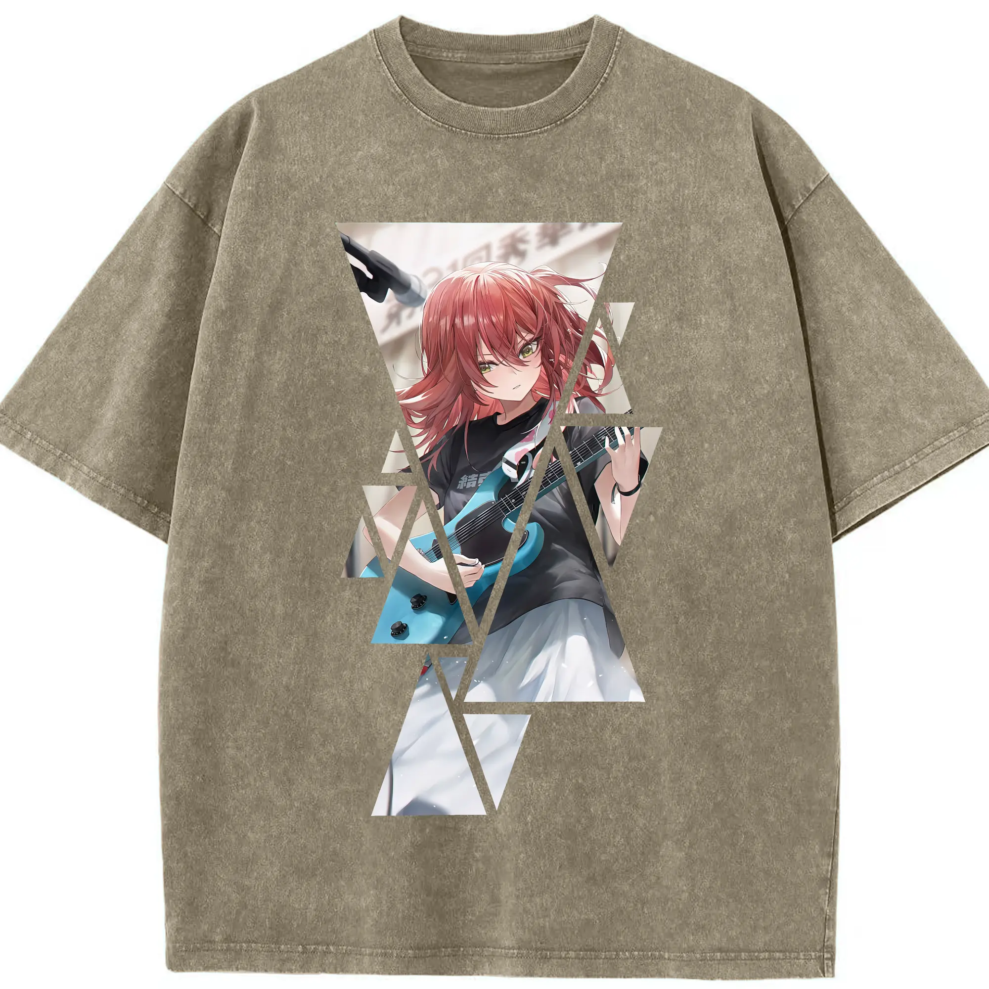 ぼっちざろっく! グッズ,喜多郁代 - 綿100% ヴィンテージ風 半袖Tシャツ ・ 背面プリント ・ 柔らか肌触り ・ 通気性 快適 ・ スポーツ カジュアル 外出用