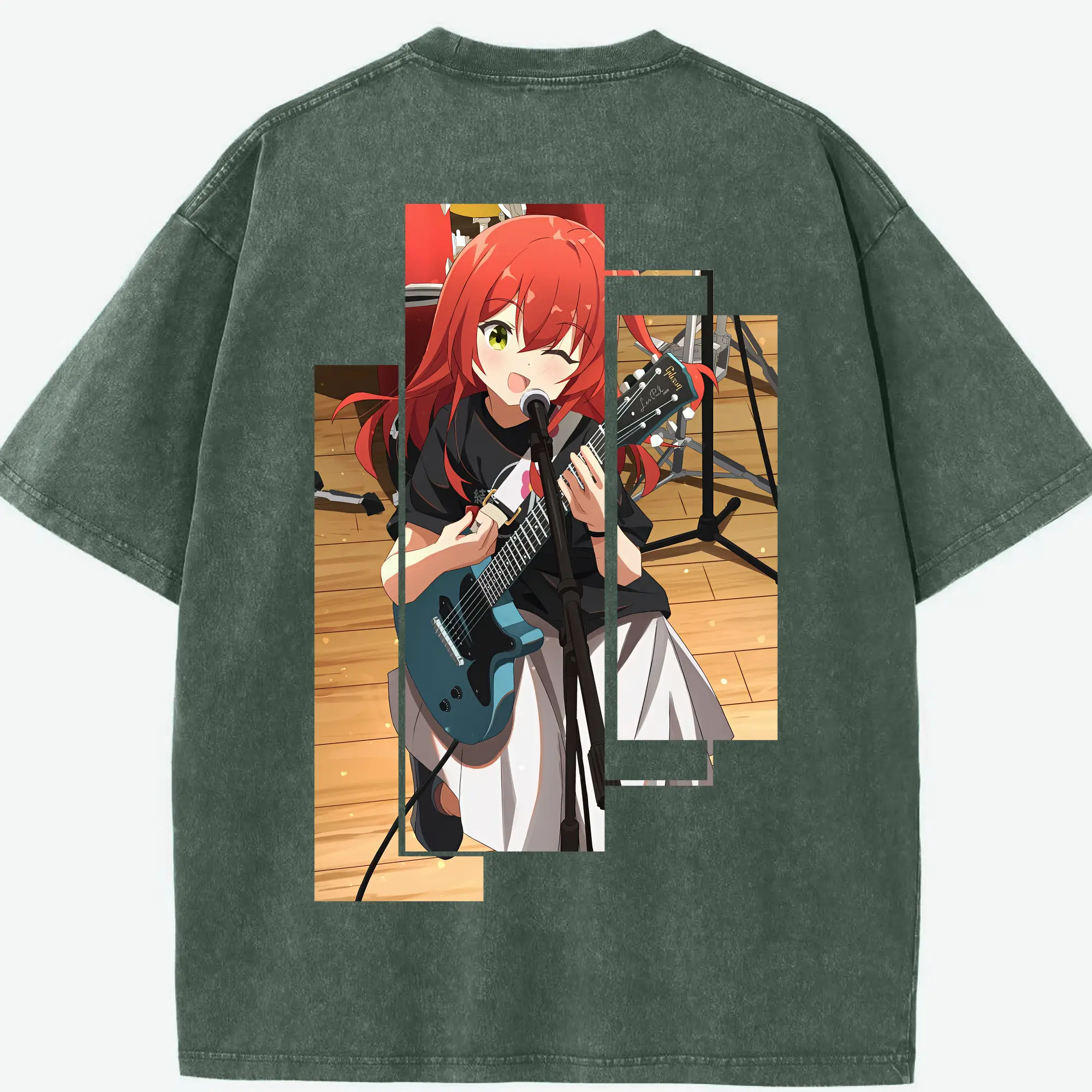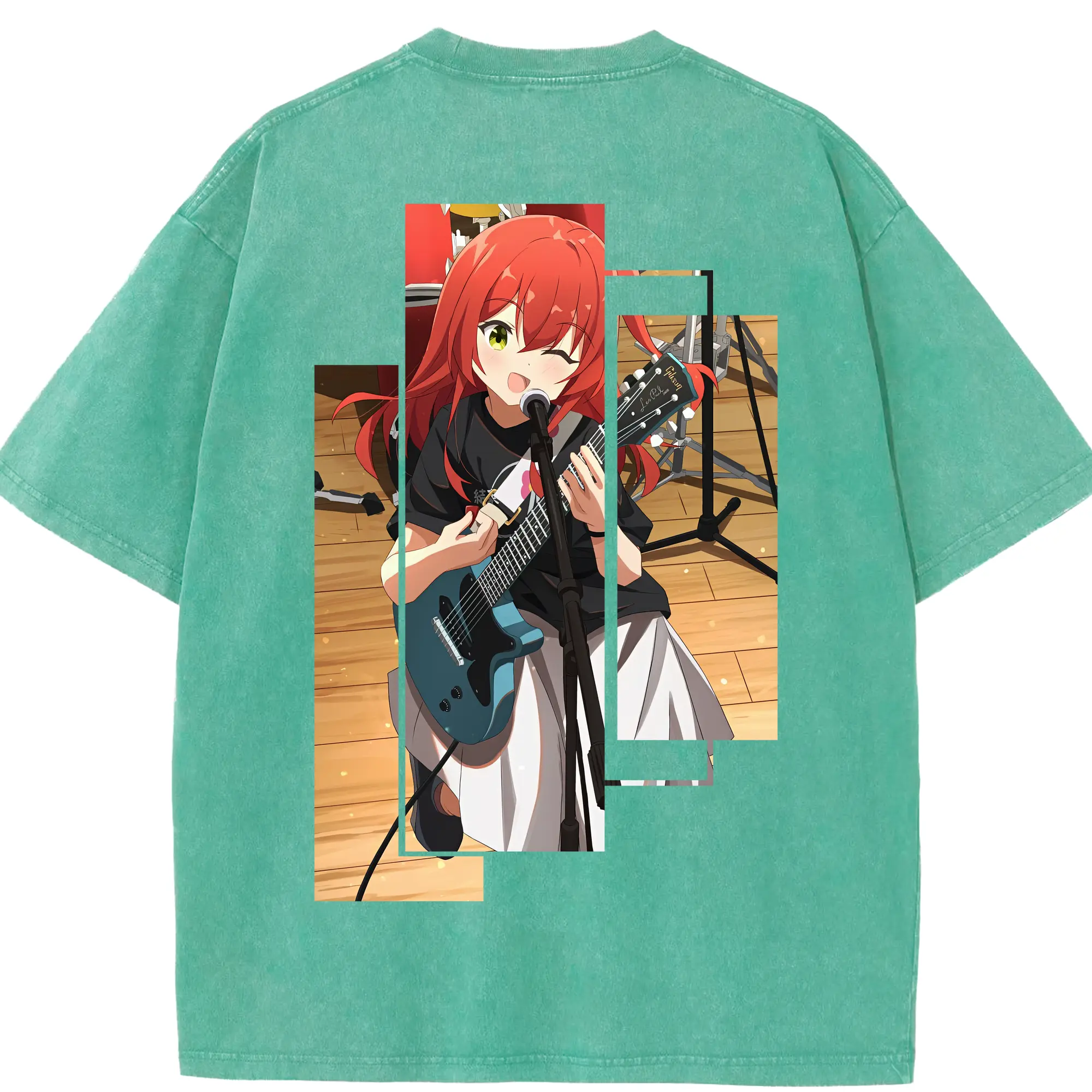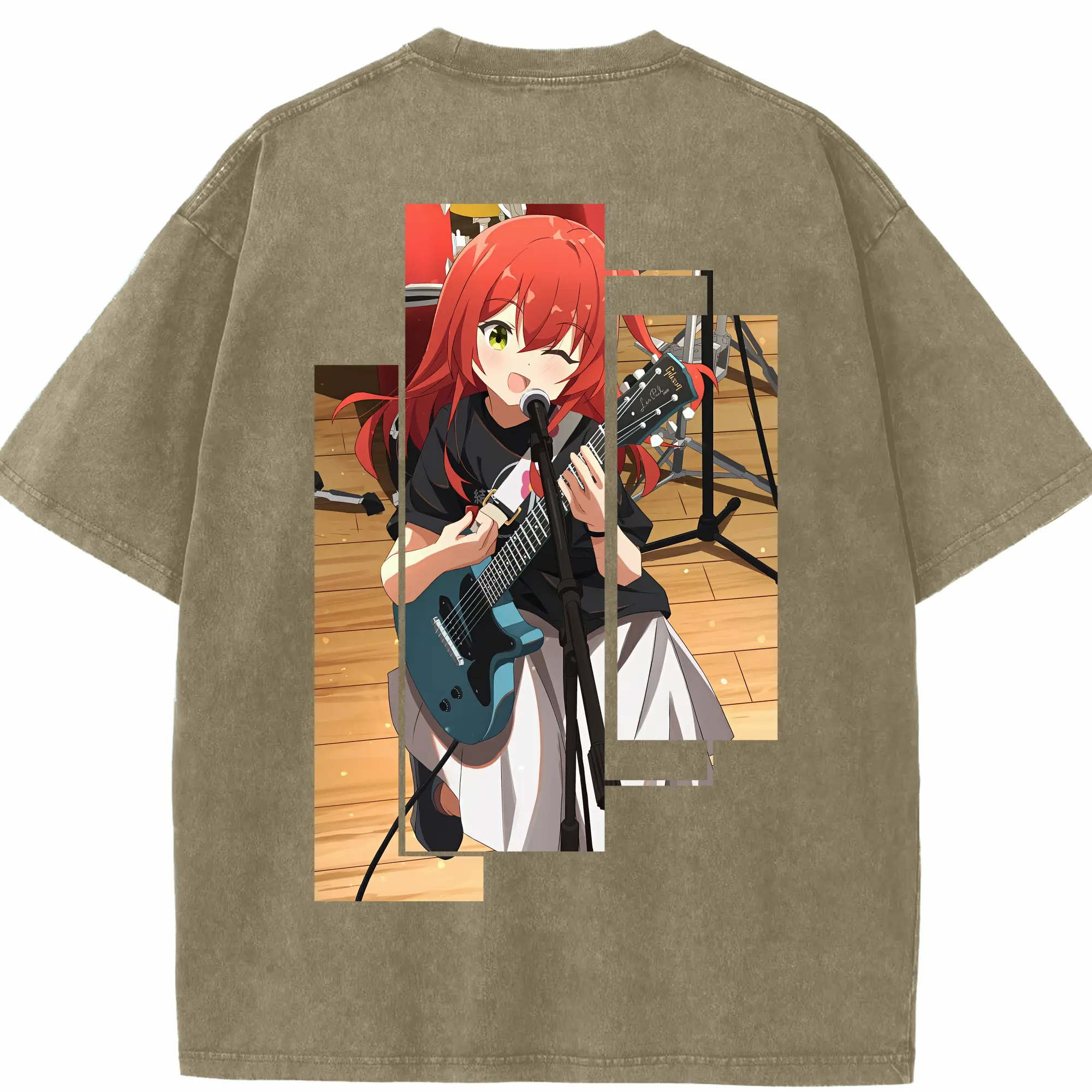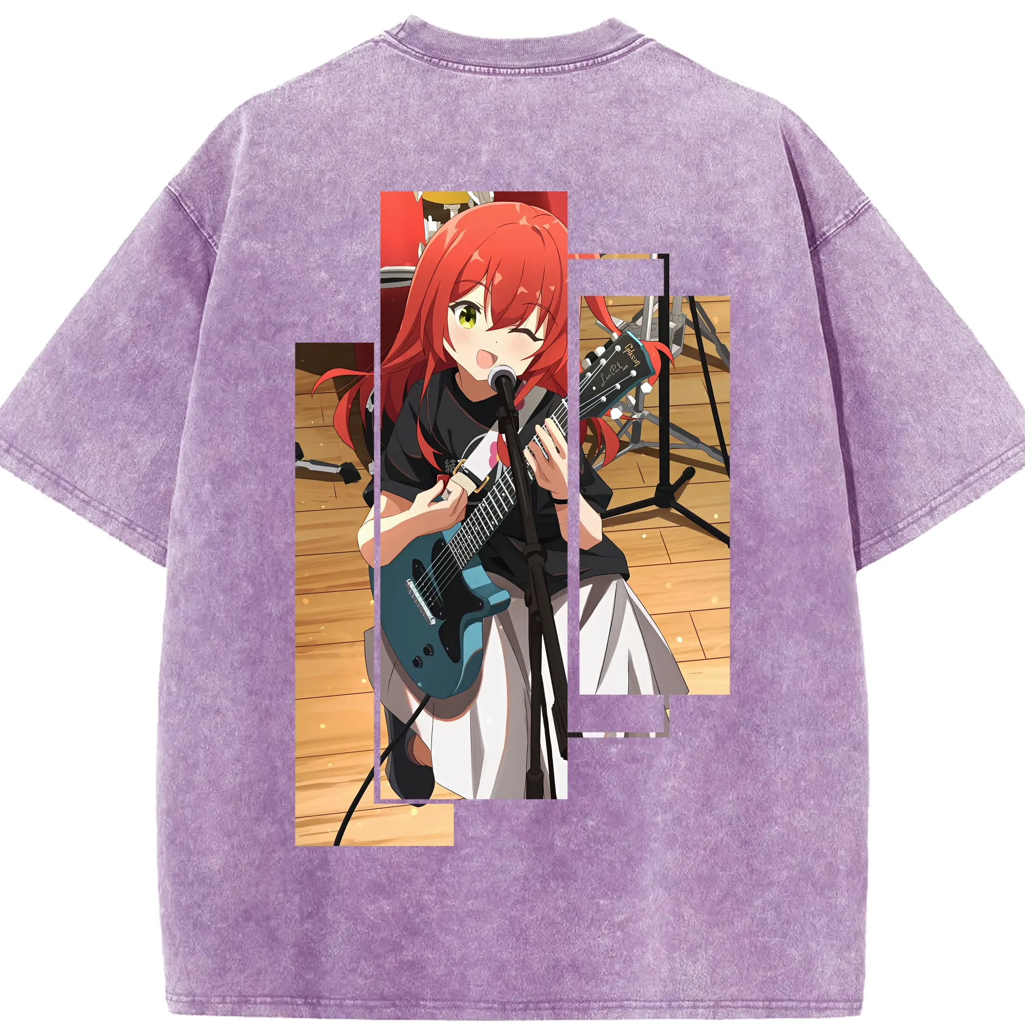 ぼっちざろっく! グッズ,喜多郁代 - 綿100% ヴィンテージ風 半袖Tシャツ ・ フロントプリント ・ 柔らか肌触り ・ 通気性 快適 ・ スポーツ カジュアル 外出用