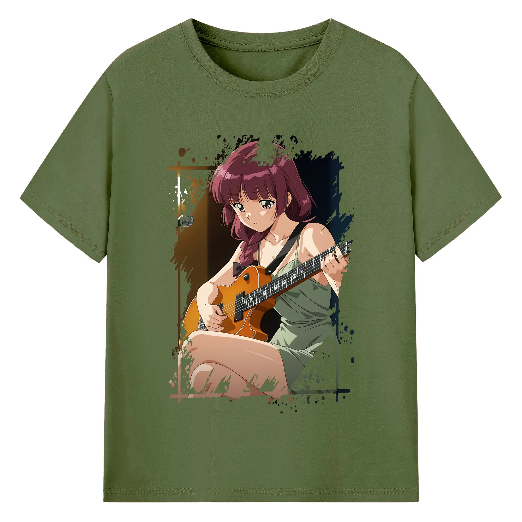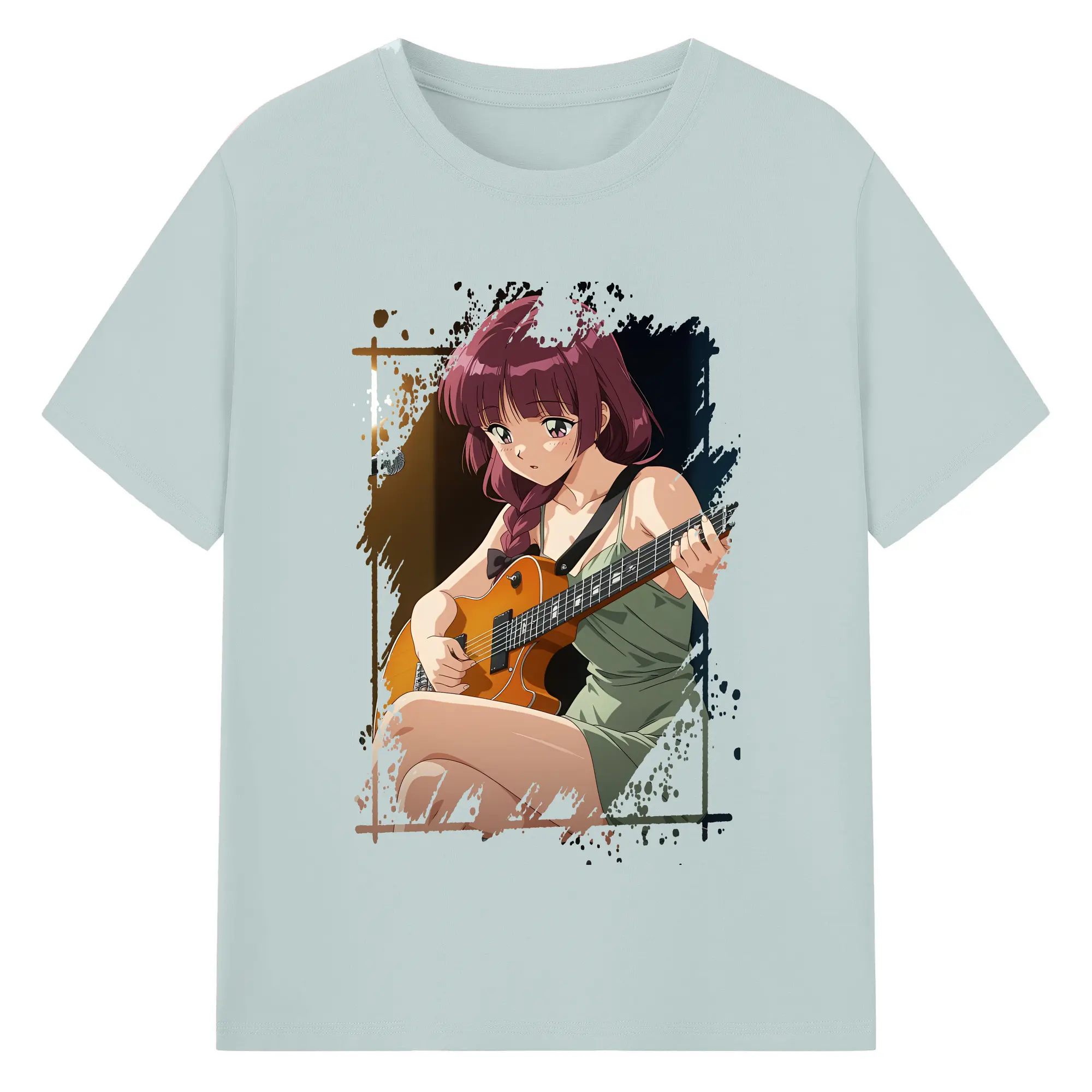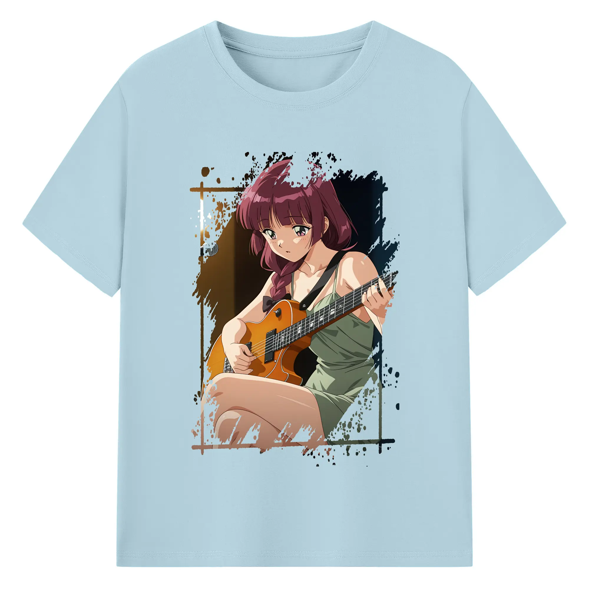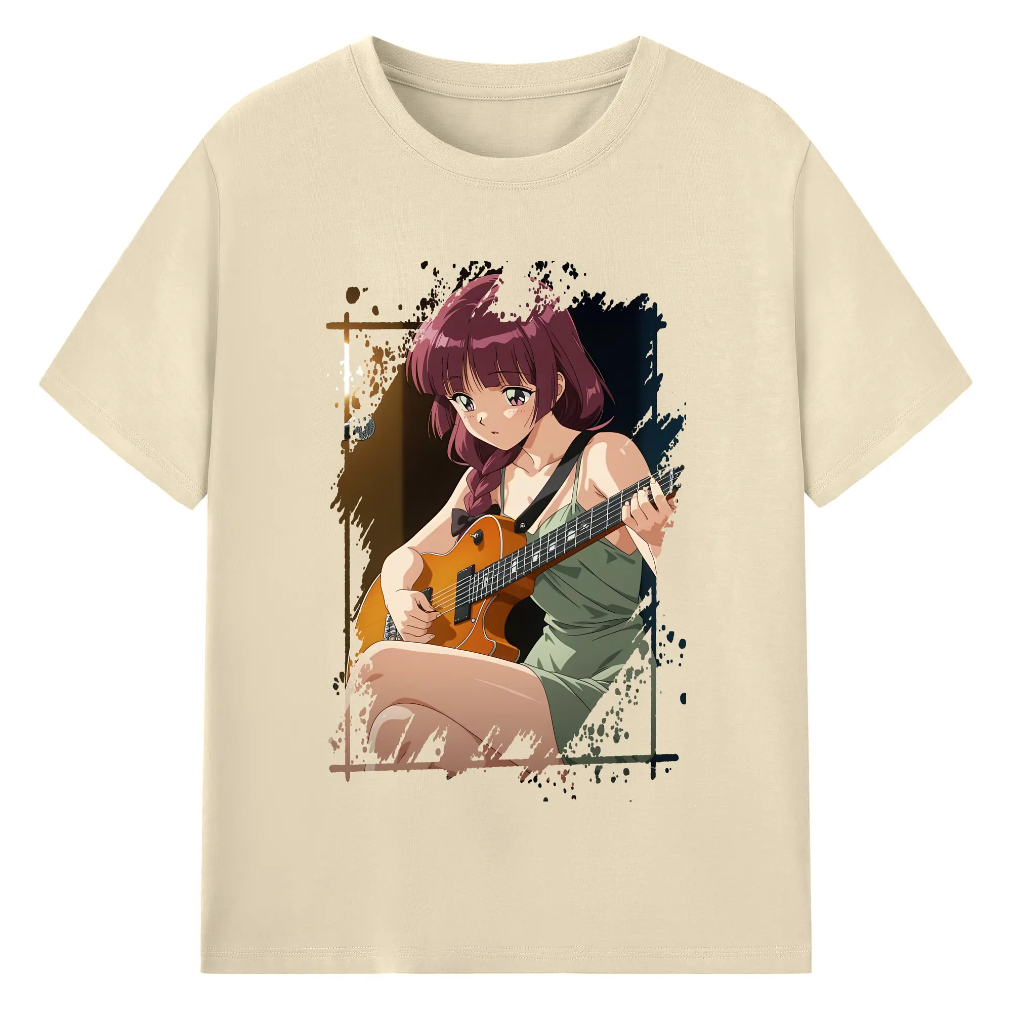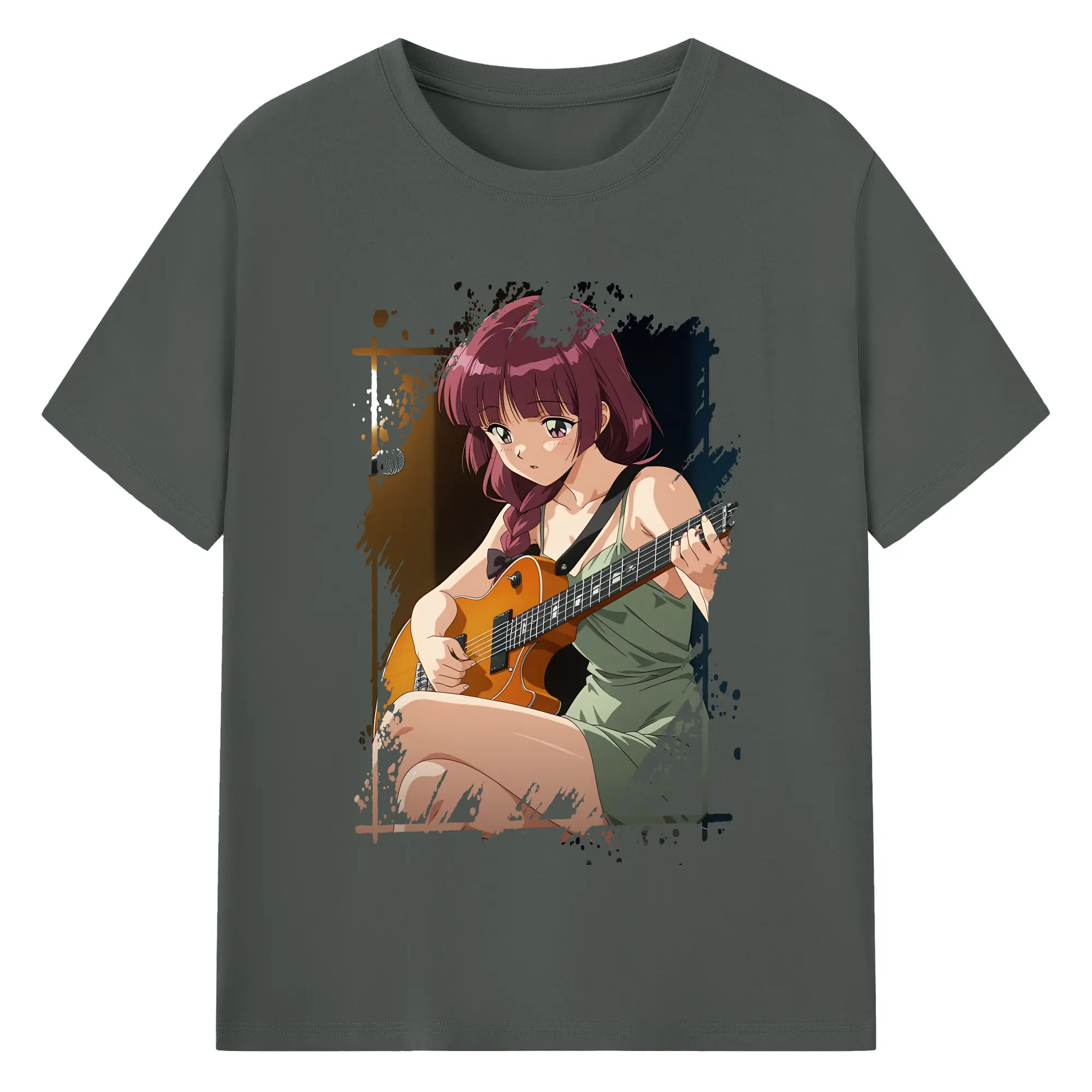 ぼっちざろっく! グッズ,廣井きくり - 綿100% ヴィンテージ風 半袖Tシャツ ・ フロントプリント ・ 柔らか肌触り ・ 通気性 快適 ・ スポーツ カジュアル 外出用