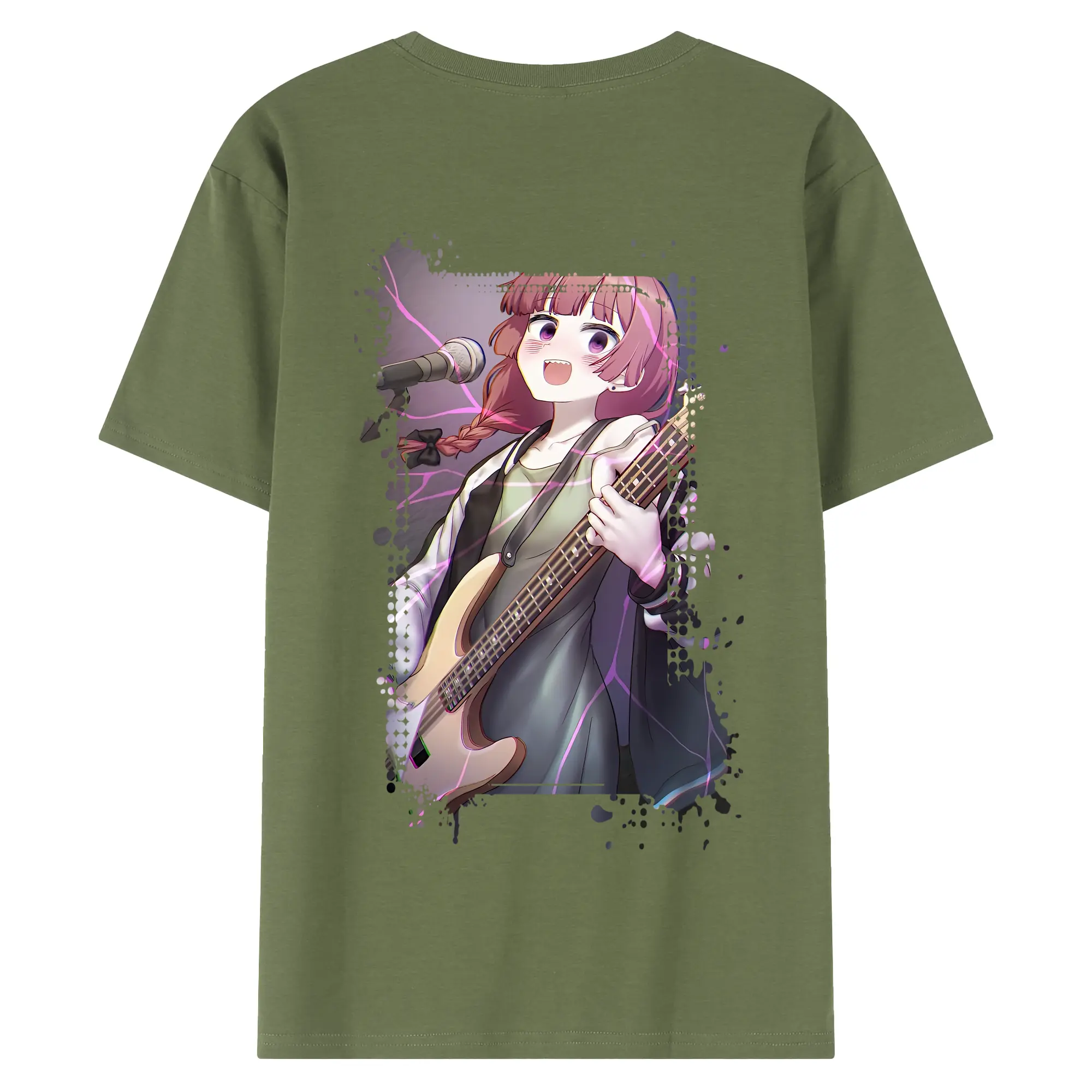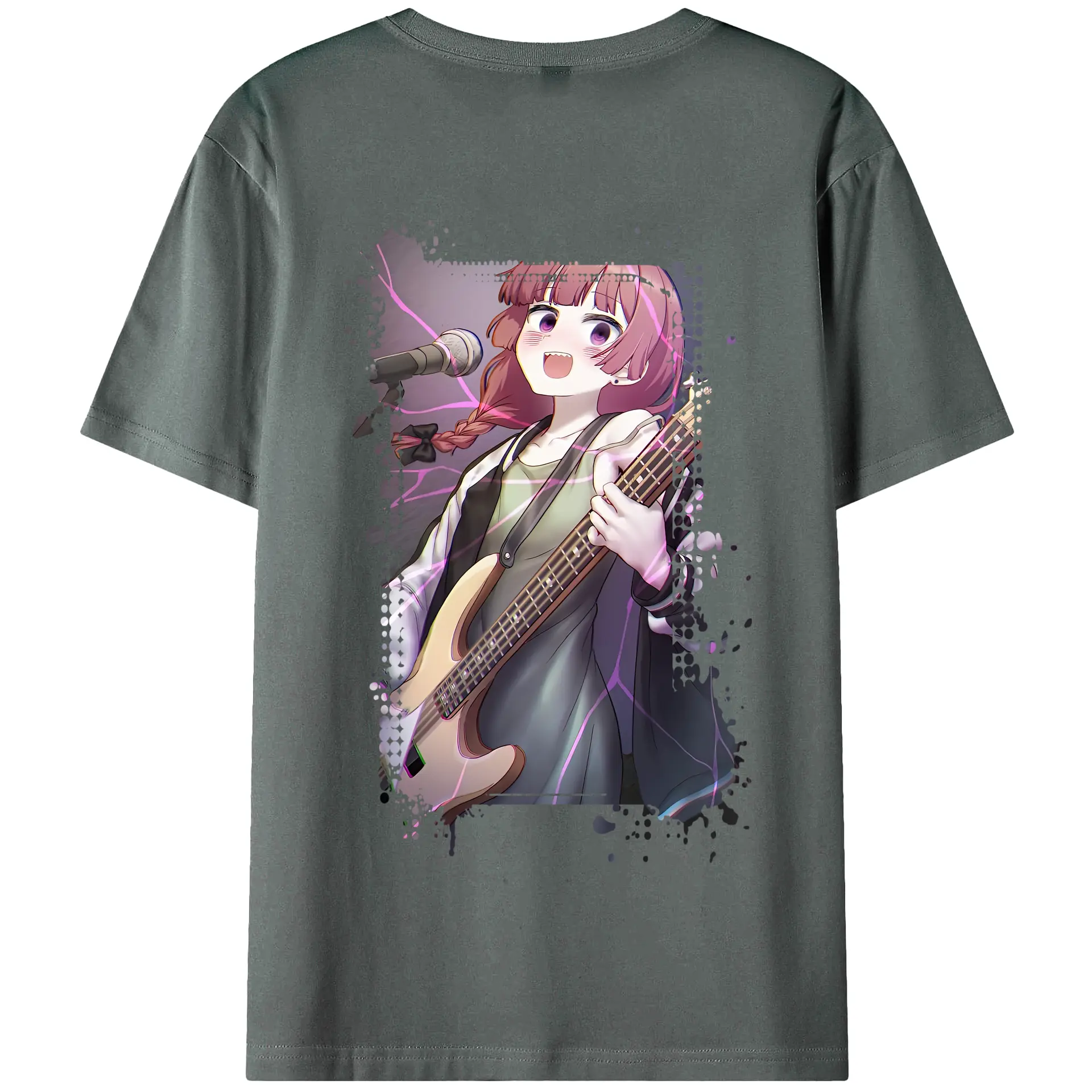 ぼっちざろっく! グッズ,廣井きくり - 綿100% ヴィンテージ風 半袖Tシャツ ・ 背面プリント ・ 柔らか肌触り ・ 通気性 快適 ・ スポーツ カジュアル 外出用