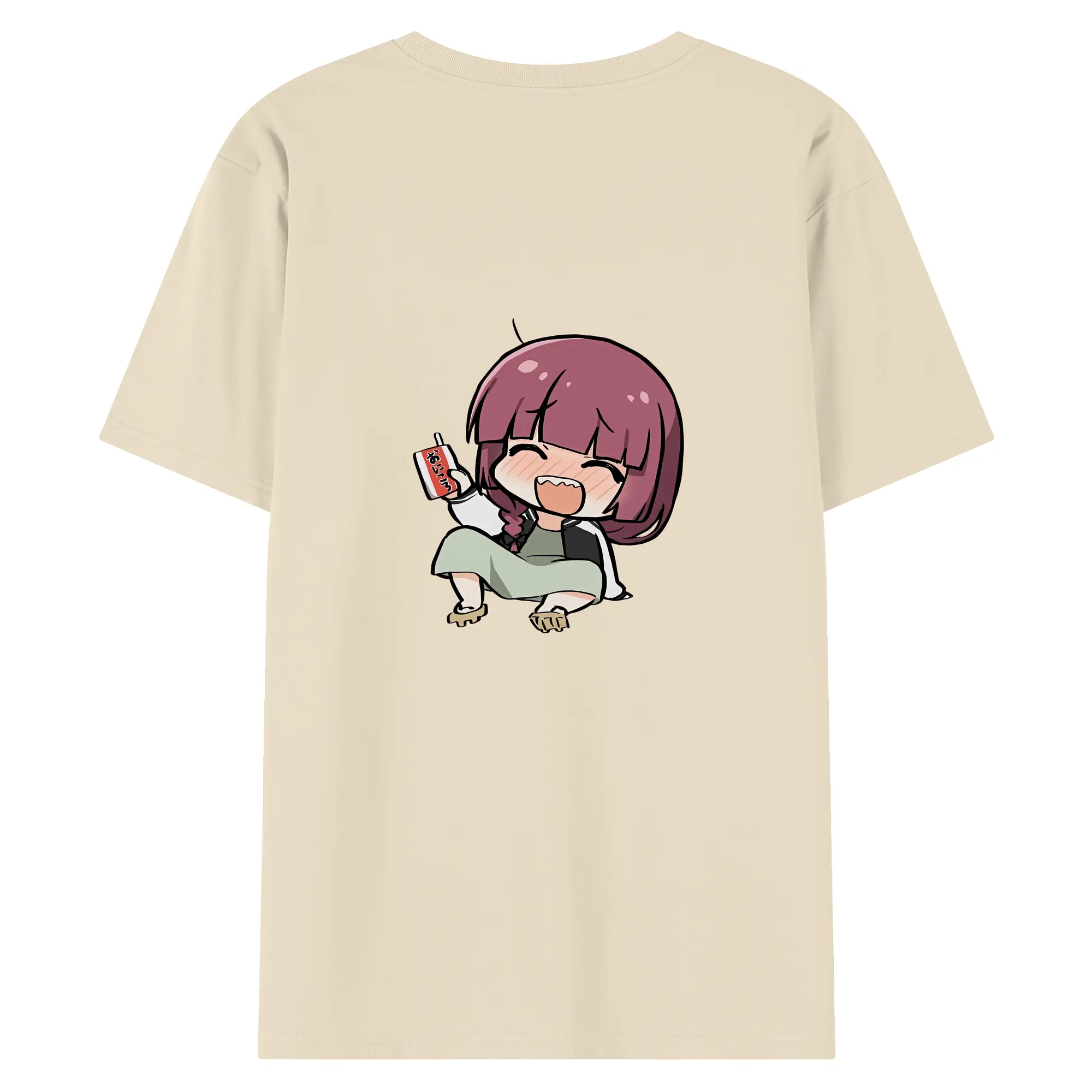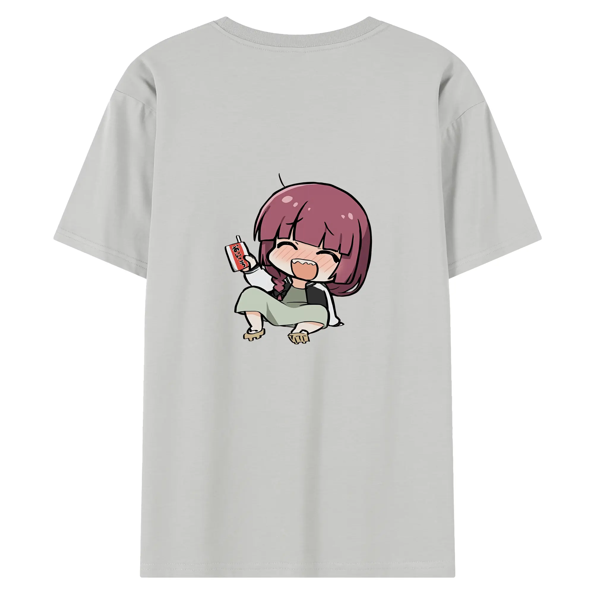 ぼっちざろっく! グッズ,廣井きくり - 綿100% ヴィンテージ風 半袖Tシャツ ・ 背面プリント ・ 柔らか肌触り ・ 通気性 快適 ・ スポーツ カジュアル 外出用