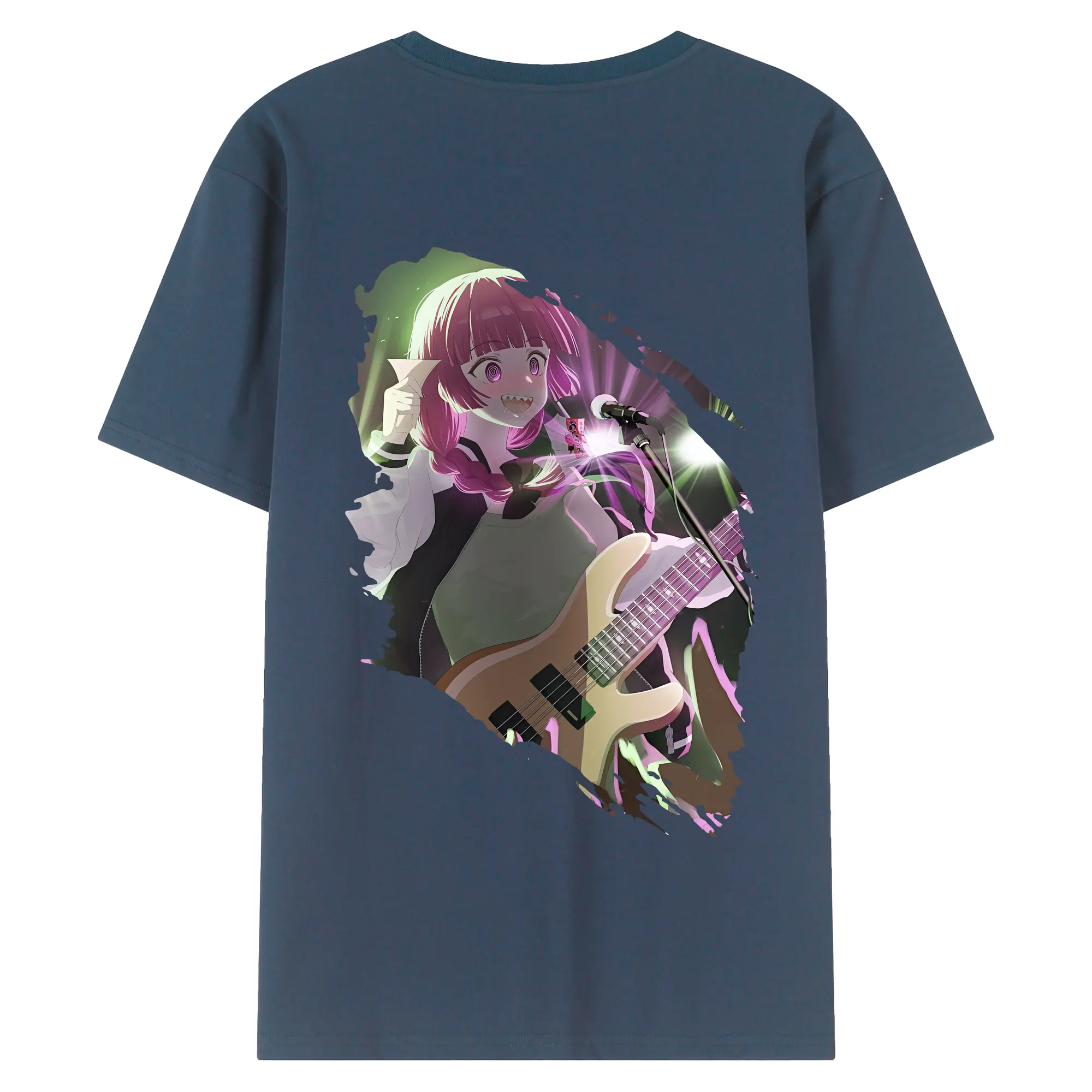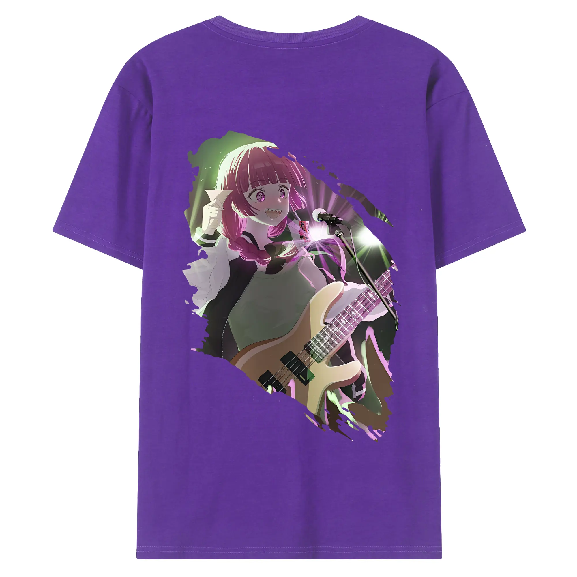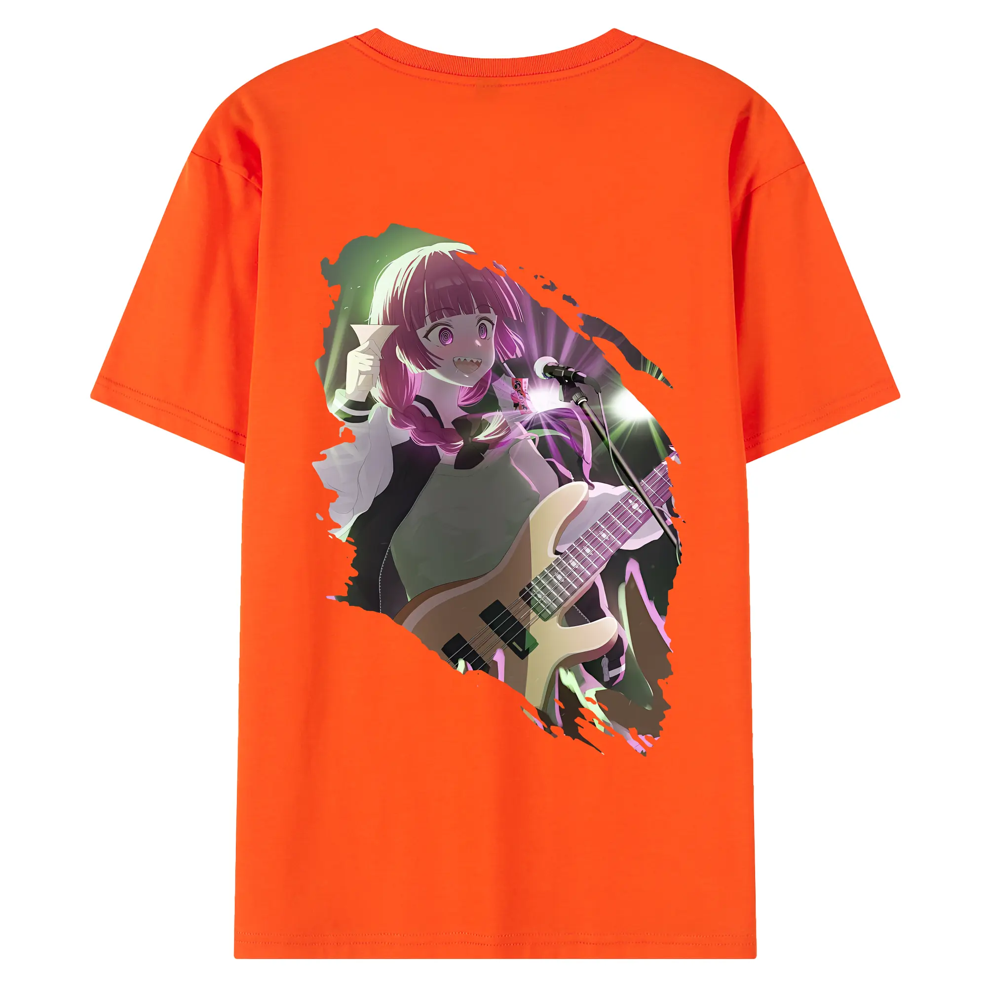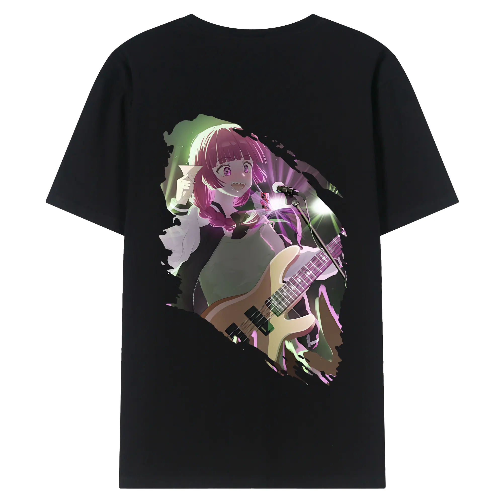 ぼっちざろっく! グッズ,廣井きくり - 綿100% ヴィンテージ風 半袖Tシャツ ・ 背面プリント ・ 柔らか肌触り ・ 通気性 快適 ・ スポーツ カジュアル 外出用