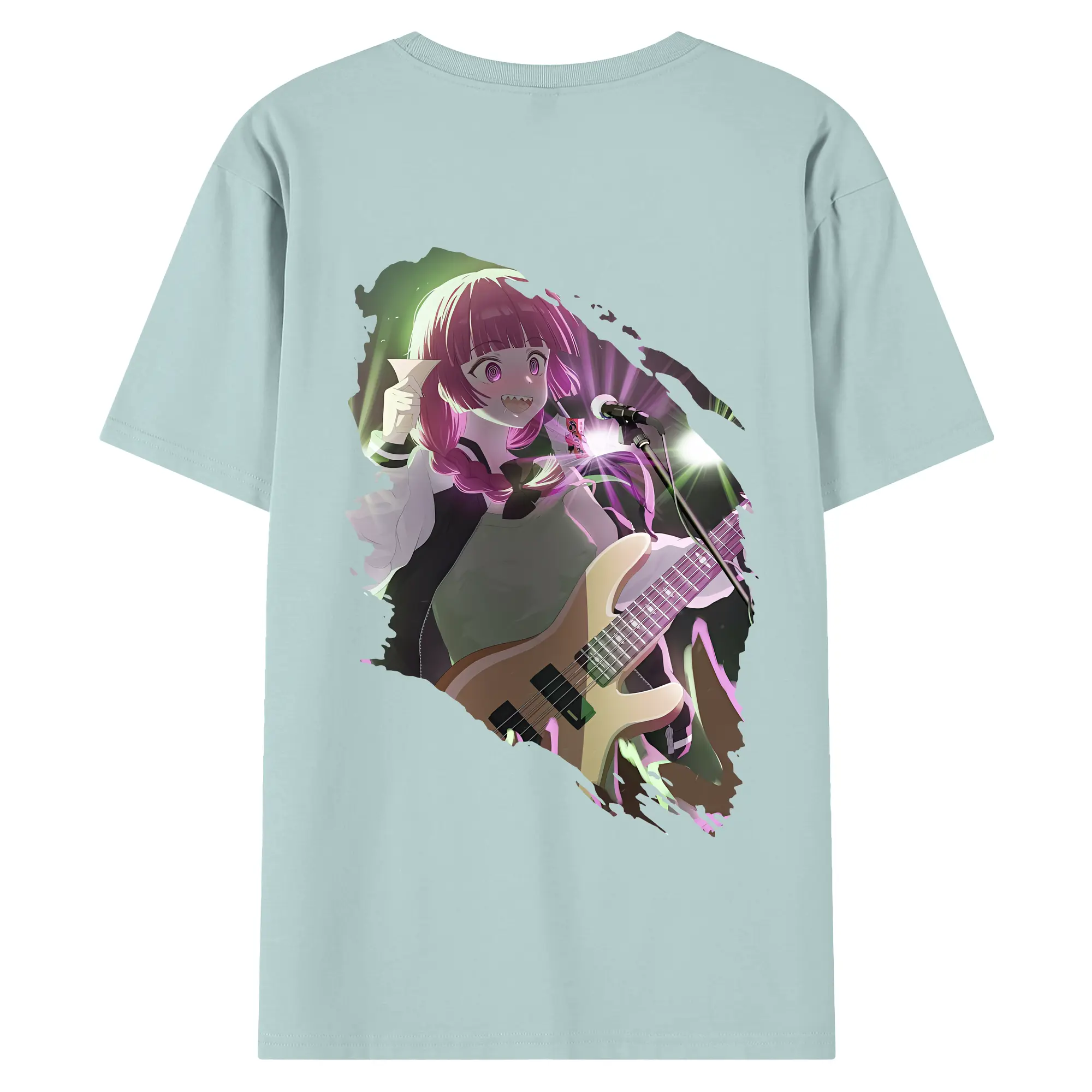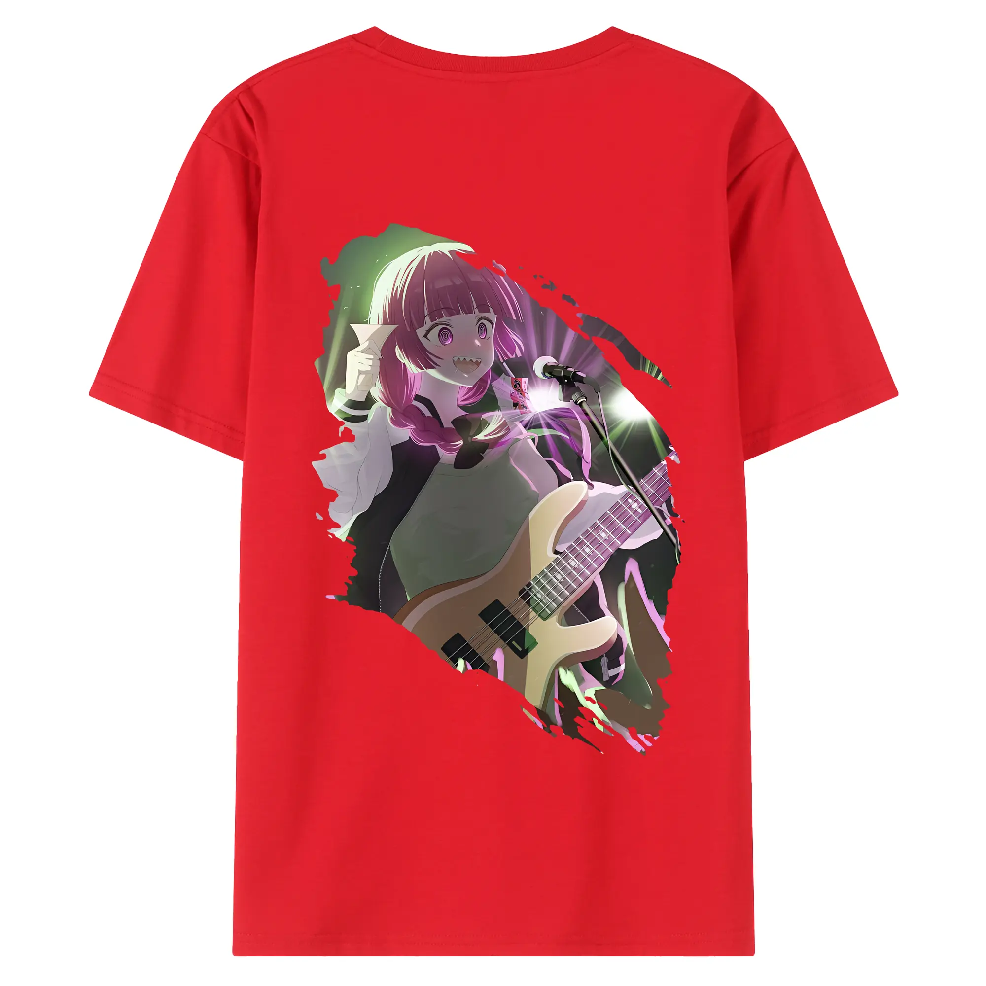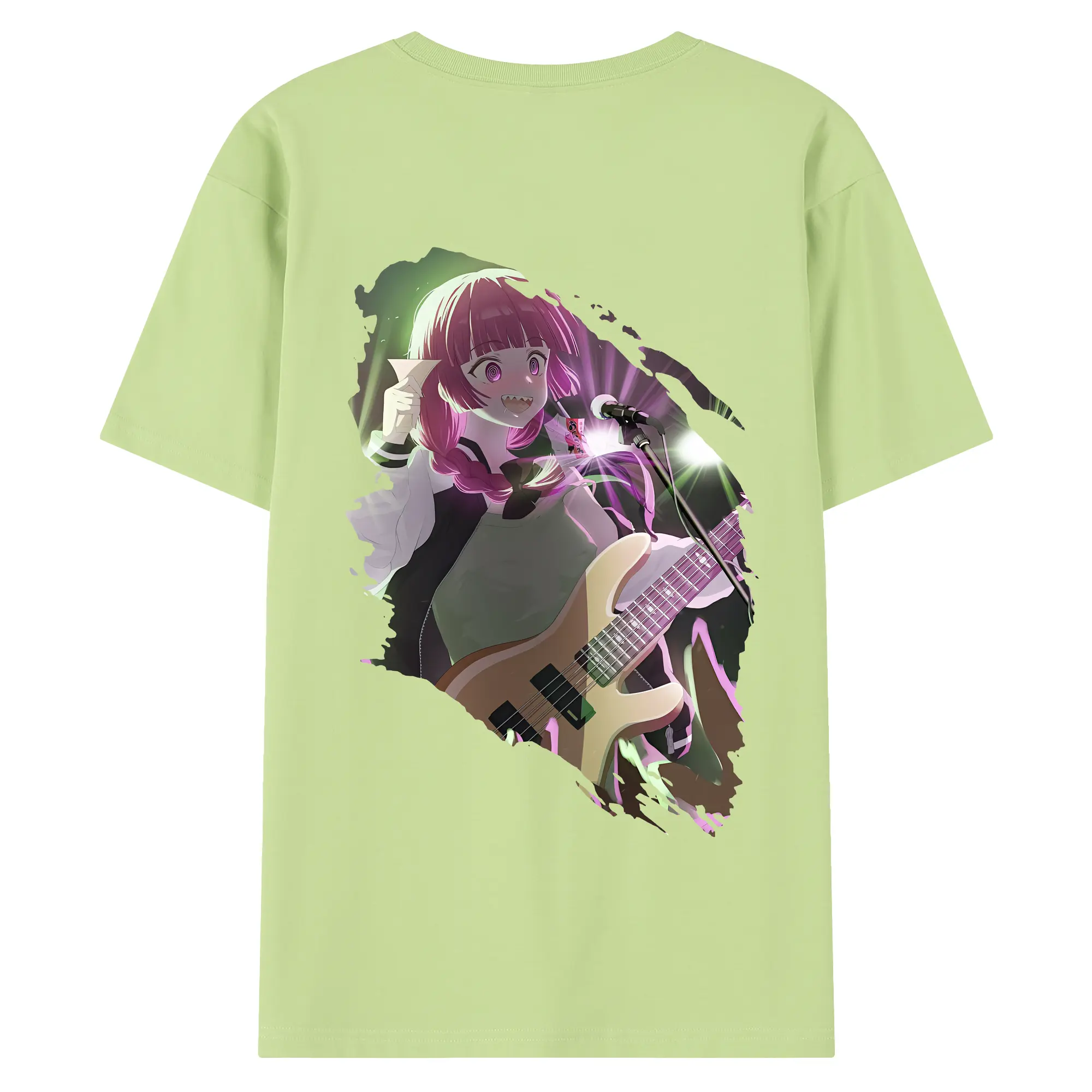 ぼっちざろっく! グッズ,廣井きくり - 綿100% ヴィンテージ風 半袖Tシャツ ・ 背面プリント ・ 柔らか肌触り ・ 通気性 快適 ・ スポーツ カジュアル 外出用