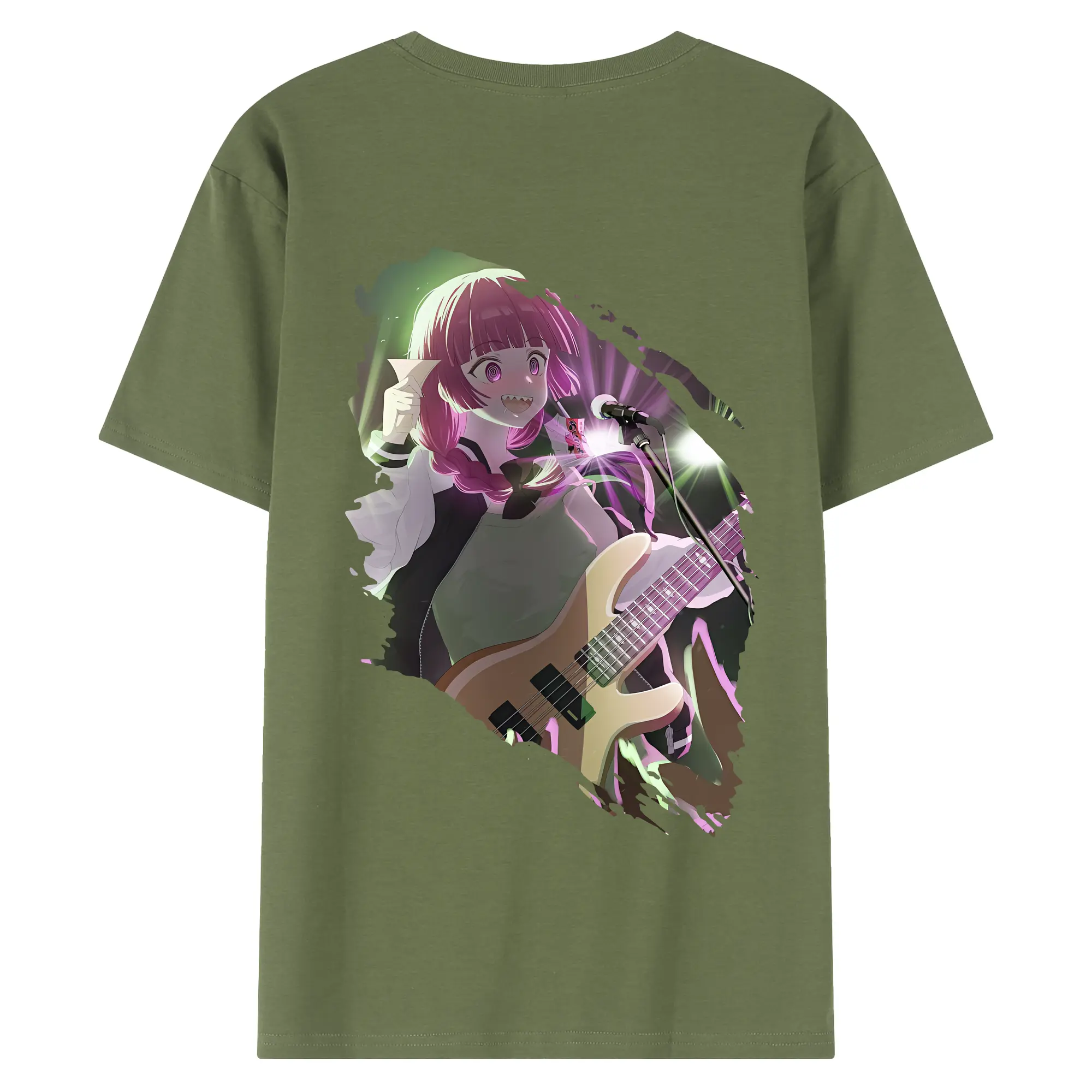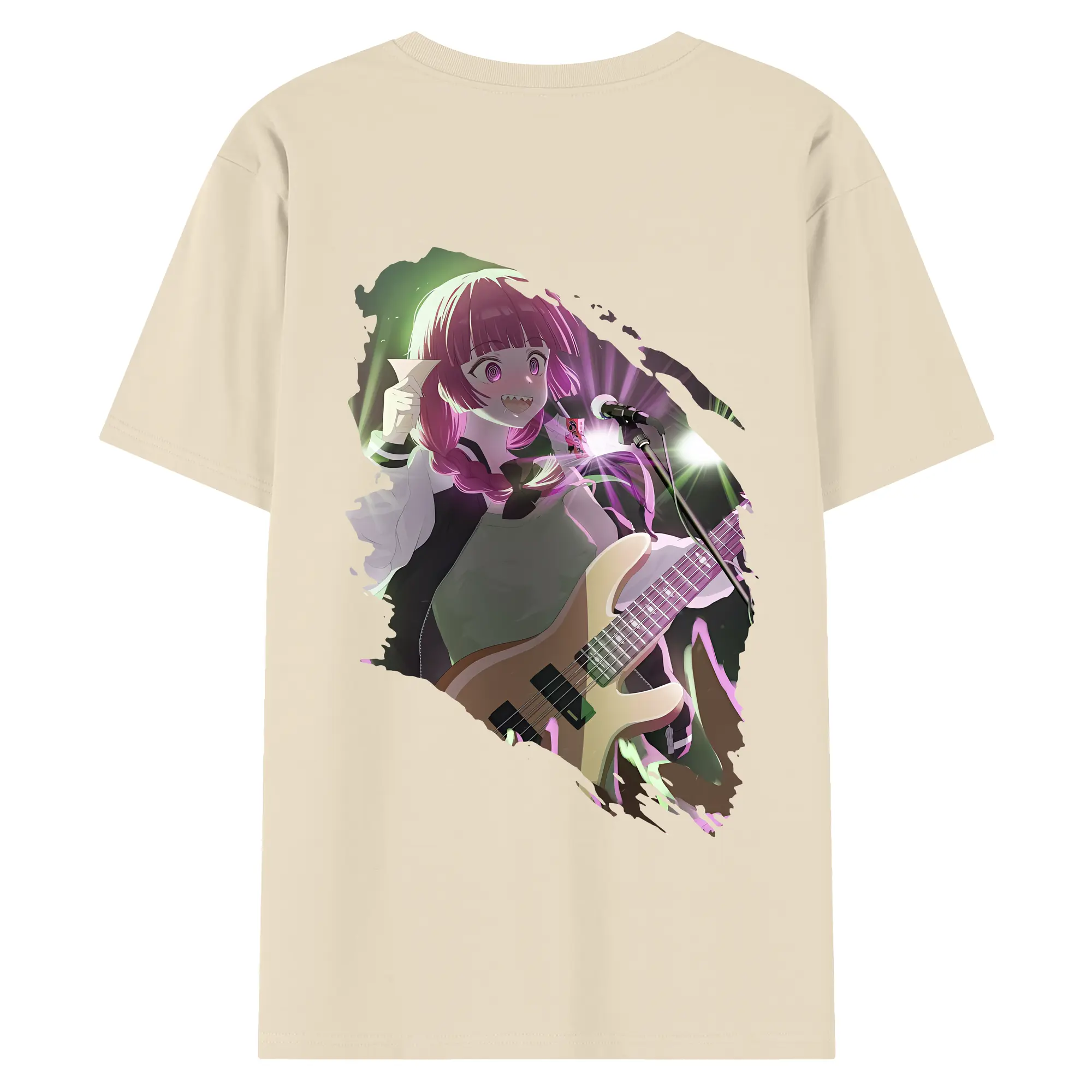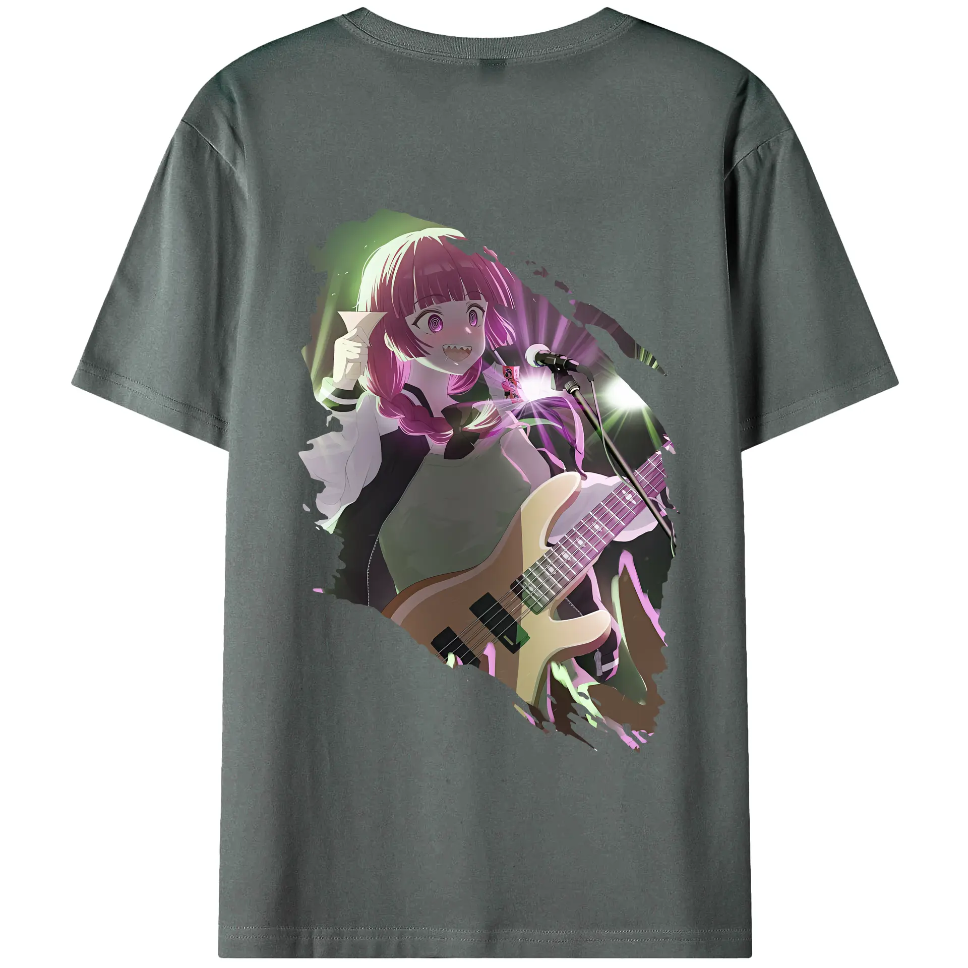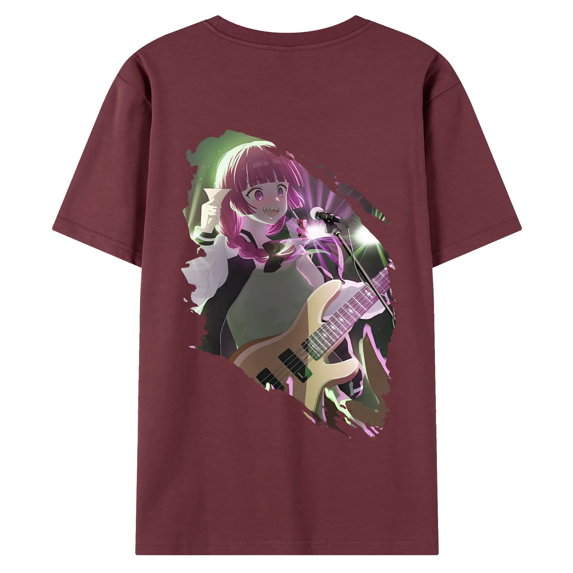ぼっちざろっく! グッズ,廣井きくり - 綿100% ヴィンテージ風 半袖Tシャツ ・ 背面プリント ・ 柔らか肌触り ・ 通気性 快適 ・ スポーツ カジュアル 外出用