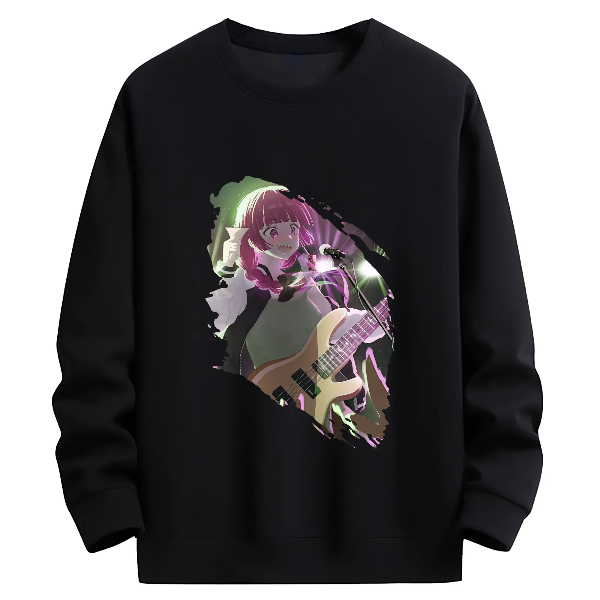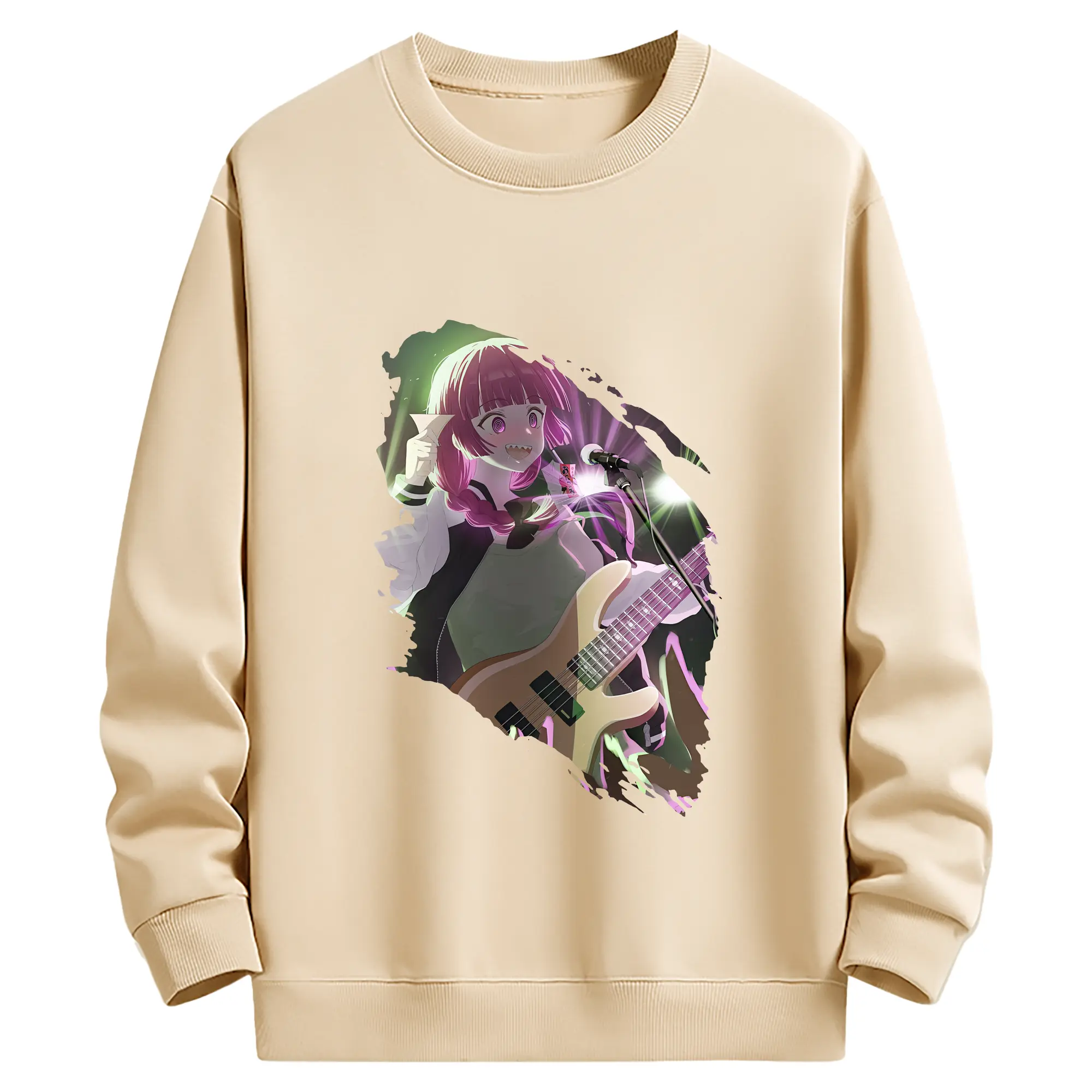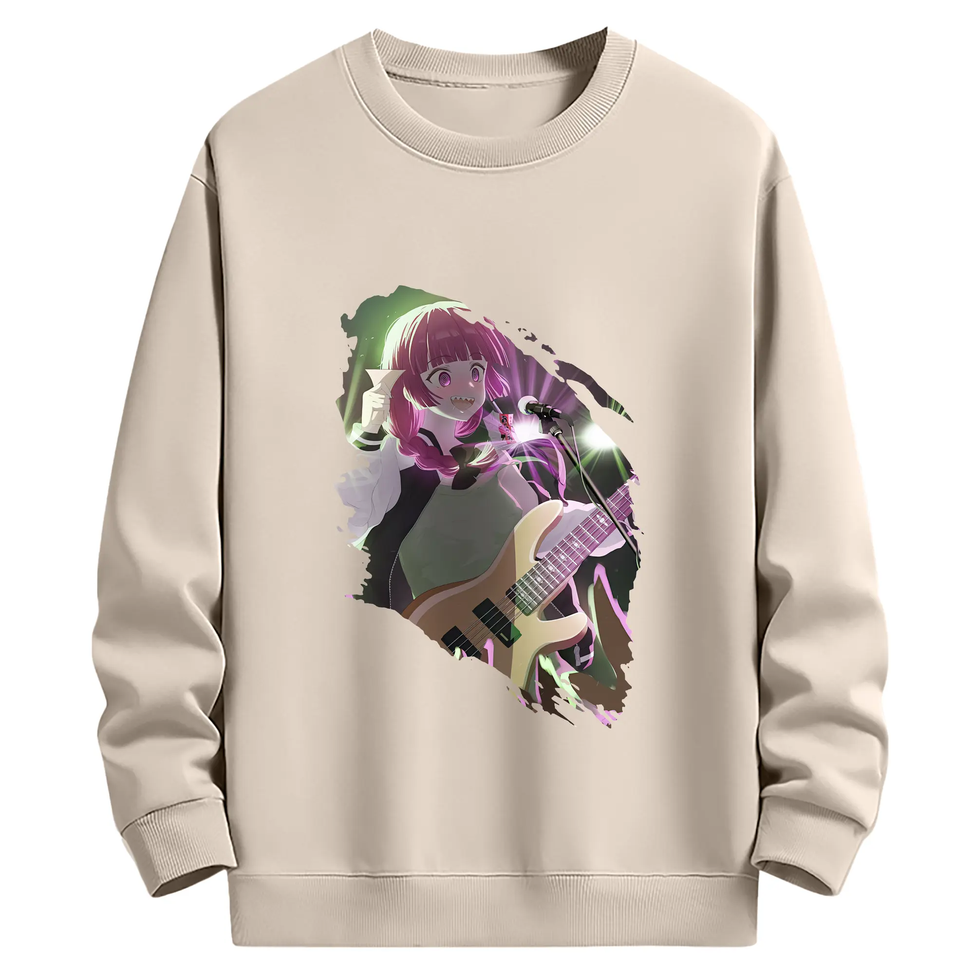ぼっちざろっく! グッズ,廣井きくり - 薄手 クルーネック スウェット 裏毛260g · ポリエステル 春秋向け カジュアル 男女兼用 · トレーナー デイリー スポーツ 散歩に最適