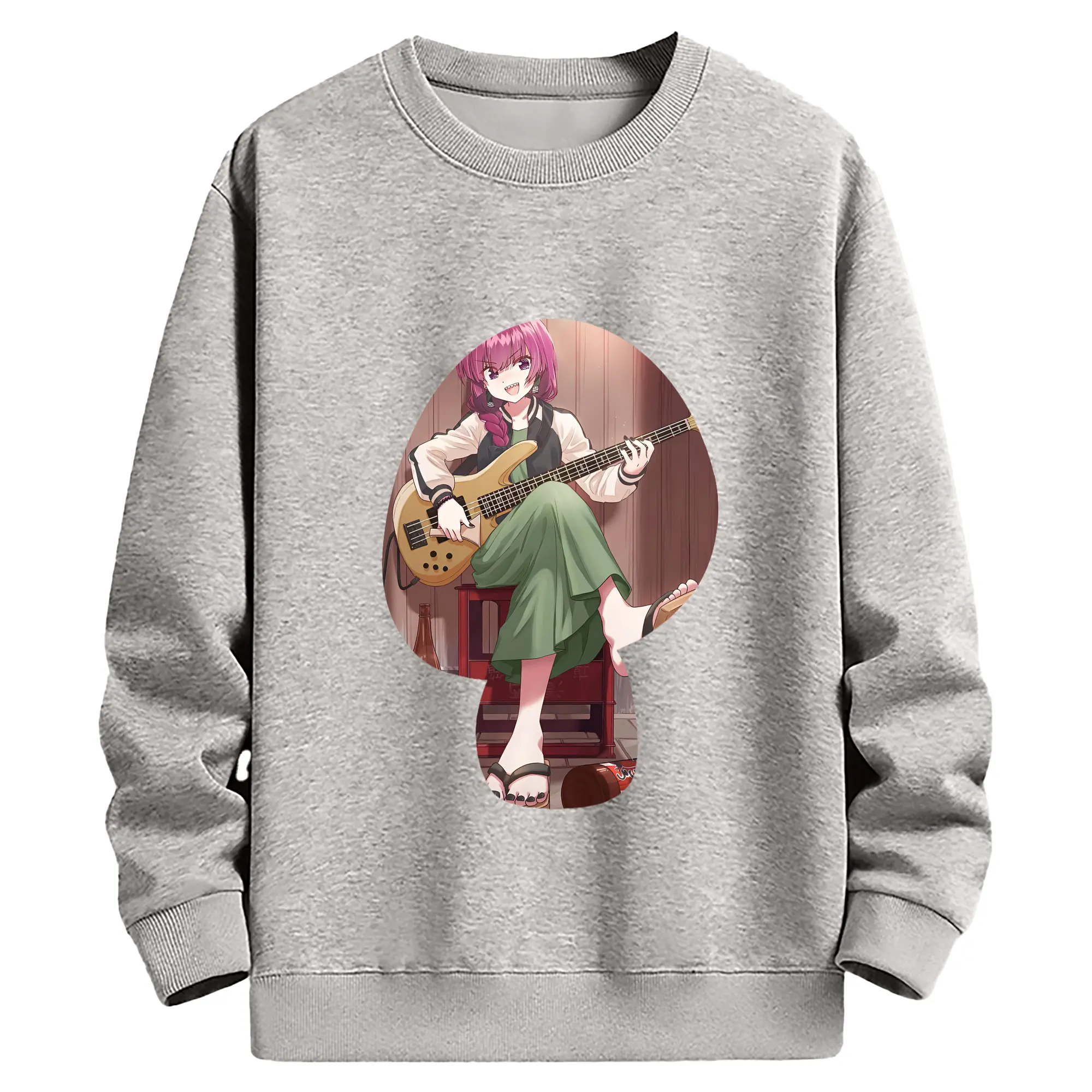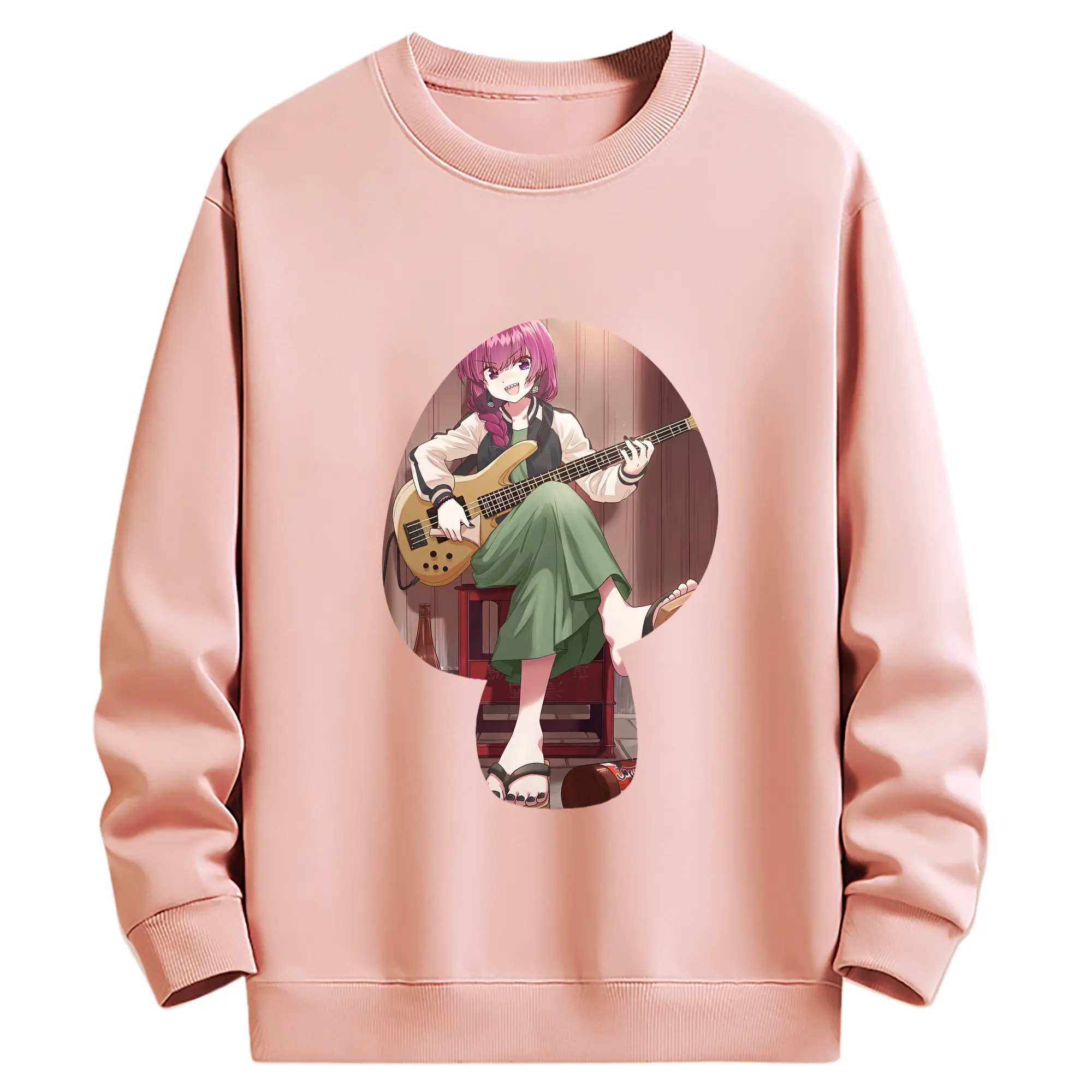 ぼっちざろっく! グッズ,廣井きくり - 薄手 クルーネック スウェット 裏毛260g · ポリエステル 春秋向け カジュアル 男女兼用 · トレーナー デイリー スポーツ 散歩に最適