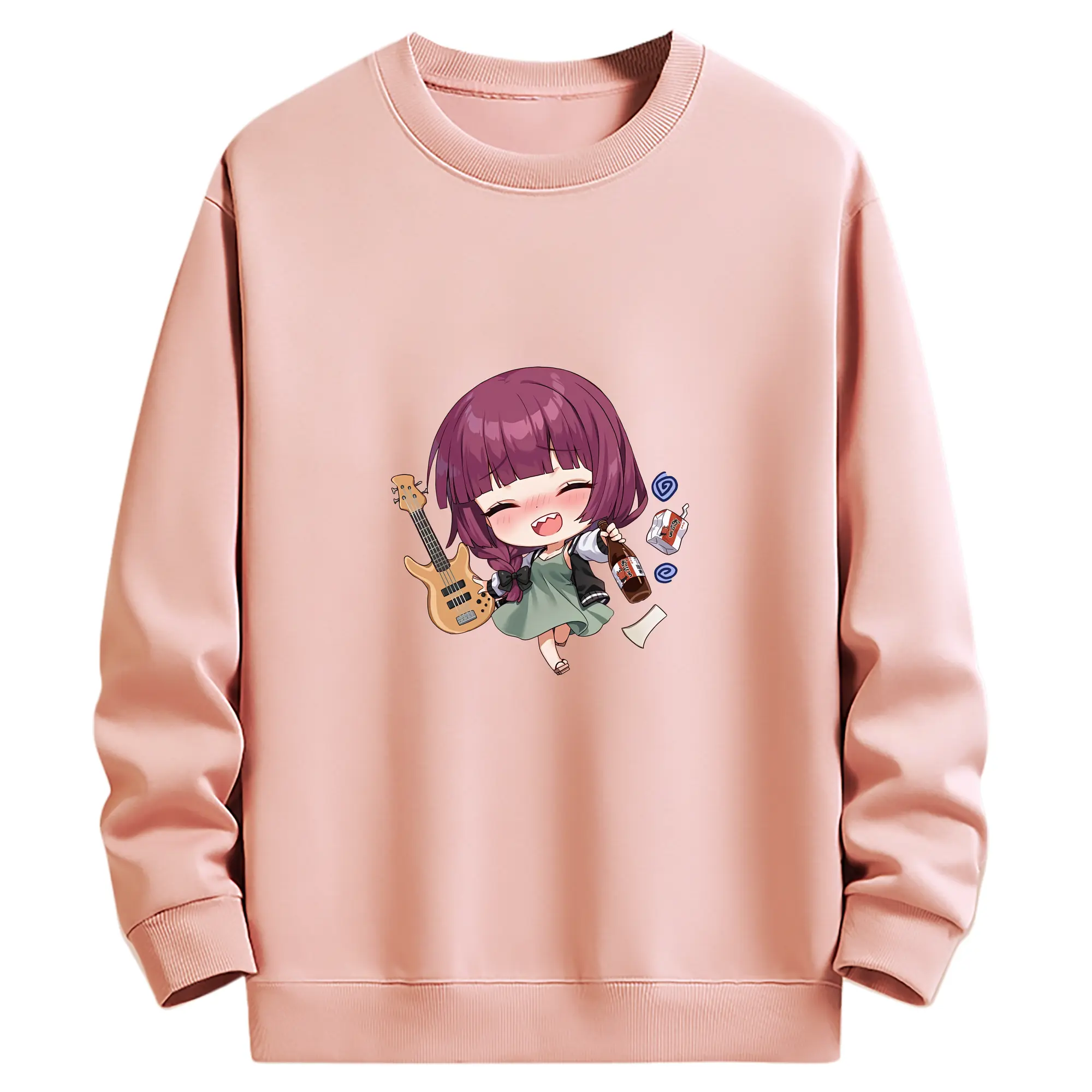 ぼっちざろっく! グッズ,廣井きくり - 薄手 クルーネック スウェット 裏毛260g · ポリエステル 春秋向け カジュアル 男女兼用 · トレーナー デイリー スポーツ 散歩に最適