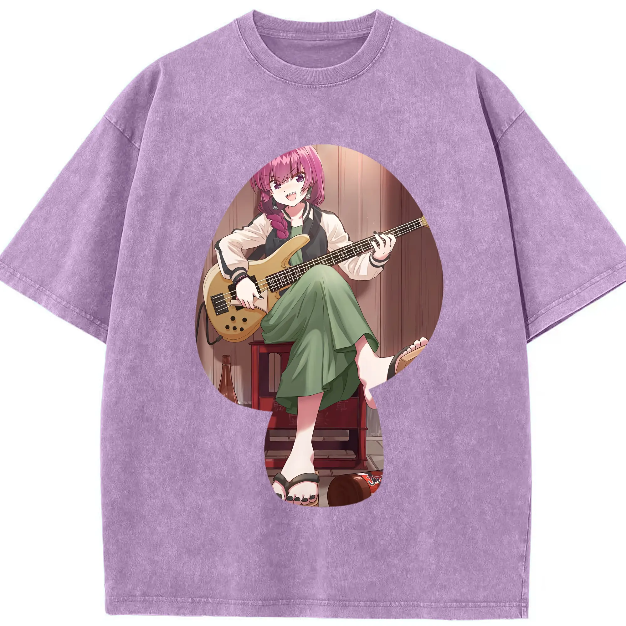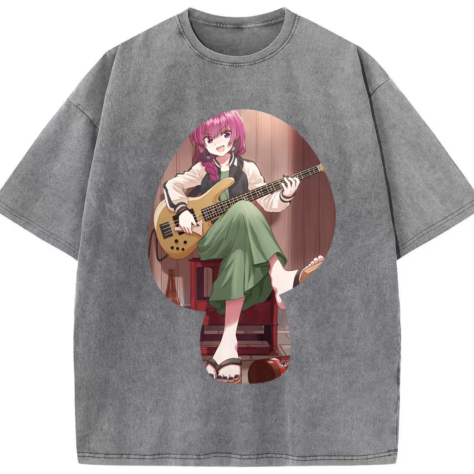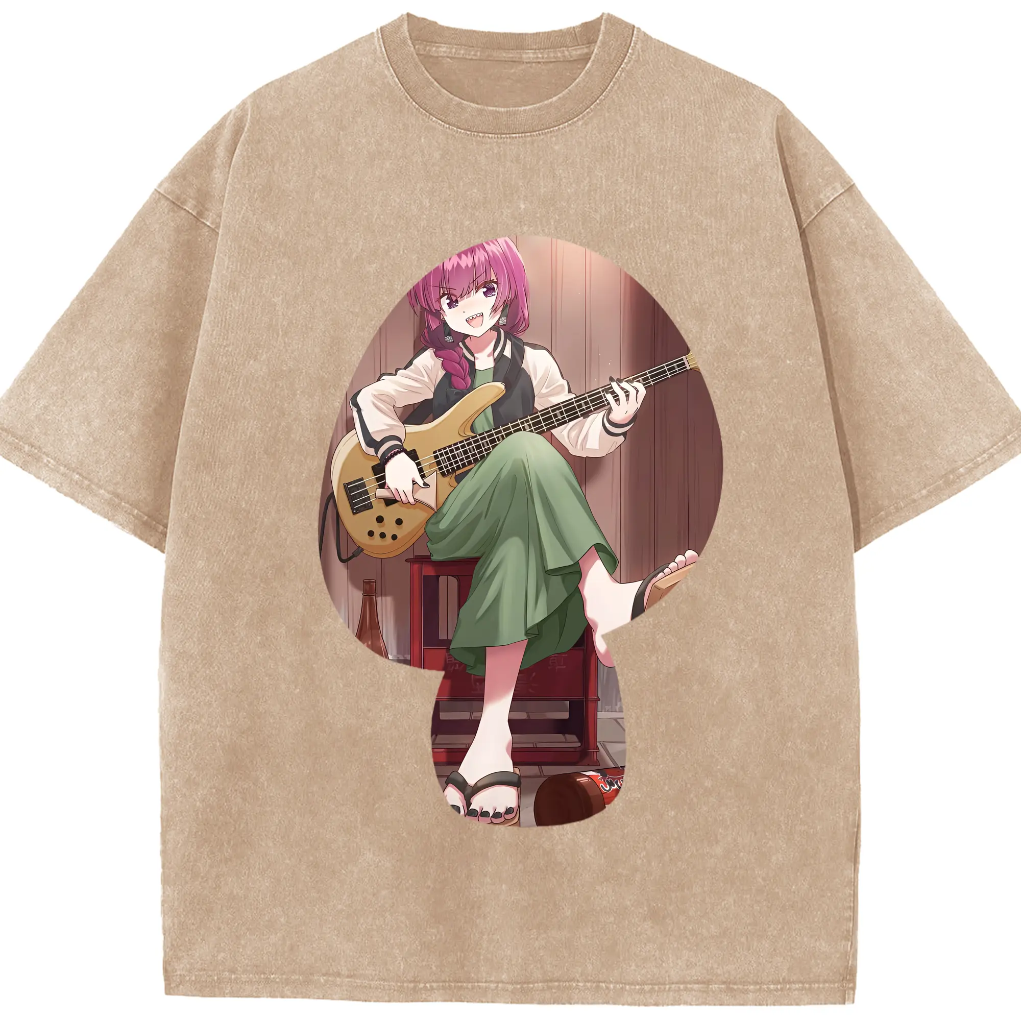 ぼっちざろっく! グッズ,廣井きくり - 綿100% ヴィンテージ風 半袖Tシャツ ・ 背面プリント ・ 柔らか肌触り ・ 通気性 快適 ・ スポーツ カジュアル 外出用