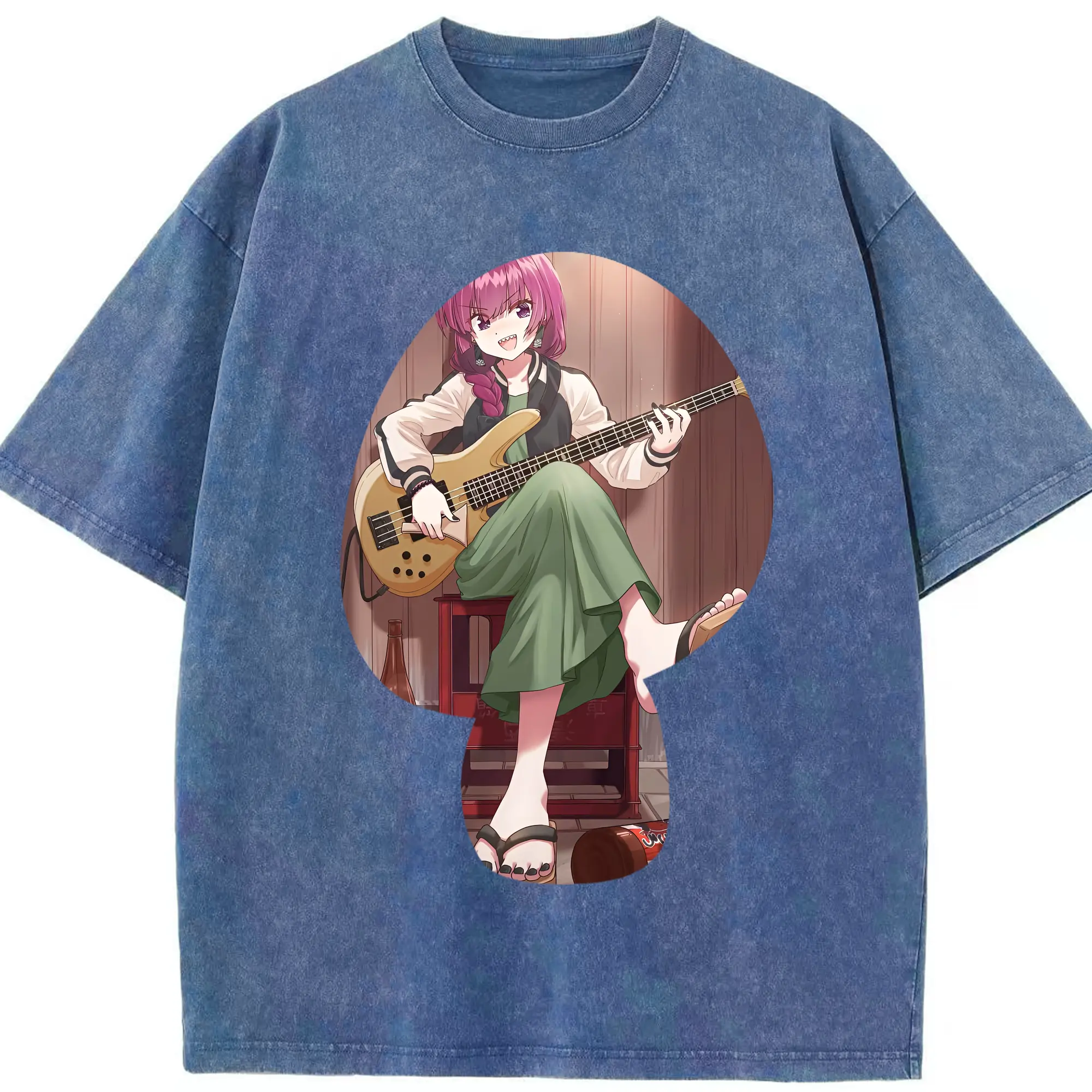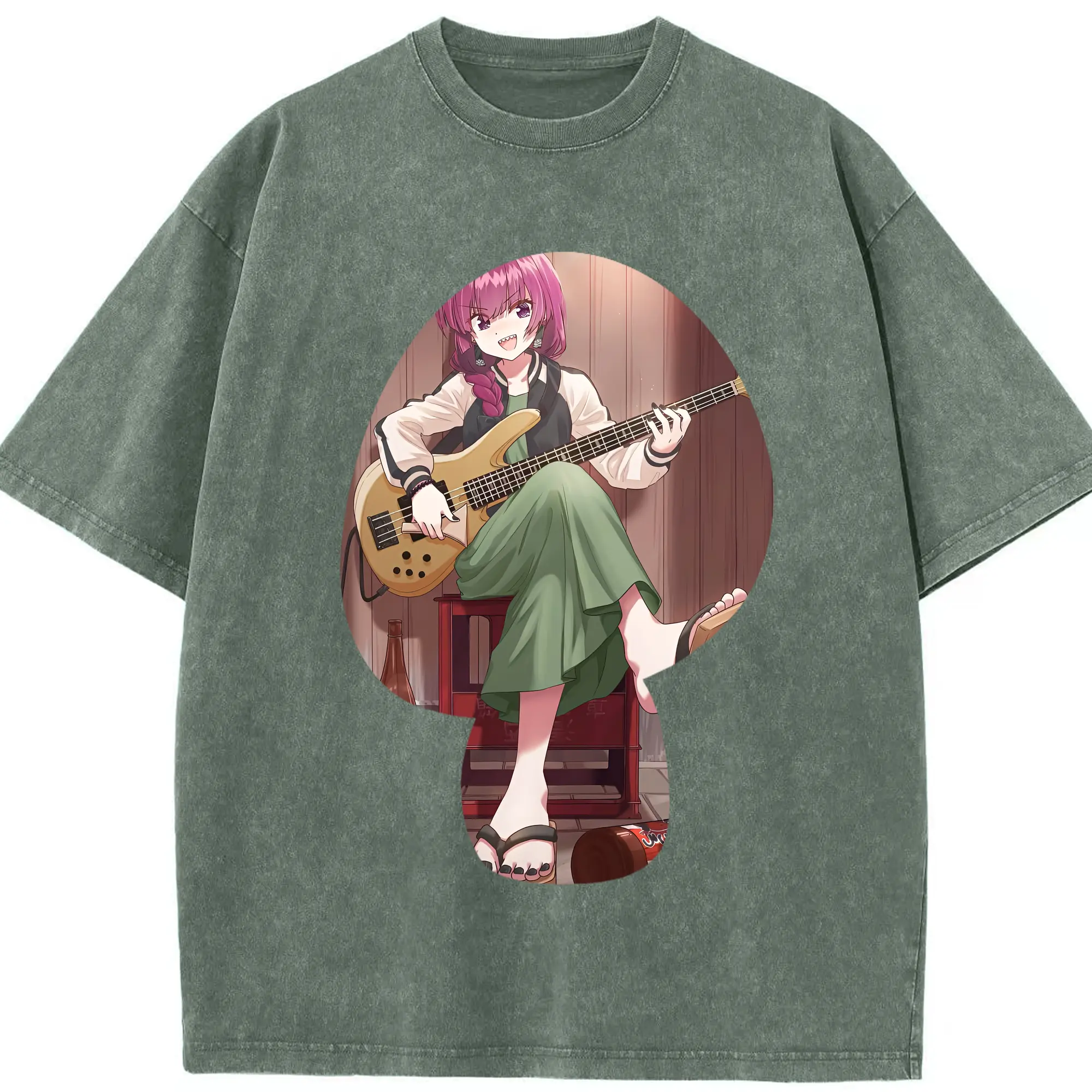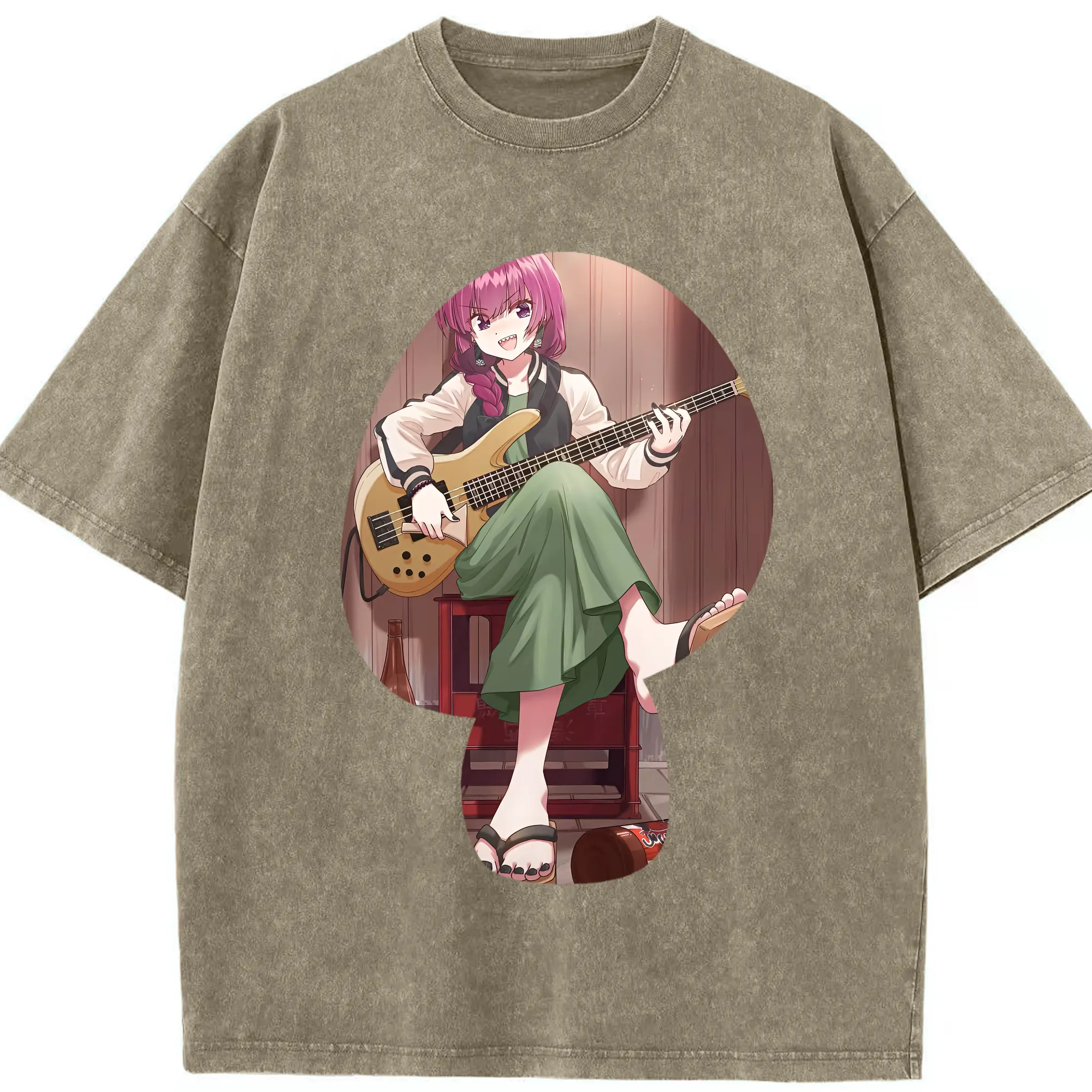 ぼっちざろっく! グッズ,廣井きくり - 綿100% ヴィンテージ風 半袖Tシャツ ・ 背面プリント ・ 柔らか肌触り ・ 通気性 快適 ・ スポーツ カジュアル 外出用