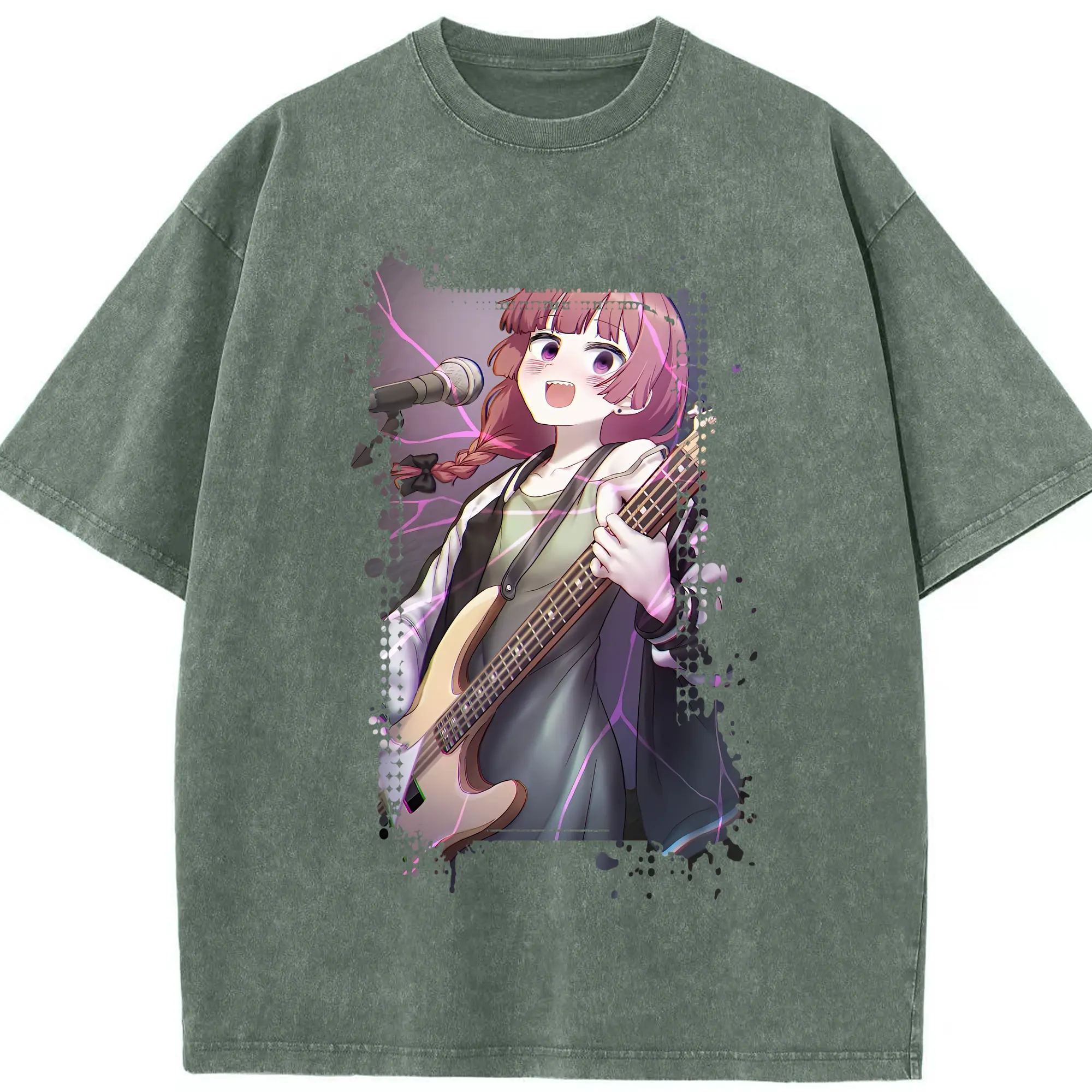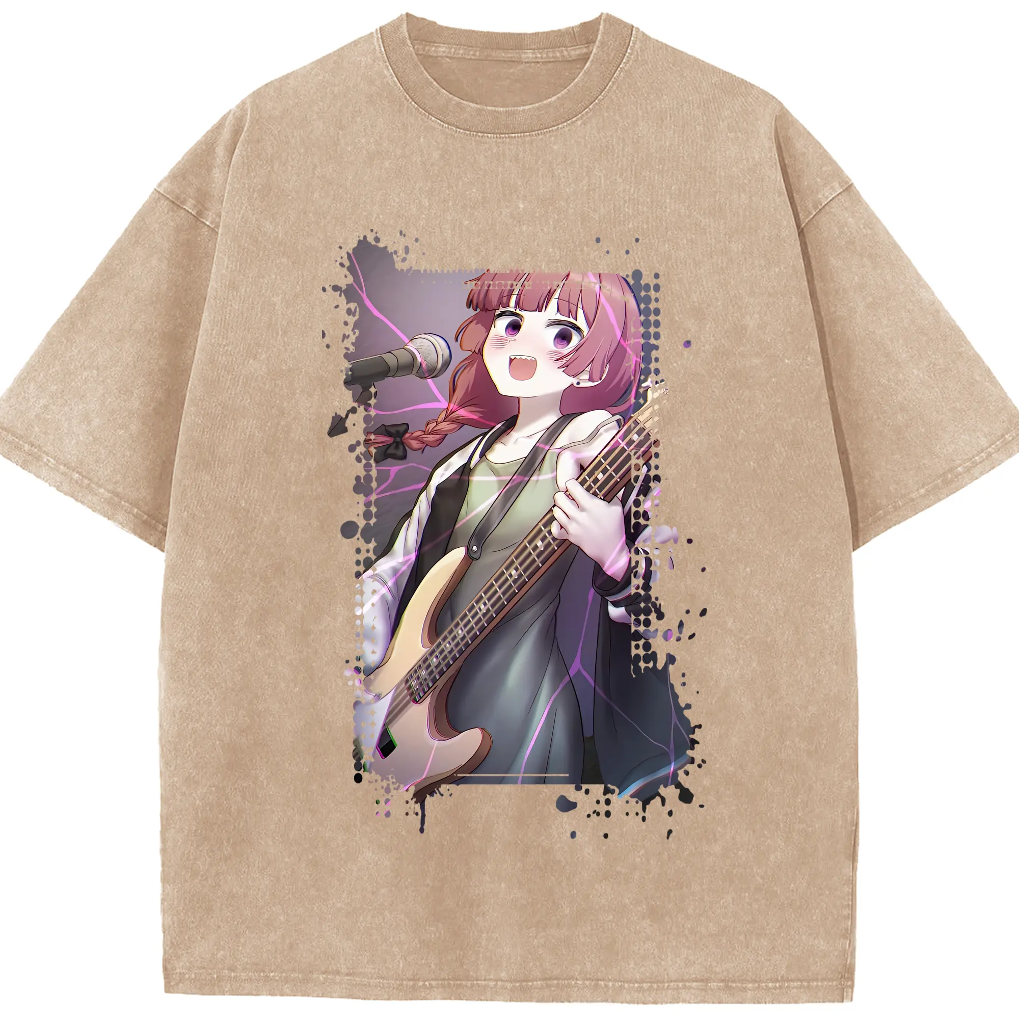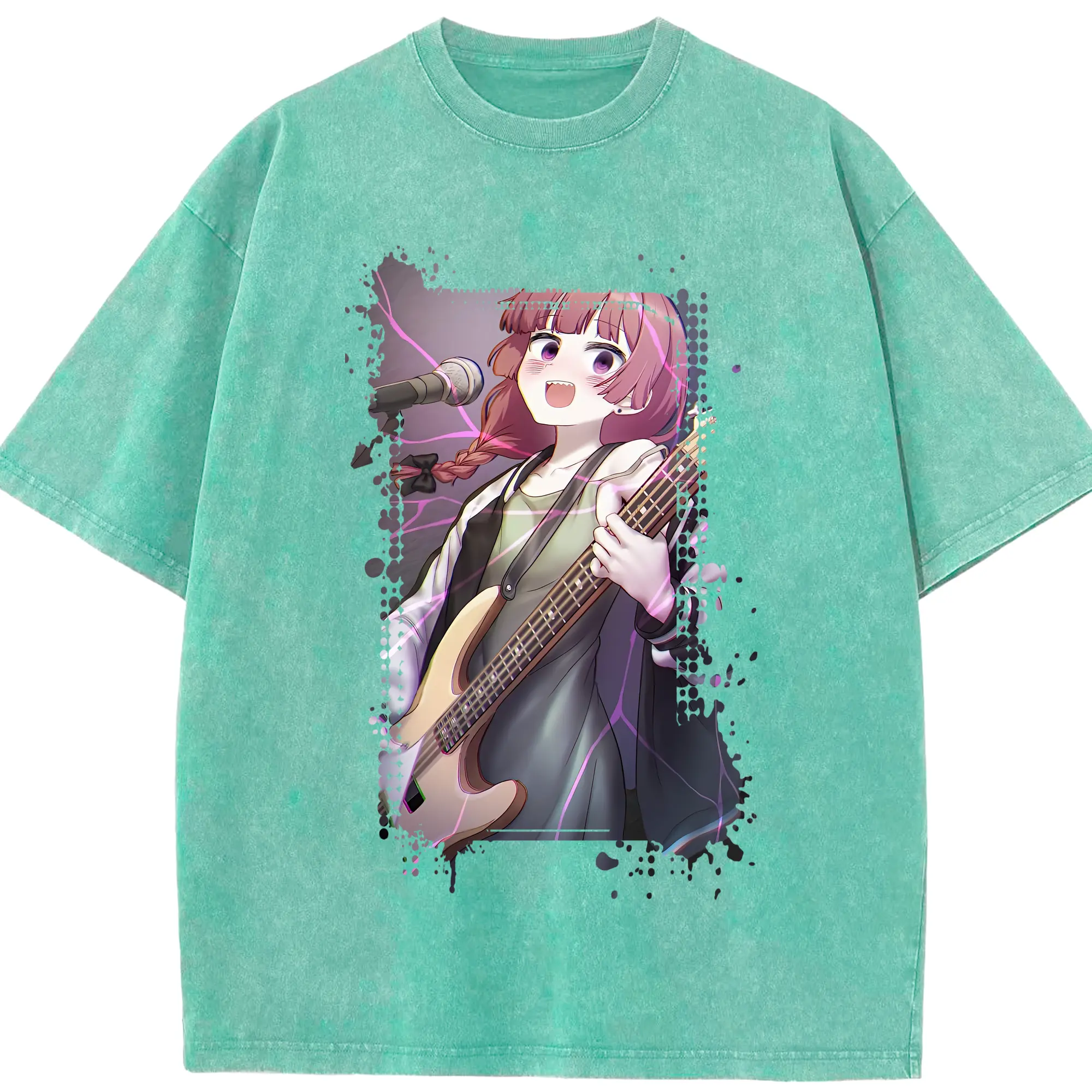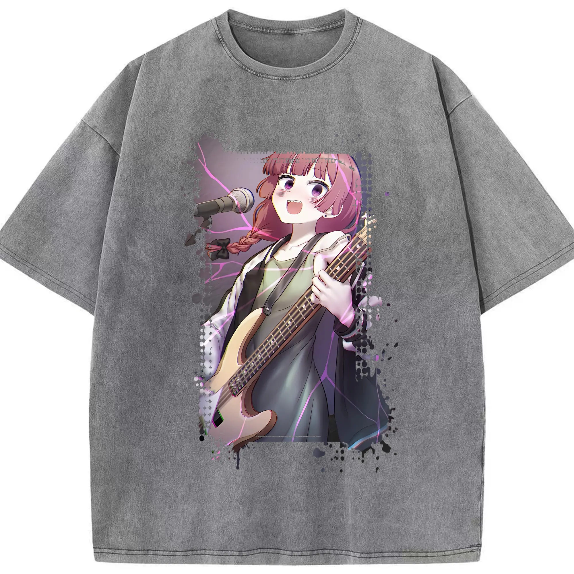 ぼっちざろっく! グッズ,廣井きくり - 綿100% ヴィンテージ風 半袖Tシャツ ・ 背面プリント ・ 柔らか肌触り ・ 通気性 快適 ・ スポーツ カジュアル 外出用