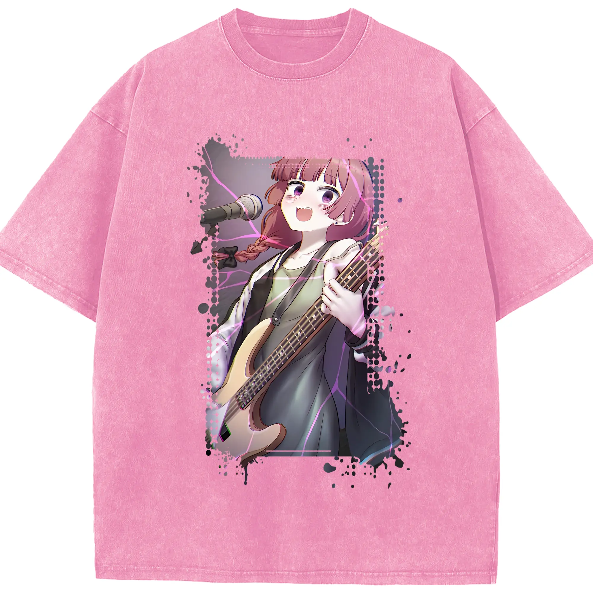 ぼっちざろっく! グッズ,廣井きくり - 綿100% 半袖Tシャツ ・ フロントプリント ・ 快適 通気性 ・ 日常使い 散歩 スポーツ用