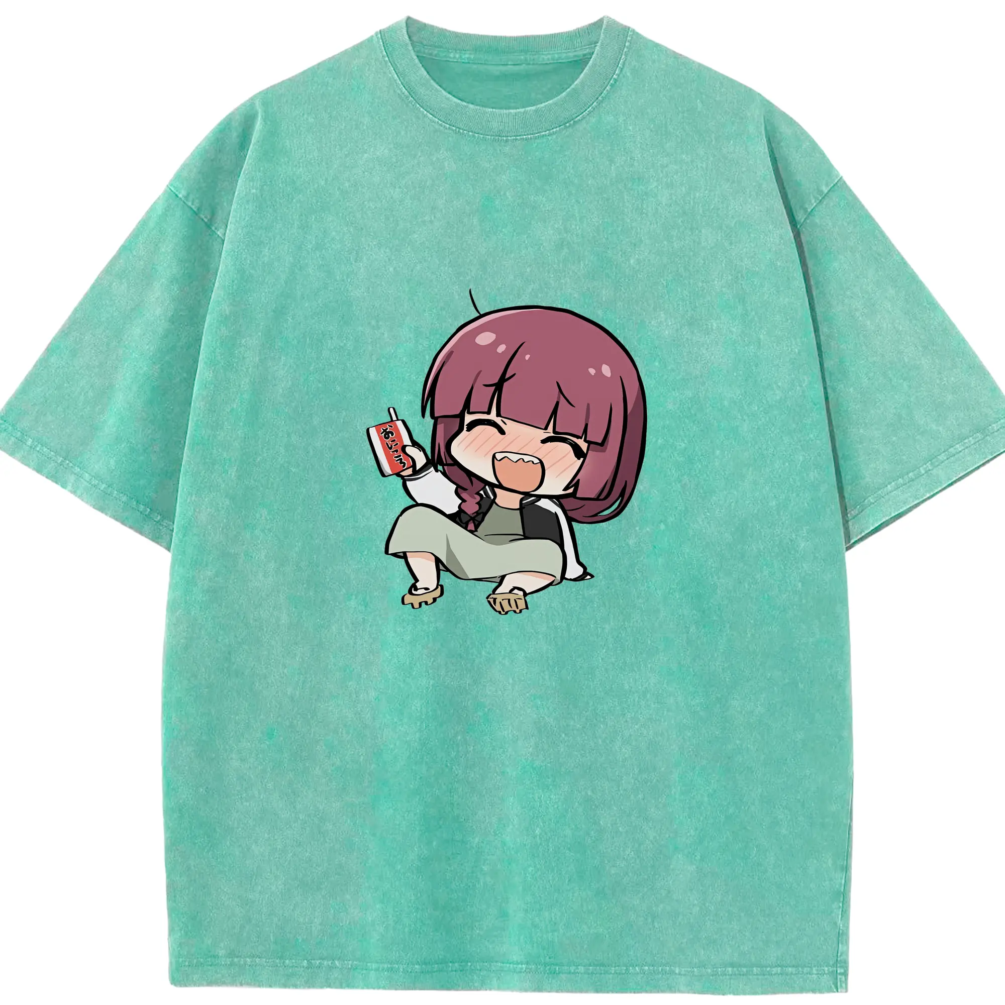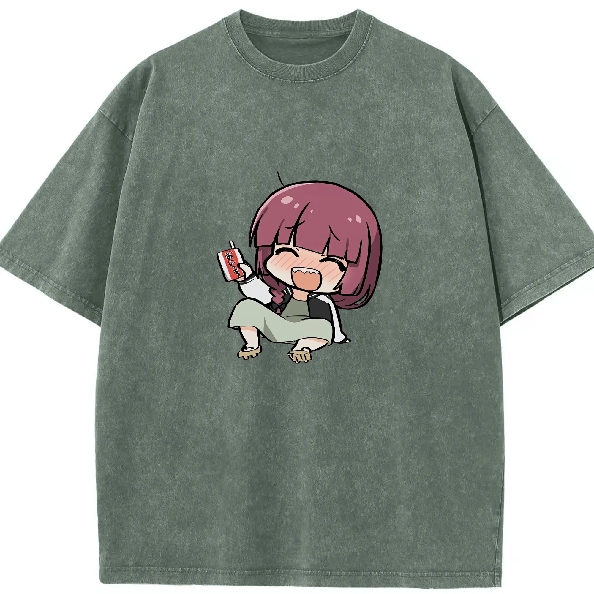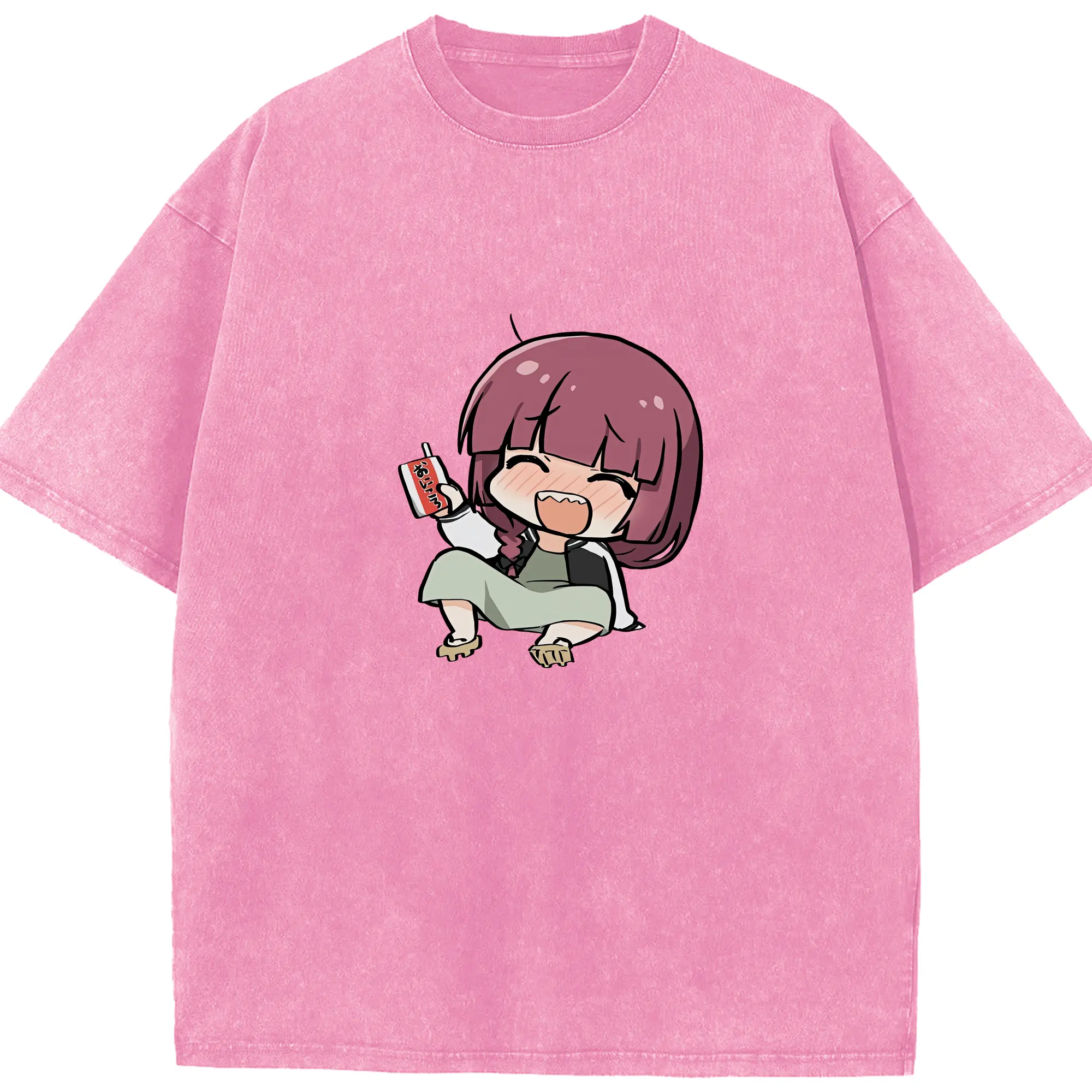 ぼっちざろっく! グッズ,廣井きくり - 綿100% ヴィンテージ風 半袖Tシャツ ・ 背面プリント ・ 柔らか肌触り ・ 通気性 快適 ・ スポーツ カジュアル 外出用