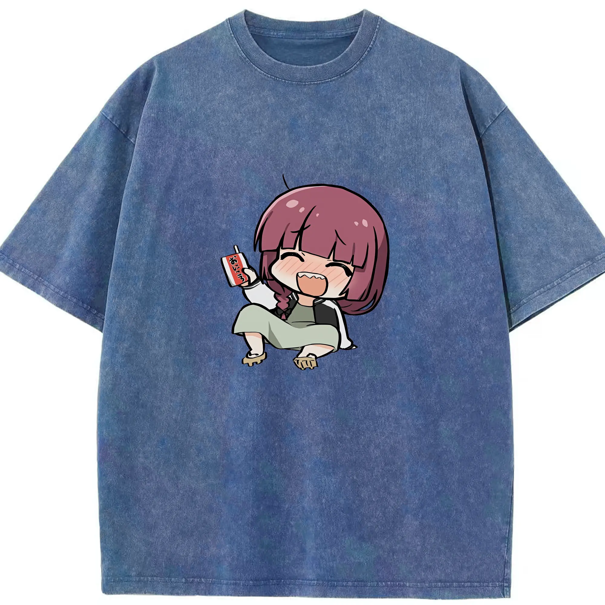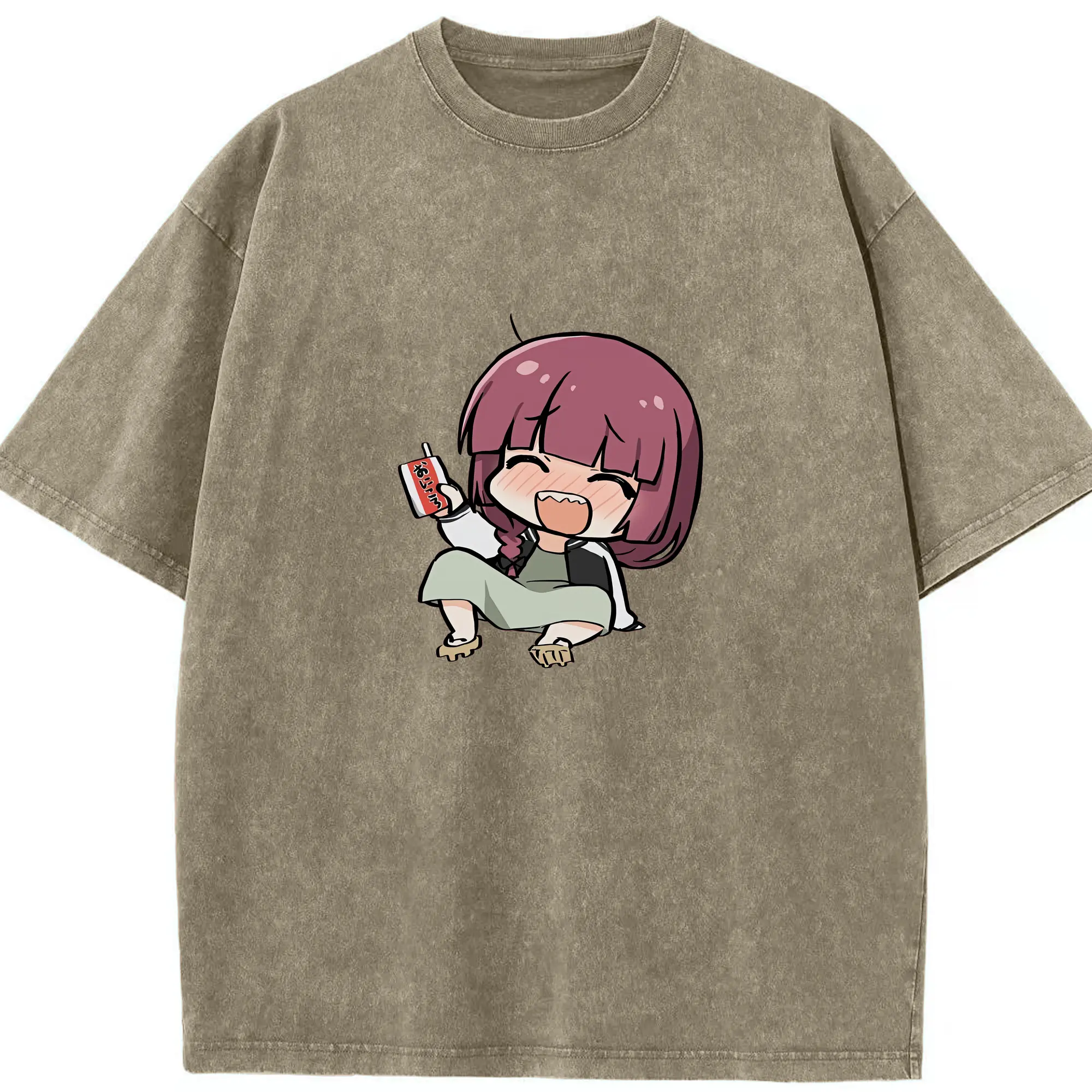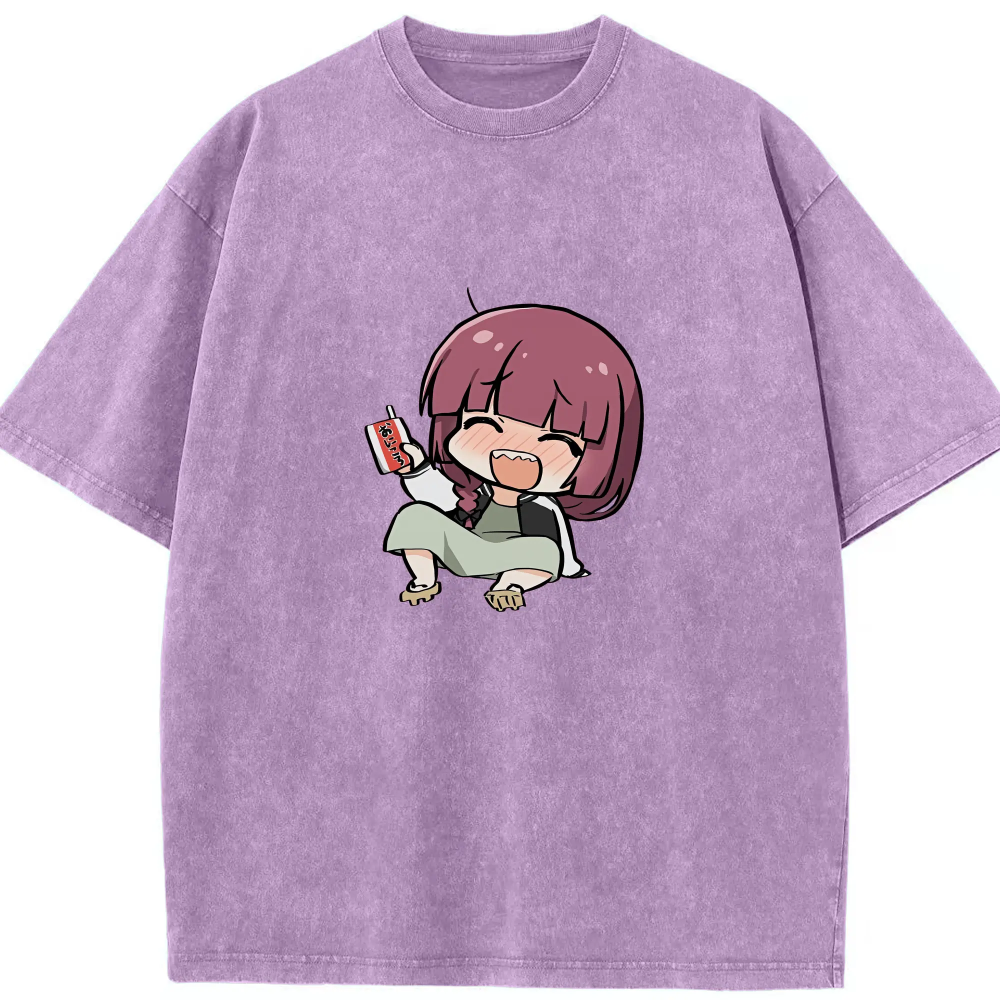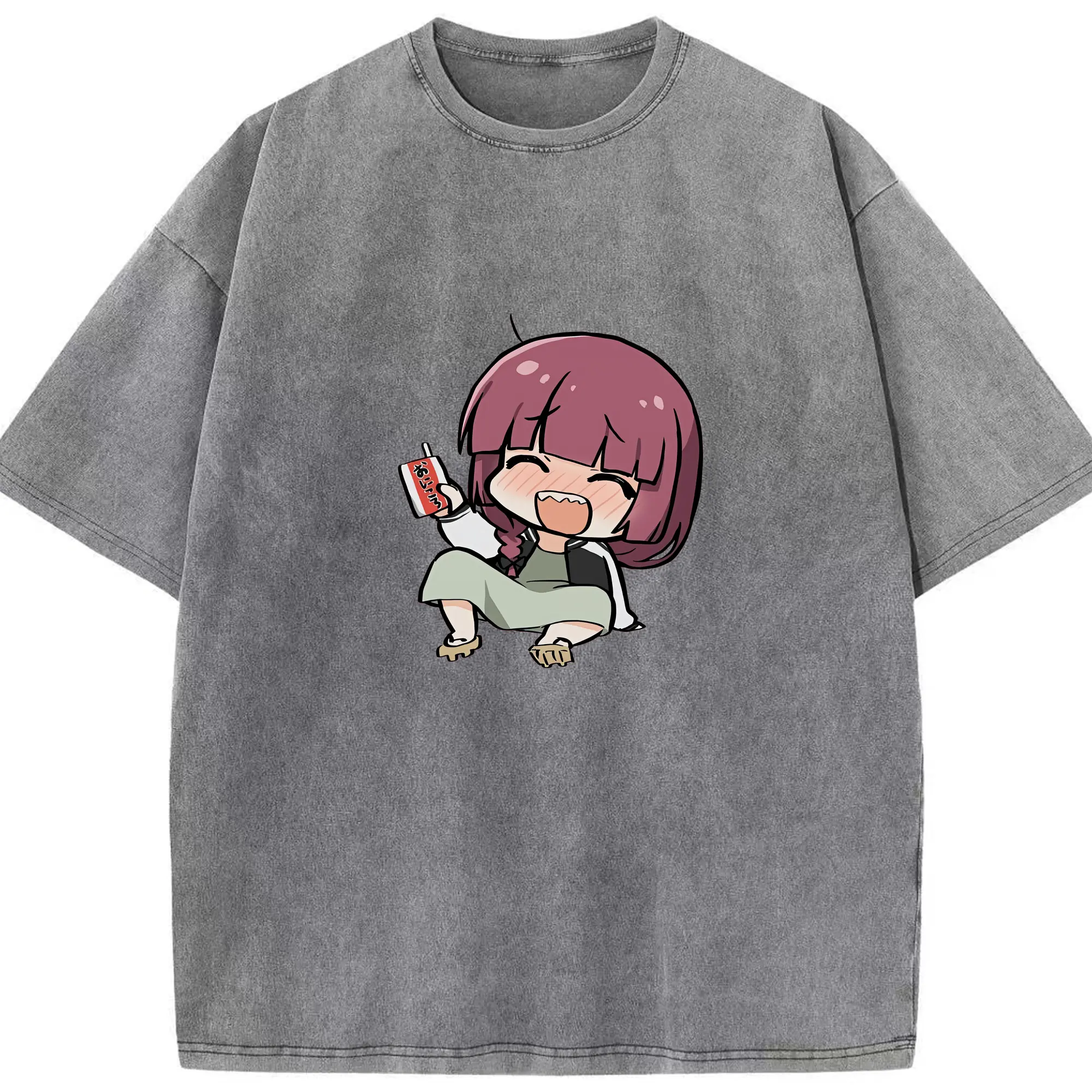 ぼっちざろっく! グッズ,廣井きくり - 綿100% ヴィンテージ風 半袖Tシャツ ・ 背面プリント ・ 柔らか肌触り ・ 通気性 快適 ・ スポーツ カジュアル 外出用