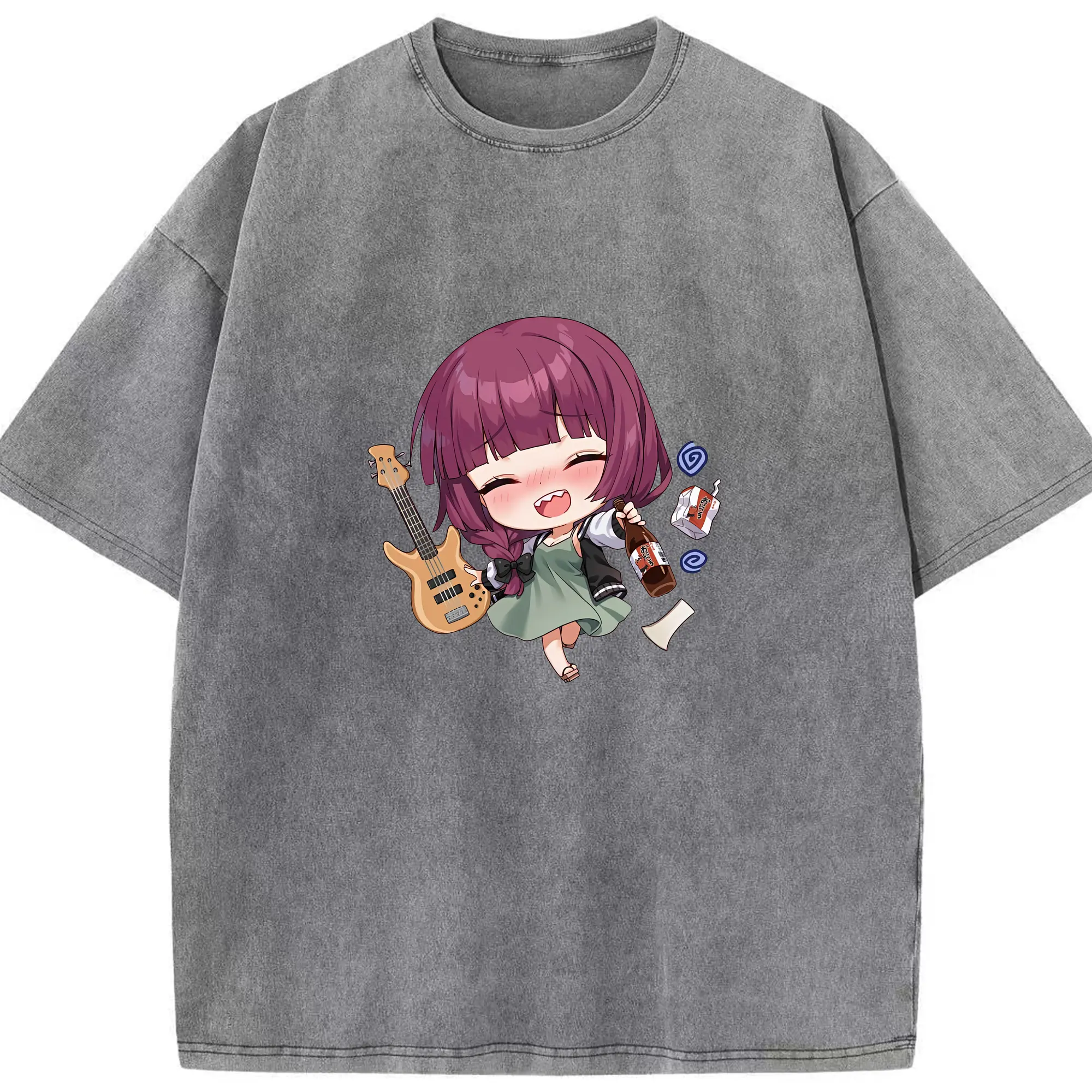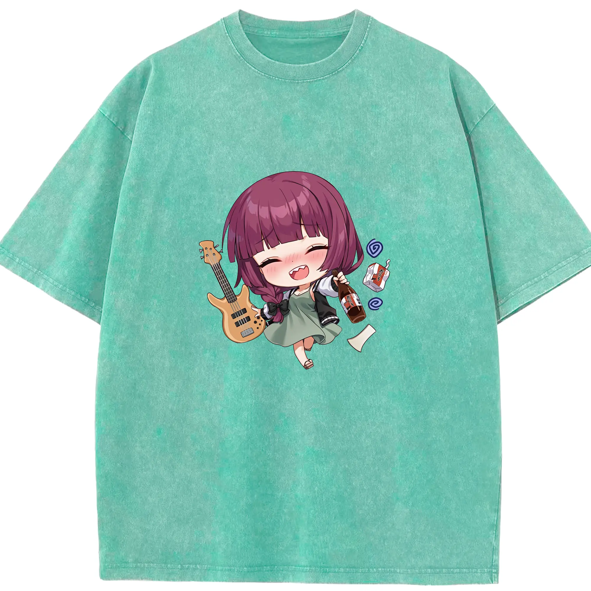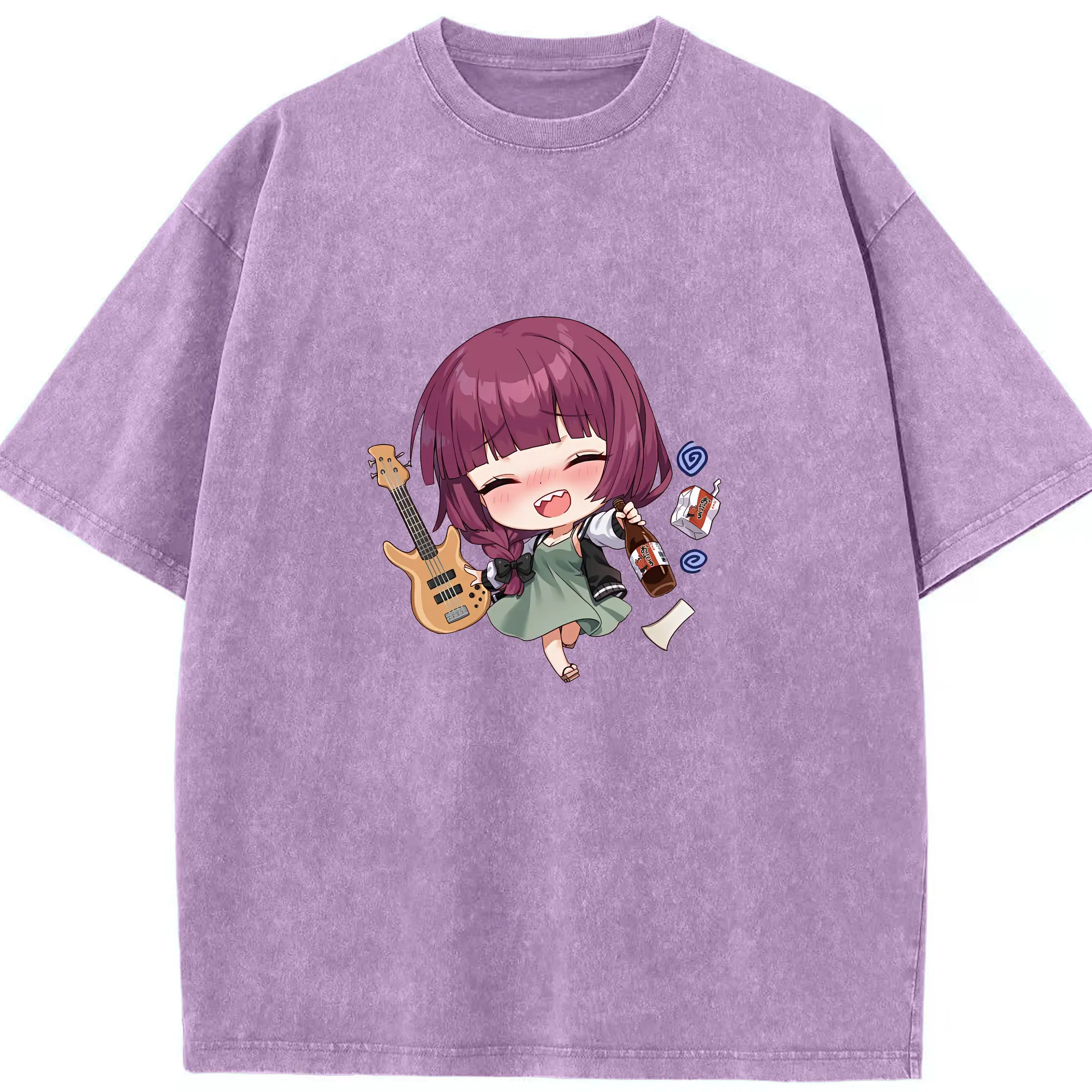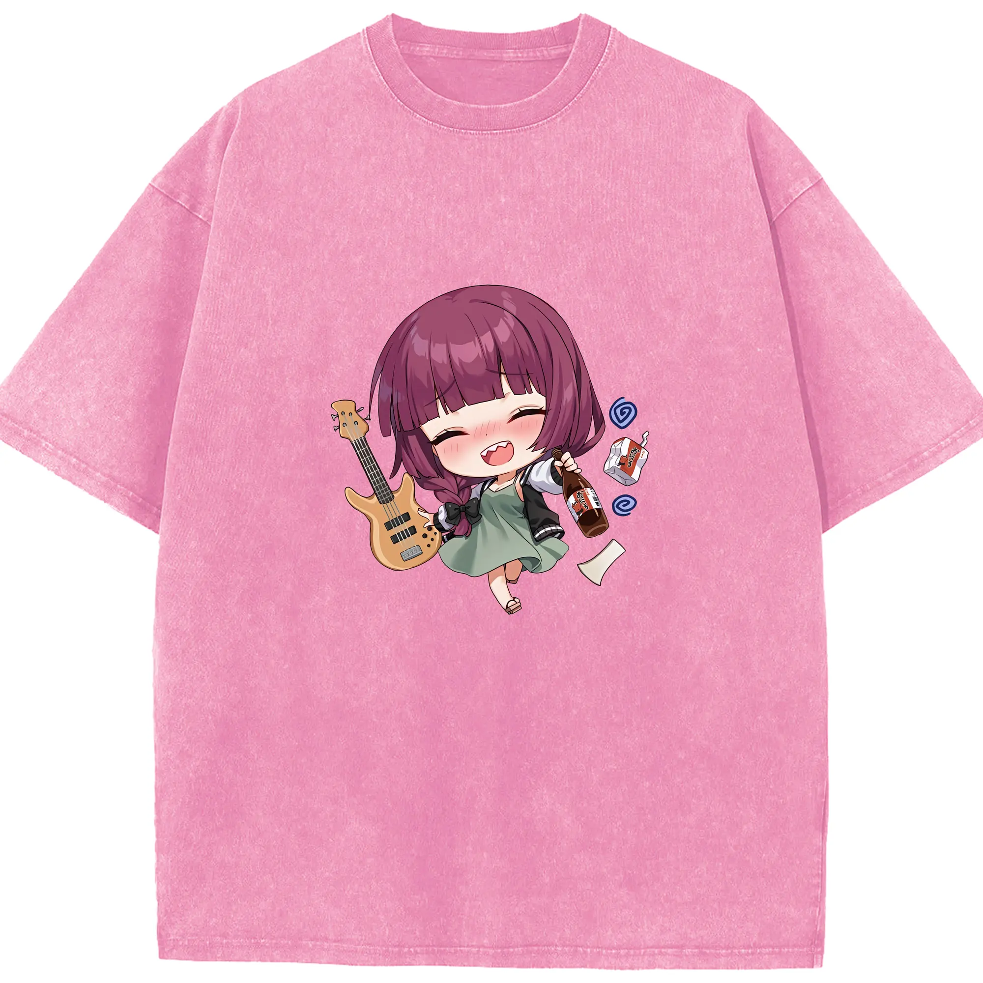 ぼっちざろっく! グッズ,廣井きくり - 綿100% ヴィンテージ風 半袖Tシャツ ・ 背面プリント ・ 柔らか肌触り ・ 通気性 快適 ・ スポーツ カジュアル 外出用