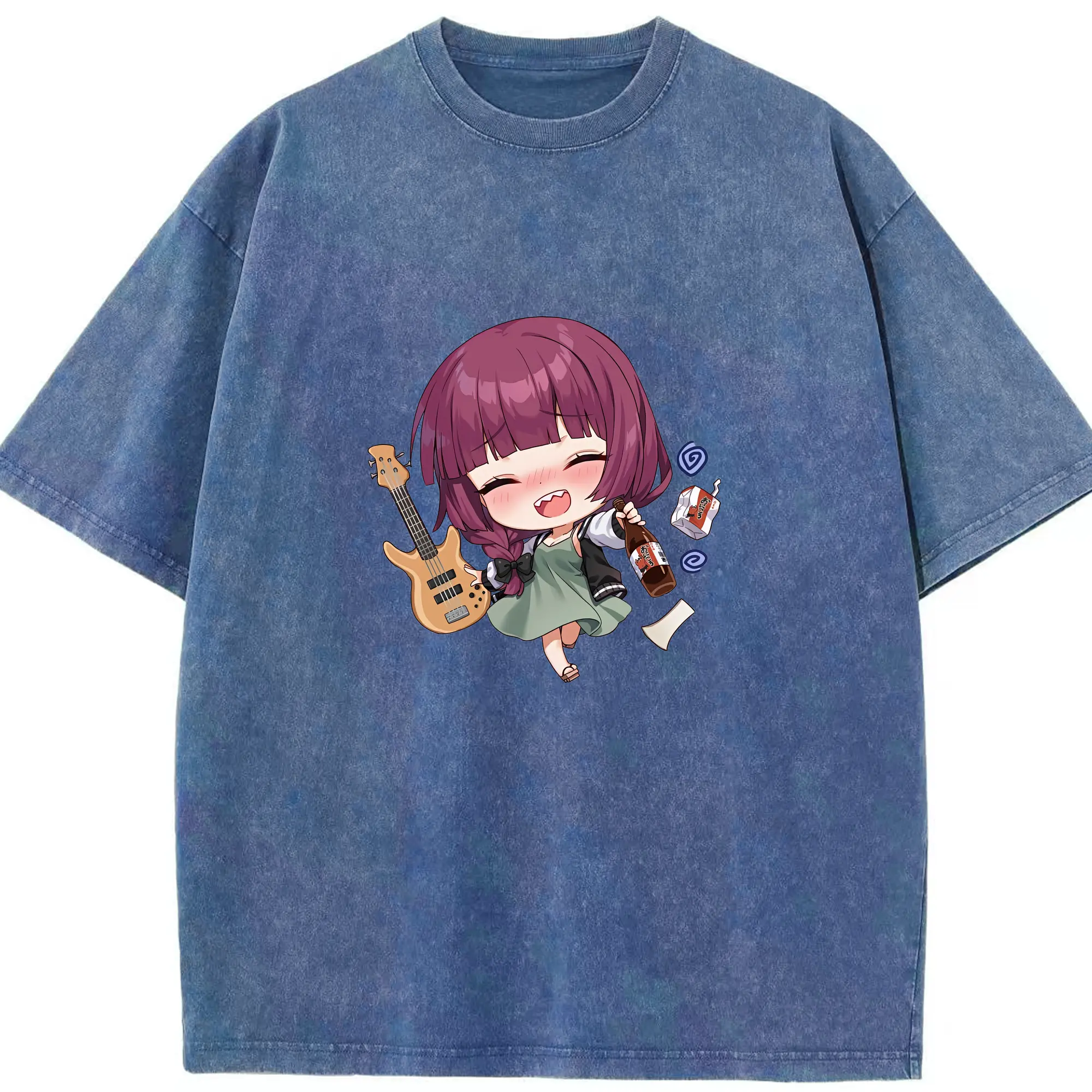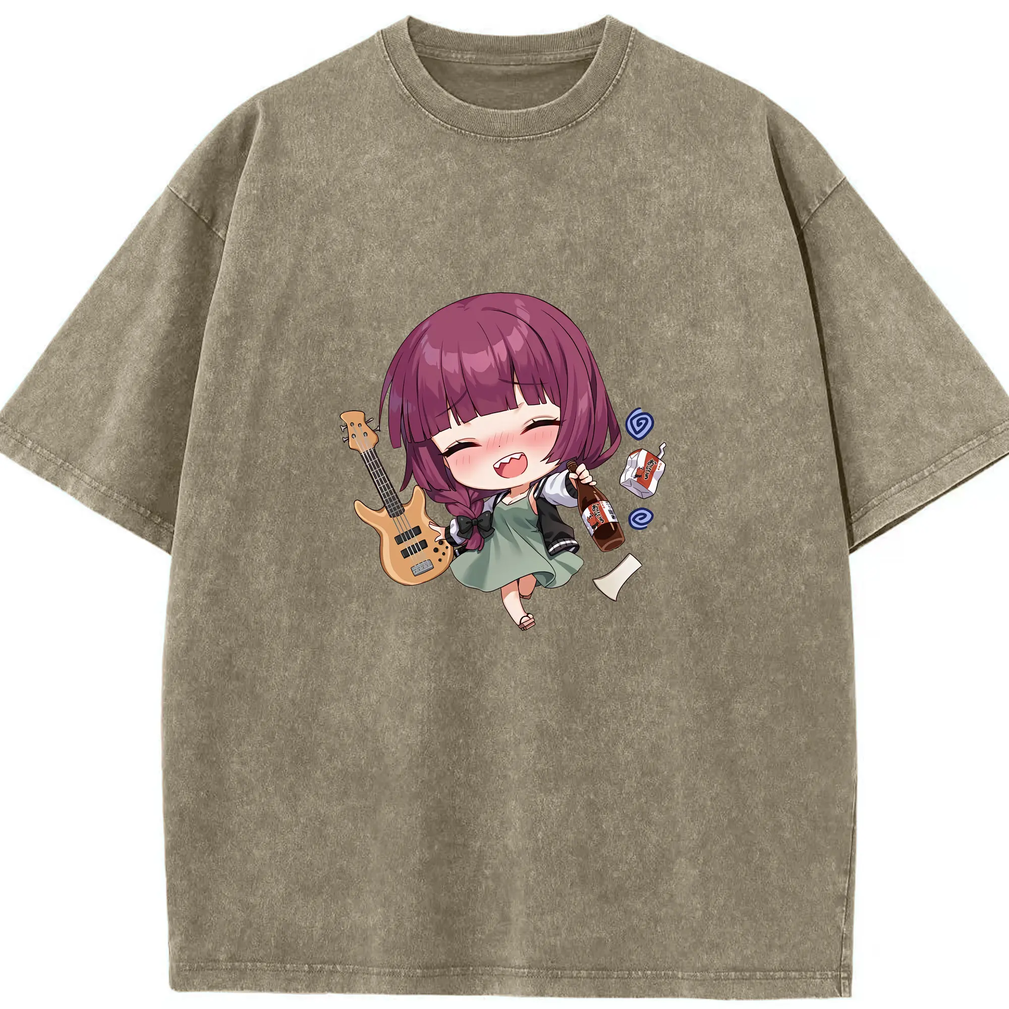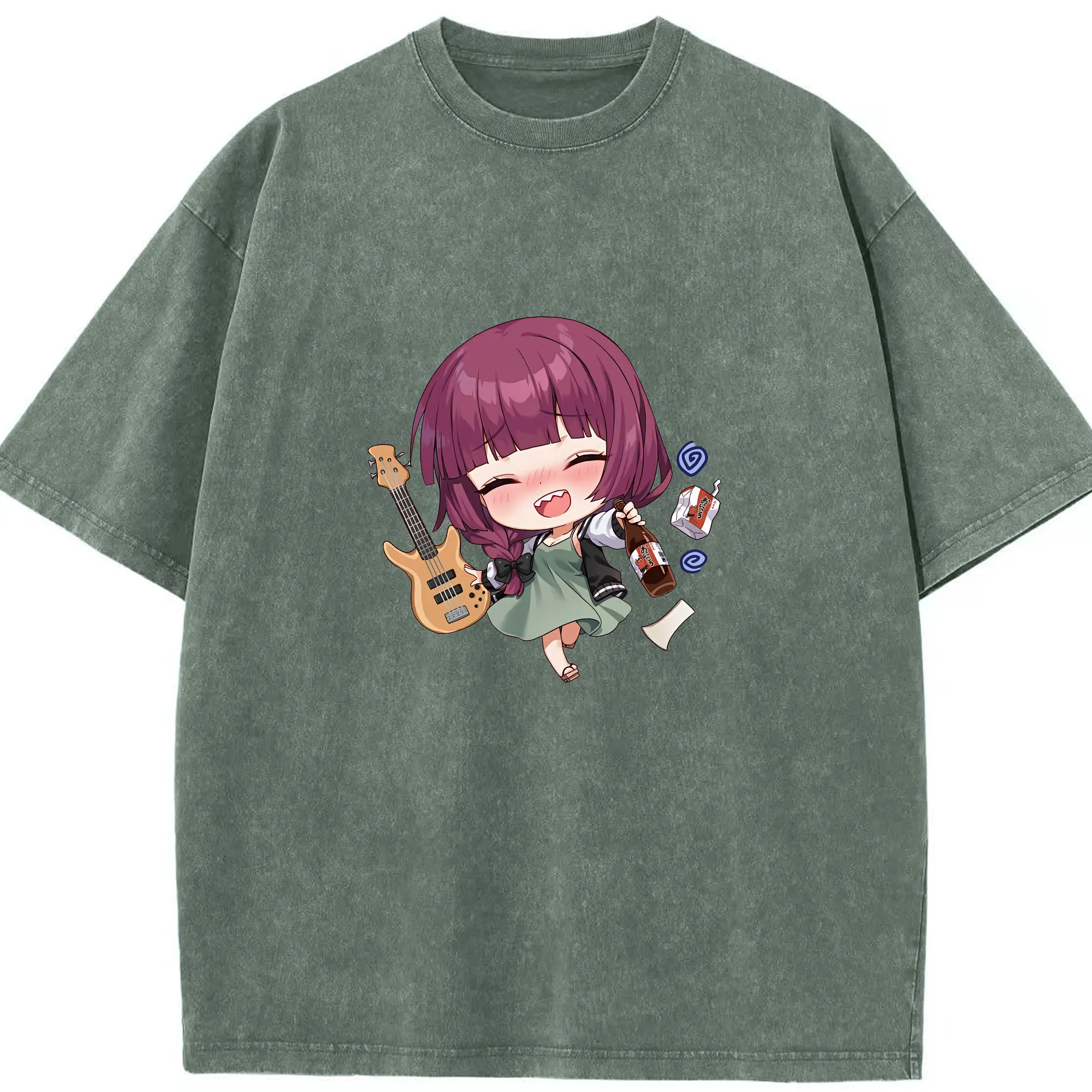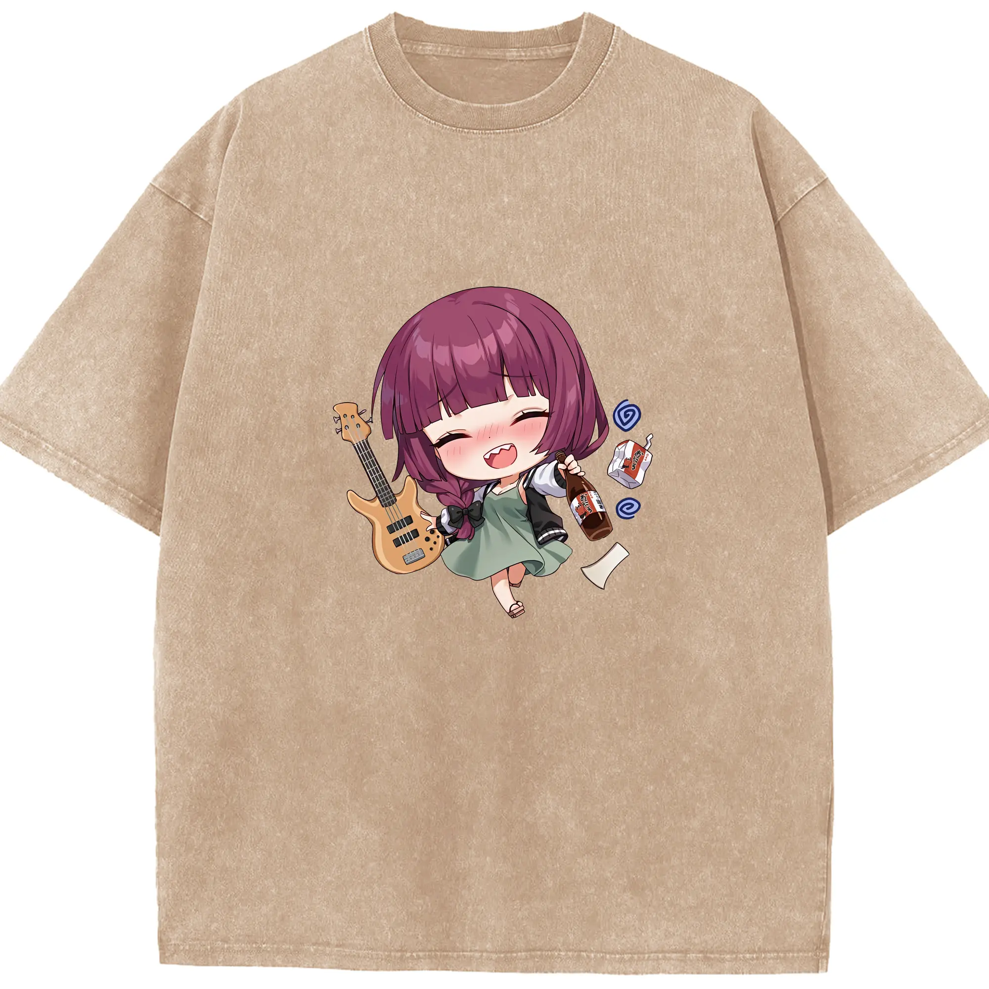 ぼっちざろっく! グッズ,廣井きくり - 綿100% ヴィンテージ風 半袖Tシャツ ・ 背面プリント ・ 柔らか肌触り ・ 通気性 快適 ・ スポーツ カジュアル 外出用