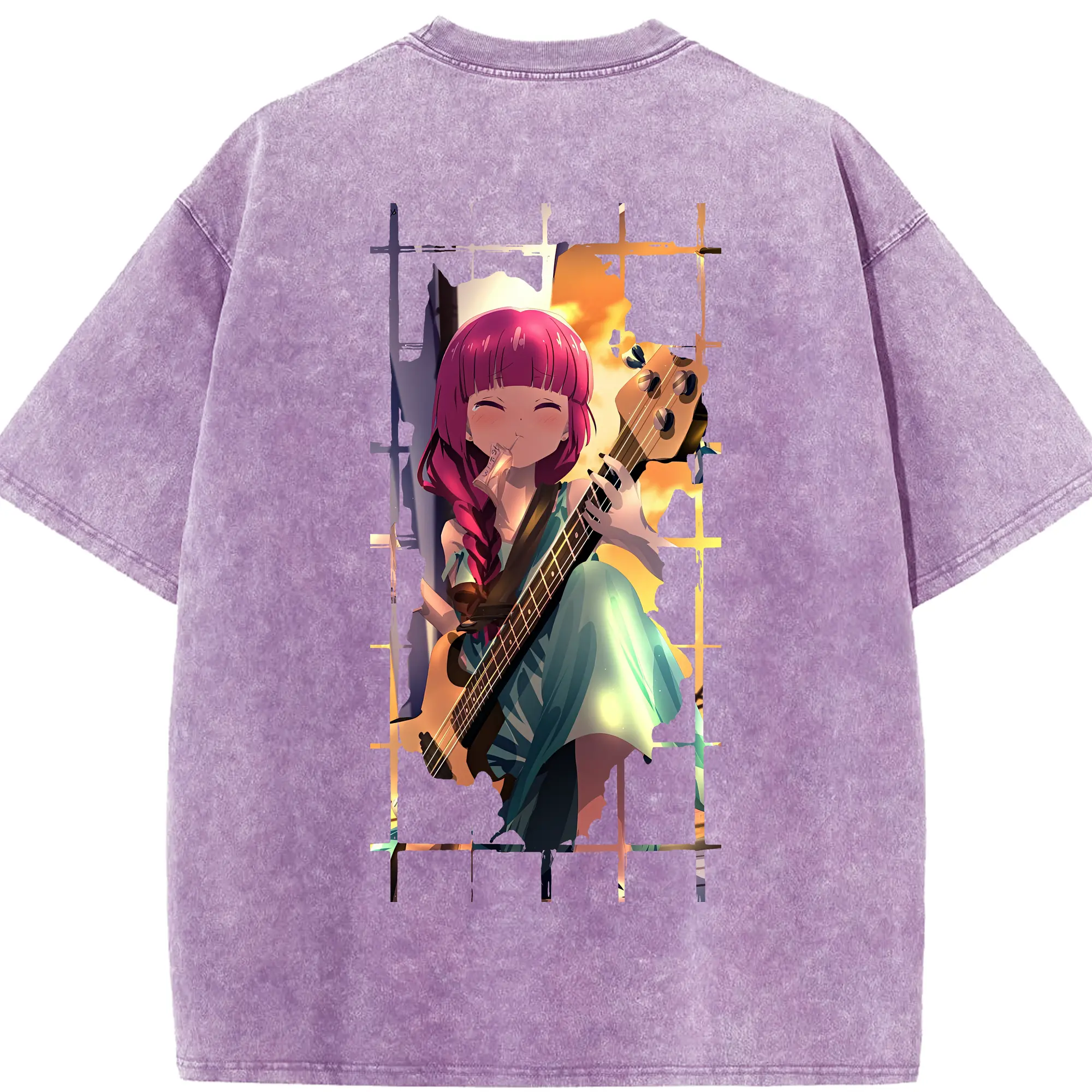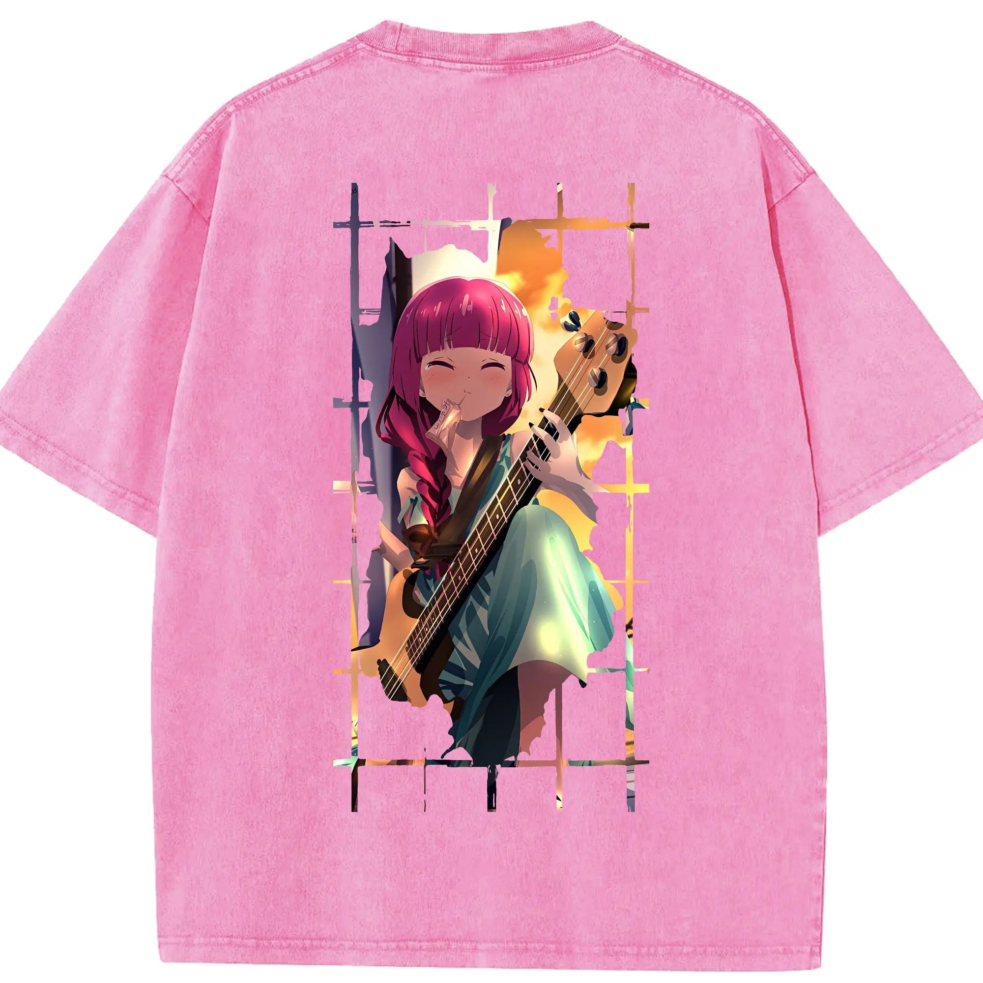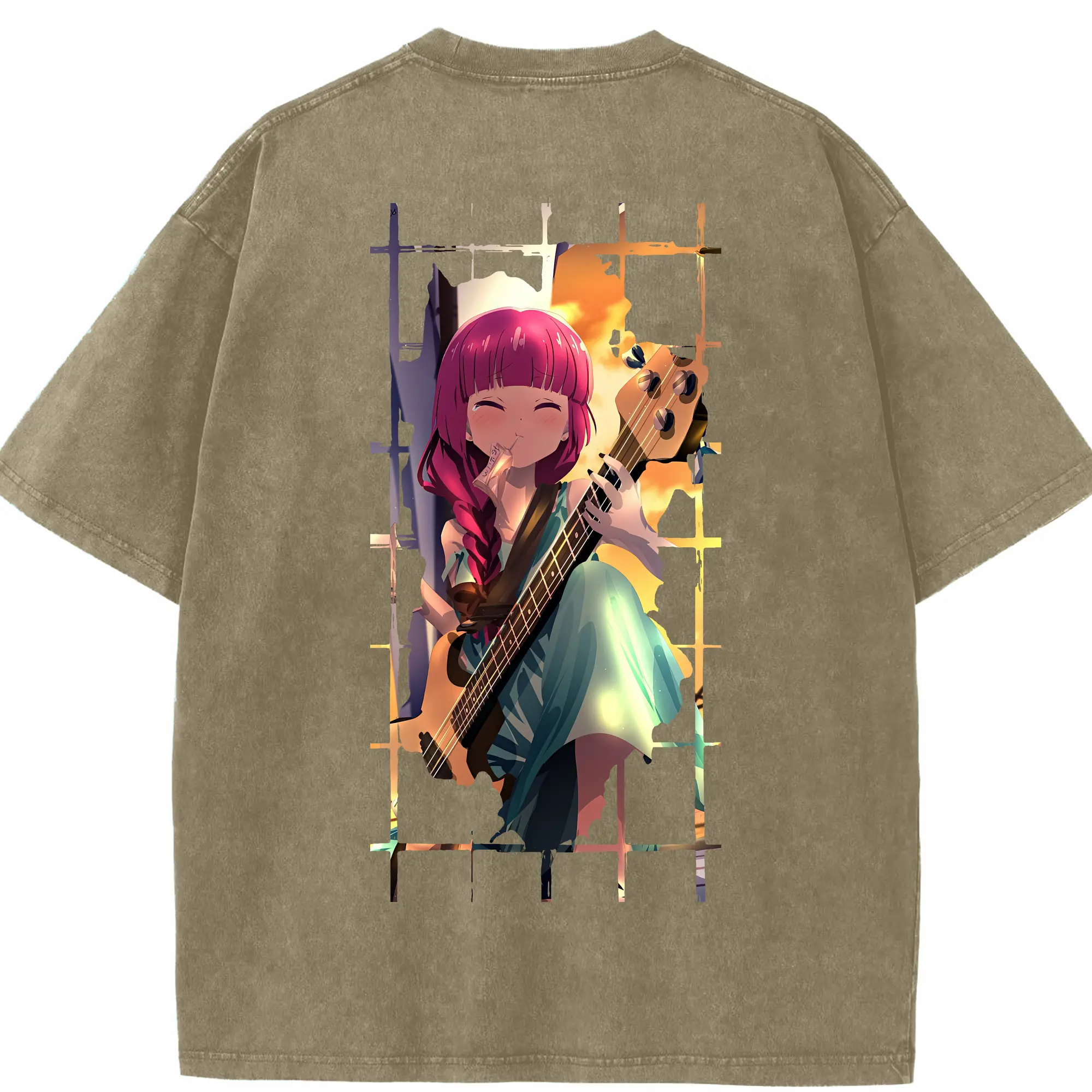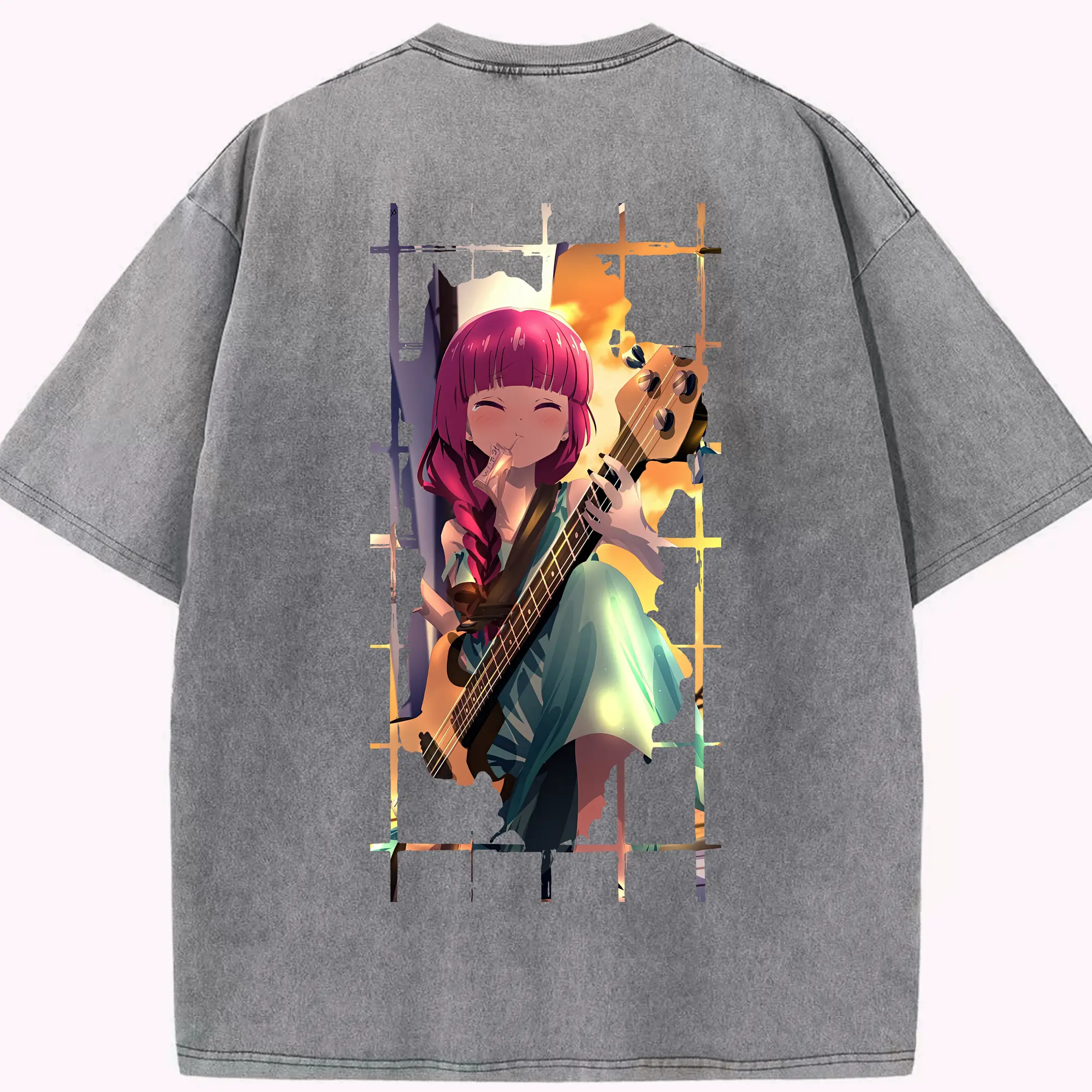 ぼっちざろっく! グッズ,廣井きくり - 綿100% ヴィンテージ風 半袖Tシャツ ・ フロントプリント ・ 柔らか肌触り ・ 通気性 快適 ・ スポーツ カジュアル 外出用