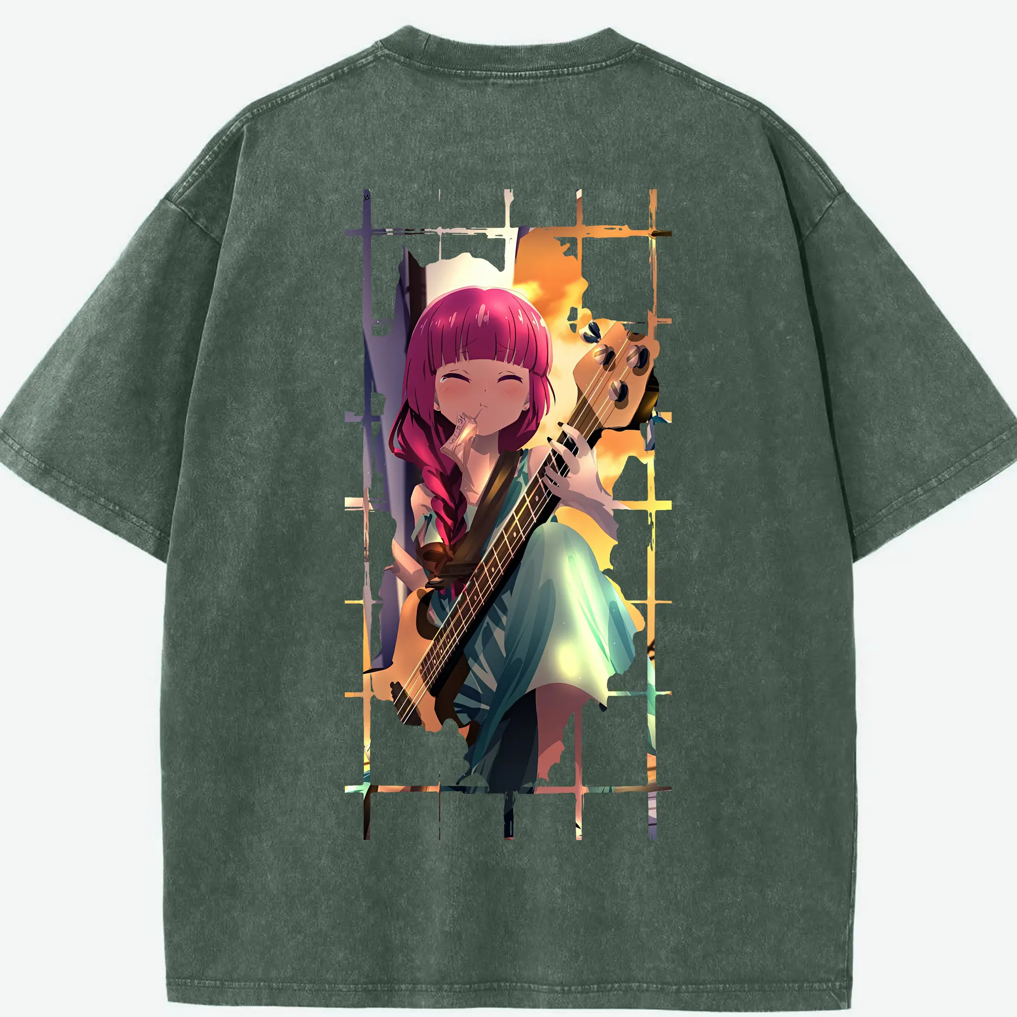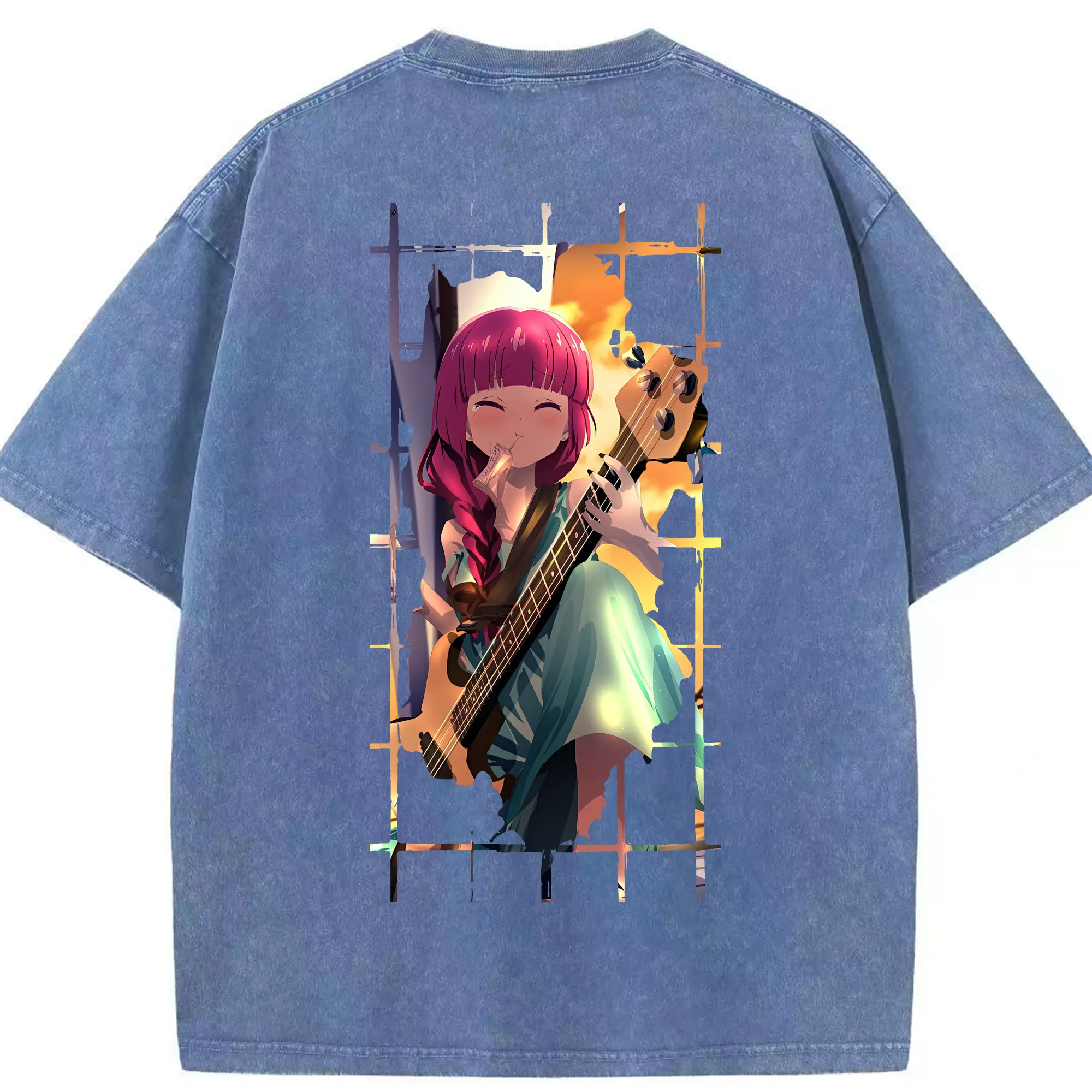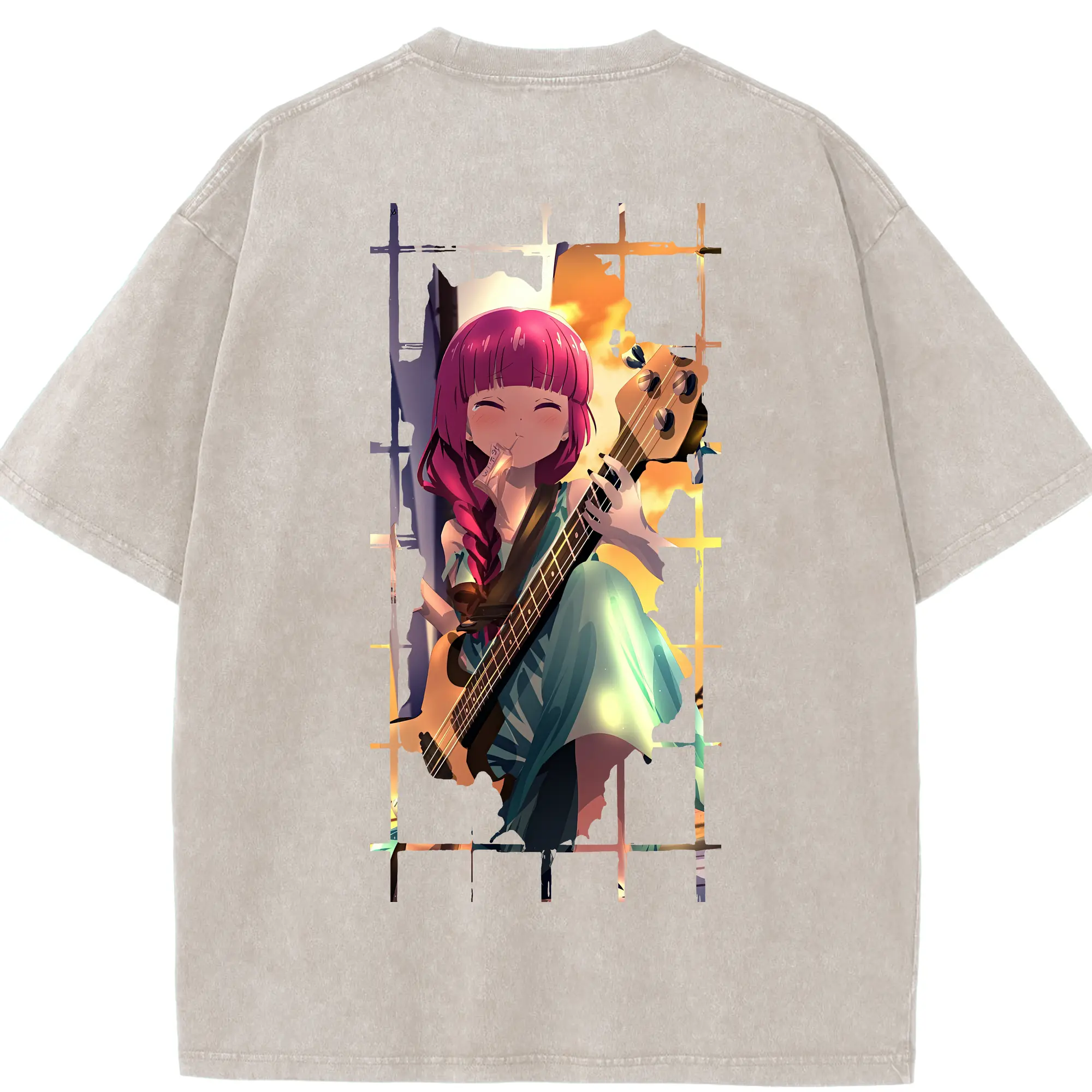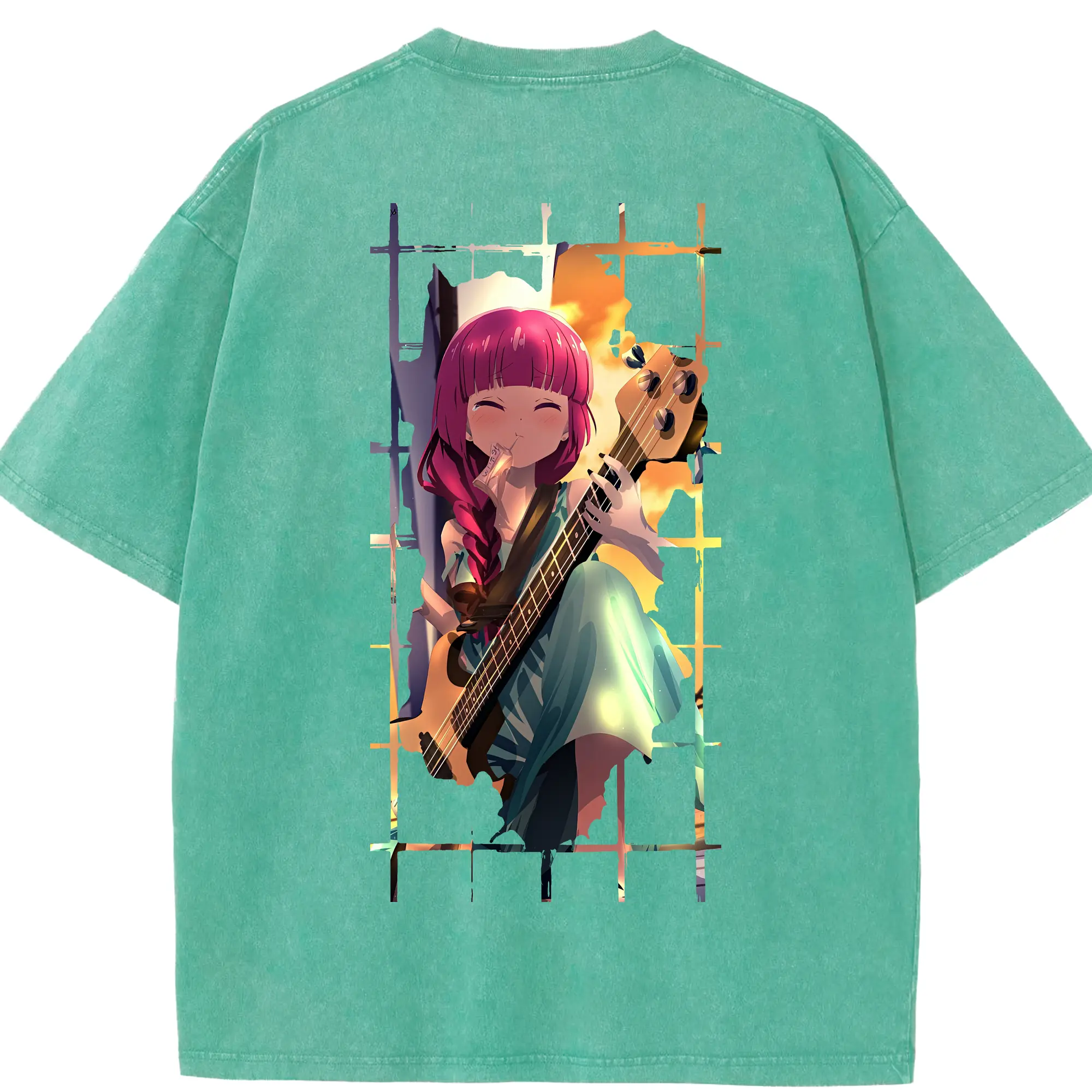 ぼっちざろっく! グッズ,廣井きくり - 綿100% ヴィンテージ風 半袖Tシャツ ・ フロントプリント ・ 柔らか肌触り ・ 通気性 快適 ・ スポーツ カジュアル 外出用