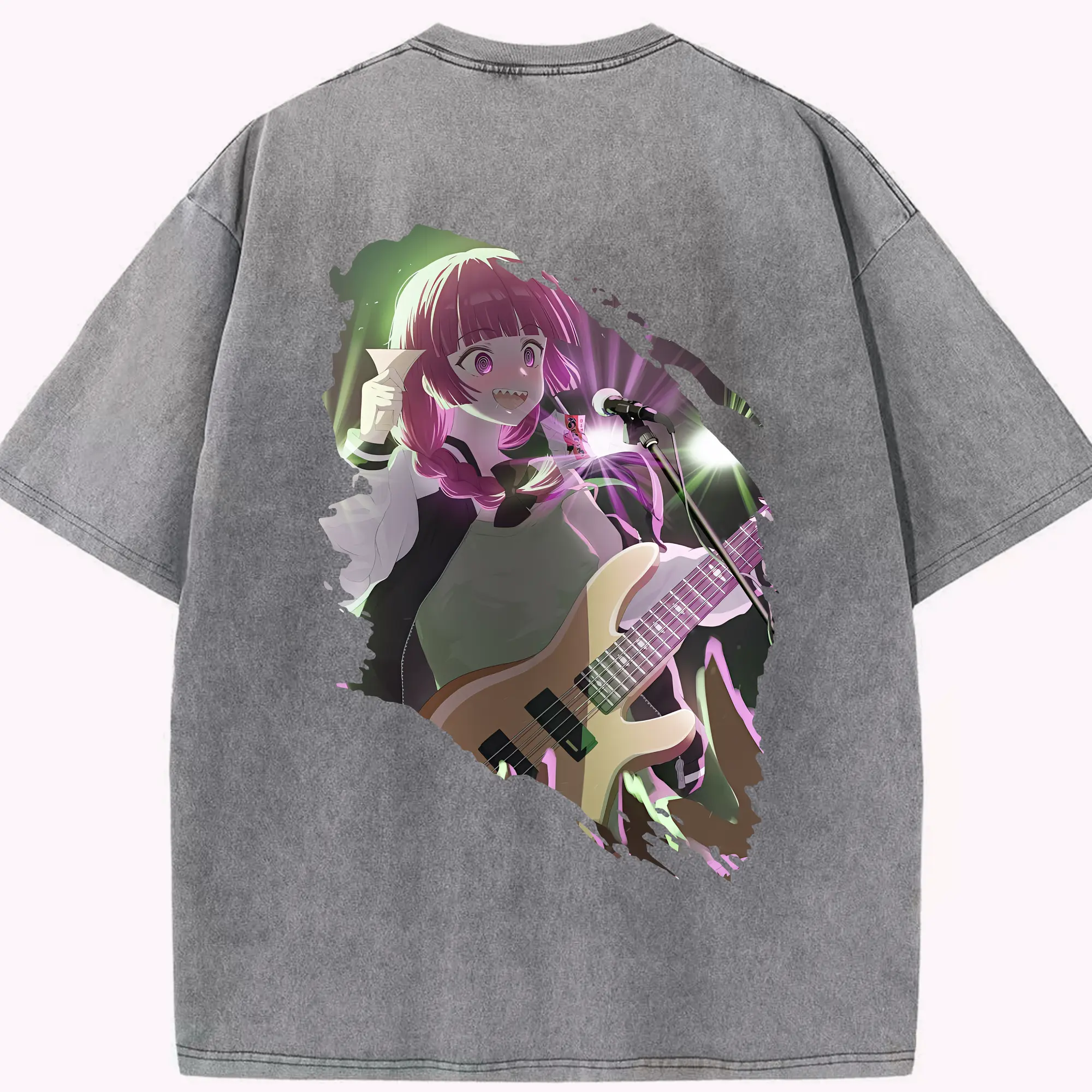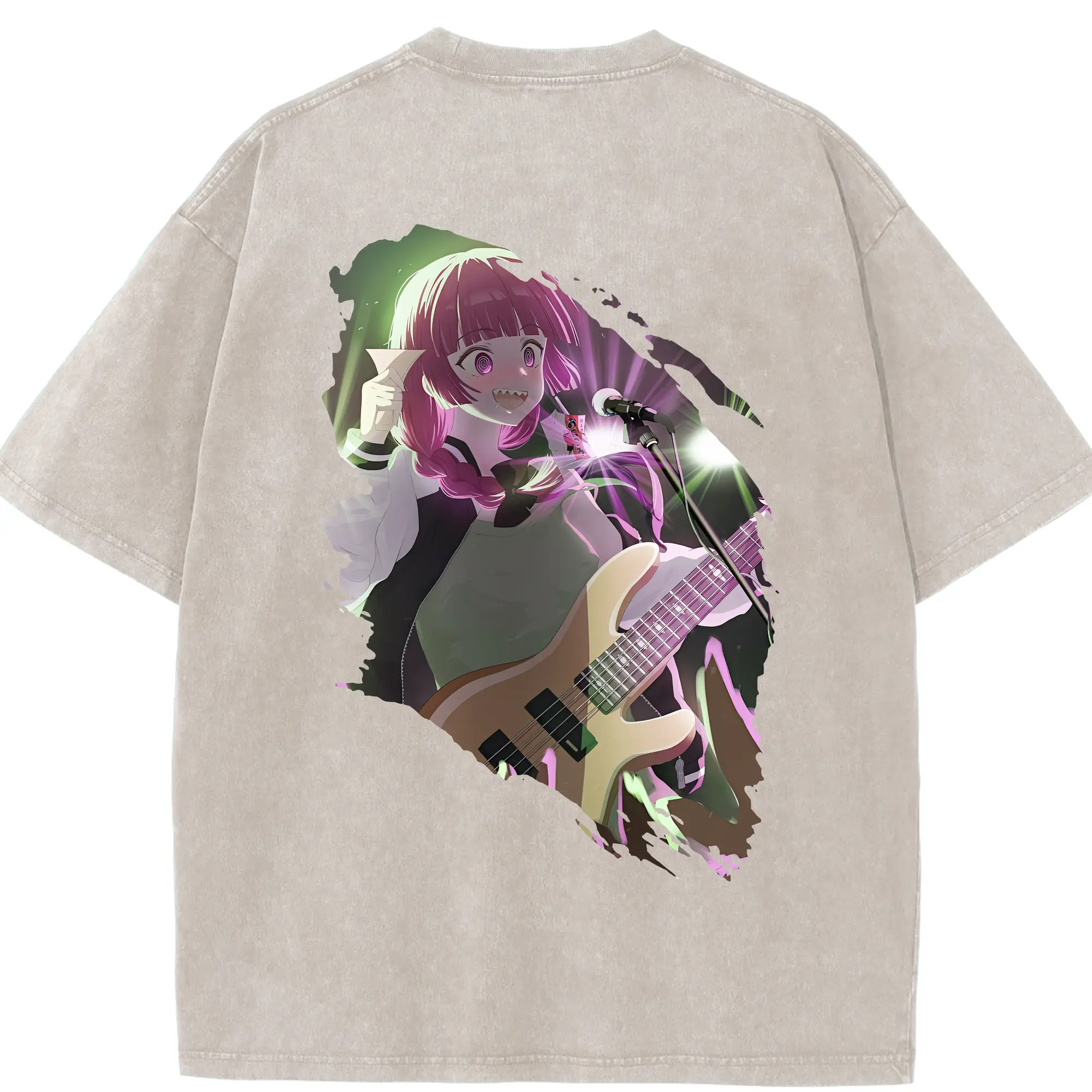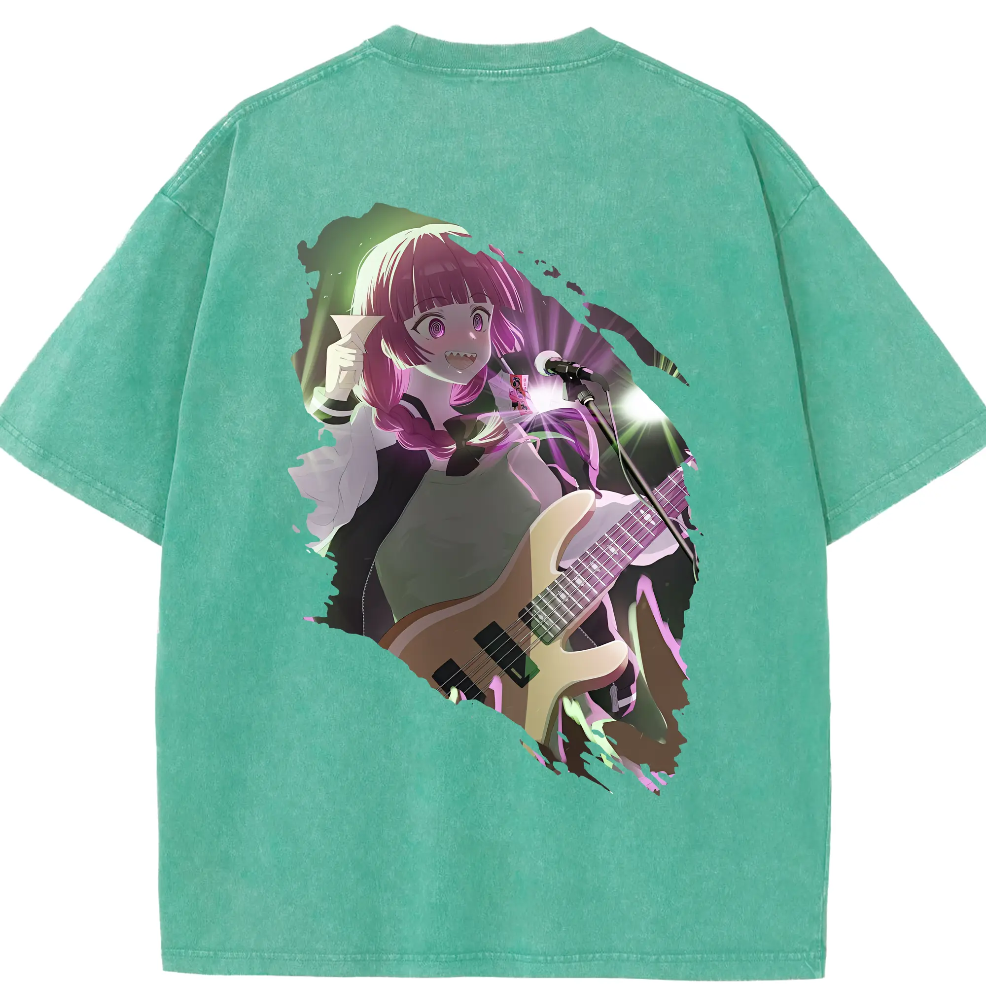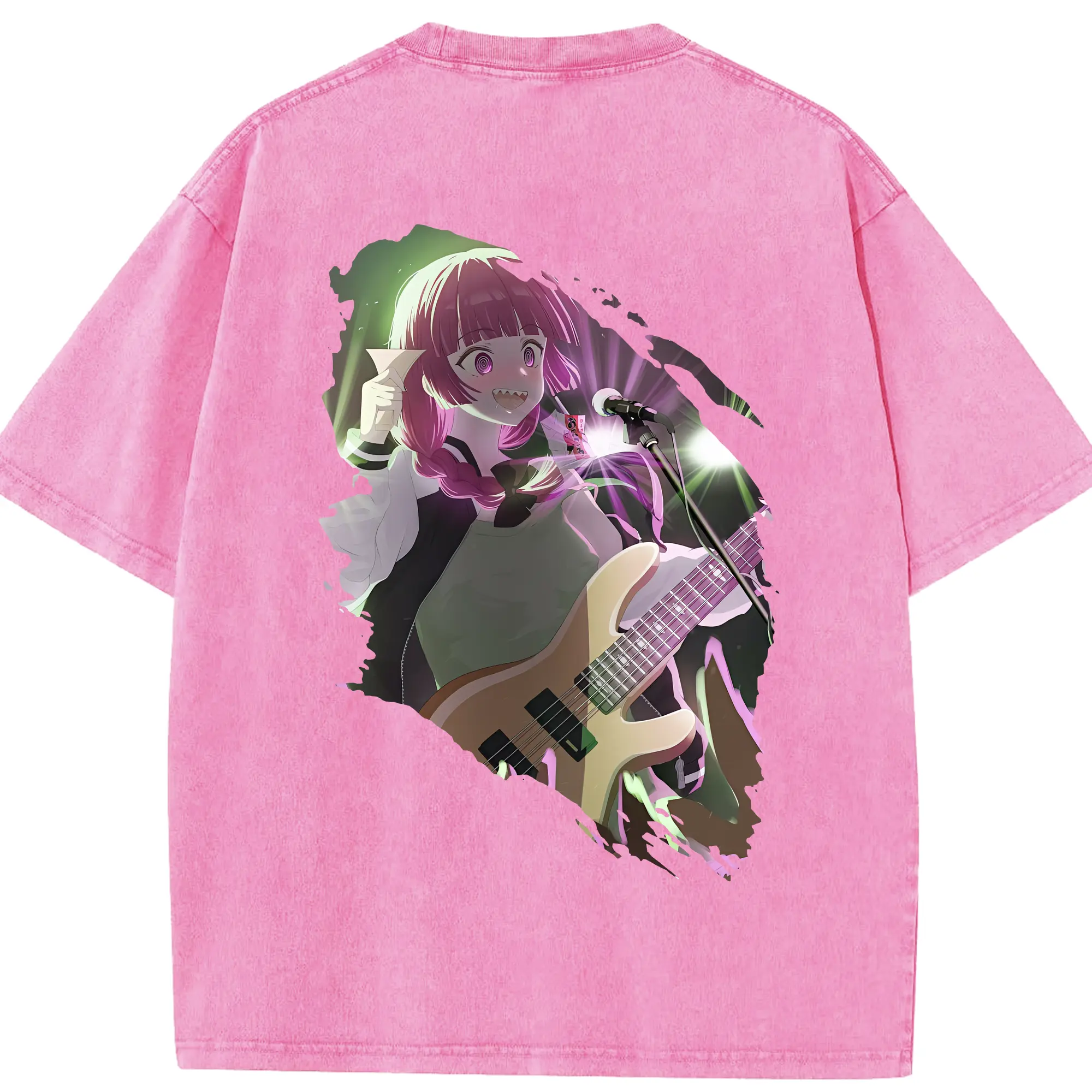 ぼっちざろっく! グッズ,廣井きくり - 綿100% ヴィンテージ風 半袖Tシャツ ・ フロントプリント ・ 柔らか肌触り ・ 通気性 快適 ・ スポーツ カジュアル 外出用