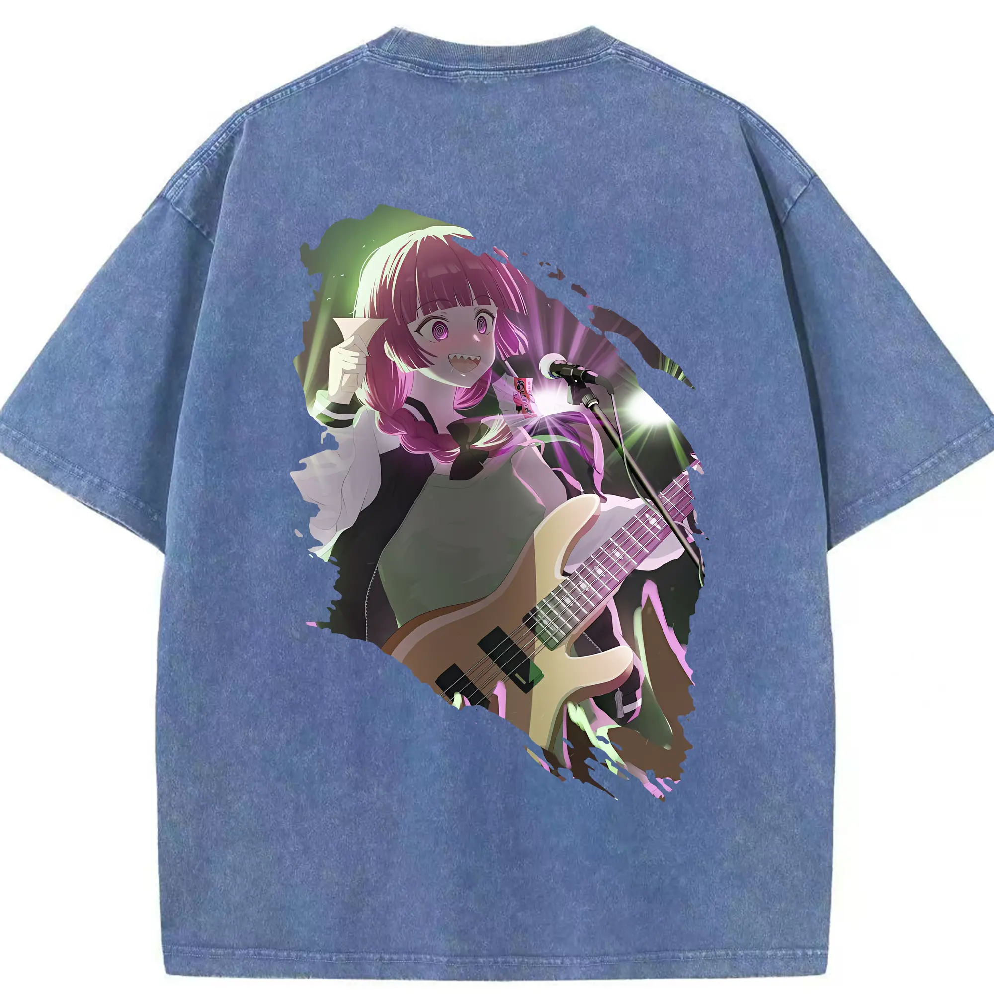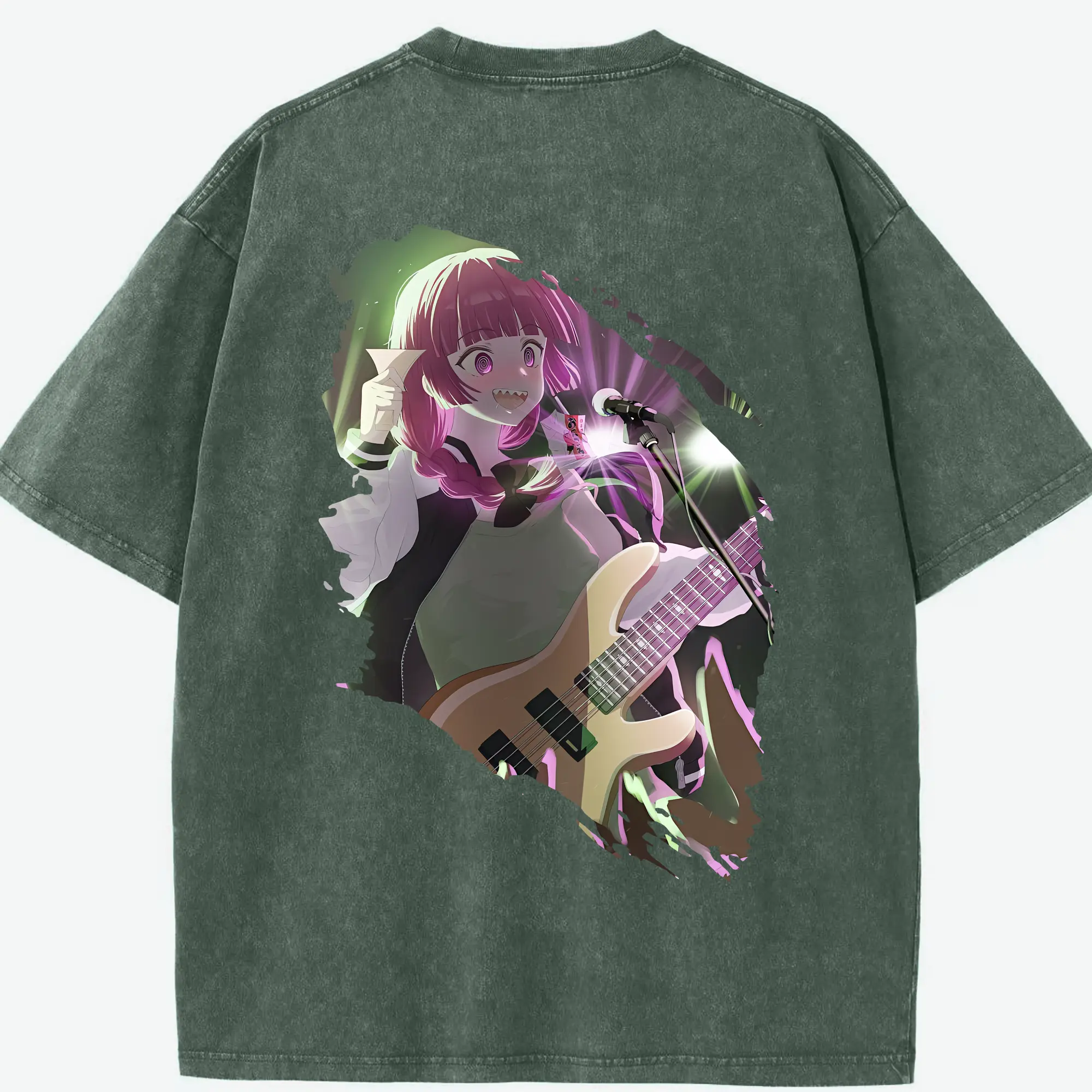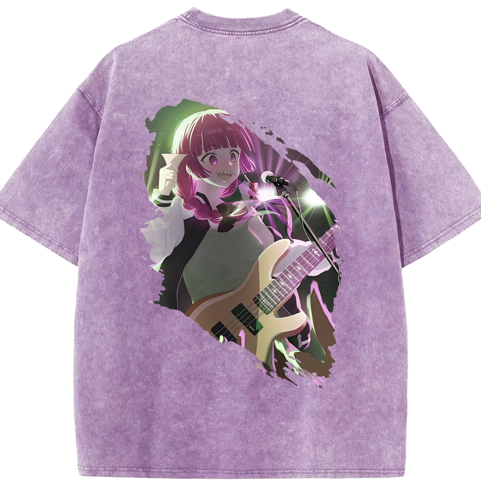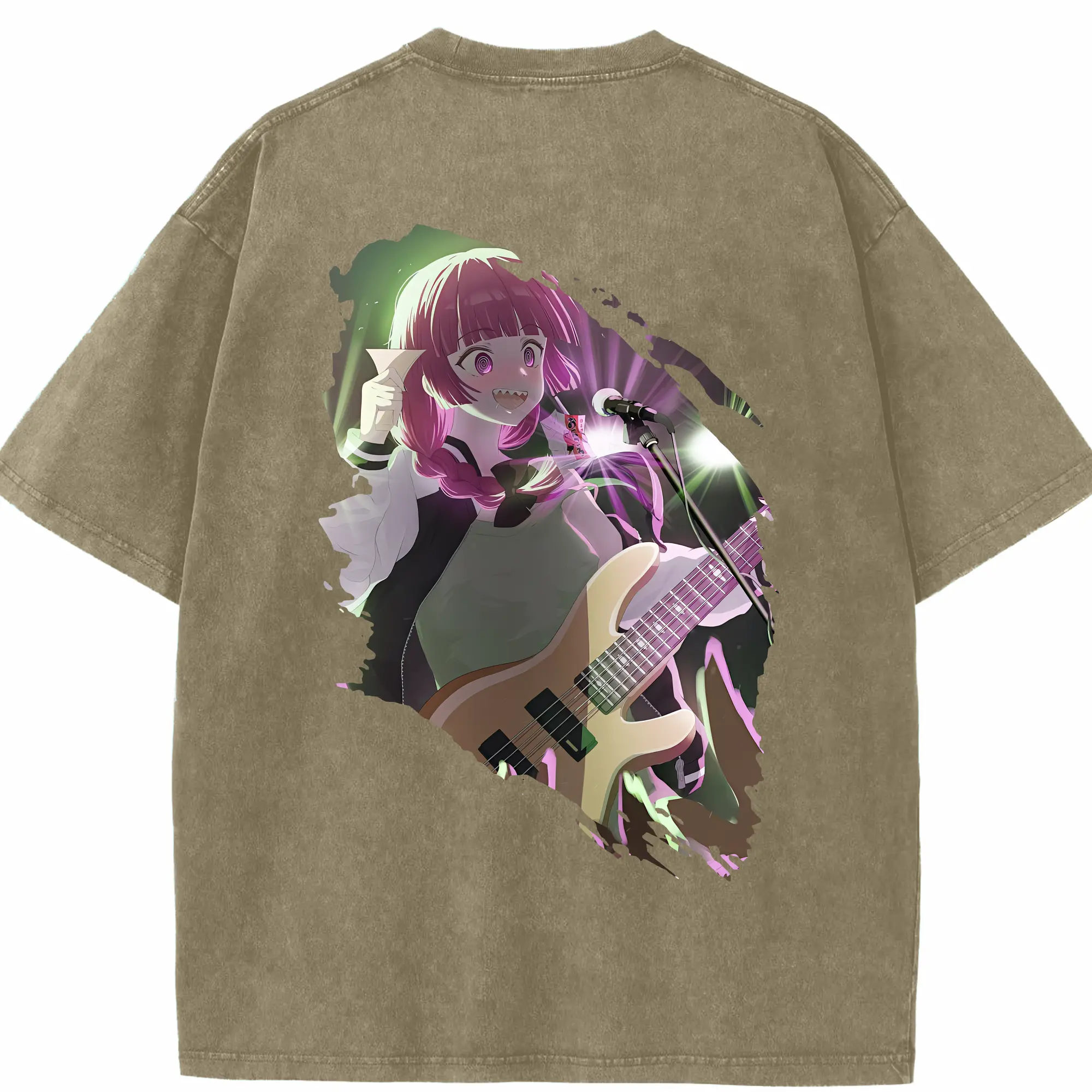 ぼっちざろっく! グッズ,廣井きくり - 綿100% ヴィンテージ風 半袖Tシャツ ・ フロントプリント ・ 柔らか肌触り ・ 通気性 快適 ・ スポーツ カジュアル 外出用