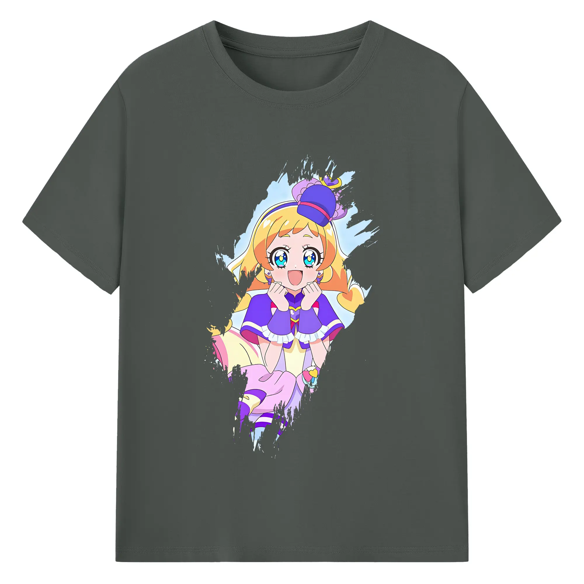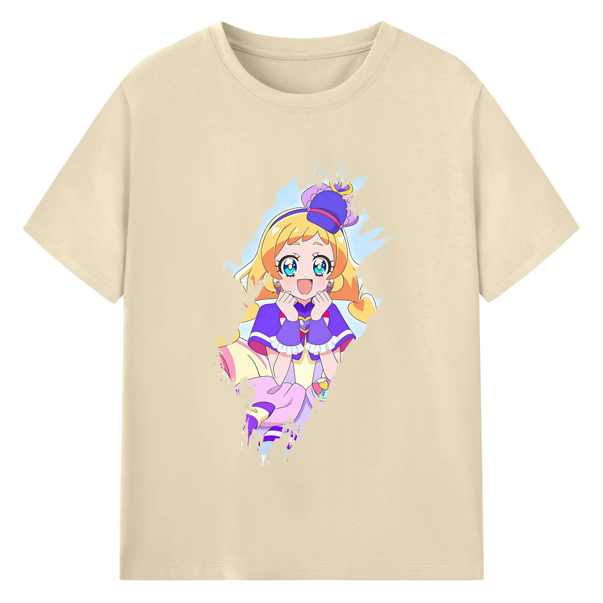 わんだふるぷりきゅあ グッズ 犬飼いろは - 綿100% ヴィンテージ風 半袖Tシャツ ・ フロントプリント ・ 柔らか肌触り ・ 通気性 快適 ・ スポーツ カジュアル 外出用