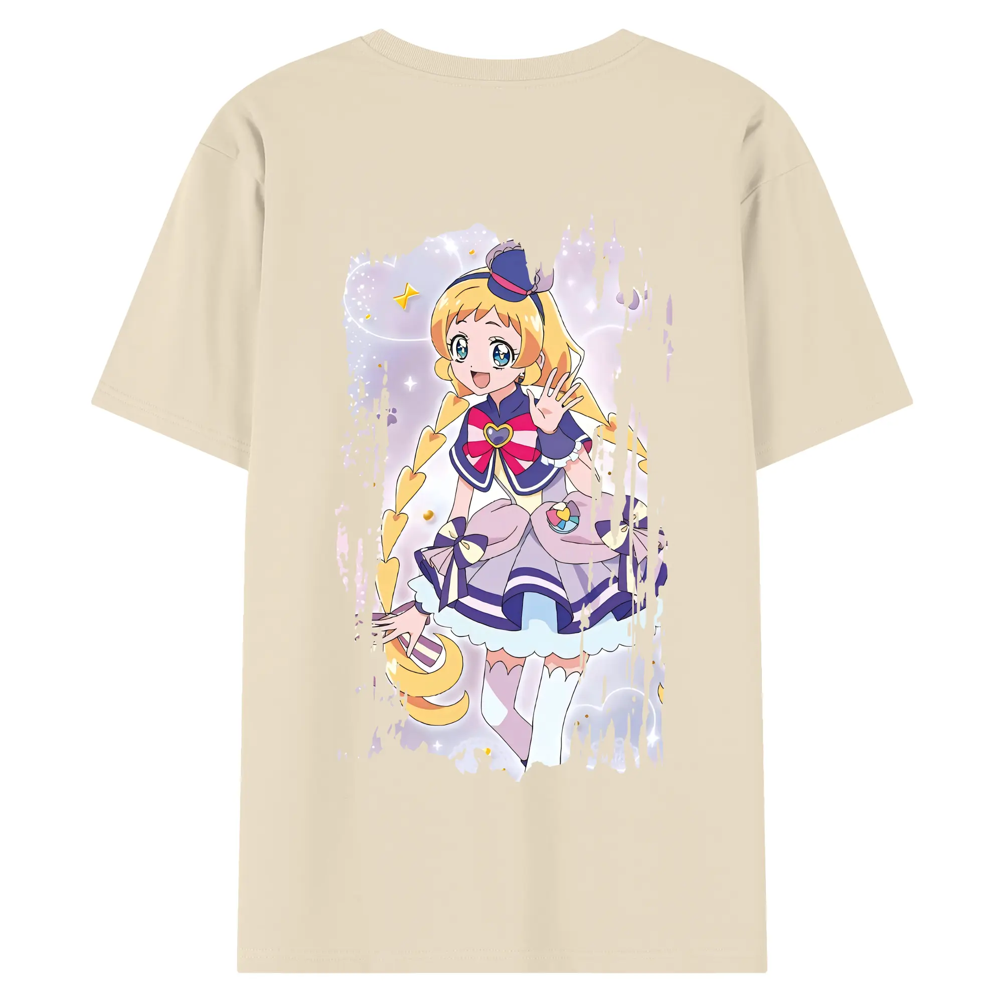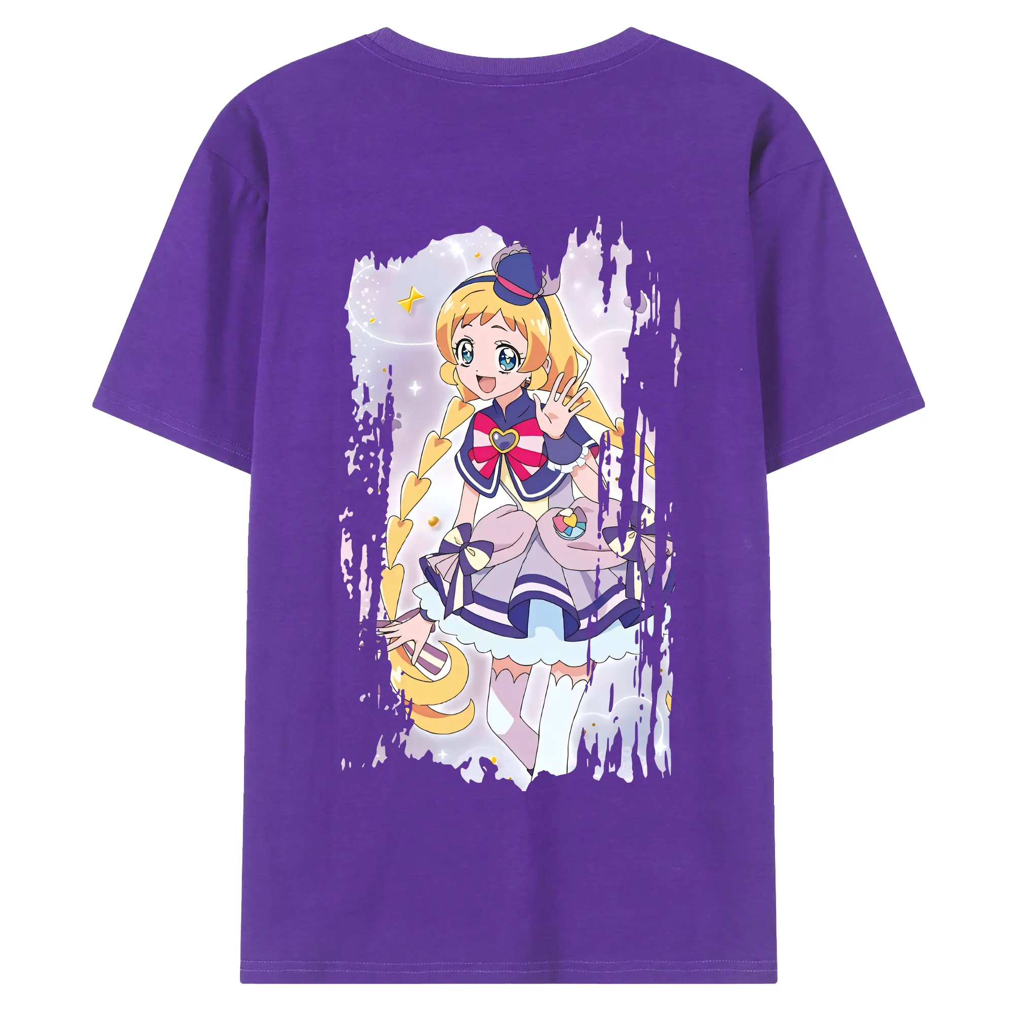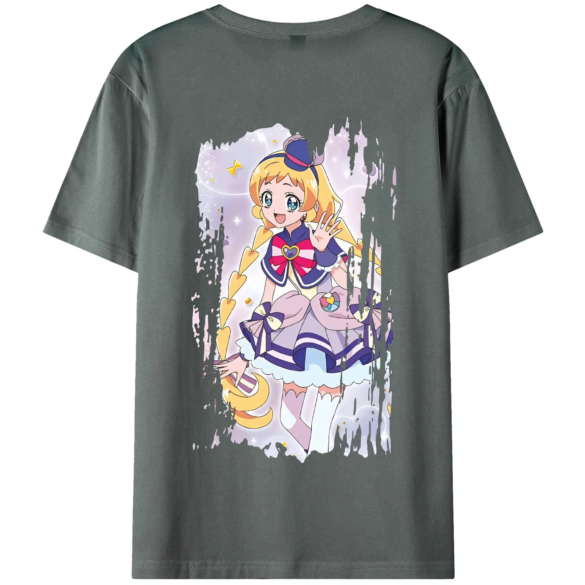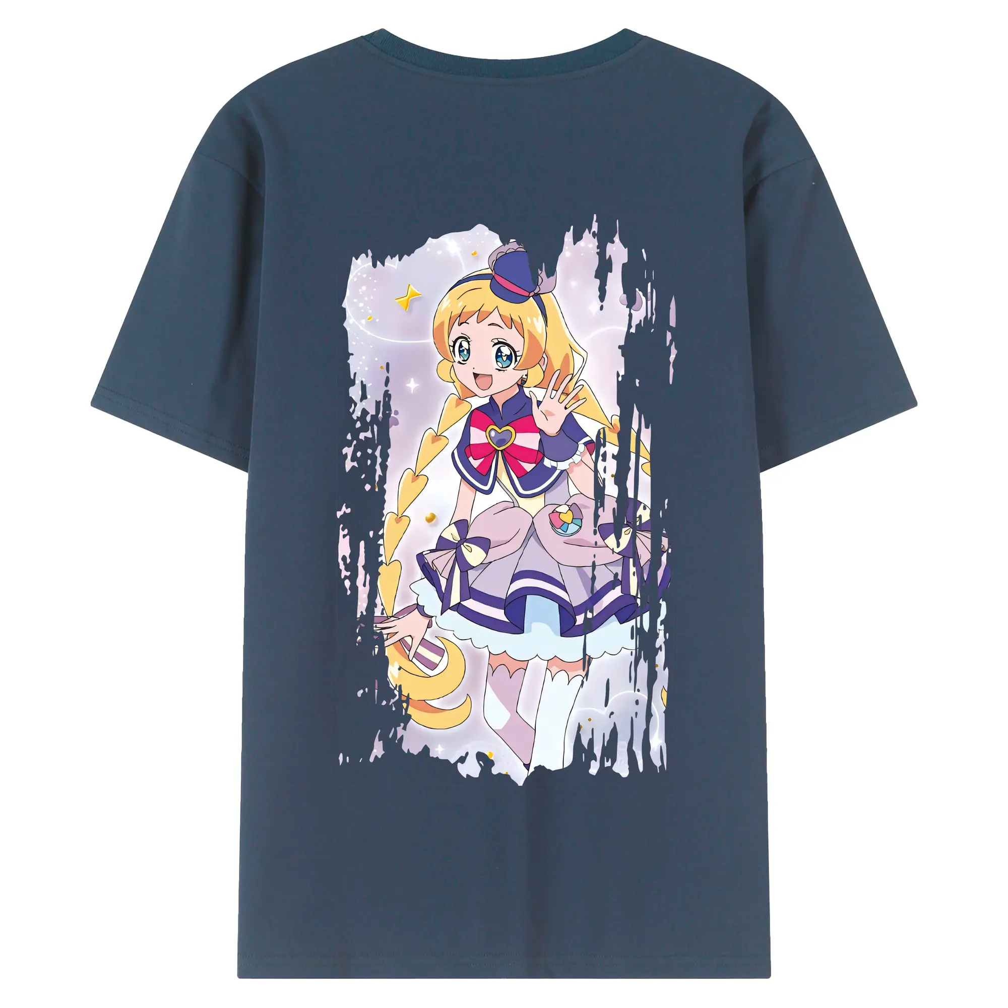 わんだふるぷりきゅあ グッズ 犬飼いろは - 綿100% ヴィンテージ風 半袖Tシャツ ・ 背面プリント ・ 柔らか肌触り ・ 通気性 快適 ・ スポーツ カジュアル 外出用
