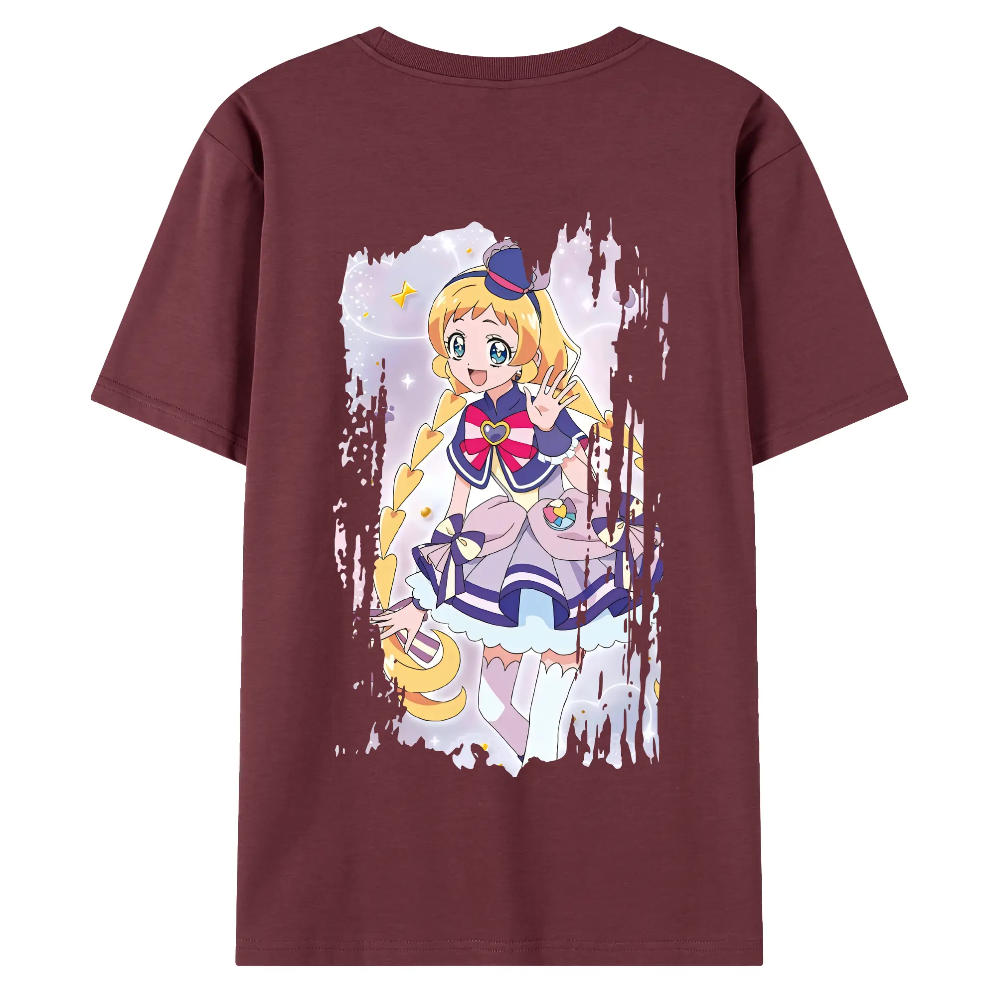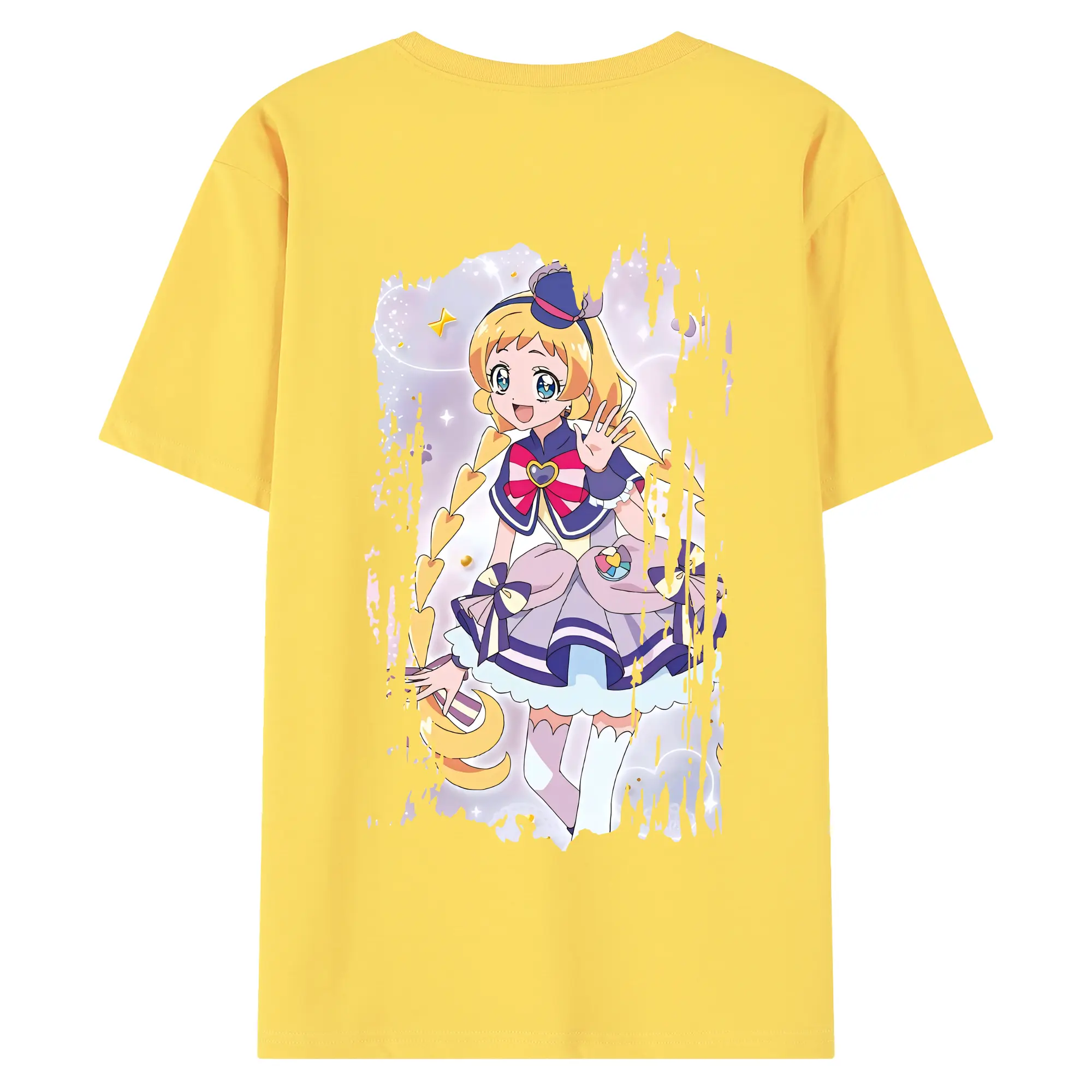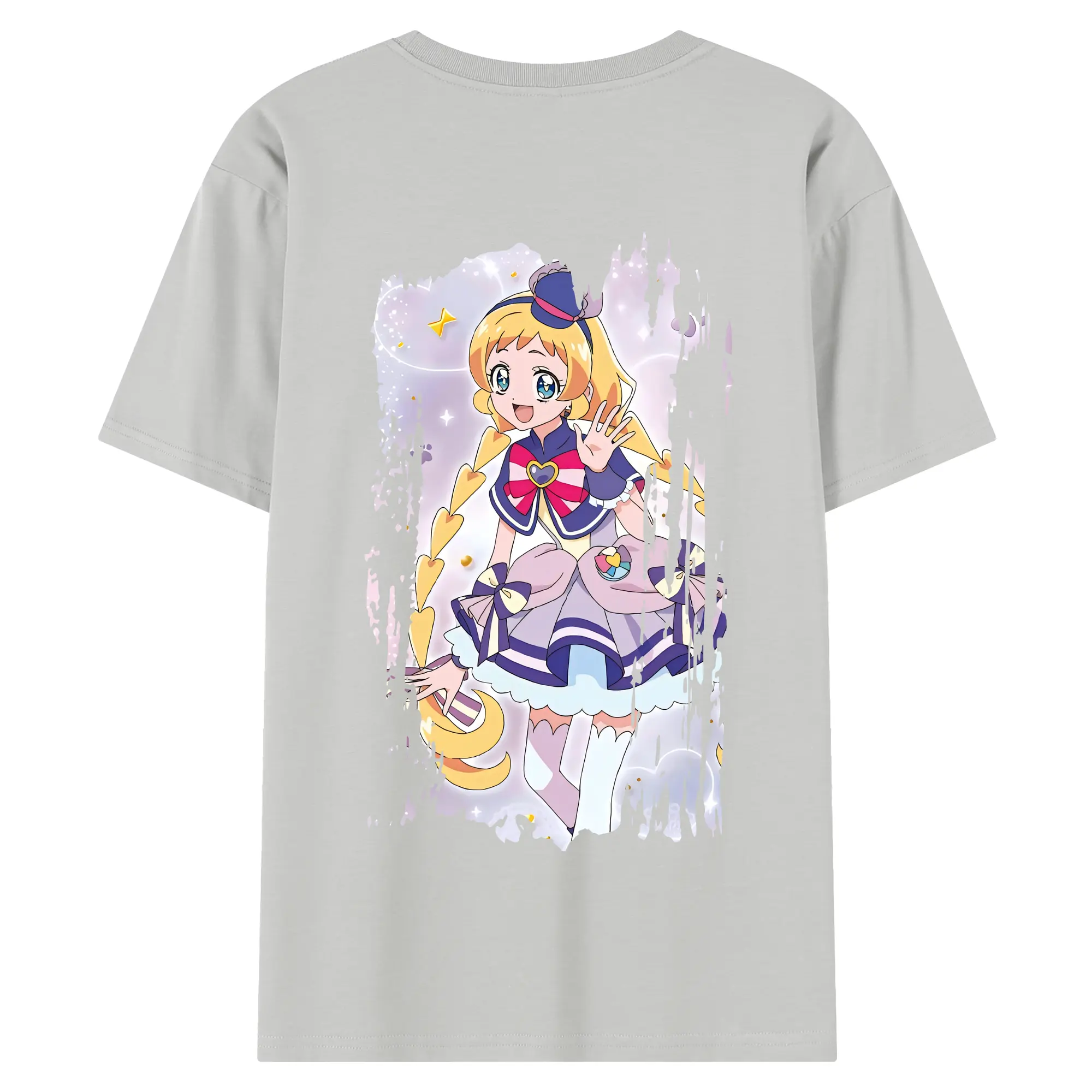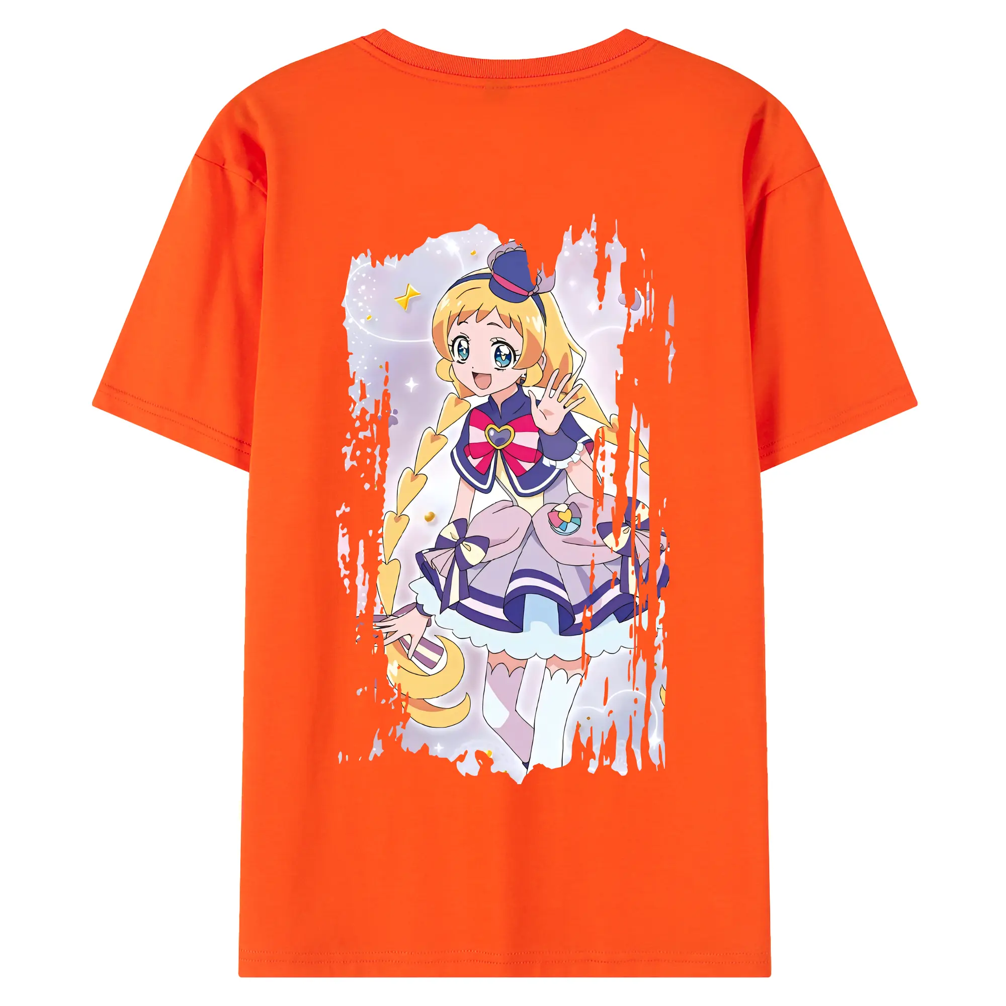 わんだふるぷりきゅあ グッズ 犬飼いろは - 綿100% ヴィンテージ風 半袖Tシャツ ・ 背面プリント ・ 柔らか肌触り ・ 通気性 快適 ・ スポーツ カジュアル 外出用