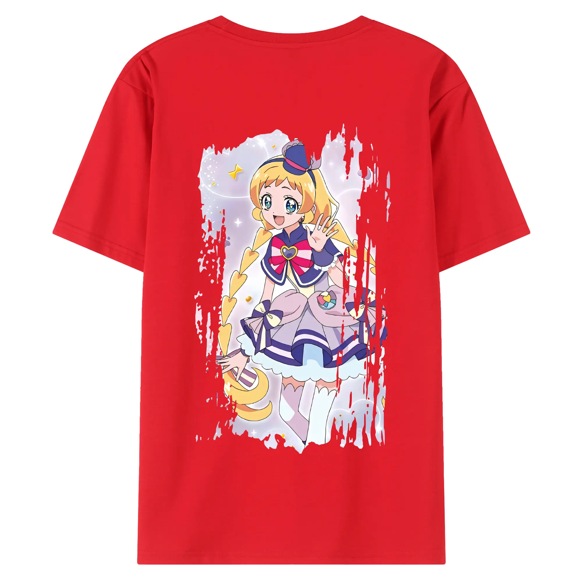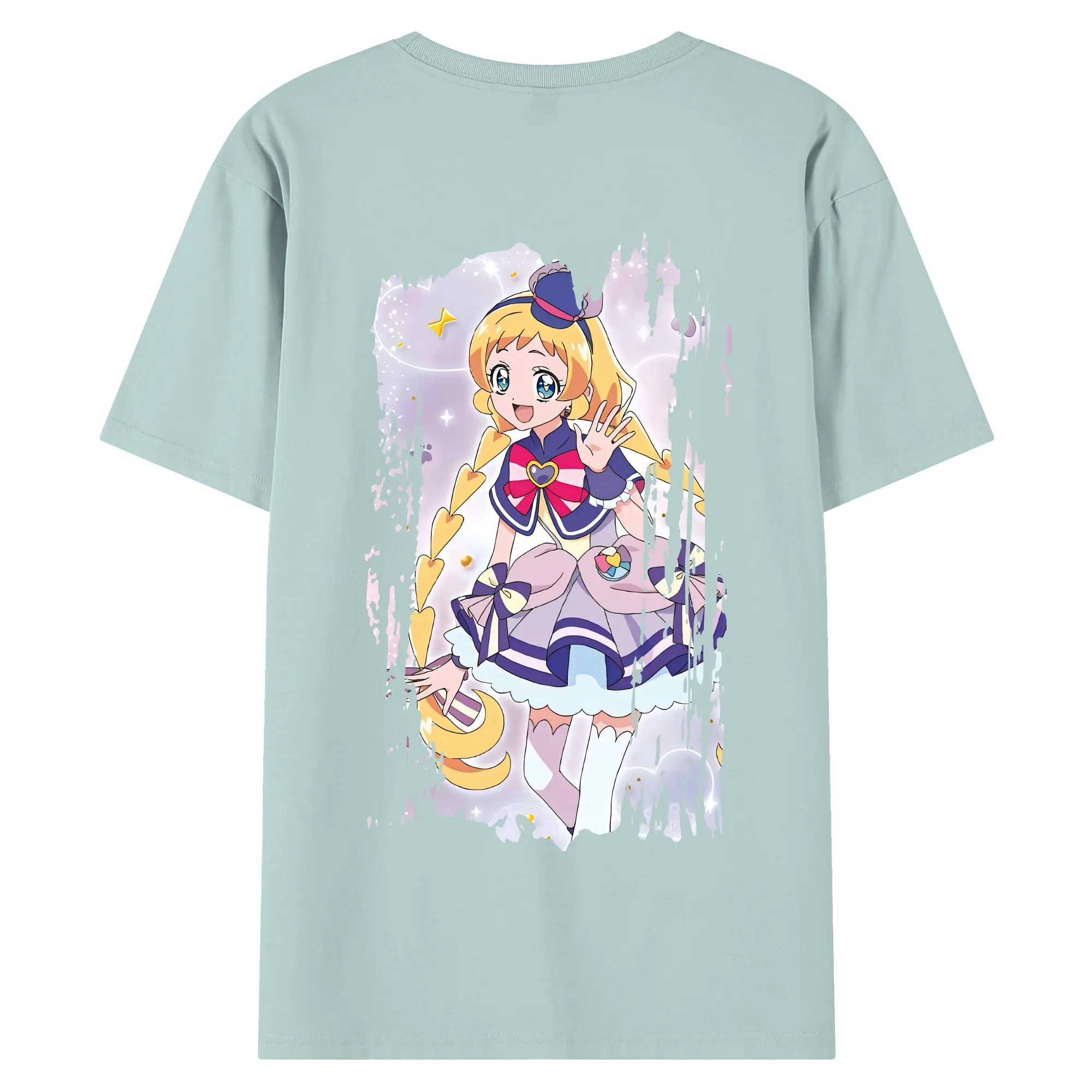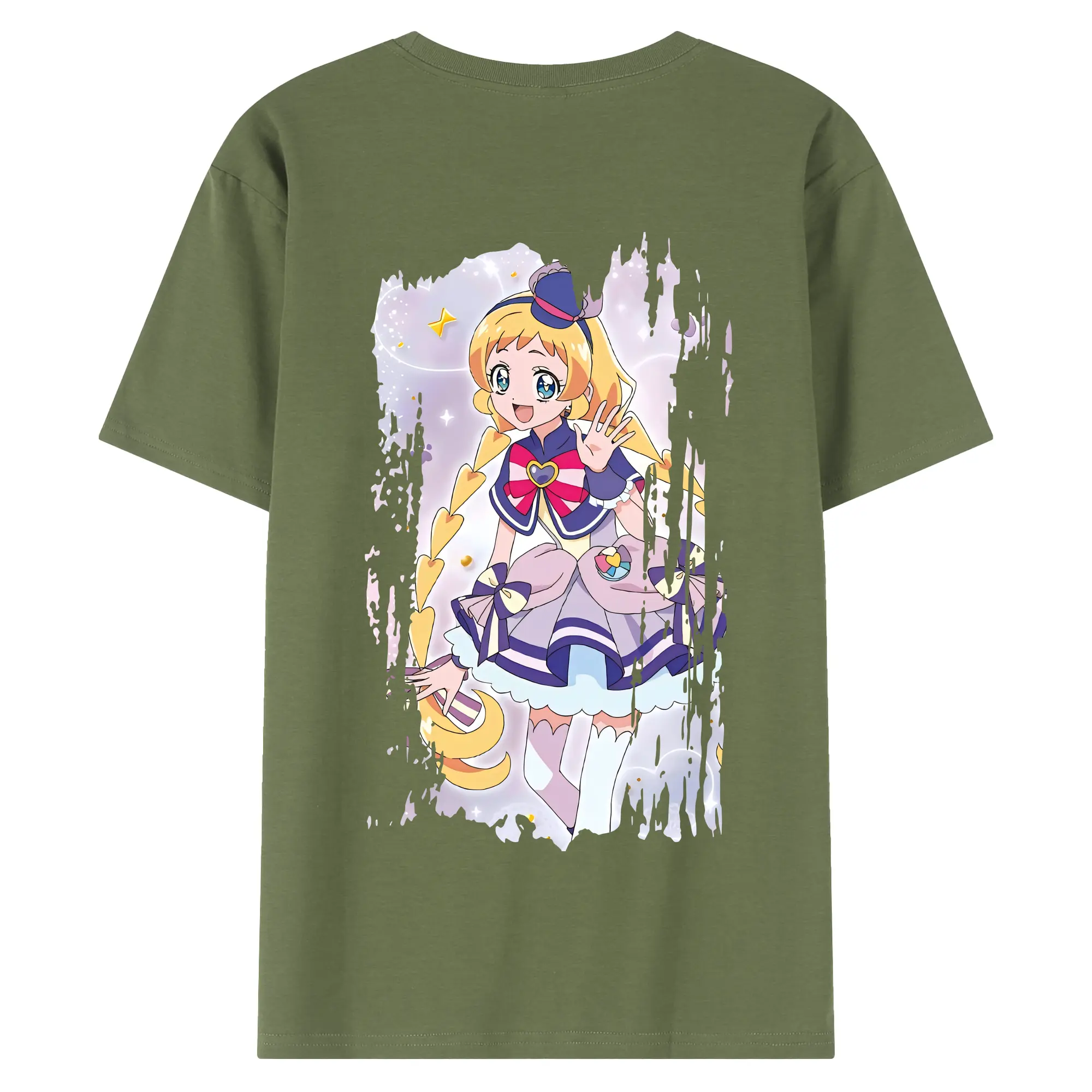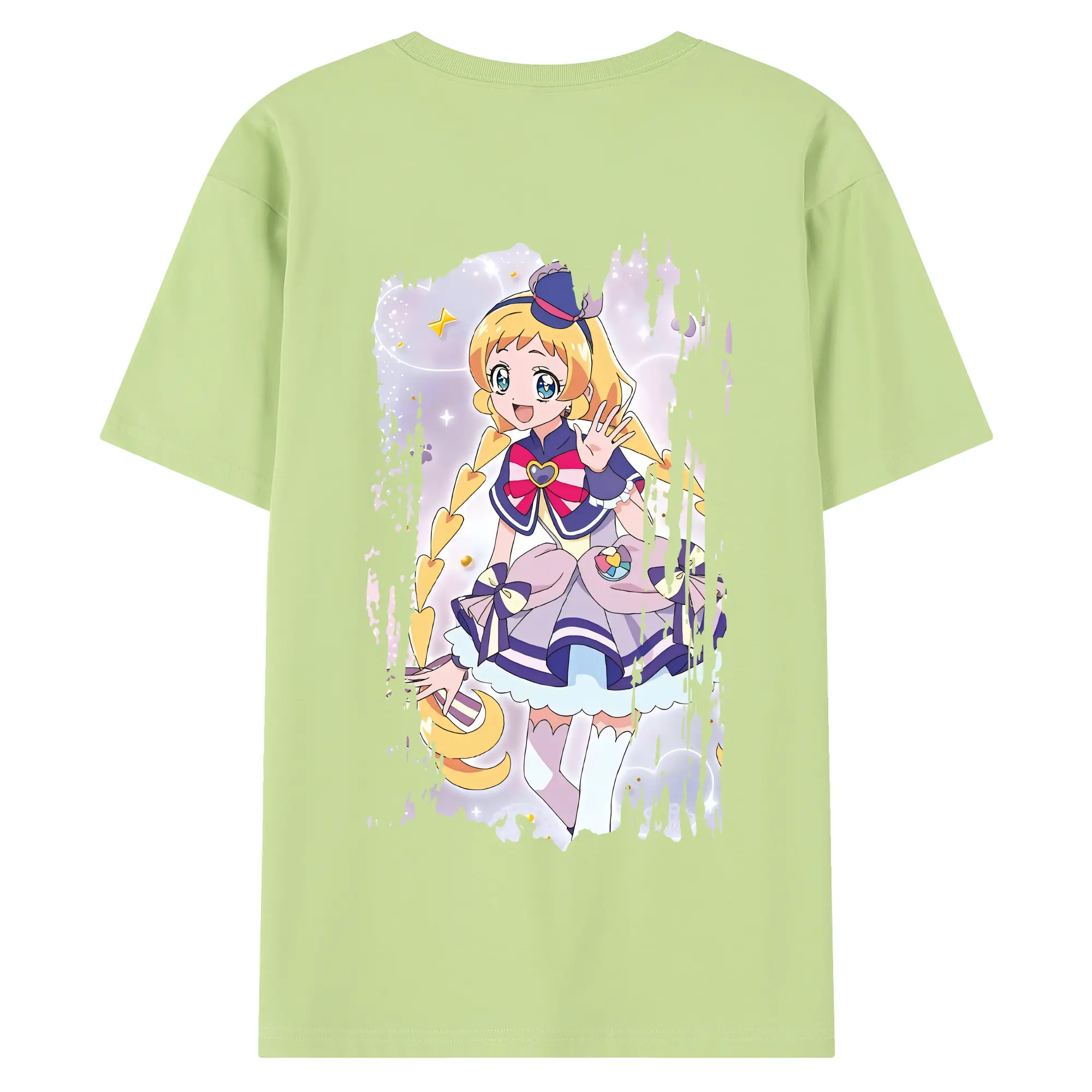 わんだふるぷりきゅあ グッズ 犬飼いろは - 綿100% ヴィンテージ風 半袖Tシャツ ・ 背面プリント ・ 柔らか肌触り ・ 通気性 快適 ・ スポーツ カジュアル 外出用