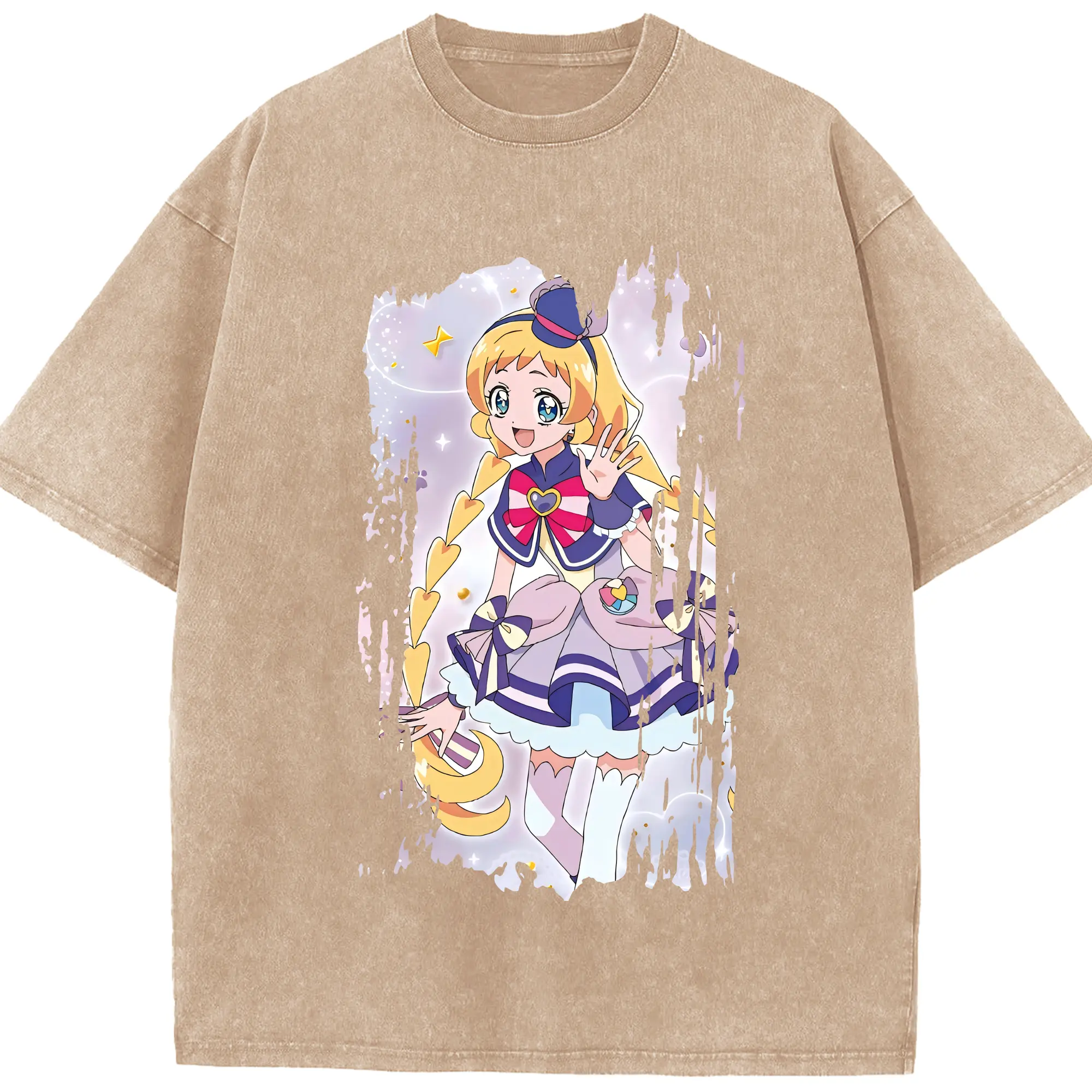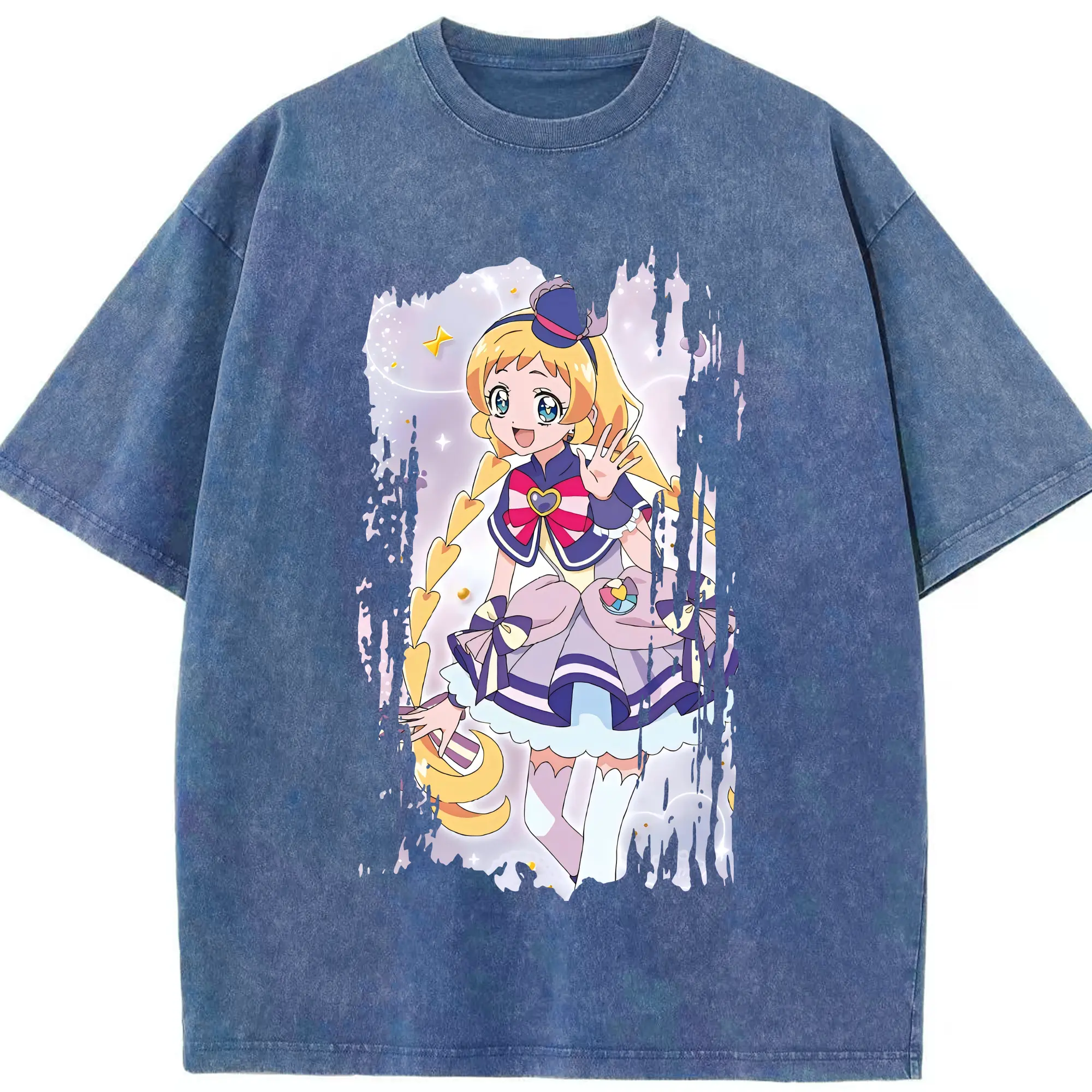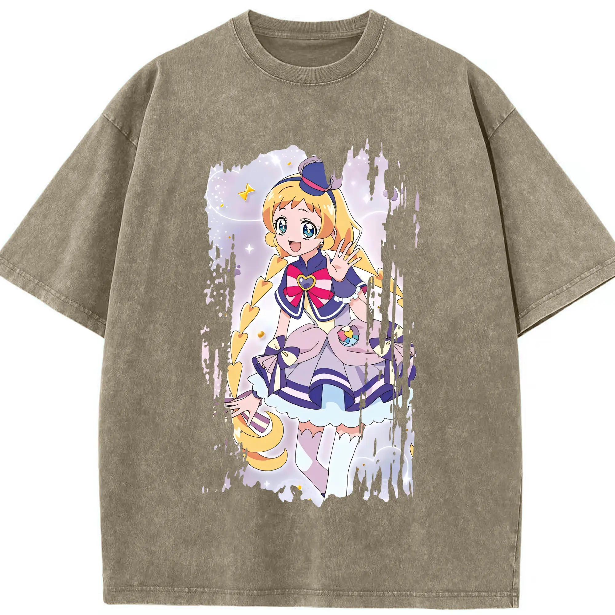 わんだふるぷりきゅあ グッズ 犬飼いろは - 綿100% ヴィンテージ風 半袖Tシャツ ・ 背面プリント ・ 柔らか肌触り ・ 通気性 快適 ・ スポーツ カジュアル 外出用