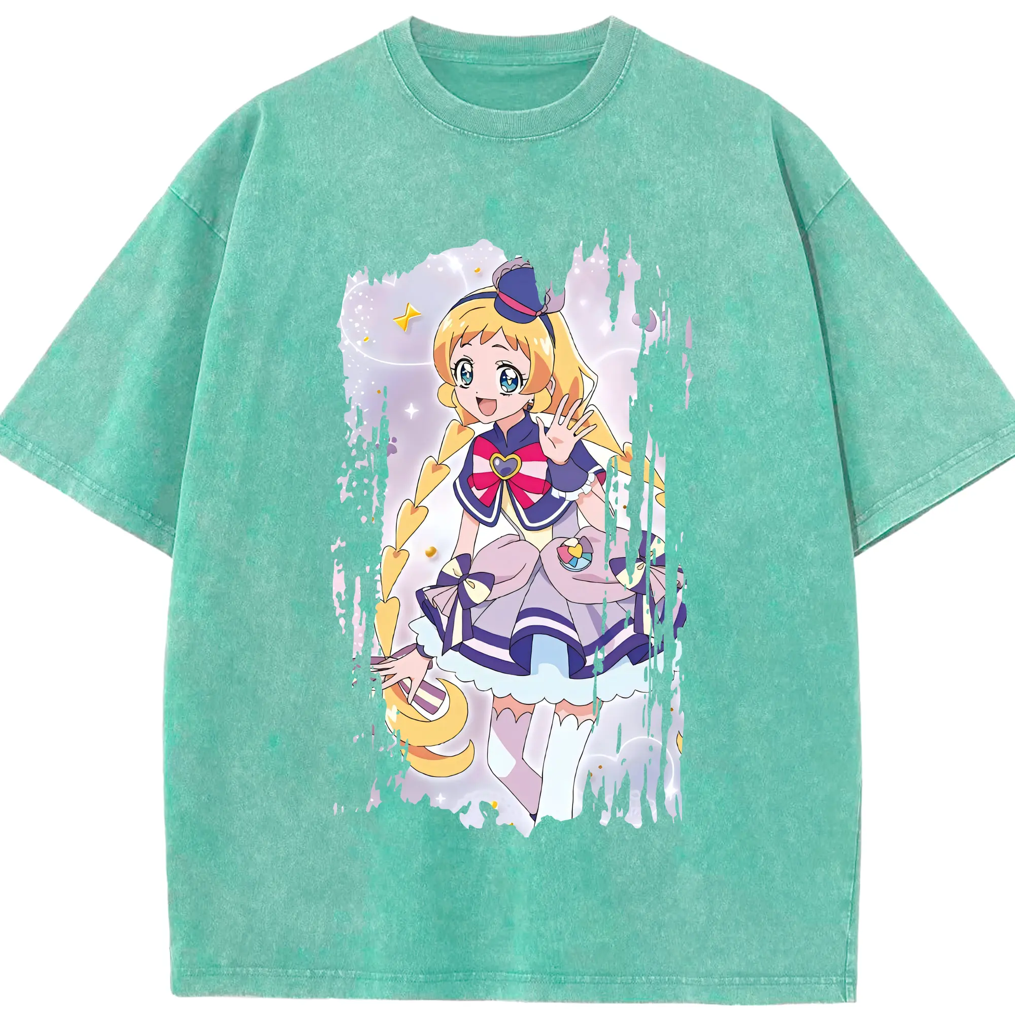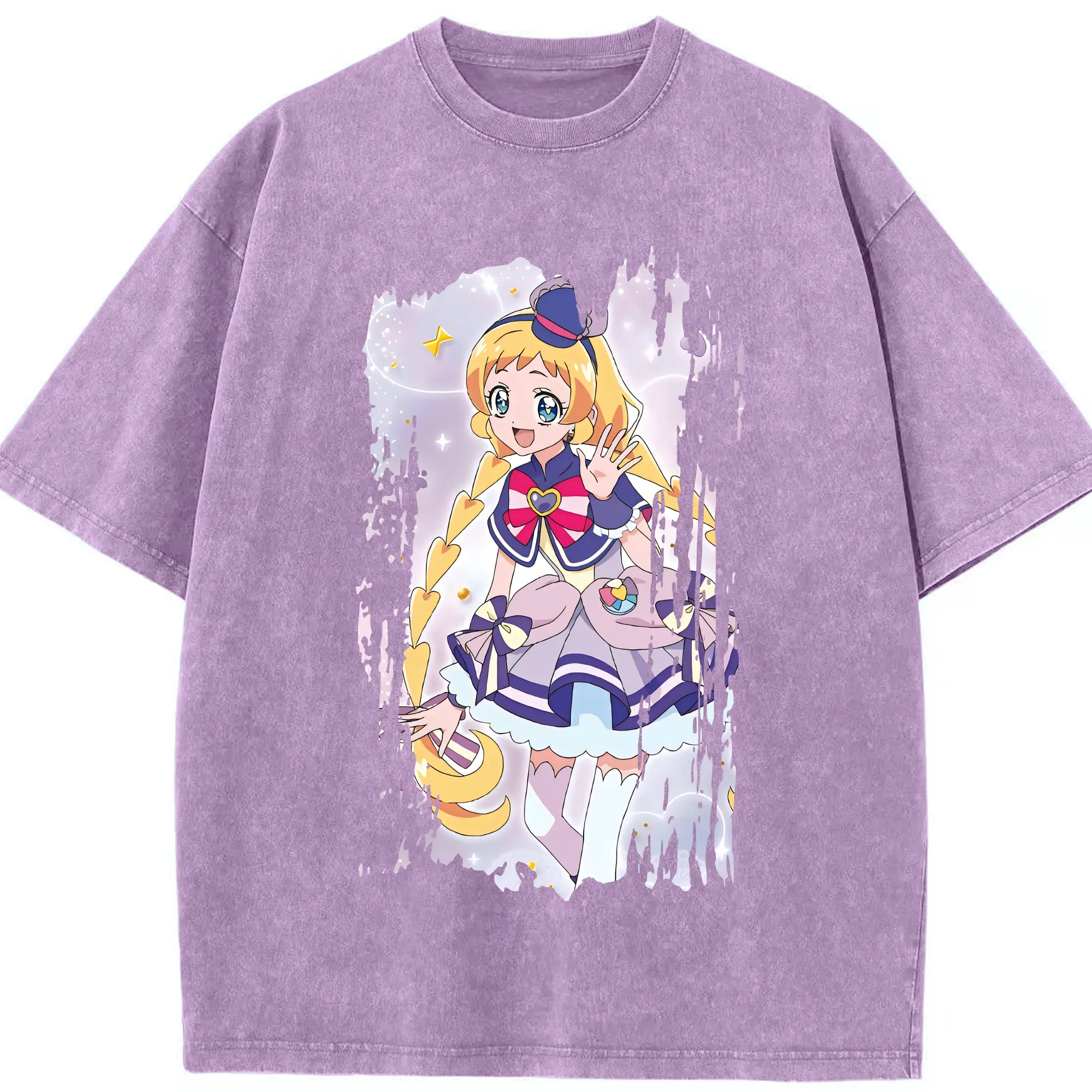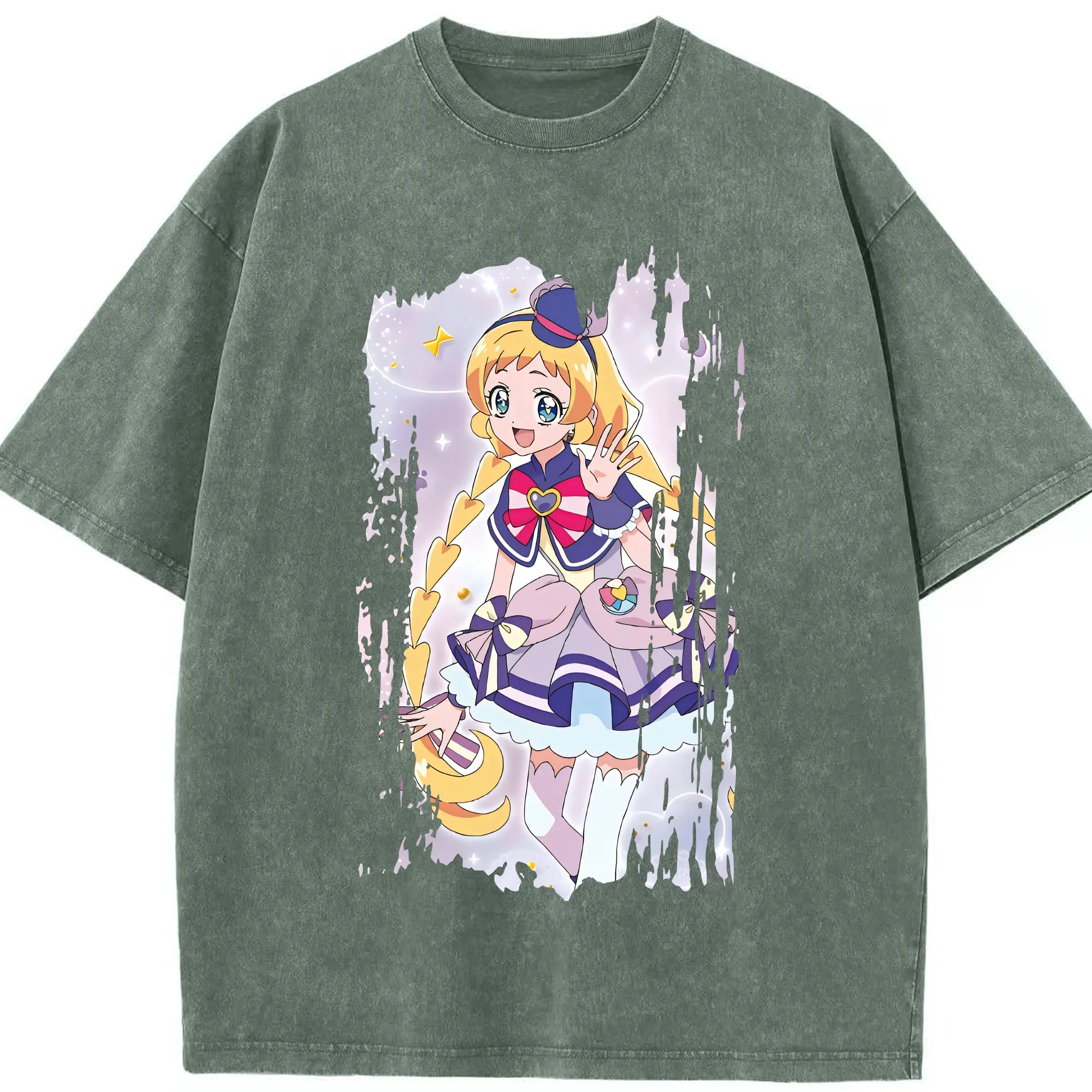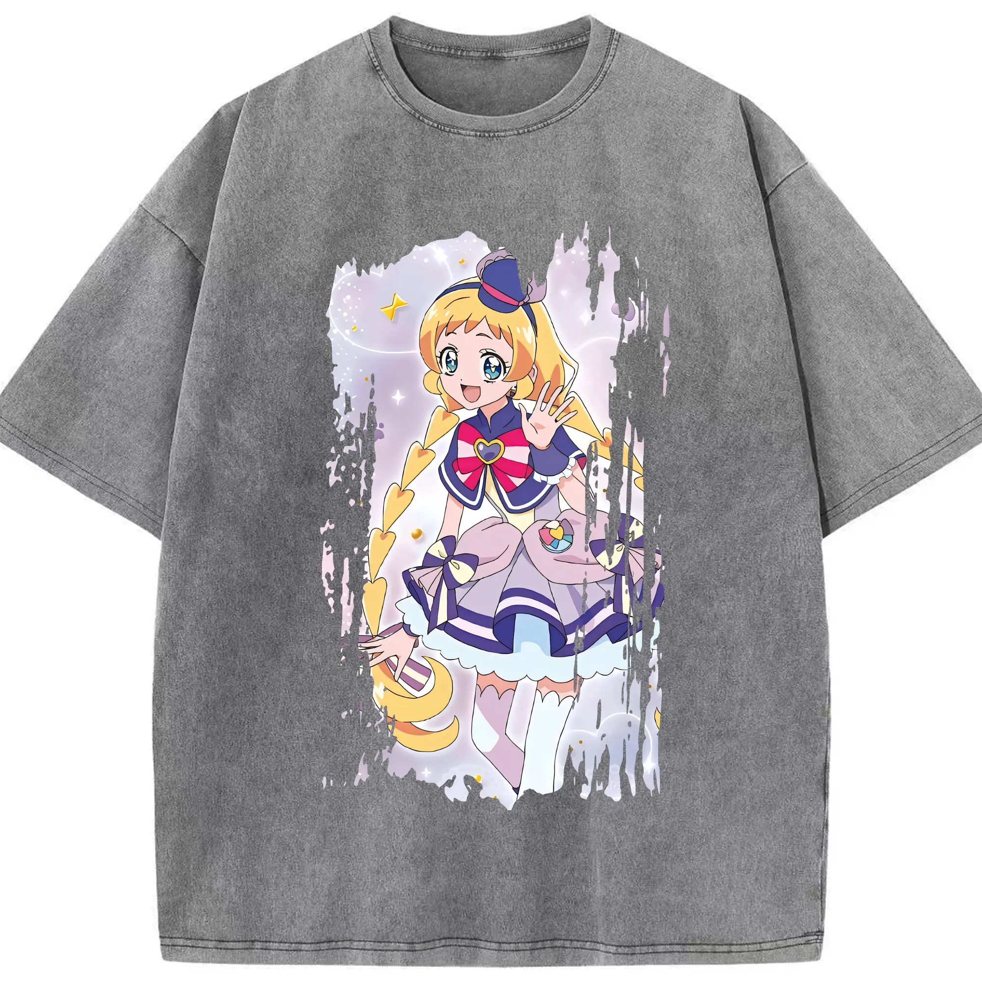 わんだふるぷりきゅあ グッズ 犬飼いろは - 綿100% ヴィンテージ風 半袖Tシャツ ・ 背面プリント ・ 柔らか肌触り ・ 通気性 快適 ・ スポーツ カジュアル 外出用