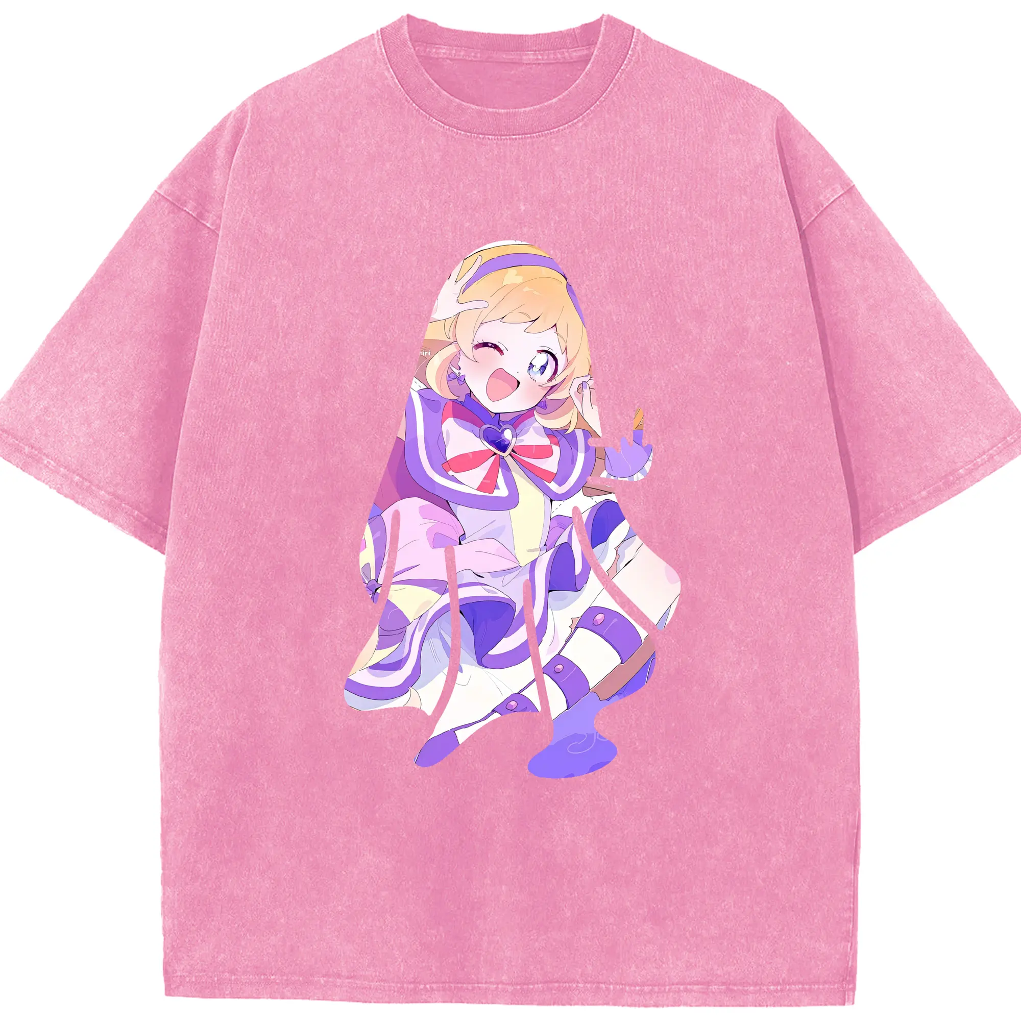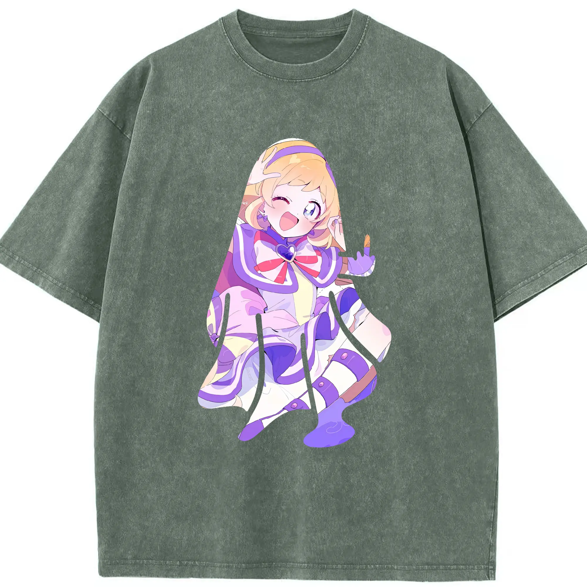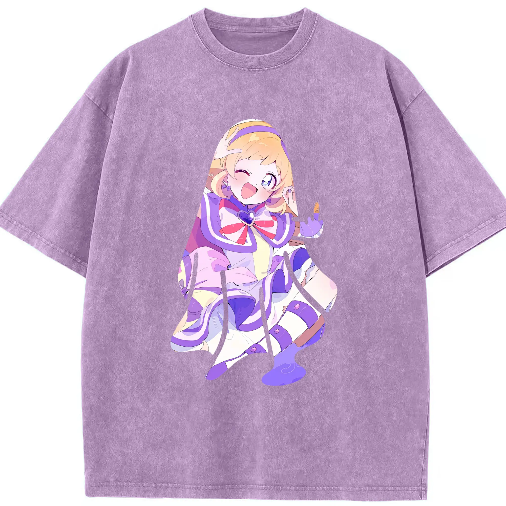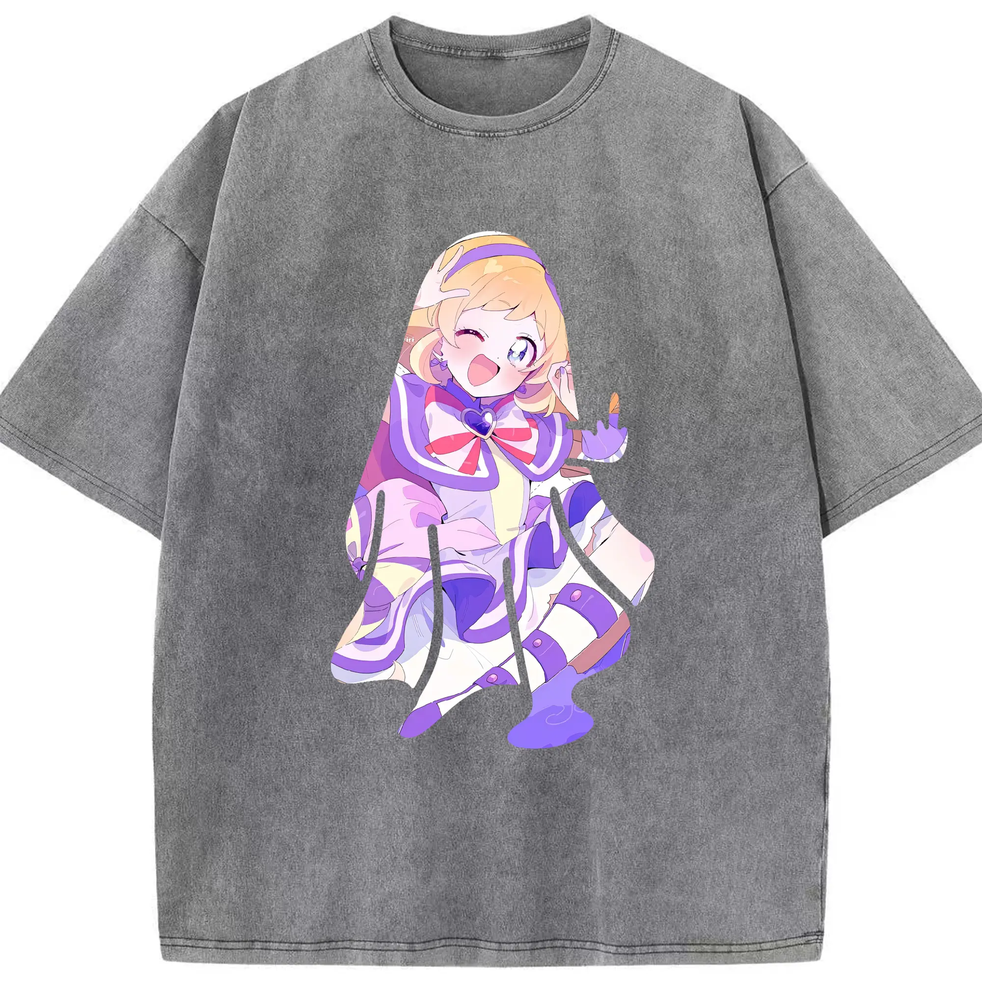 わんだふるぷりきゅあ グッズ 犬飼いろは - 綿100% ヴィンテージ風 半袖Tシャツ ・ 背面プリント ・ 柔らか肌触り ・ 通気性 快適 ・ スポーツ カジュアル 外出用