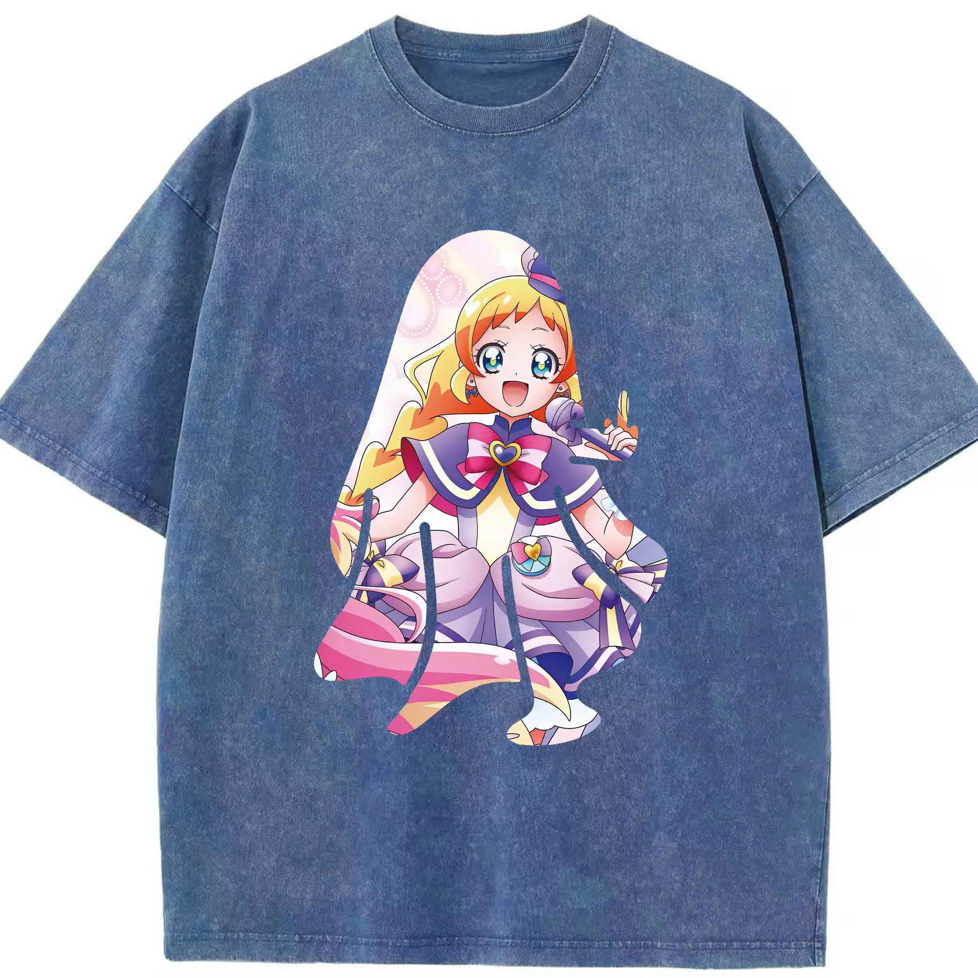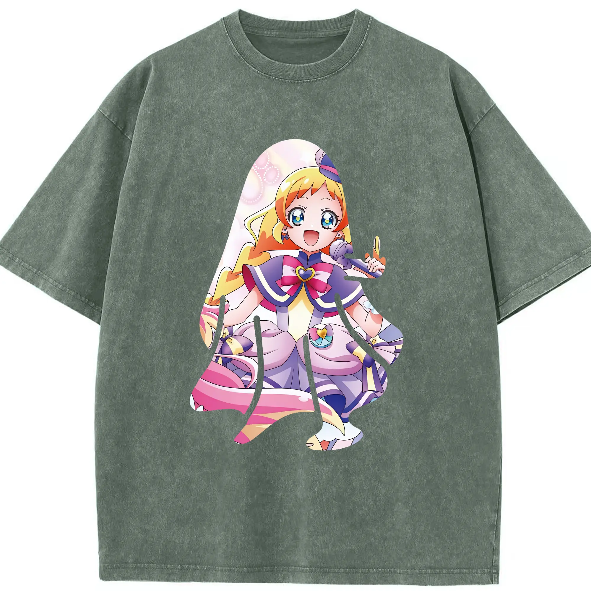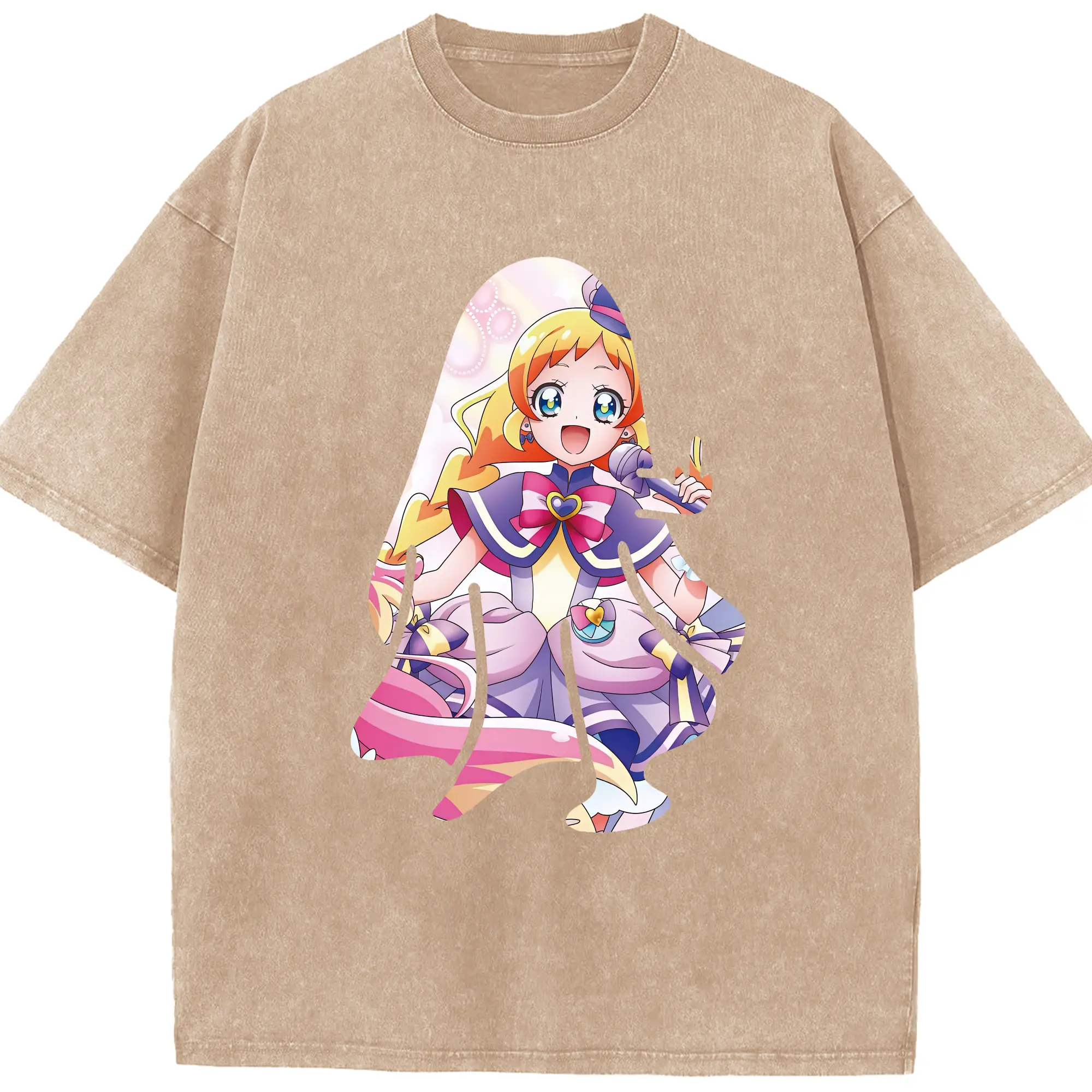 わんだふるぷりきゅあ グッズ 犬飼いろは - 綿100% ヴィンテージ風 半袖Tシャツ ・ 背面プリント ・ 柔らか肌触り ・ 通気性 快適 ・ スポーツ カジュアル 外出用