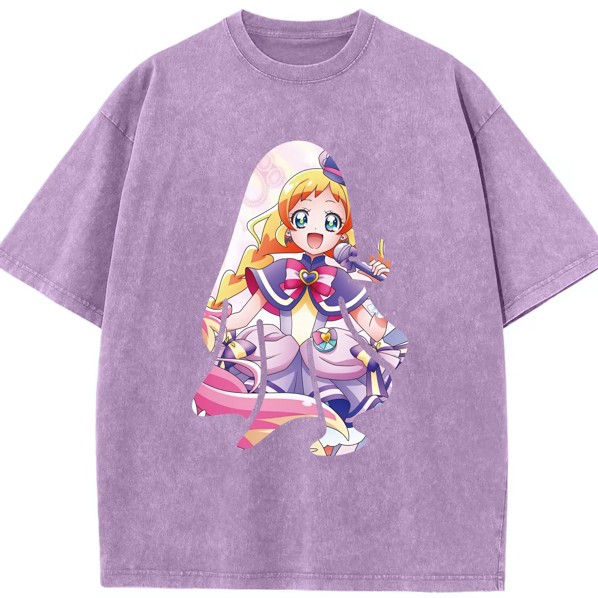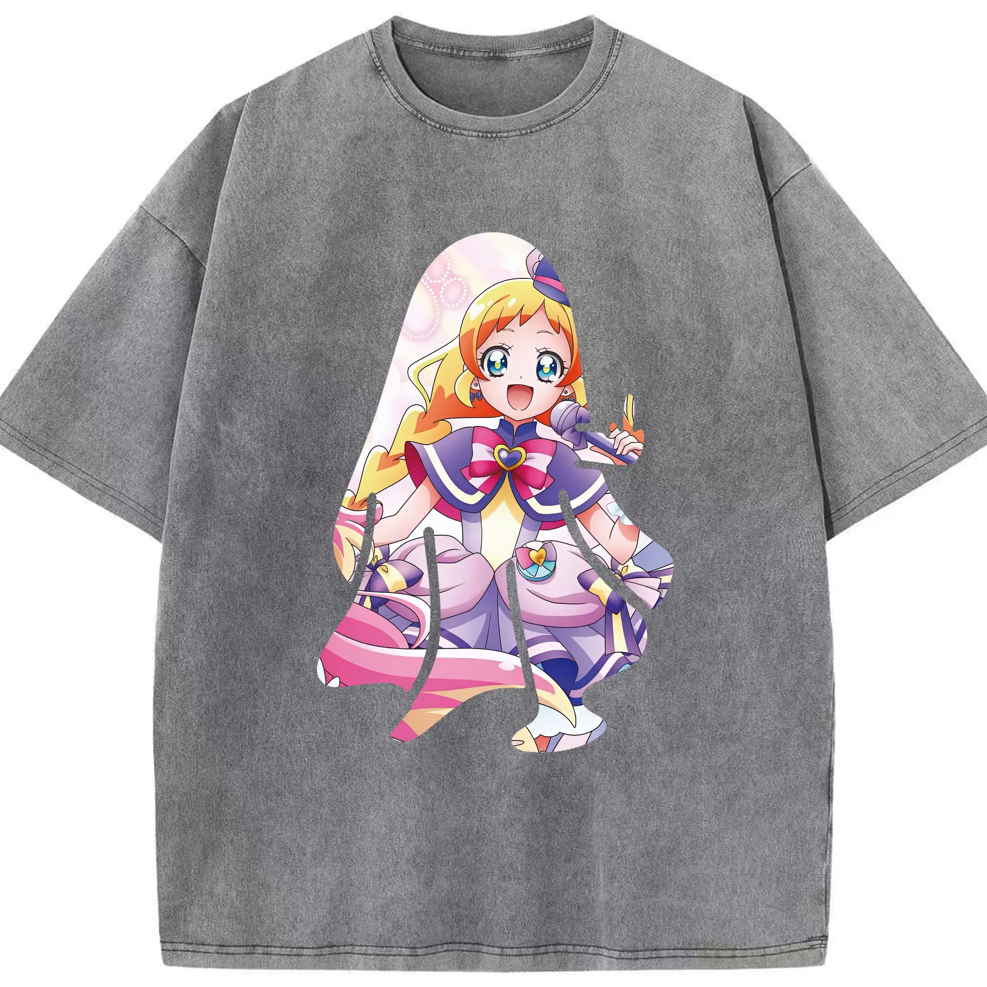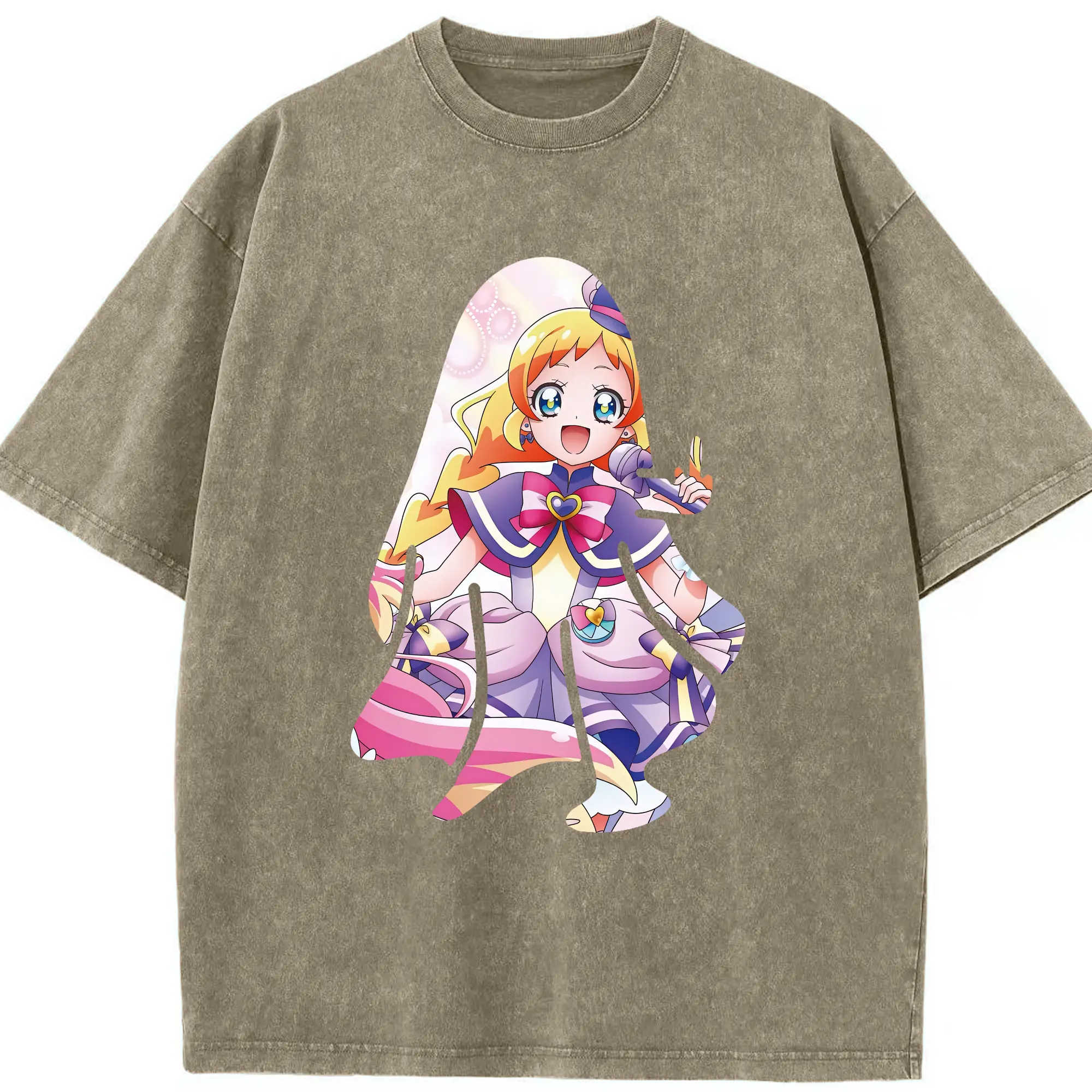わんだふるぷりきゅあ グッズ 犬飼いろは - 綿100% ヴィンテージ風 半袖Tシャツ ・ 背面プリント ・ 柔らか肌触り ・ 通気性 快適 ・ スポーツ カジュアル 外出用
