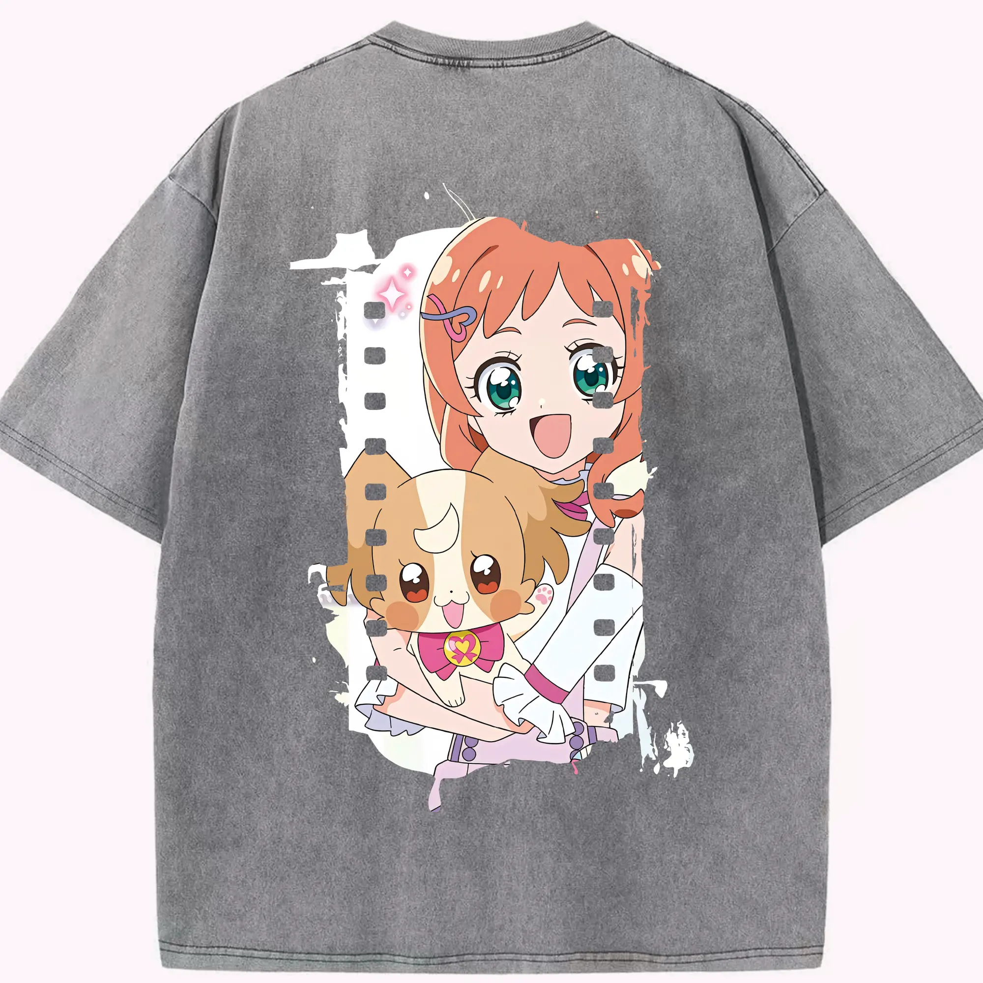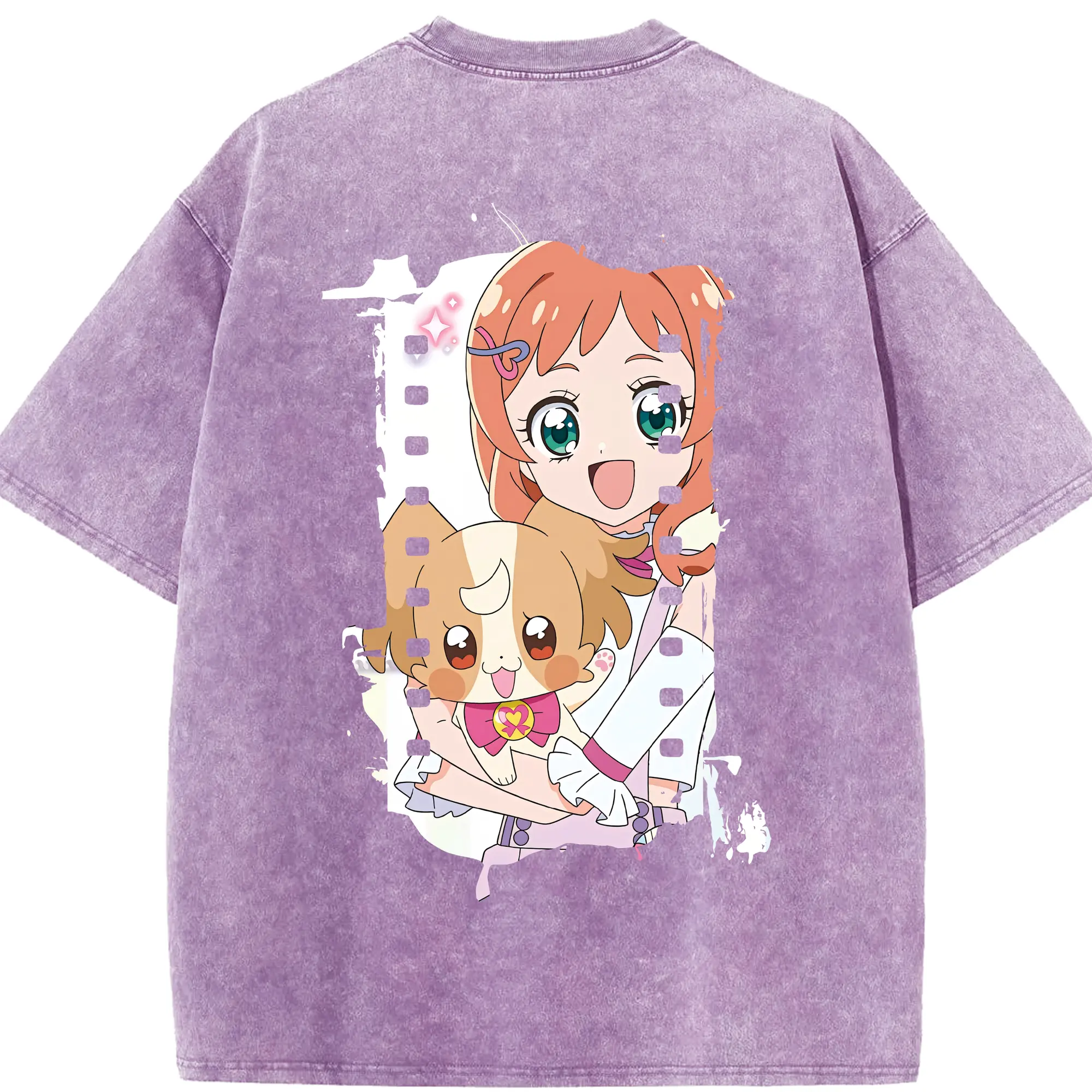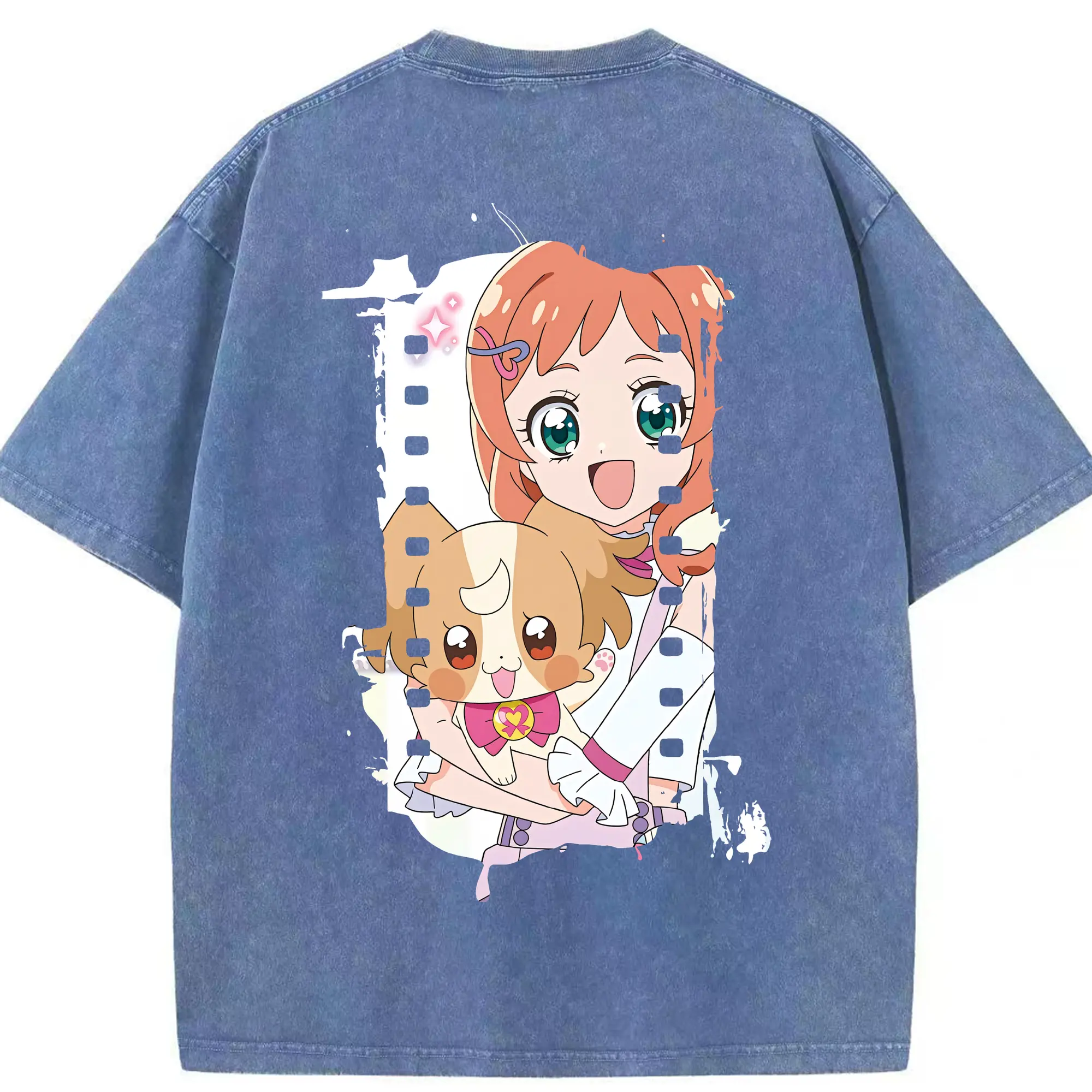 わんだふるぷりきゅあ グッズ 犬飼いろは - 綿100% ヴィンテージ風 半袖Tシャツ ・ フロントプリント ・ 柔らか肌触り ・ 通気性 快適 ・ スポーツ カジュアル 外出用