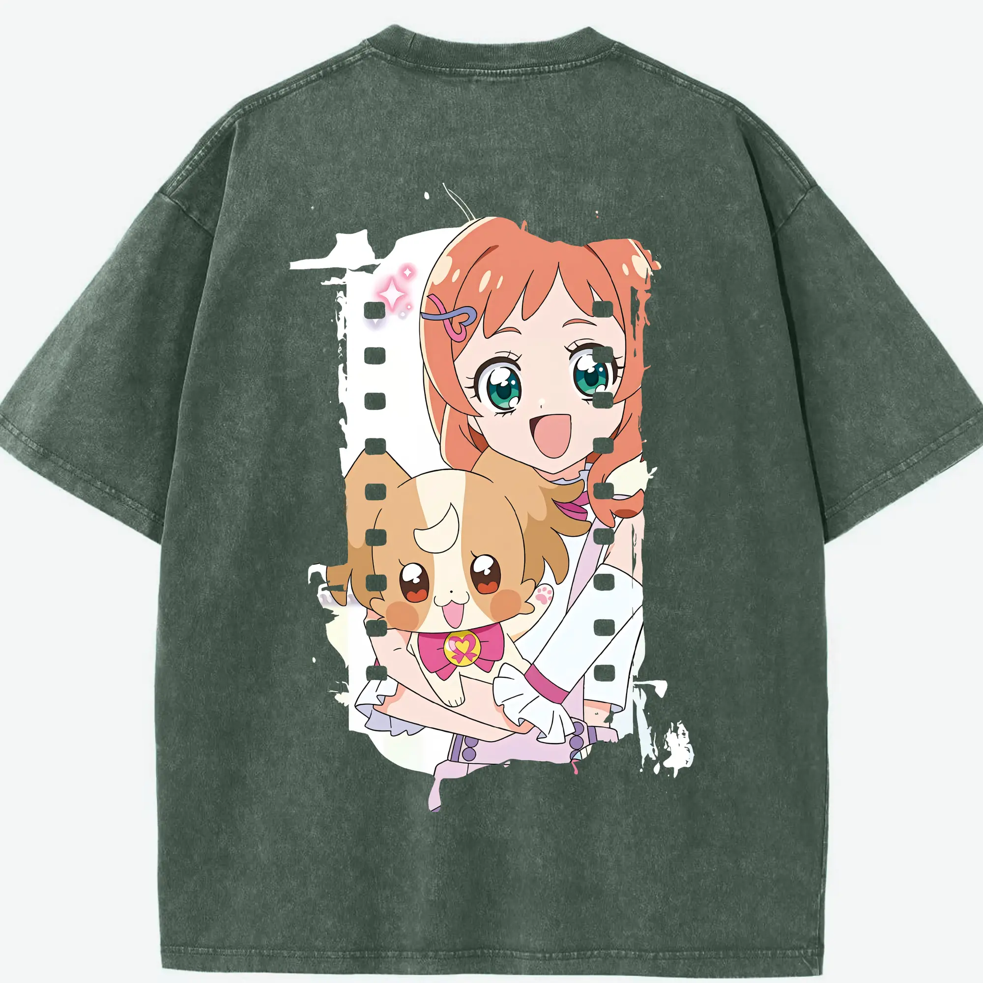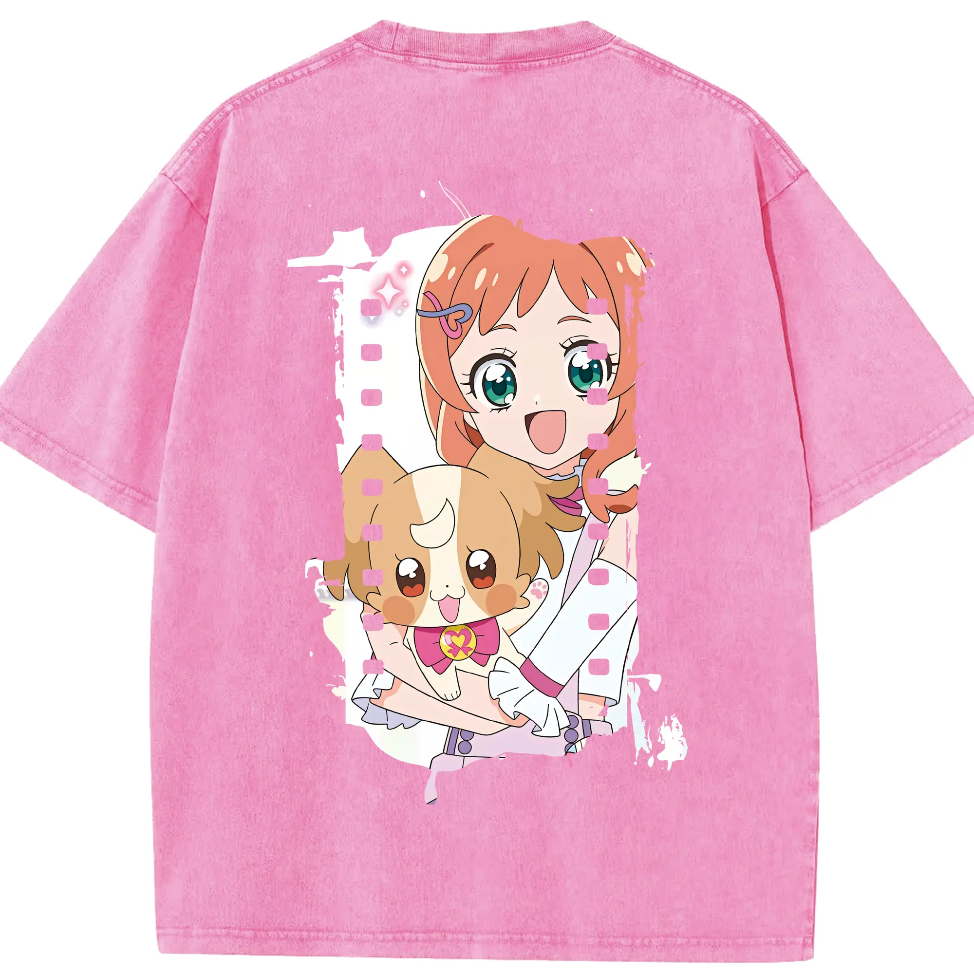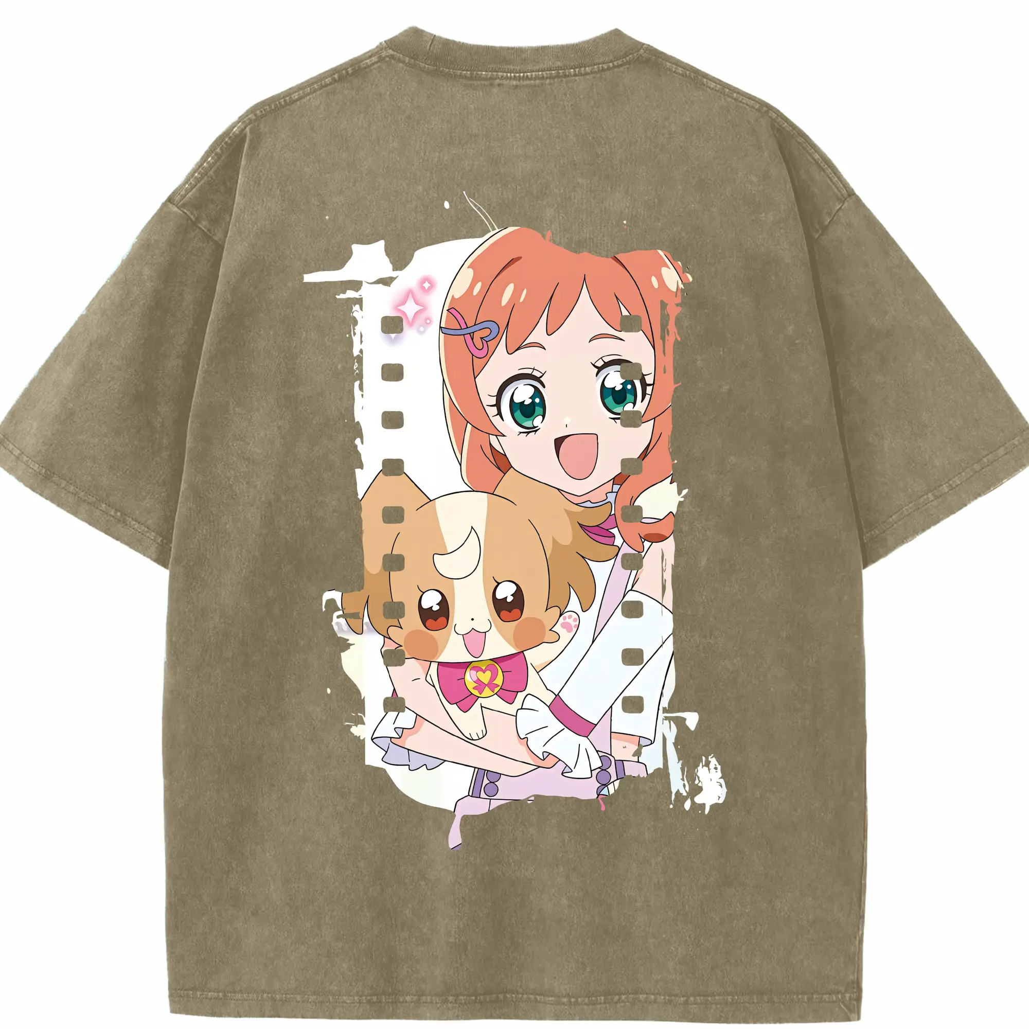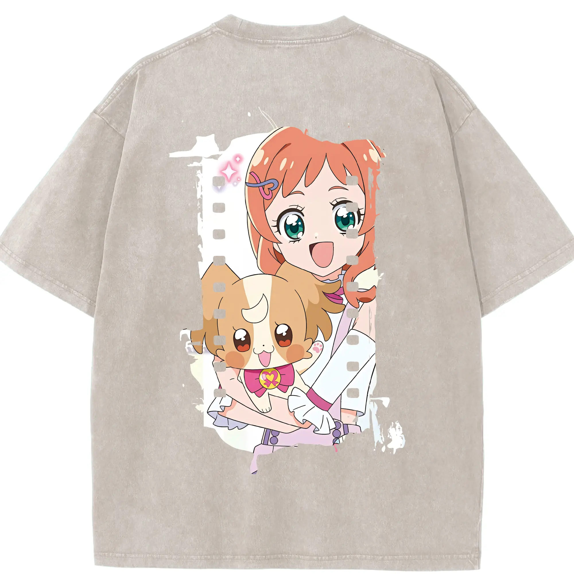 わんだふるぷりきゅあ グッズ 犬飼いろは - 綿100% ヴィンテージ風 半袖Tシャツ ・ フロントプリント ・ 柔らか肌触り ・ 通気性 快適 ・ スポーツ カジュアル 外出用