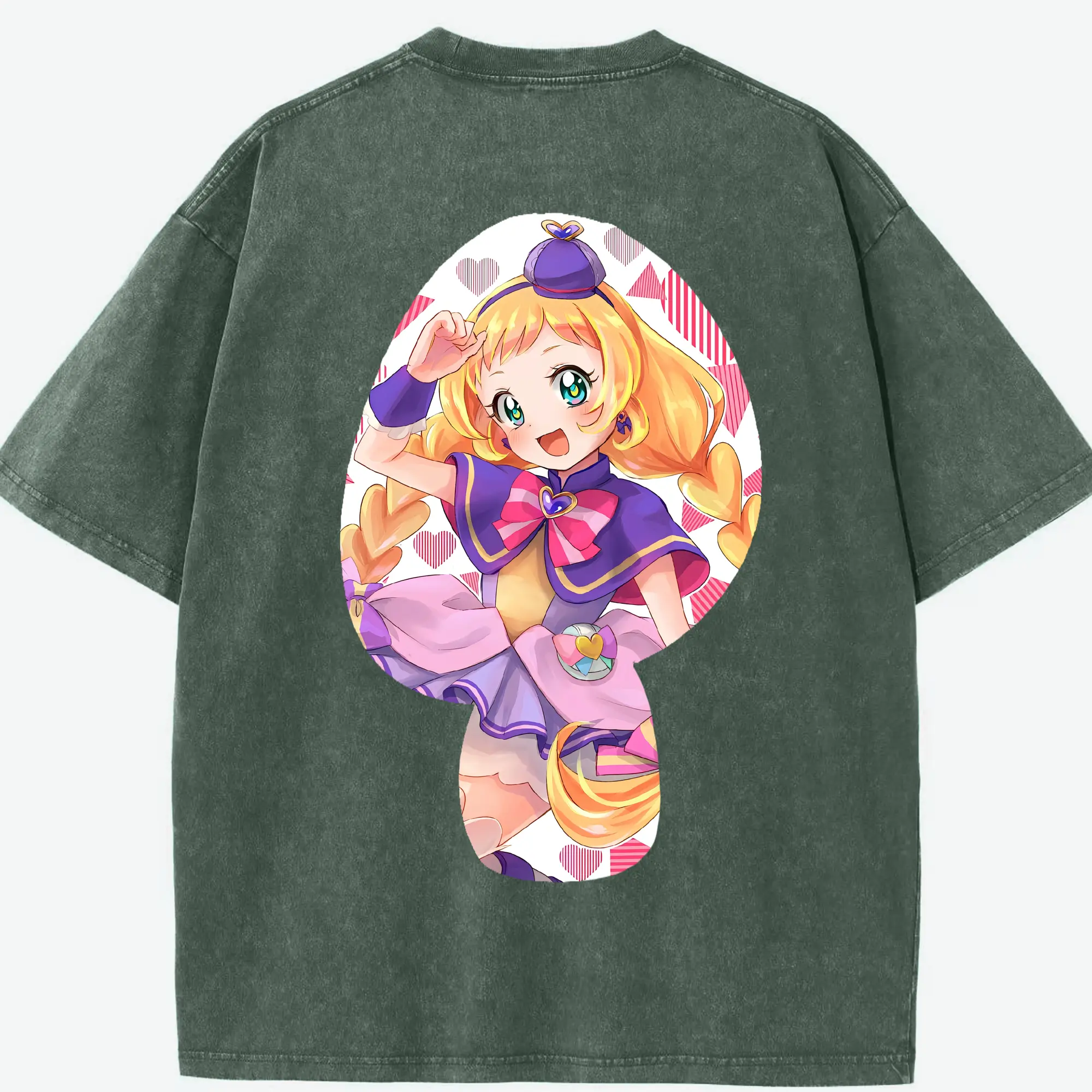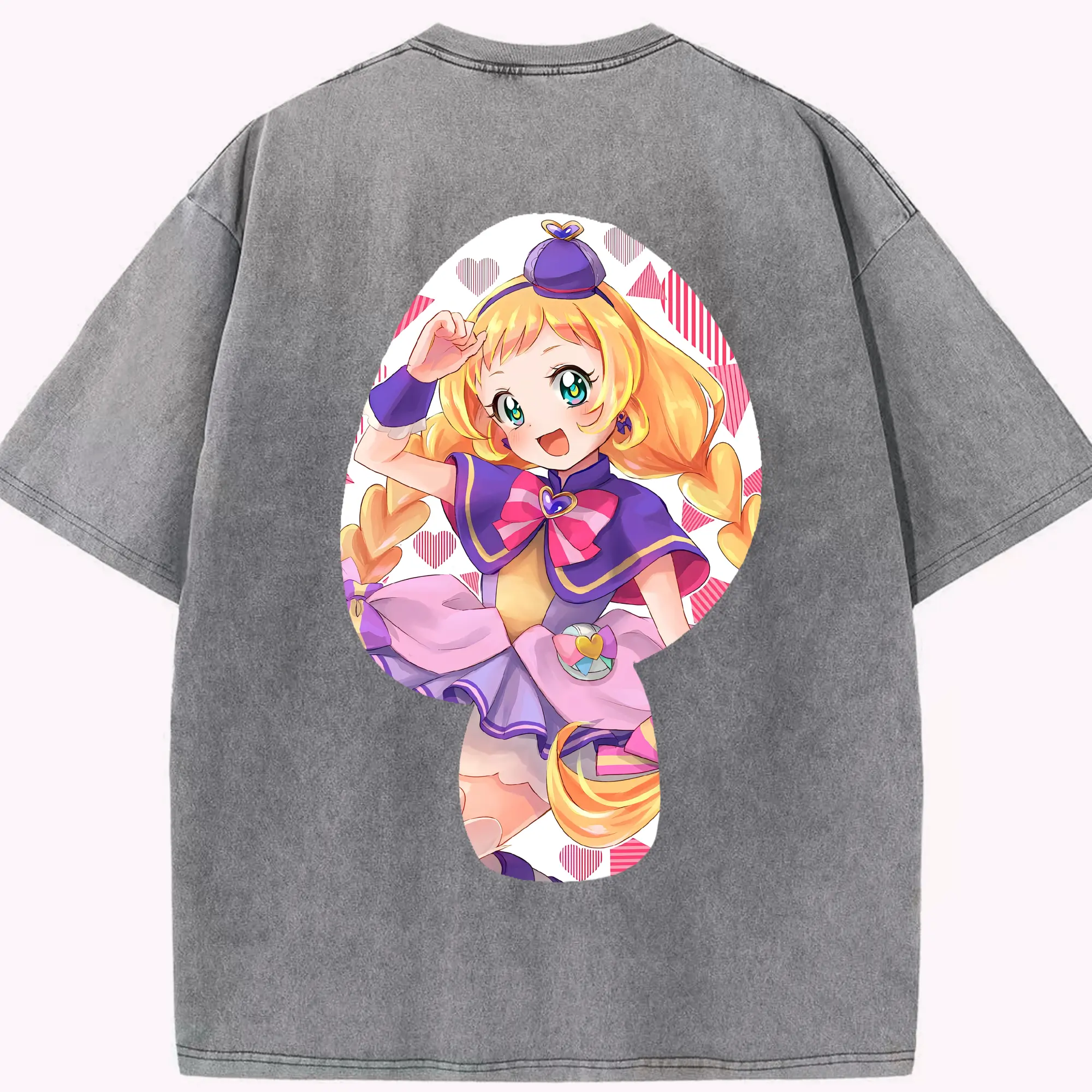 わんだふるぷりきゅあ グッズ 犬飼いろは - 綿100% ヴィンテージ風 半袖Tシャツ ・ フロントプリント ・ 柔らか肌触り ・ 通気性 快適 ・ スポーツ カジュアル 外出用