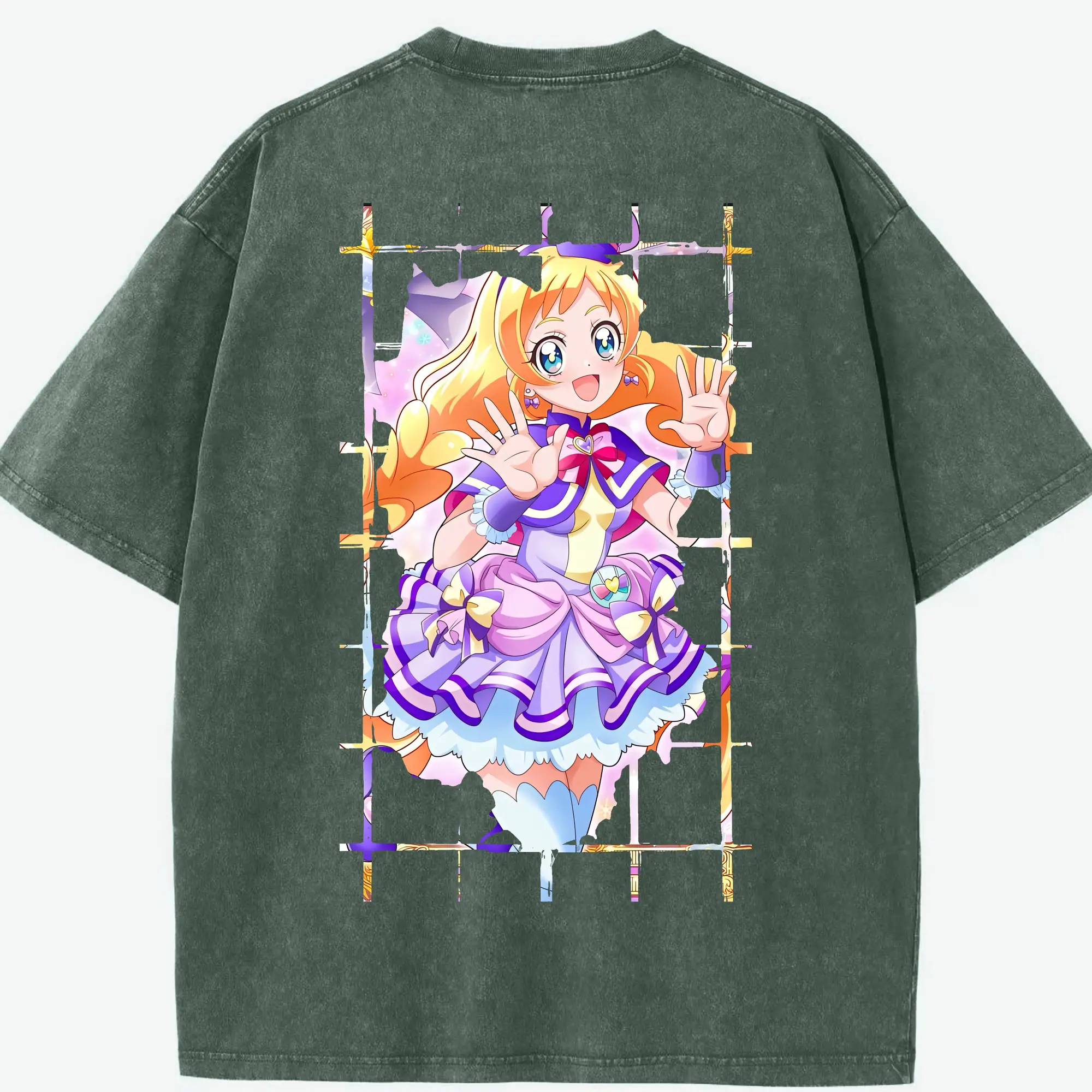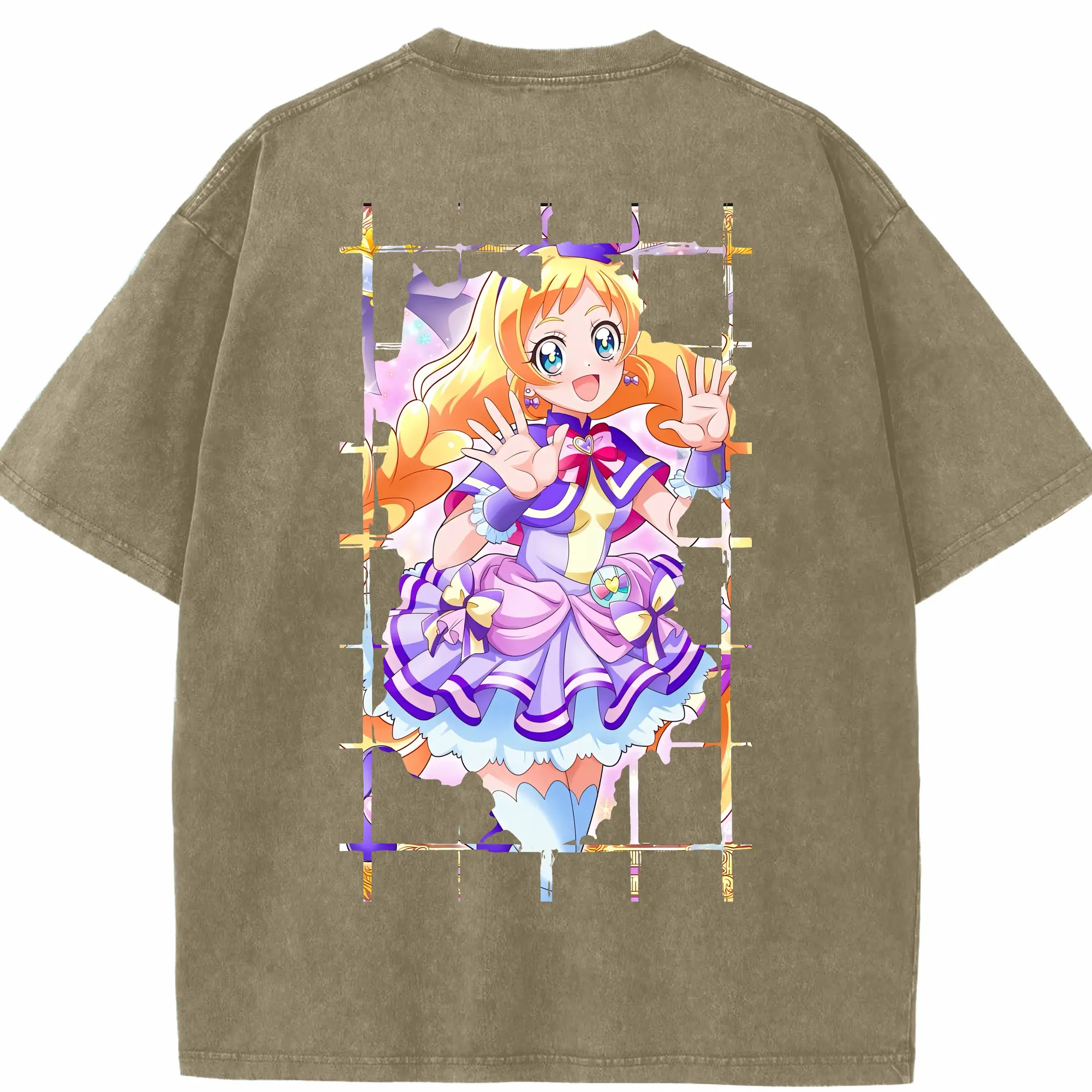 わんだふるぷりきゅあ グッズ 犬飼いろは - 綿100% ヴィンテージ風 半袖Tシャツ ・ フロントプリント ・ 柔らか肌触り ・ 通気性 快適 ・ スポーツ カジュアル 外出用