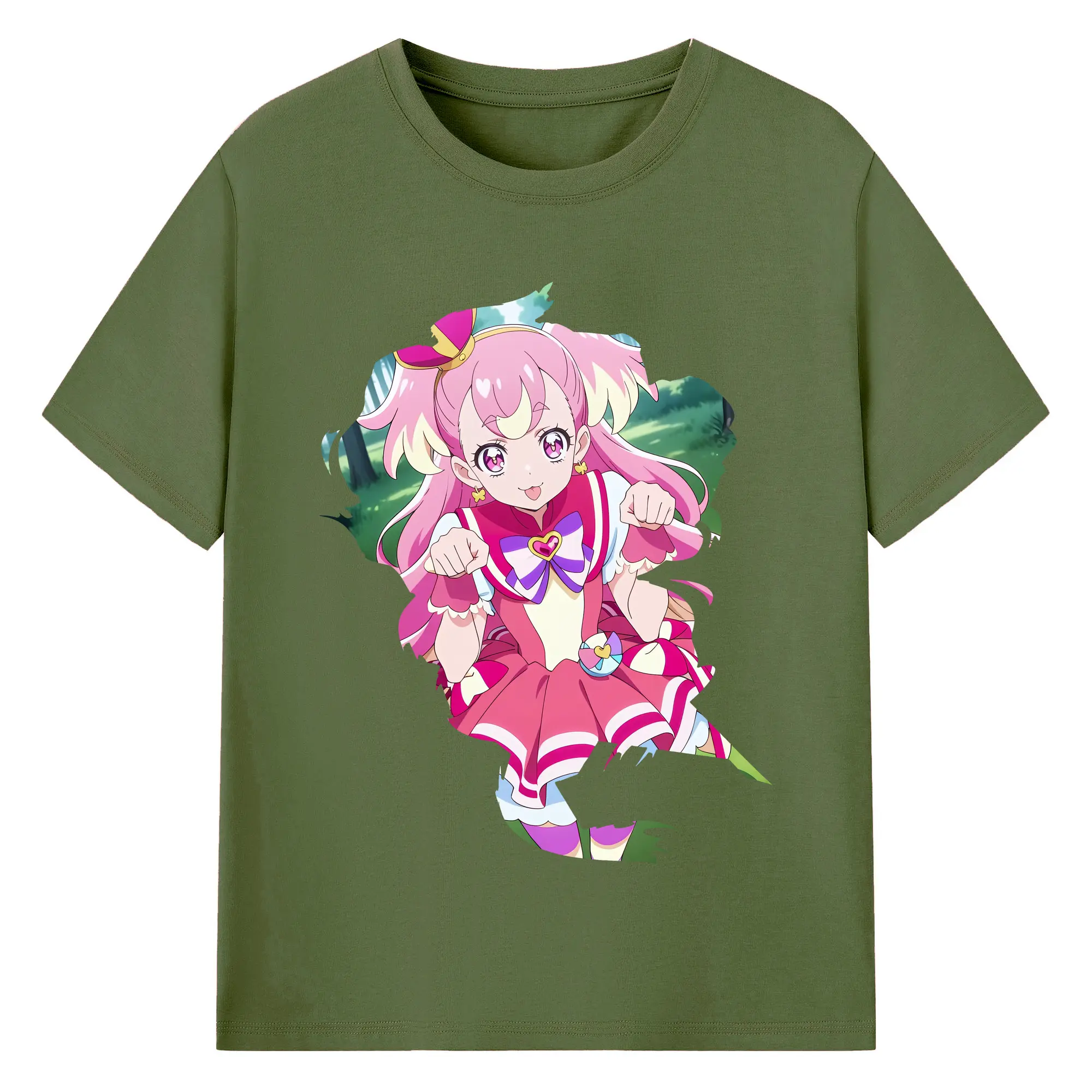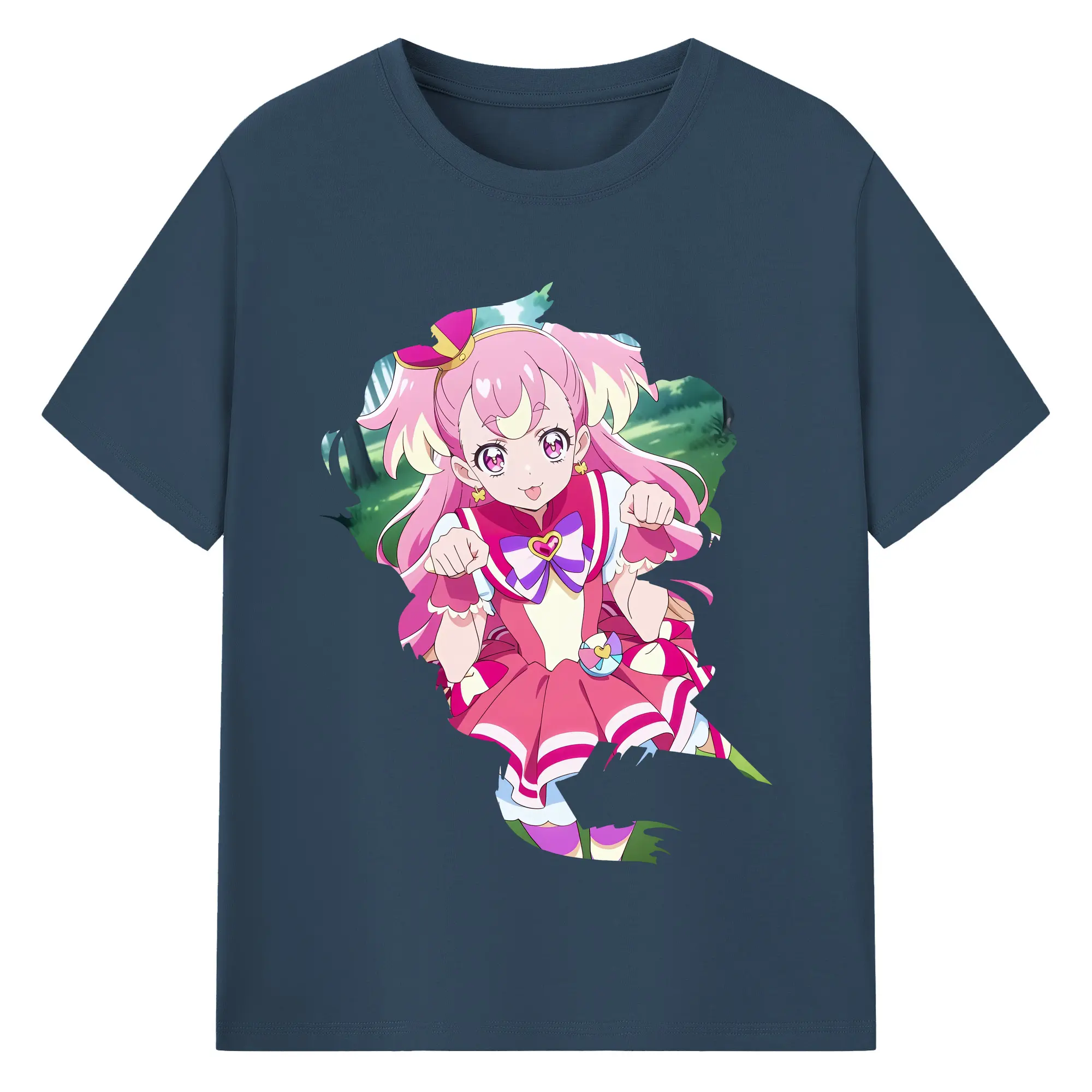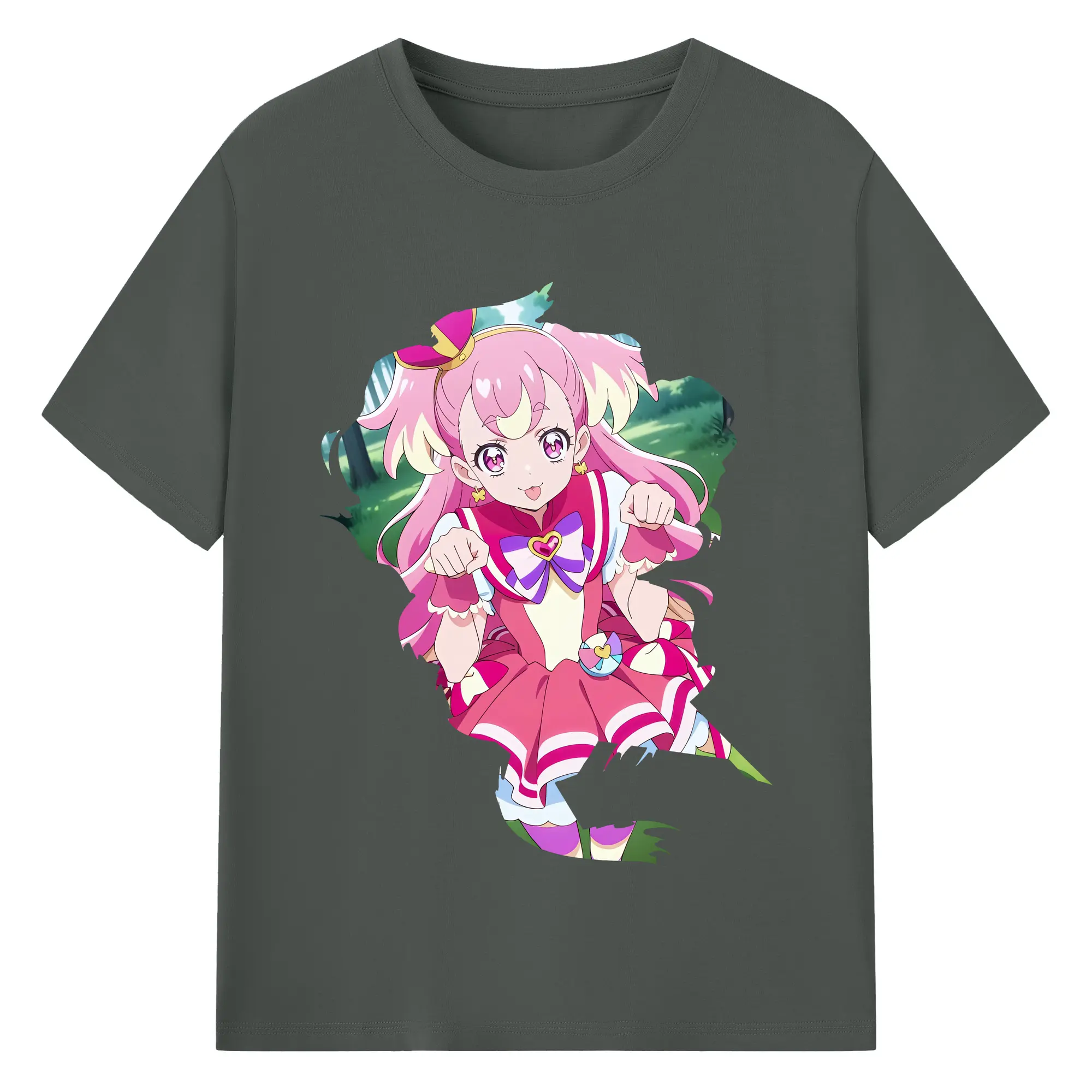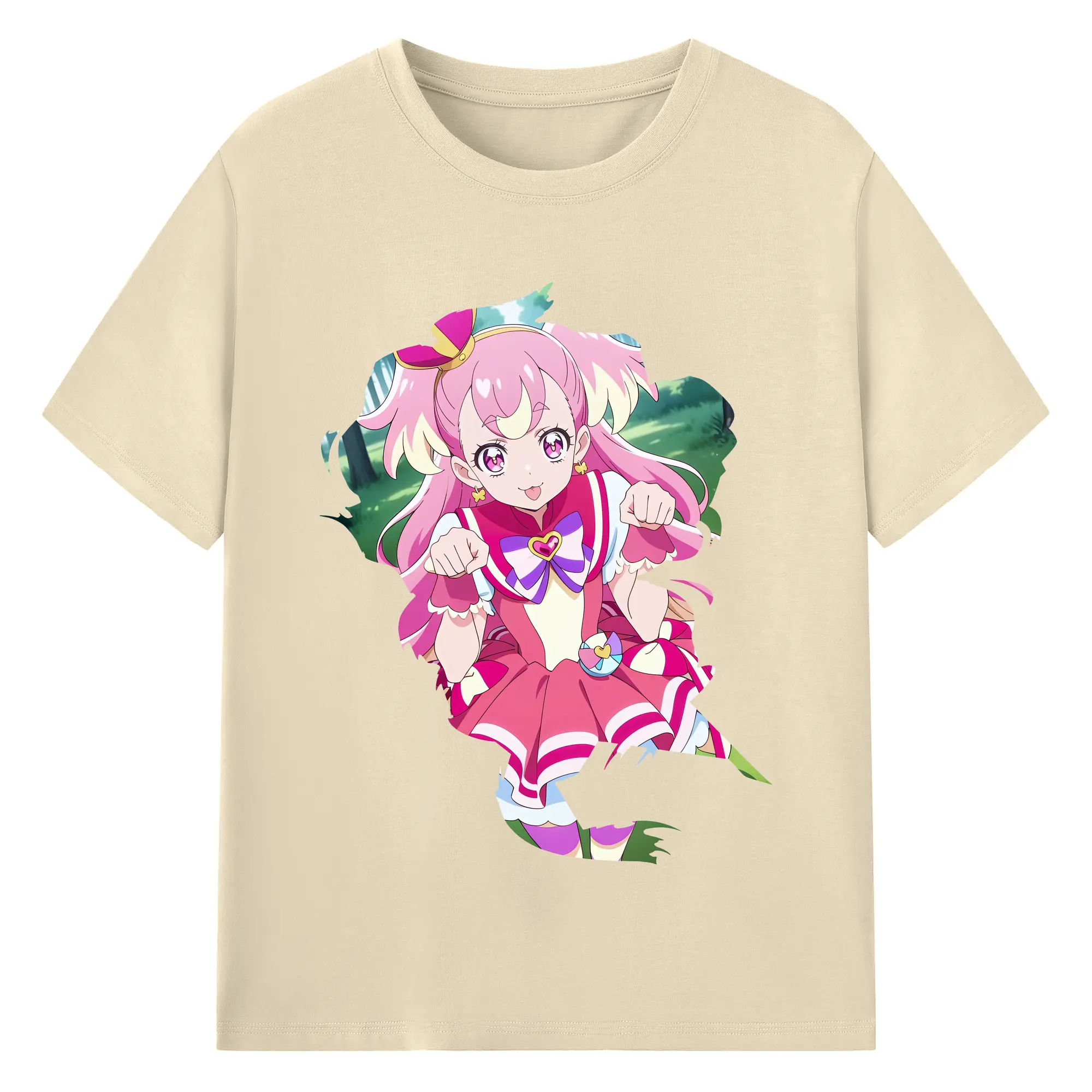 わんだふるぷりきゅあ グッズ 犬飼こむぎ - 綿100% ヴィンテージ風 半袖Tシャツ ・ フロントプリント ・ 柔らか肌触り ・ 通気性 快適 ・ スポーツ カジュアル 外出用