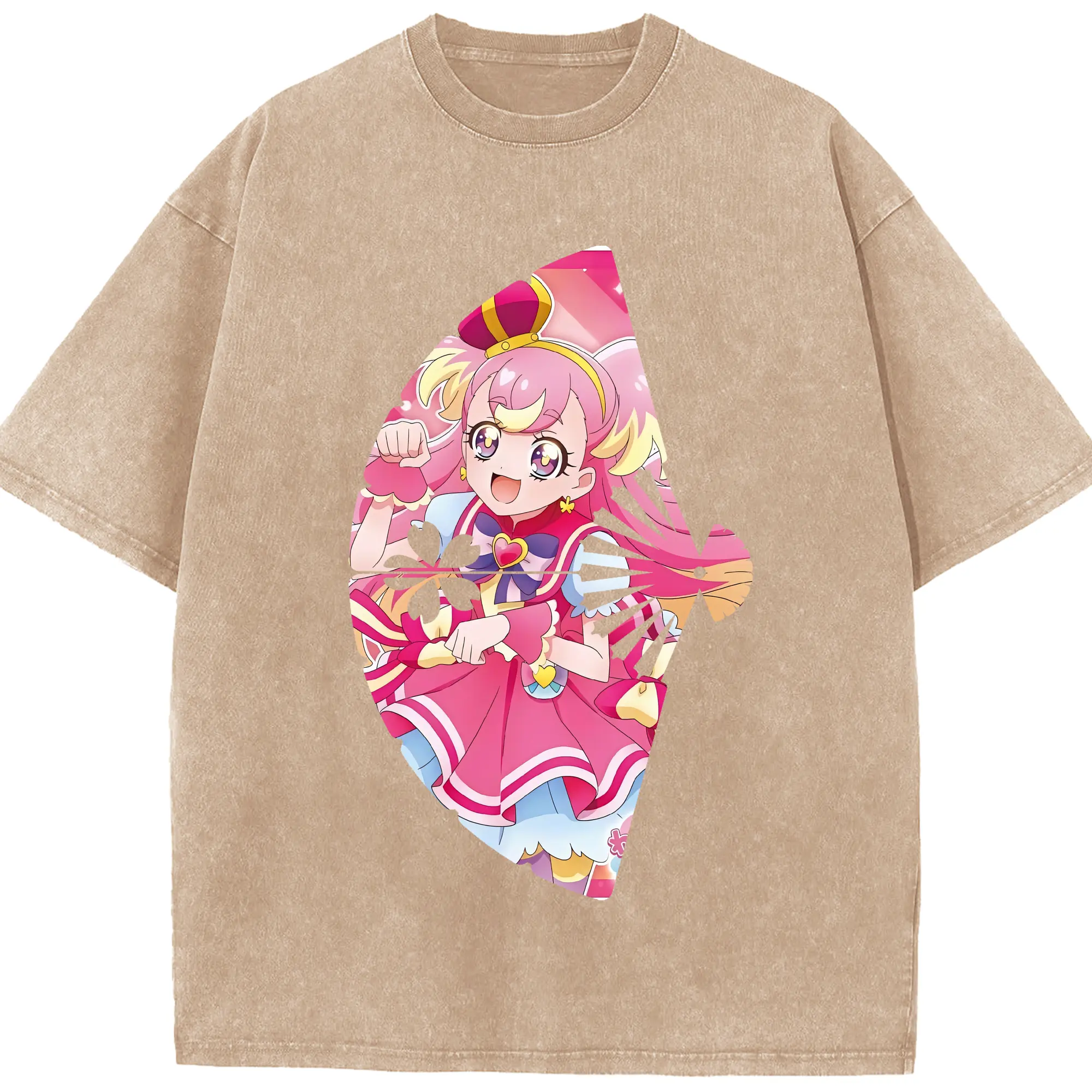 わんだふるぷりきゅあ グッズ 犬飼こむぎ - 綿100% ヴィンテージ風 半袖Tシャツ ・ 背面プリント ・ 柔らか肌触り ・ 通気性 快適 ・ スポーツ カジュアル 外出用