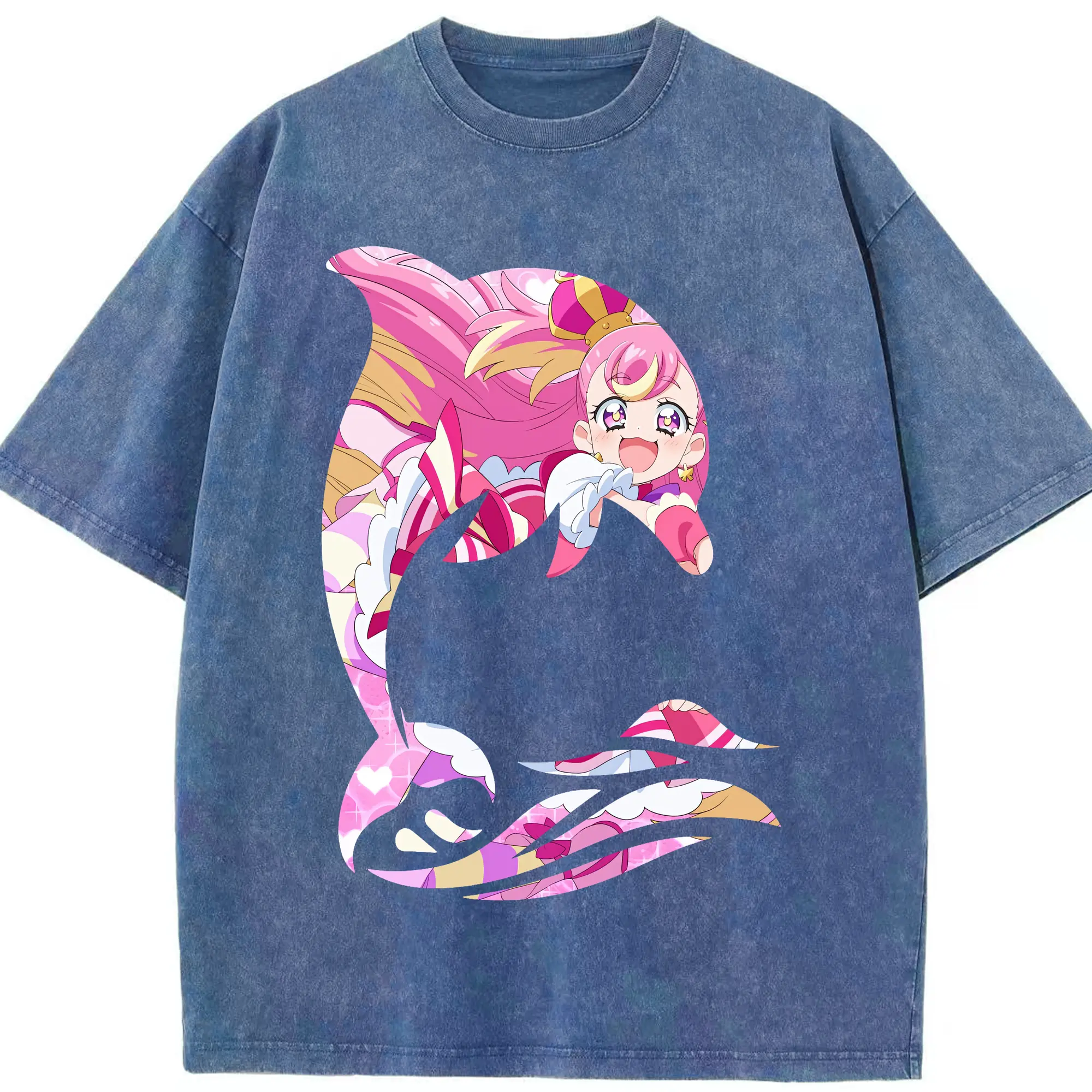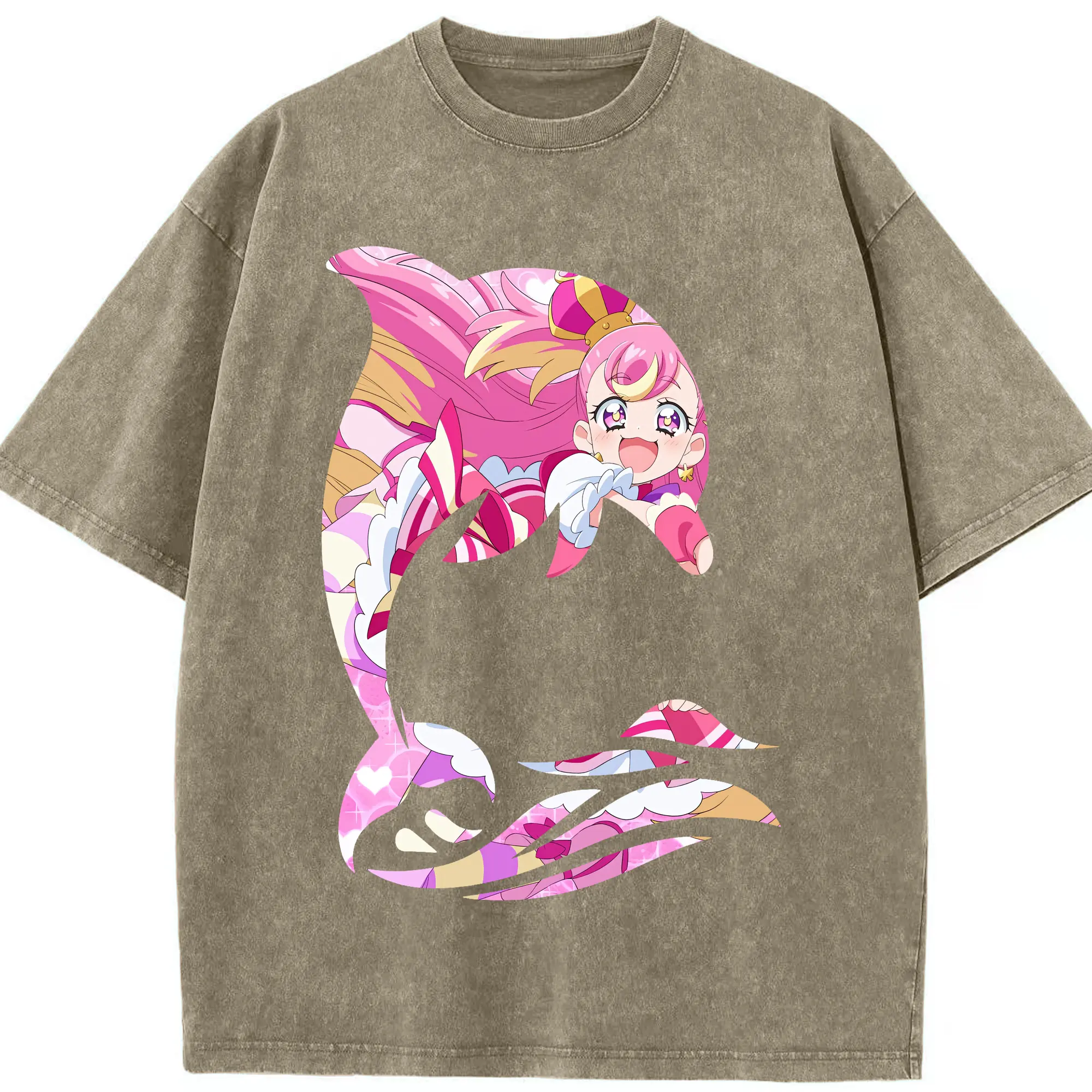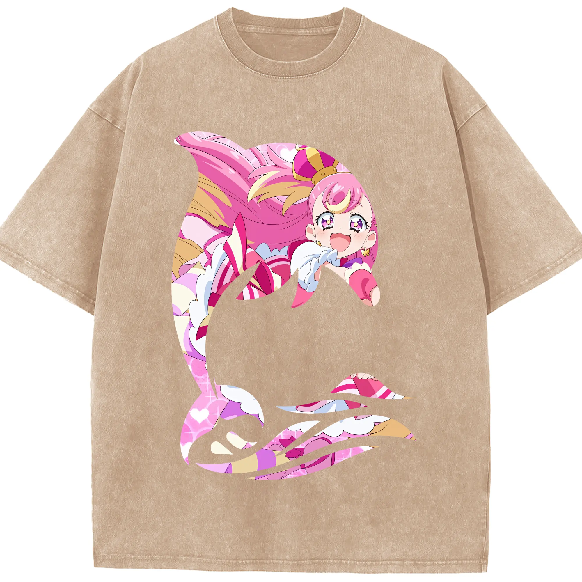 わんだふるぷりきゅあ グッズ 犬飼こむぎ - 綿100% ヴィンテージ風 半袖Tシャツ ・ 背面プリント ・ 柔らか肌触り ・ 通気性 快適 ・ スポーツ カジュアル 外出用
