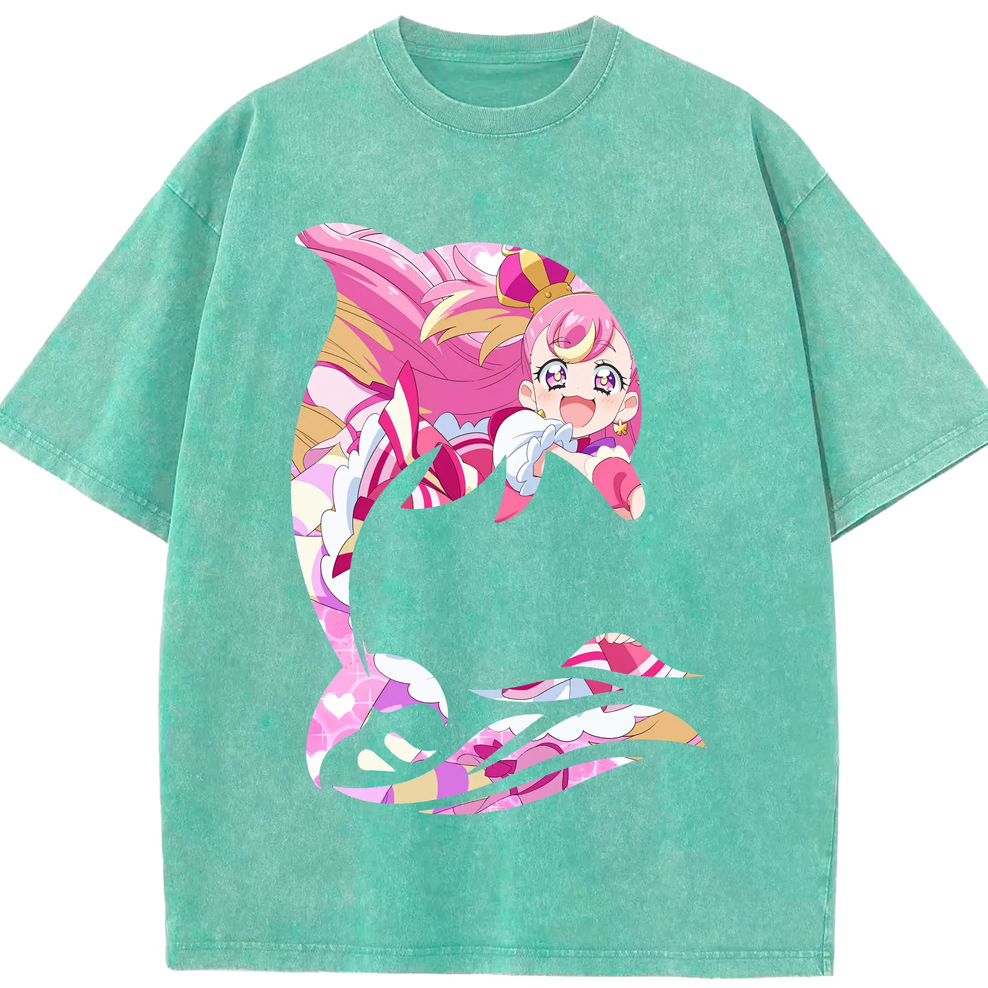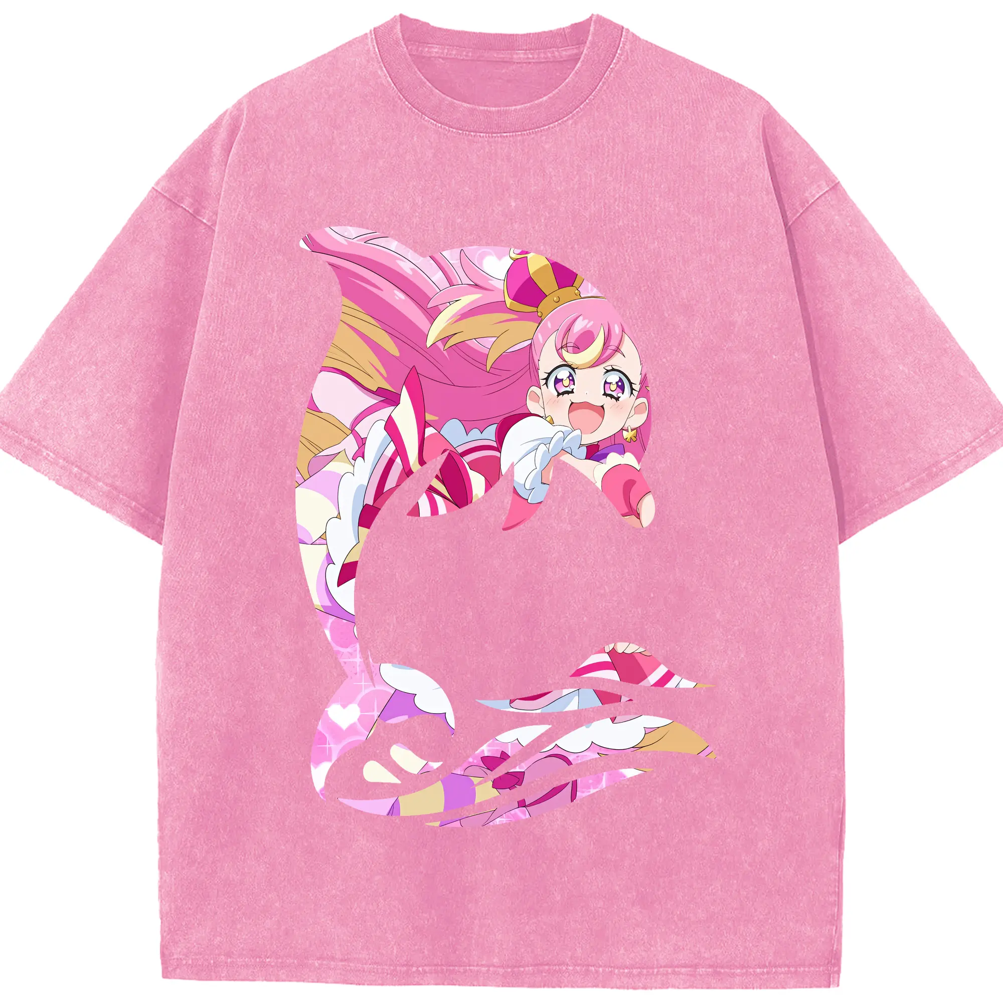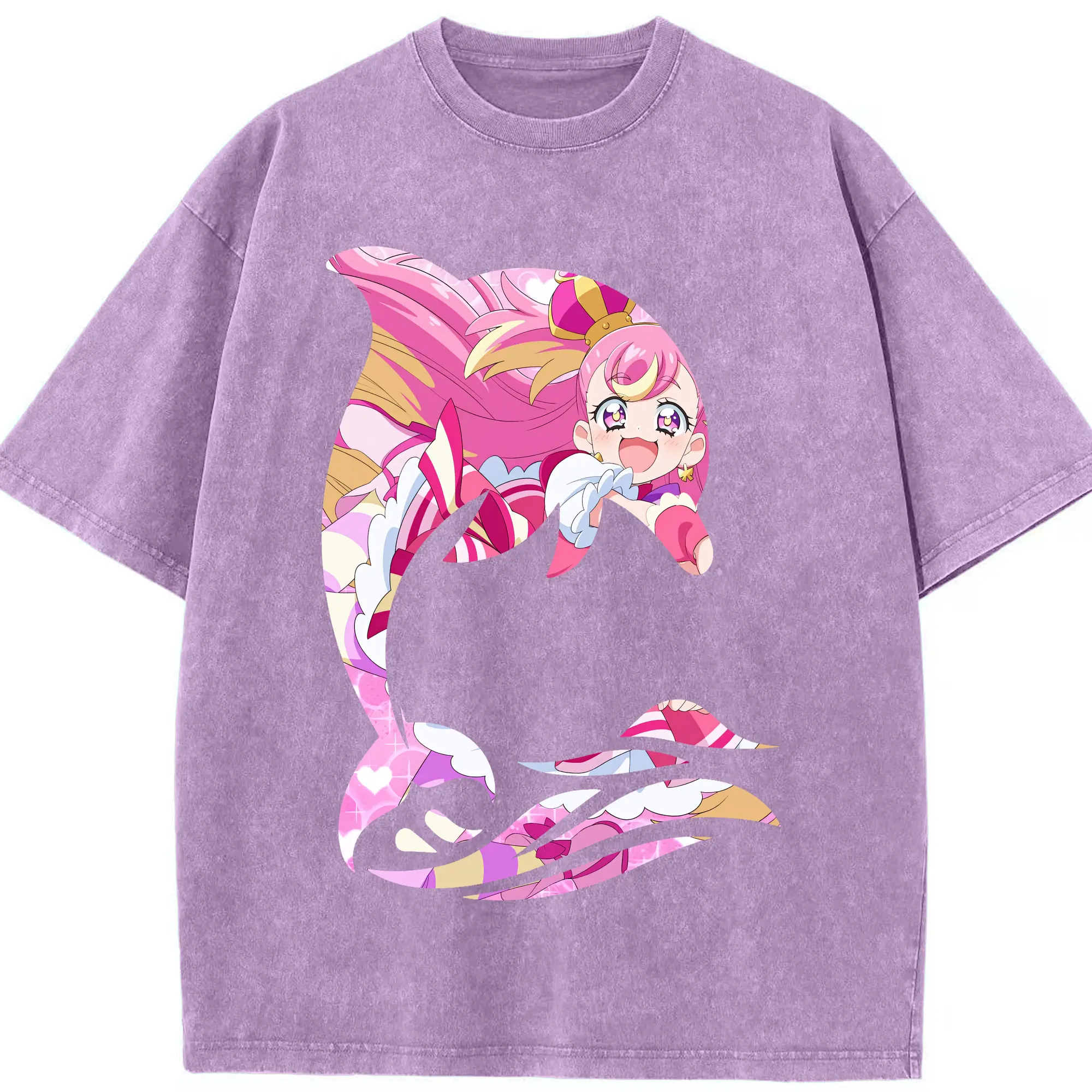 わんだふるぷりきゅあ グッズ 犬飼こむぎ - 綿100% ヴィンテージ風 半袖Tシャツ ・ 背面プリント ・ 柔らか肌触り ・ 通気性 快適 ・ スポーツ カジュアル 外出用