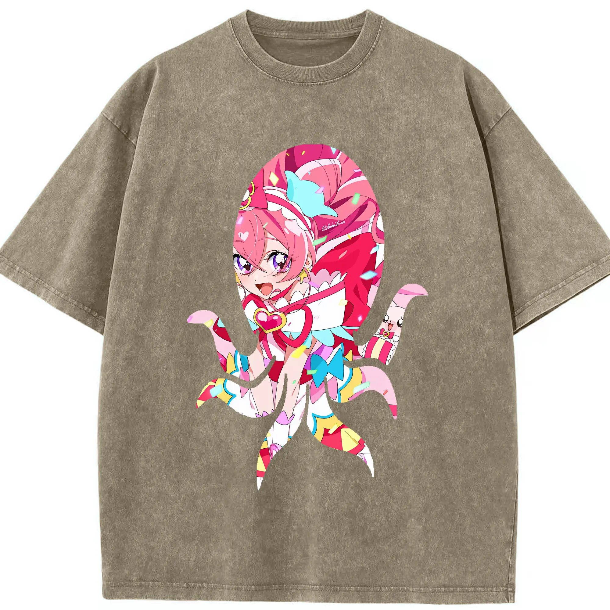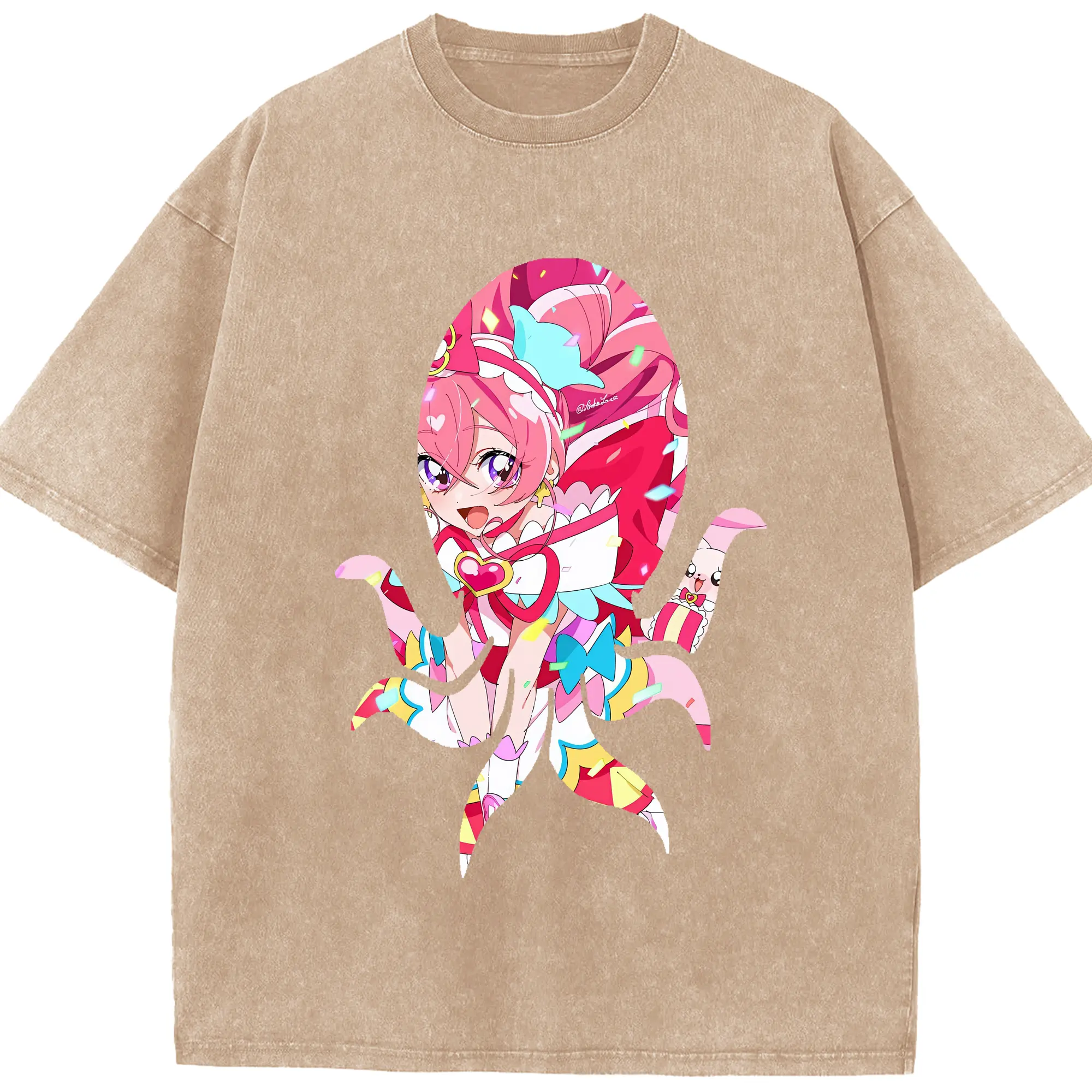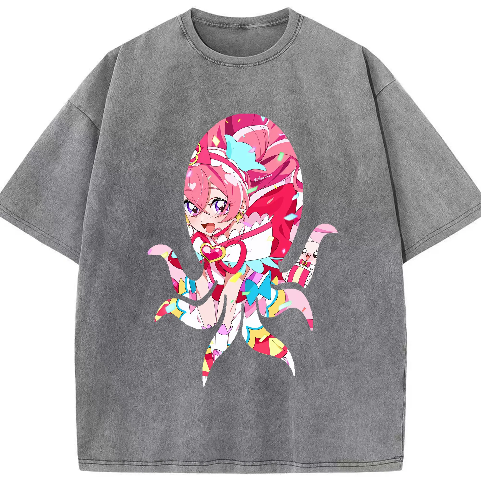 わんだふるぷりきゅあ グッズ 犬飼こむぎ - 綿100% ヴィンテージ風 半袖Tシャツ ・ 背面プリント ・ 柔らか肌触り ・ 通気性 快適 ・ スポーツ カジュアル 外出用