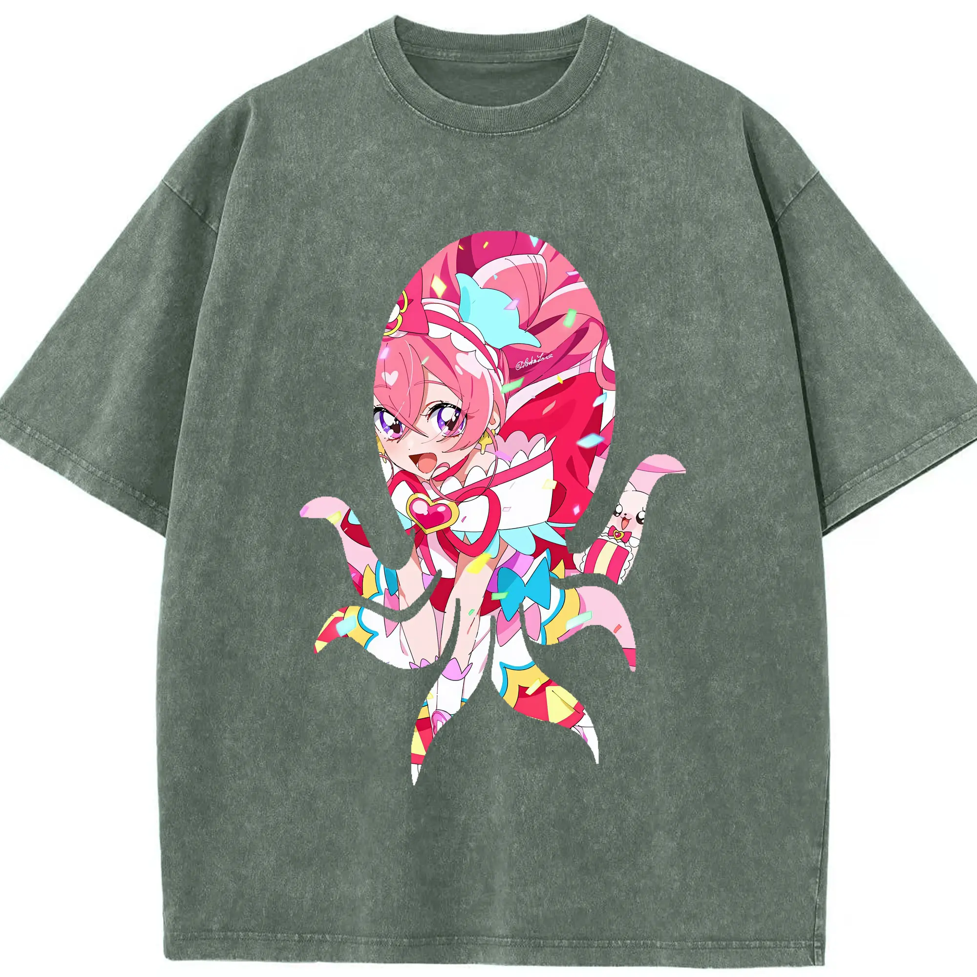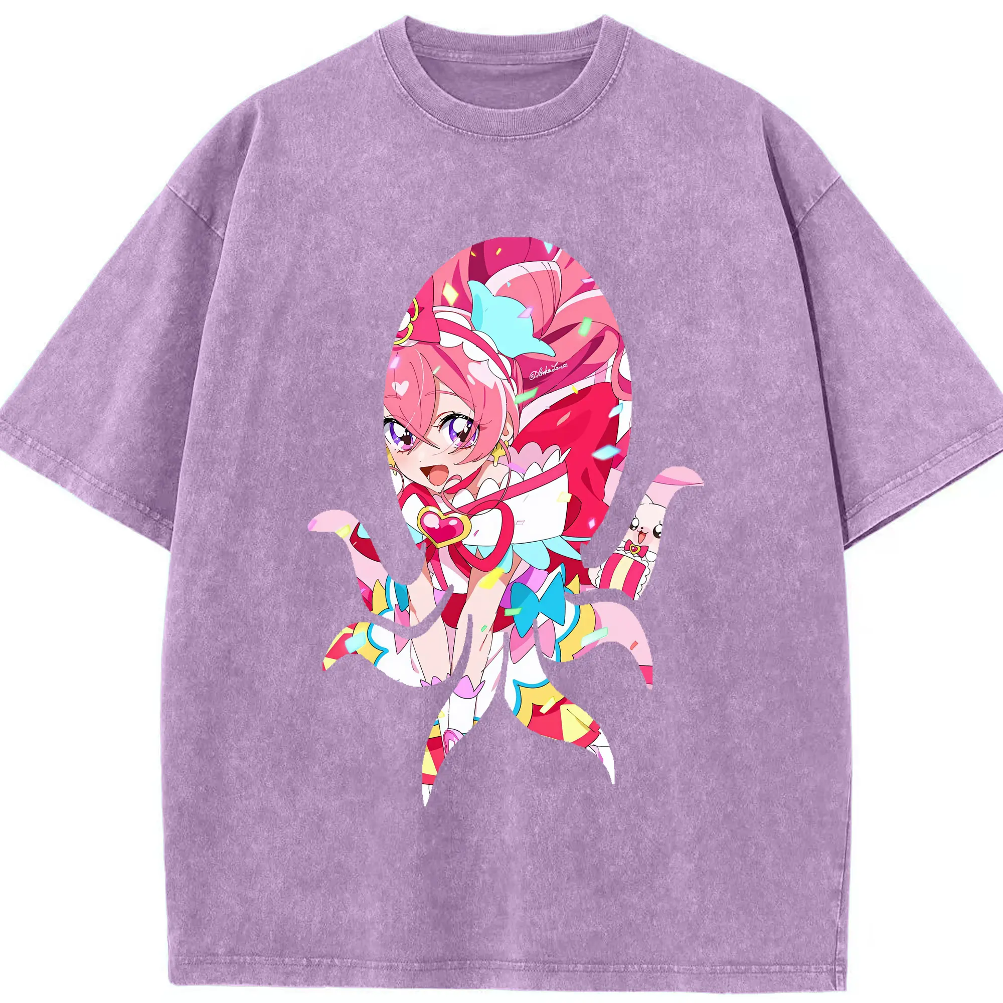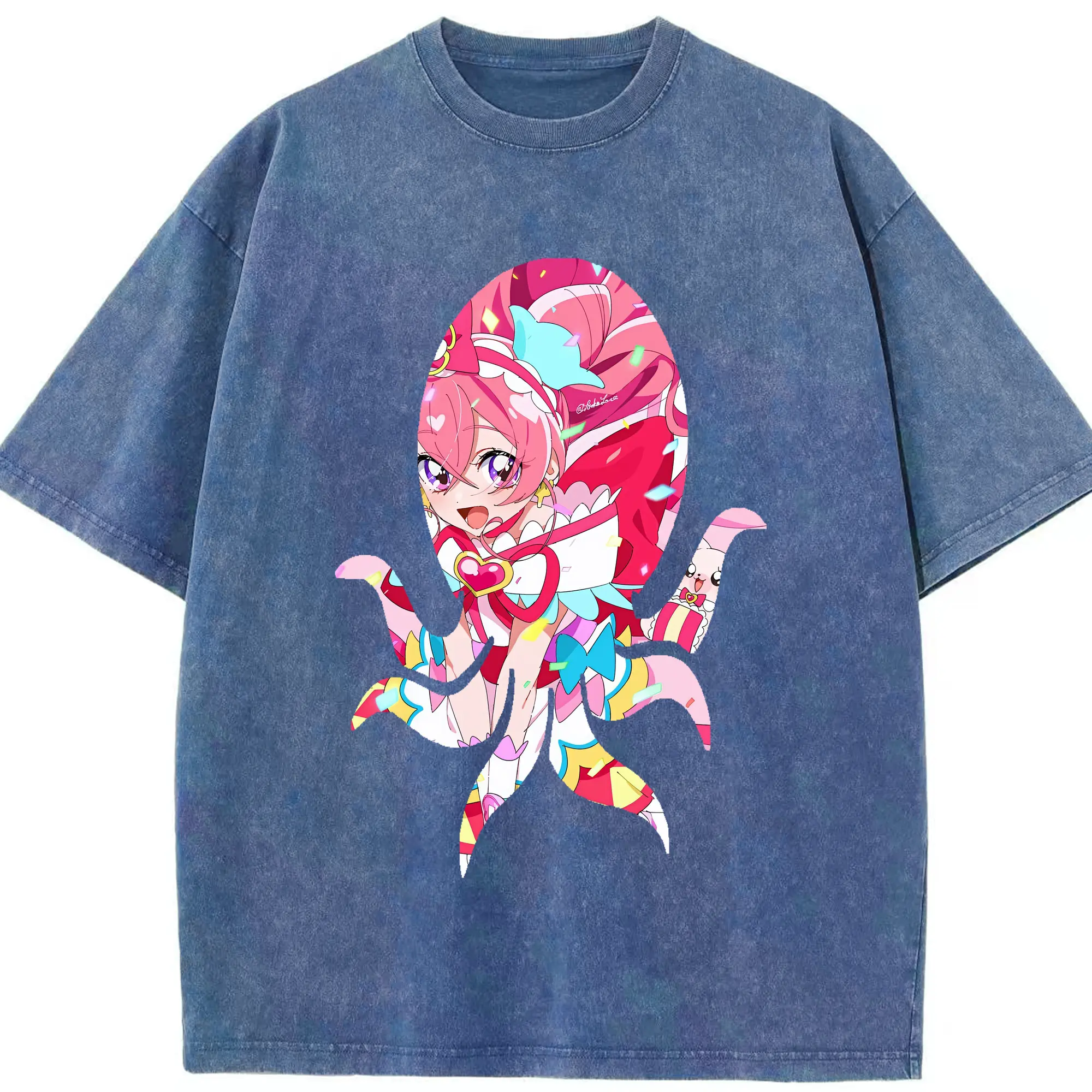わんだふるぷりきゅあ グッズ 犬飼こむぎ - 綿100% ヴィンテージ風 半袖Tシャツ ・ 背面プリント ・ 柔らか肌触り ・ 通気性 快適 ・ スポーツ カジュアル 外出用