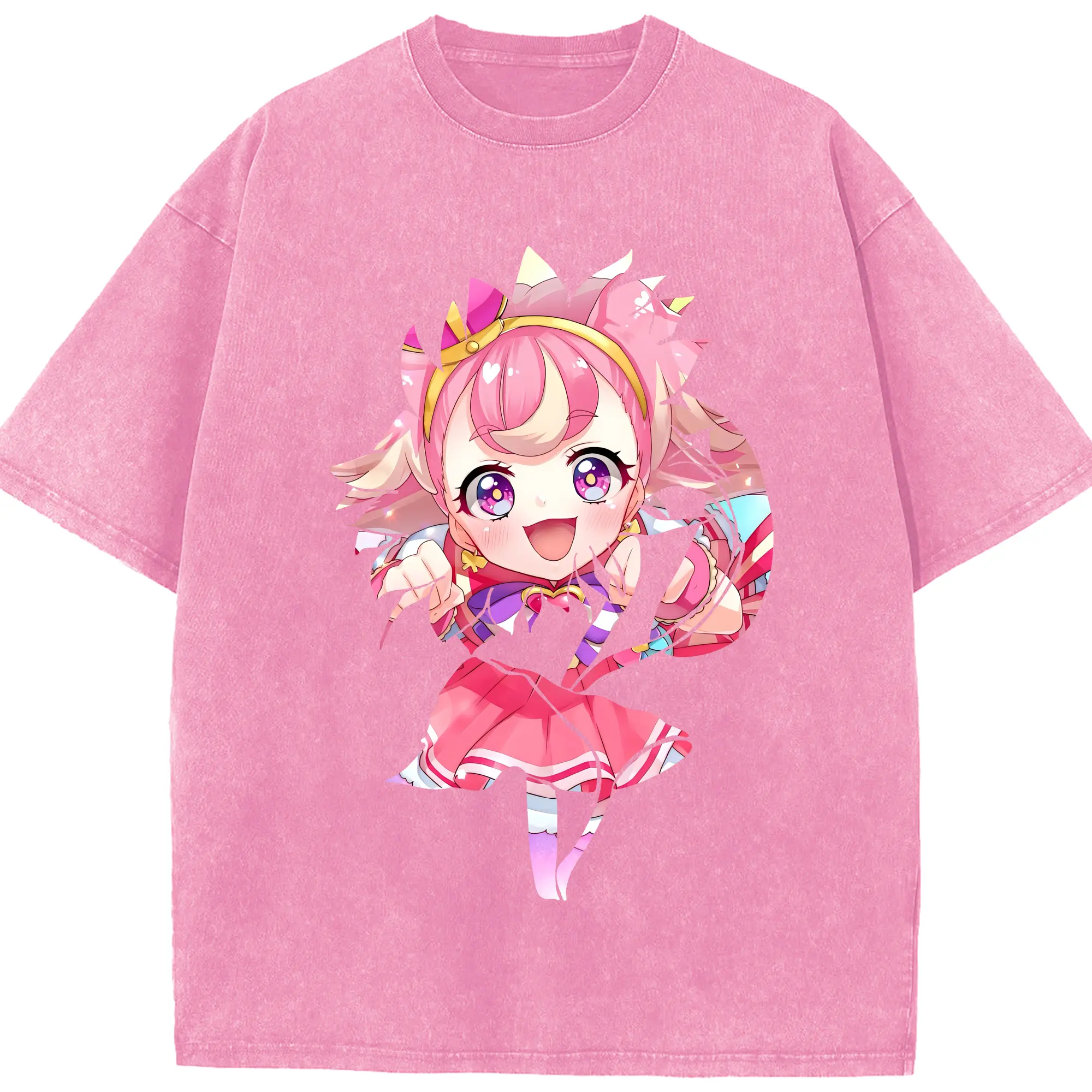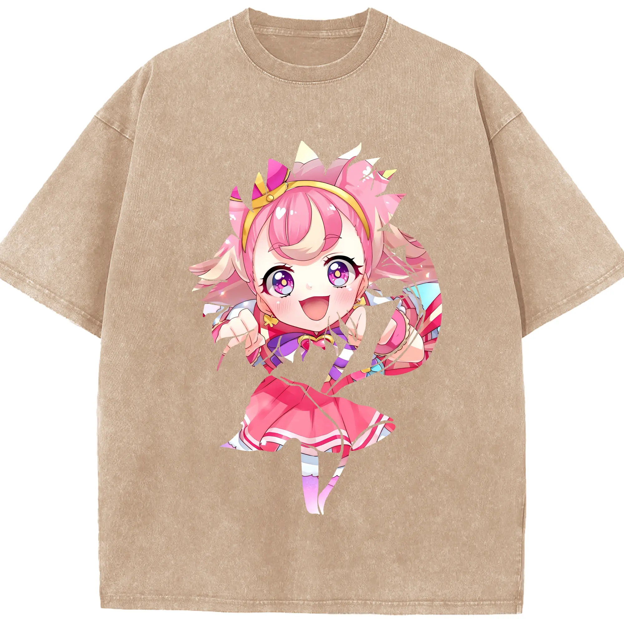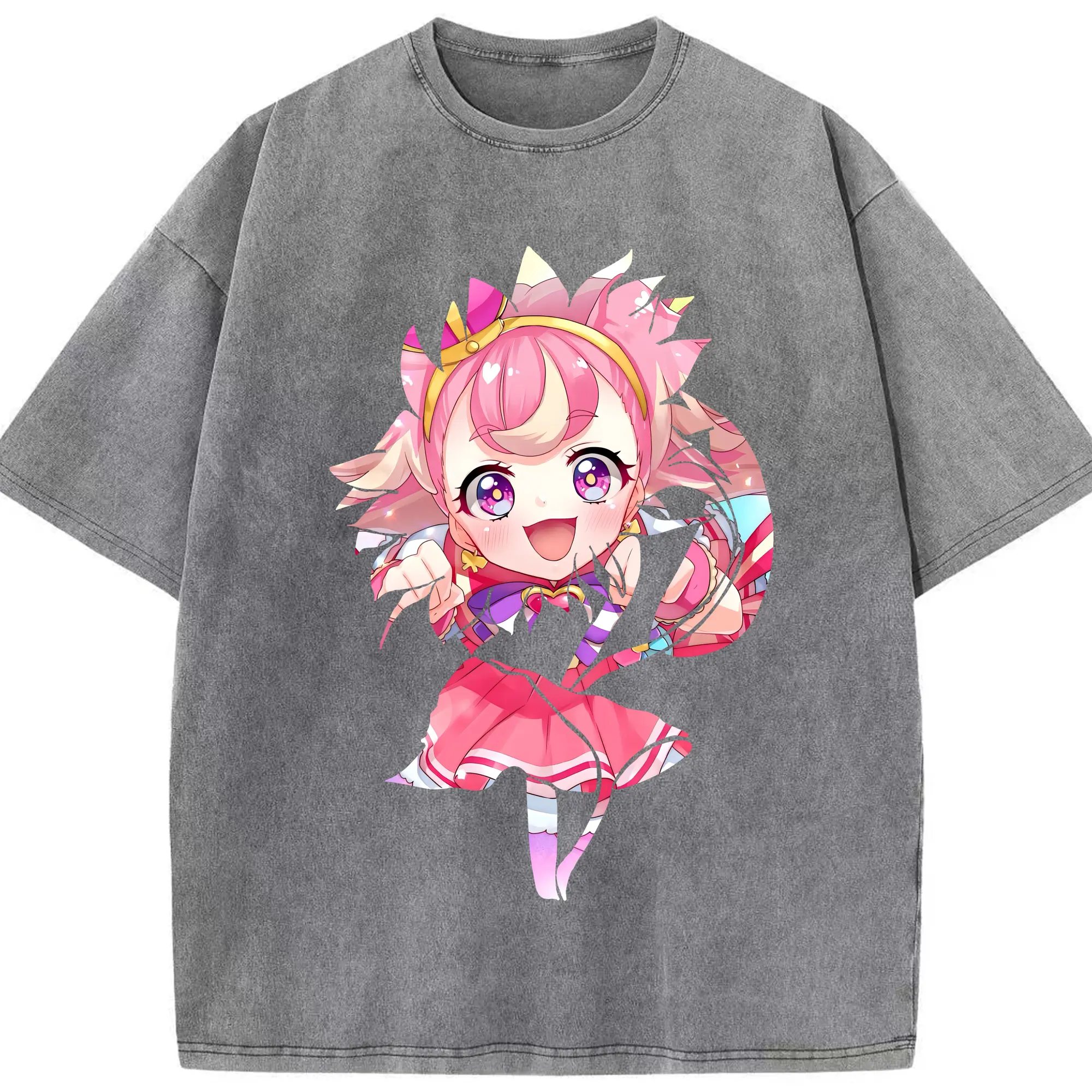 アイカツ グッズ 一ノ瀬 かえで - 綿100% ヴィンテージ風 半袖Tシャツ ・ フロントプリント ・ 柔らか肌触り ・ 通気性 快適 ・ スポーツ カジュアル 外出用
