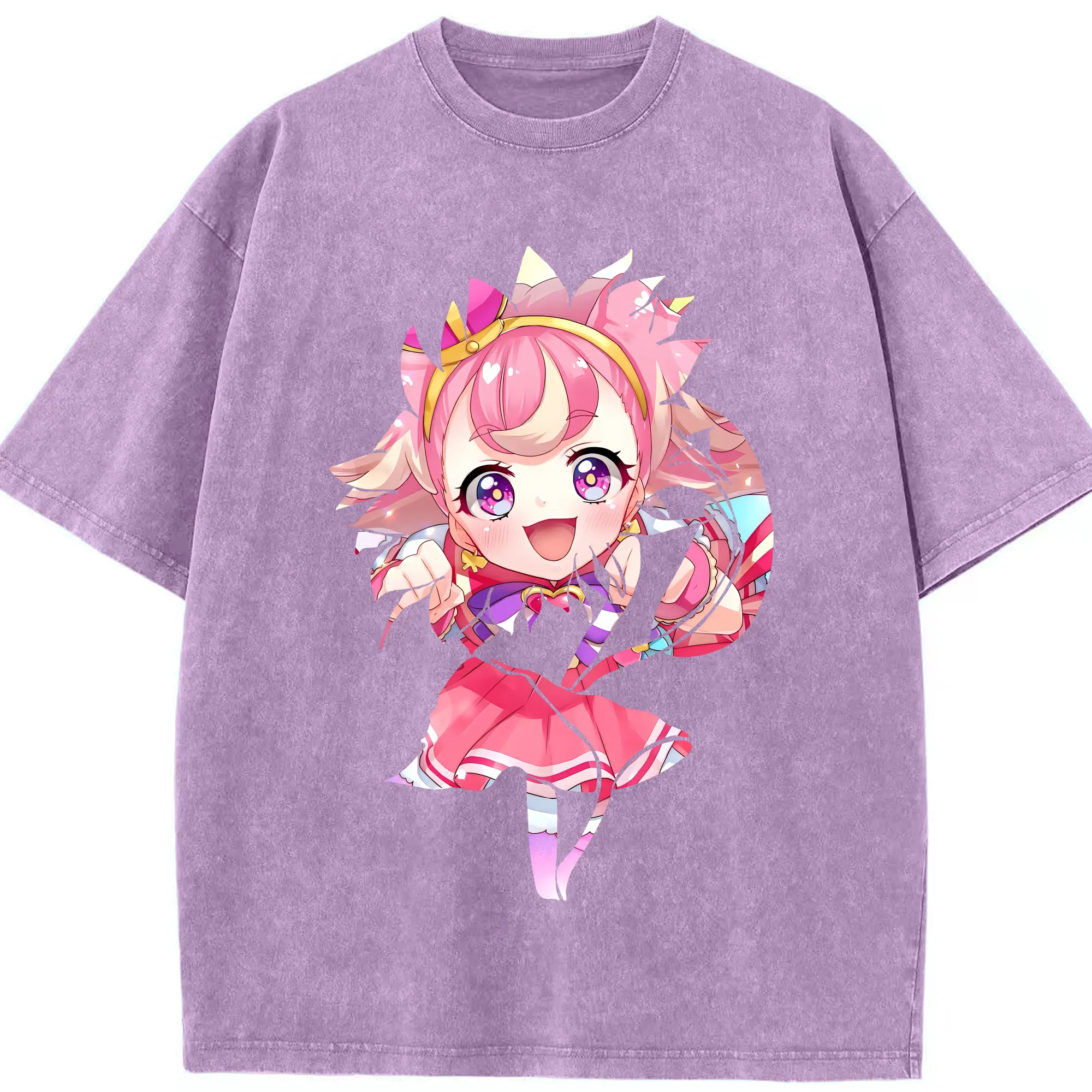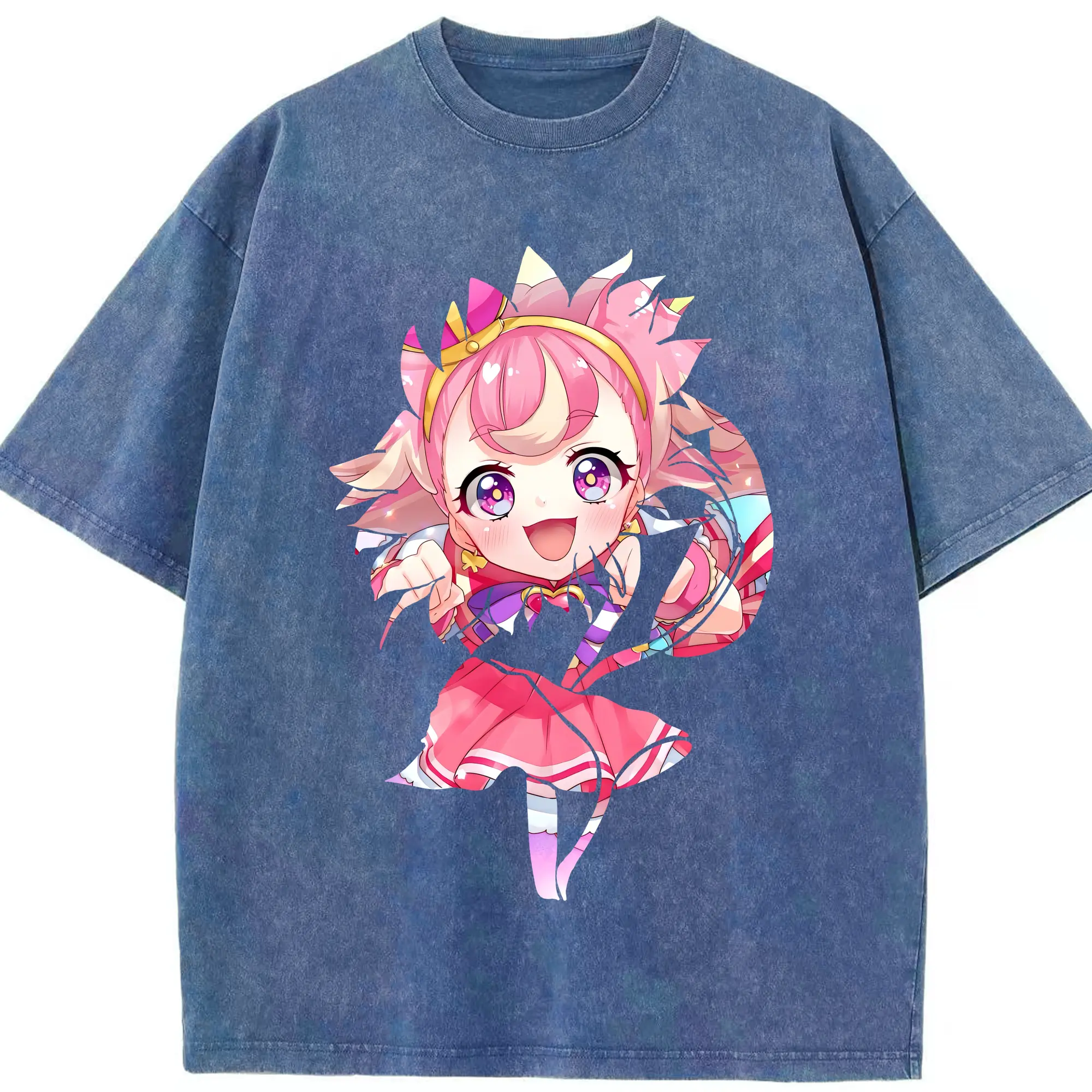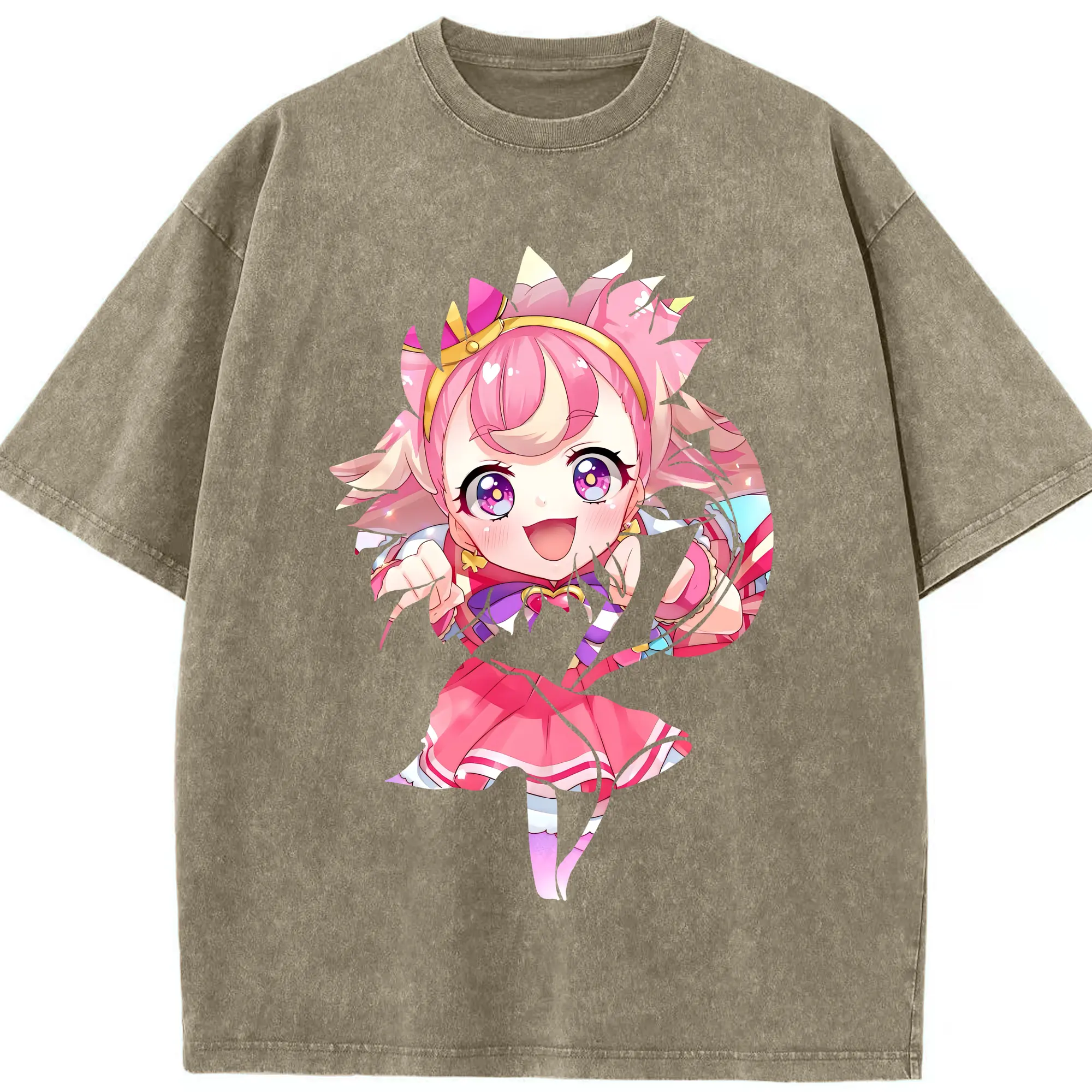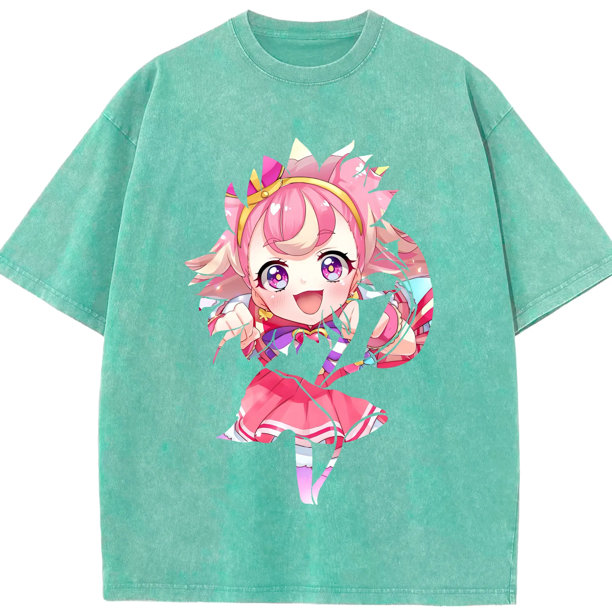 アイカツ グッズ 一ノ瀬 かえで - 綿100% ヴィンテージ風 半袖Tシャツ ・ フロントプリント ・ 柔らか肌触り ・ 通気性 快適 ・ スポーツ カジュアル 外出用