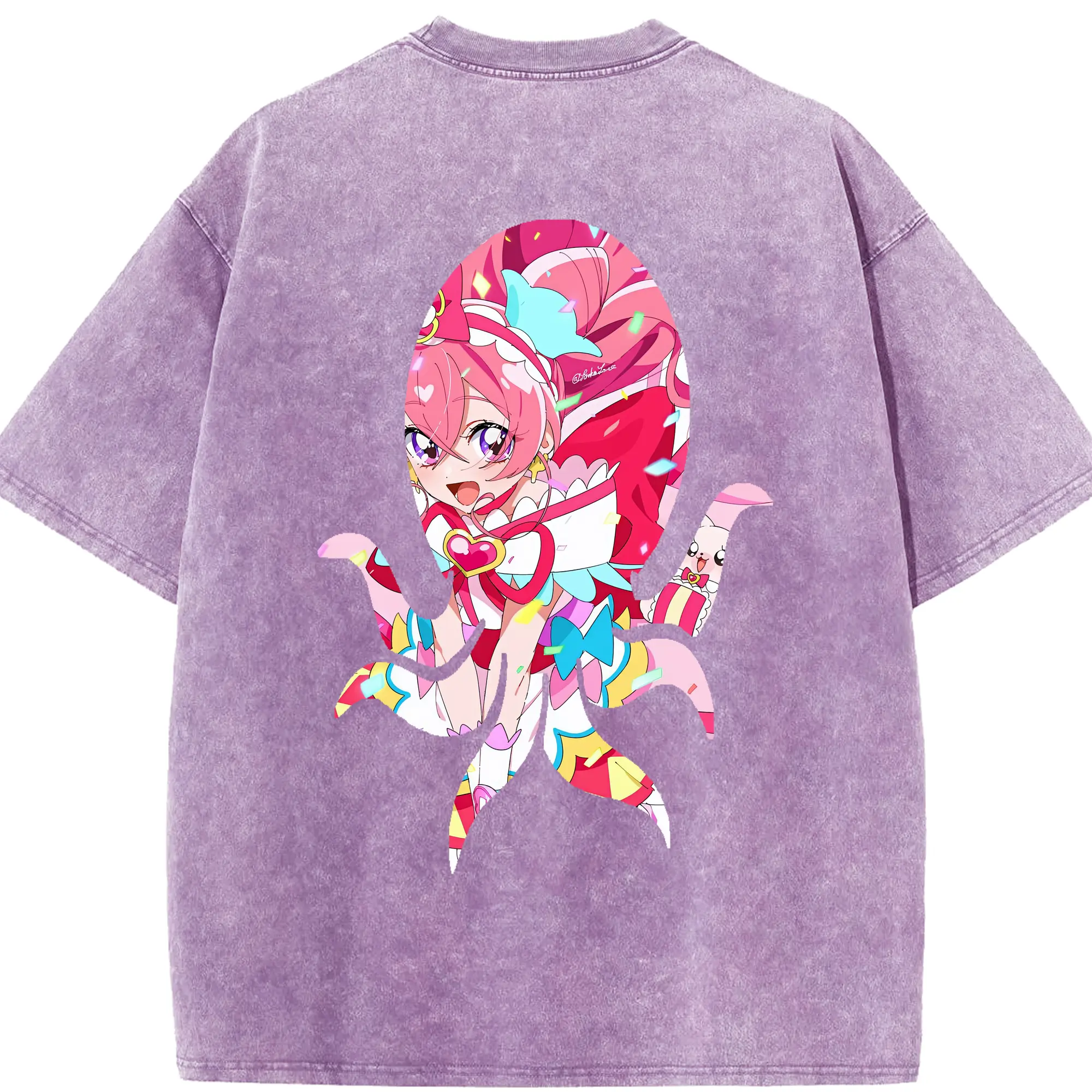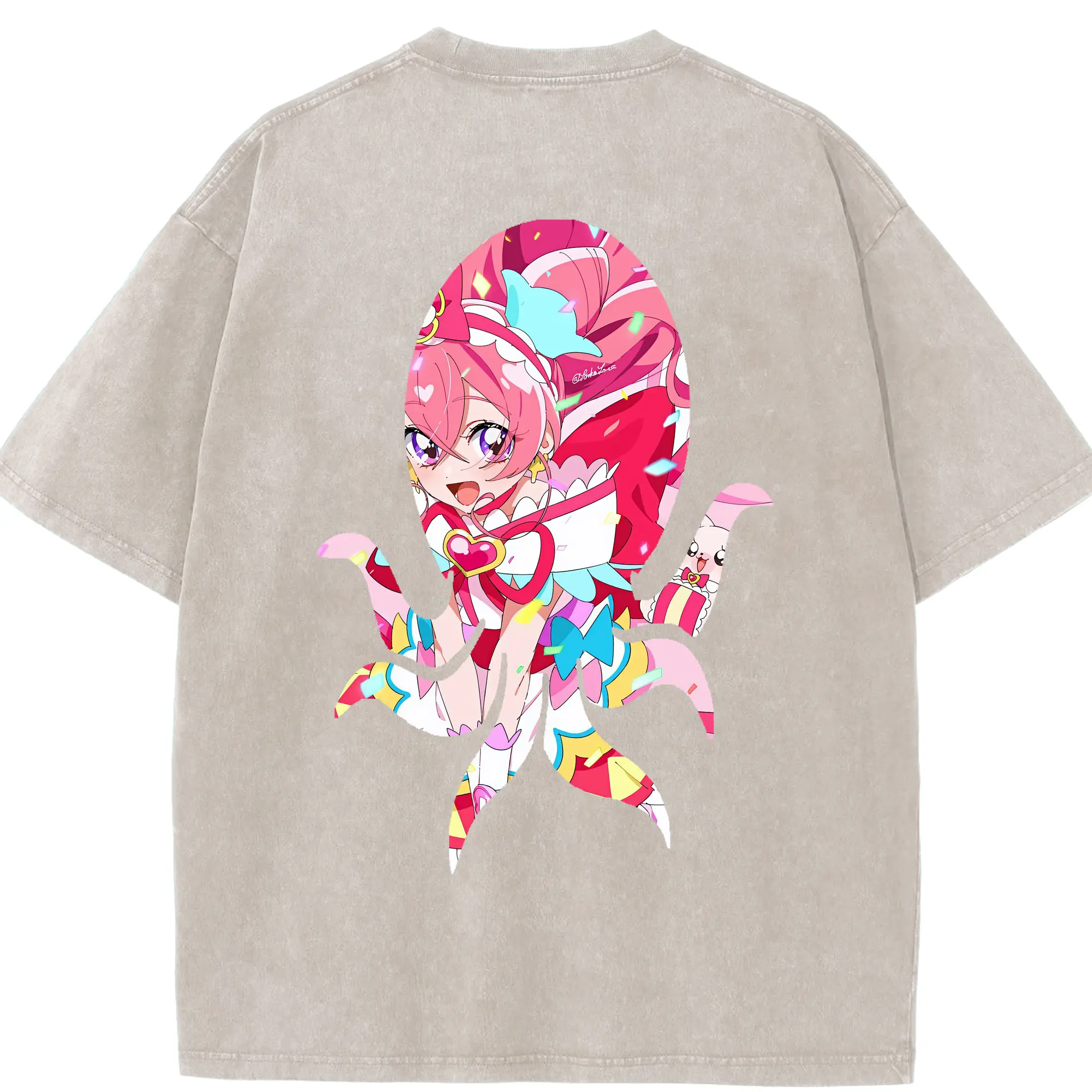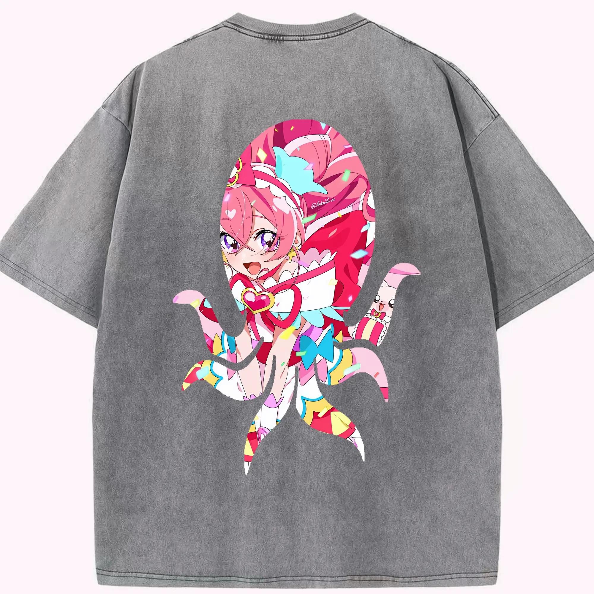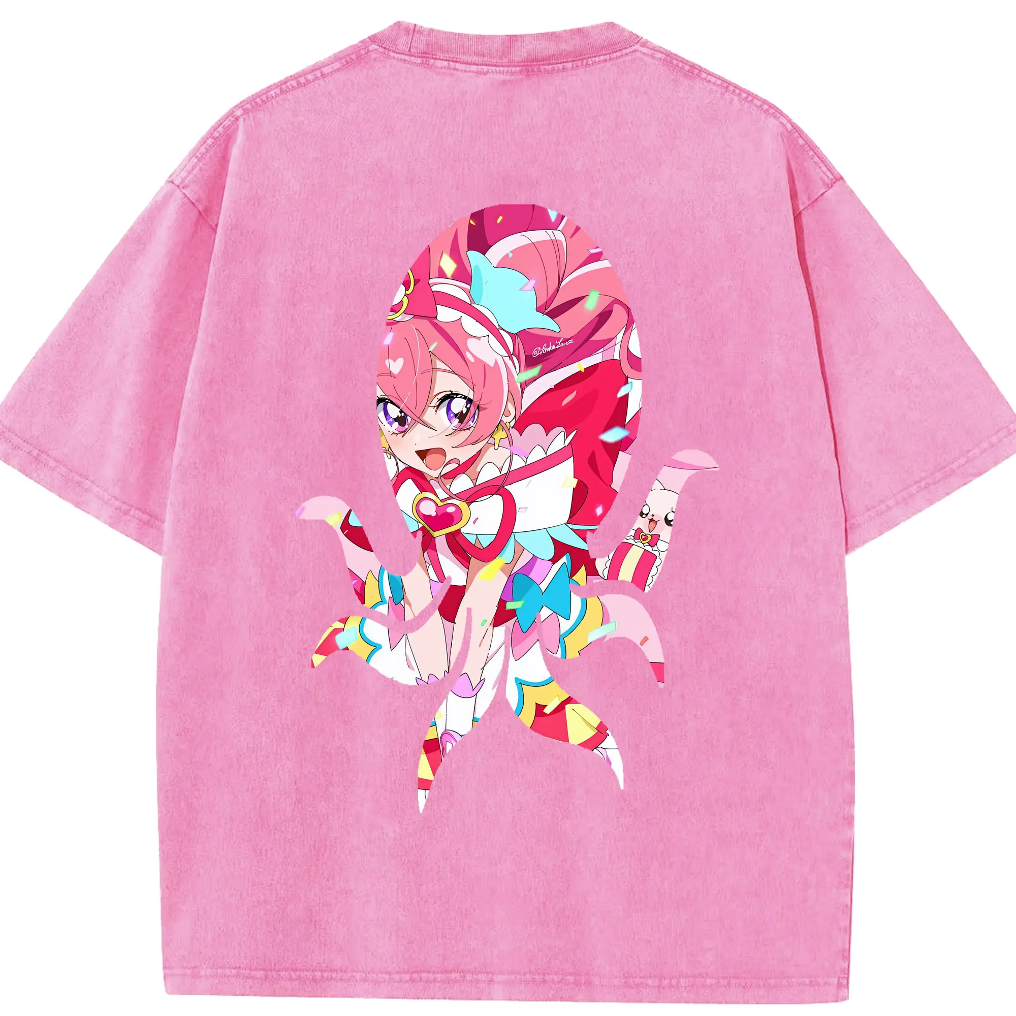 わんだふるぷりきゅあ グッズ 犬飼いろは - 綿100% ヴィンテージ風 半袖Tシャツ ・ 背面プリント ・ 柔らか肌触り ・ 通気性 快適 ・ スポーツ カジュアル 外出用