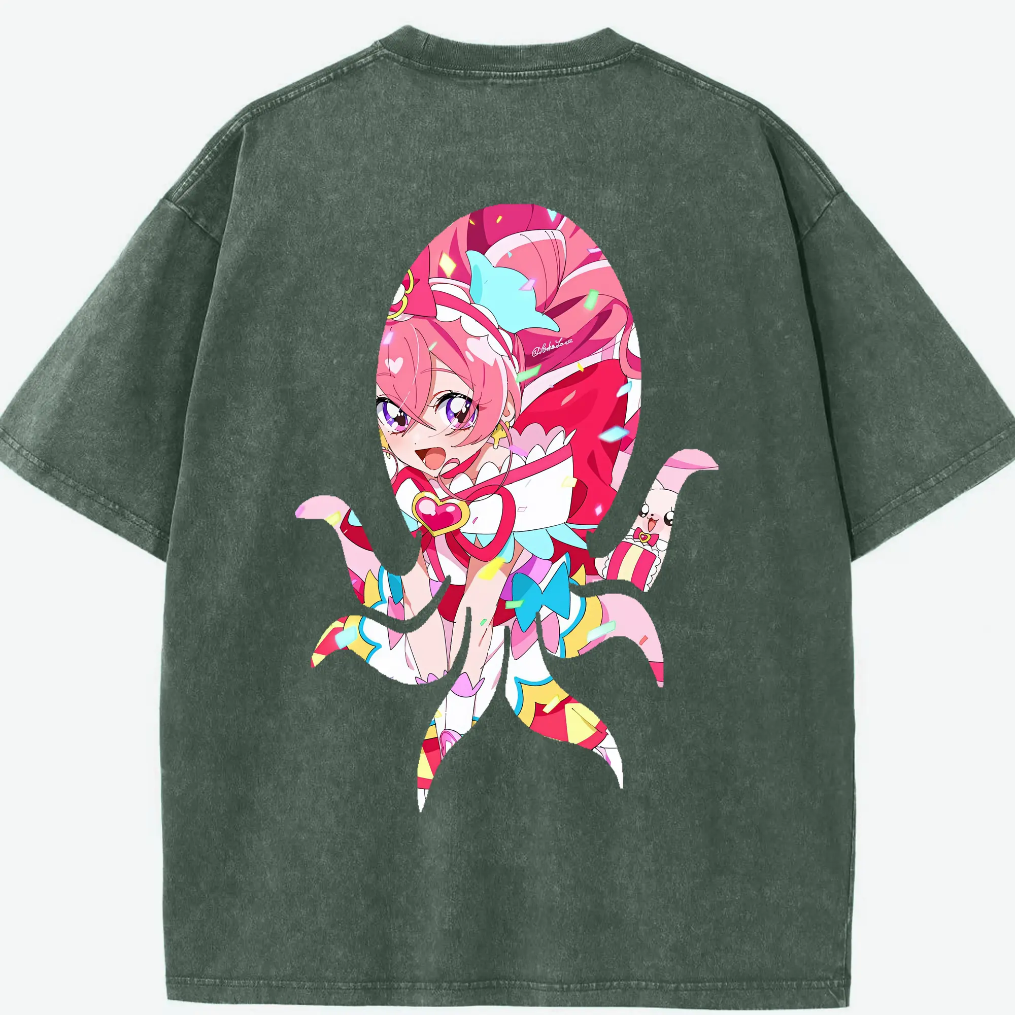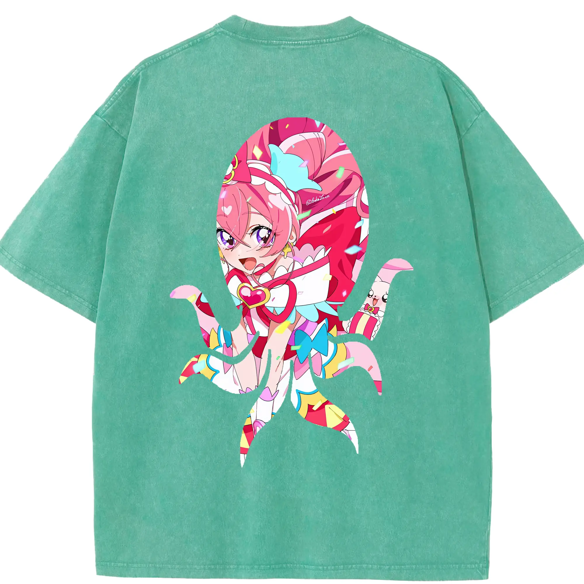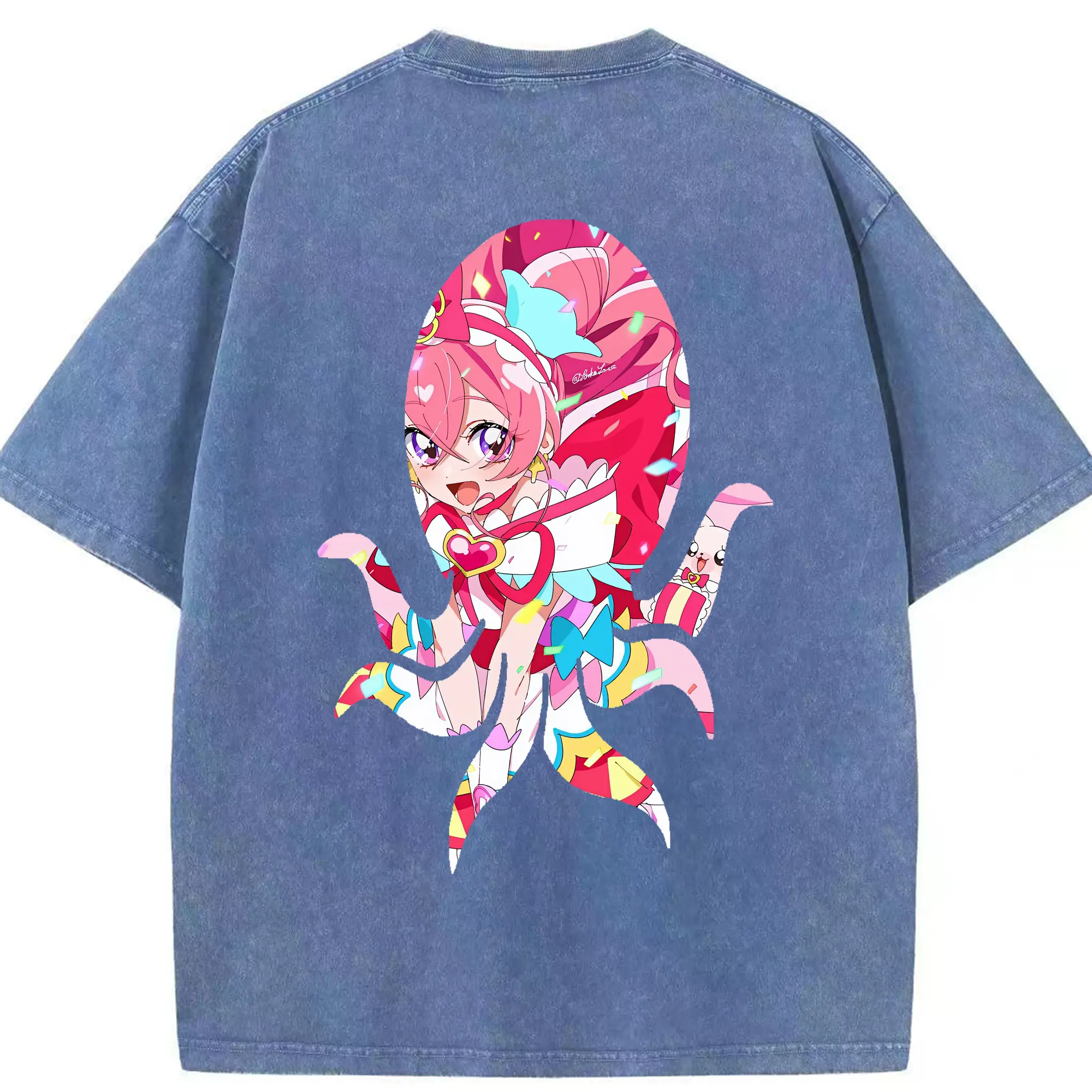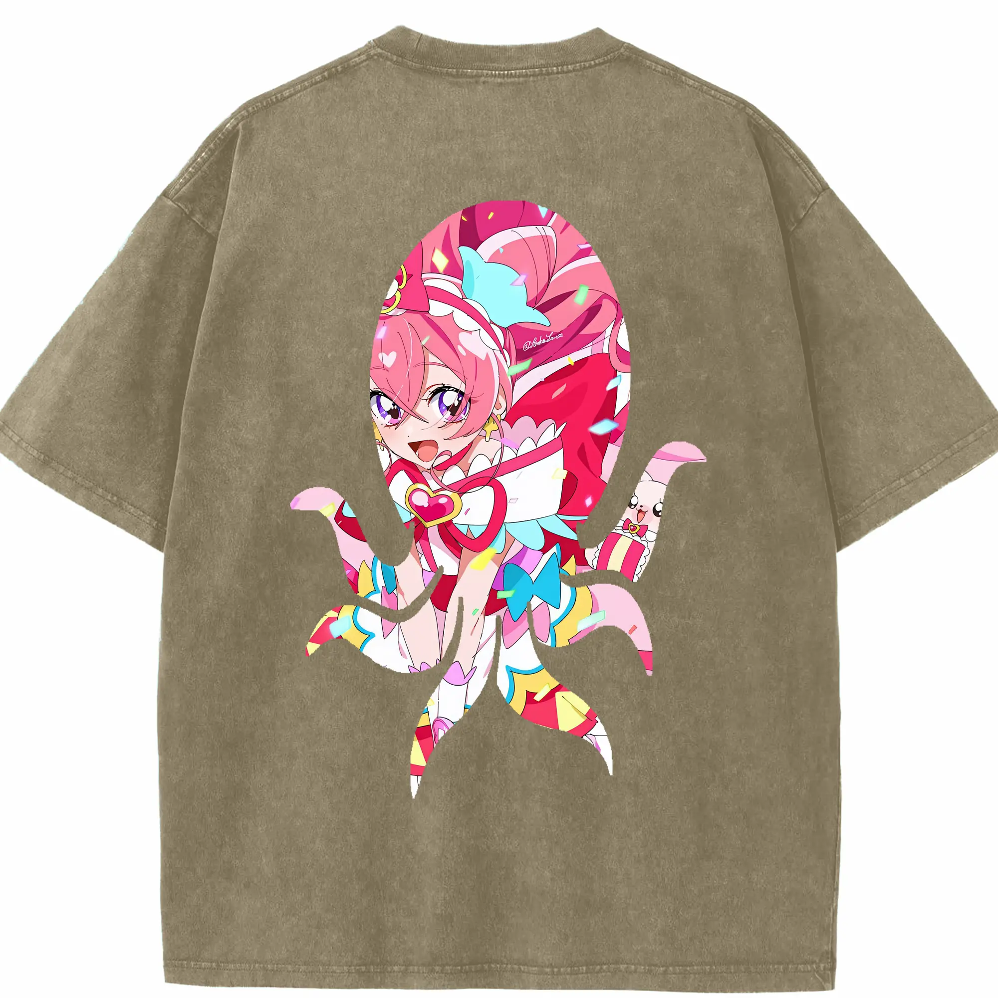 わんだふるぷりきゅあ グッズ 犬飼いろは - 綿100% ヴィンテージ風 半袖Tシャツ ・ 背面プリント ・ 柔らか肌触り ・ 通気性 快適 ・ スポーツ カジュアル 外出用
