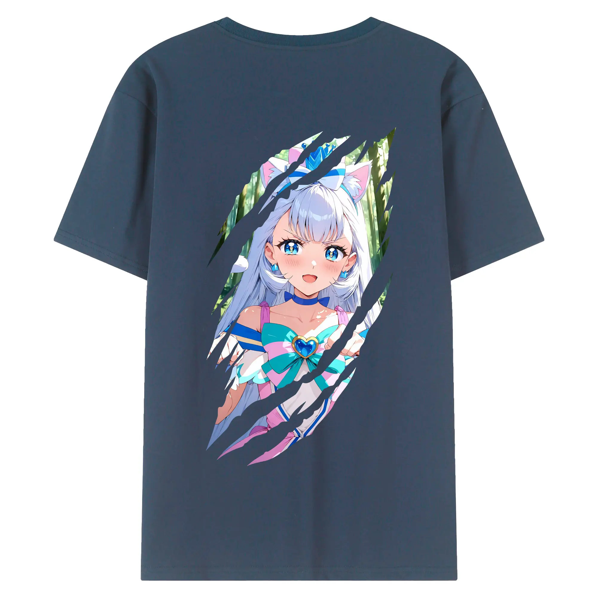 わんだふるぷりきゅあ グッズ 猫屋敷ユキ - 綿100% ヴィンテージ風 半袖Tシャツ ・ 背面プリント ・ 柔らか肌触り ・ 通気性 快適 ・ スポーツ カジュアル 外出用