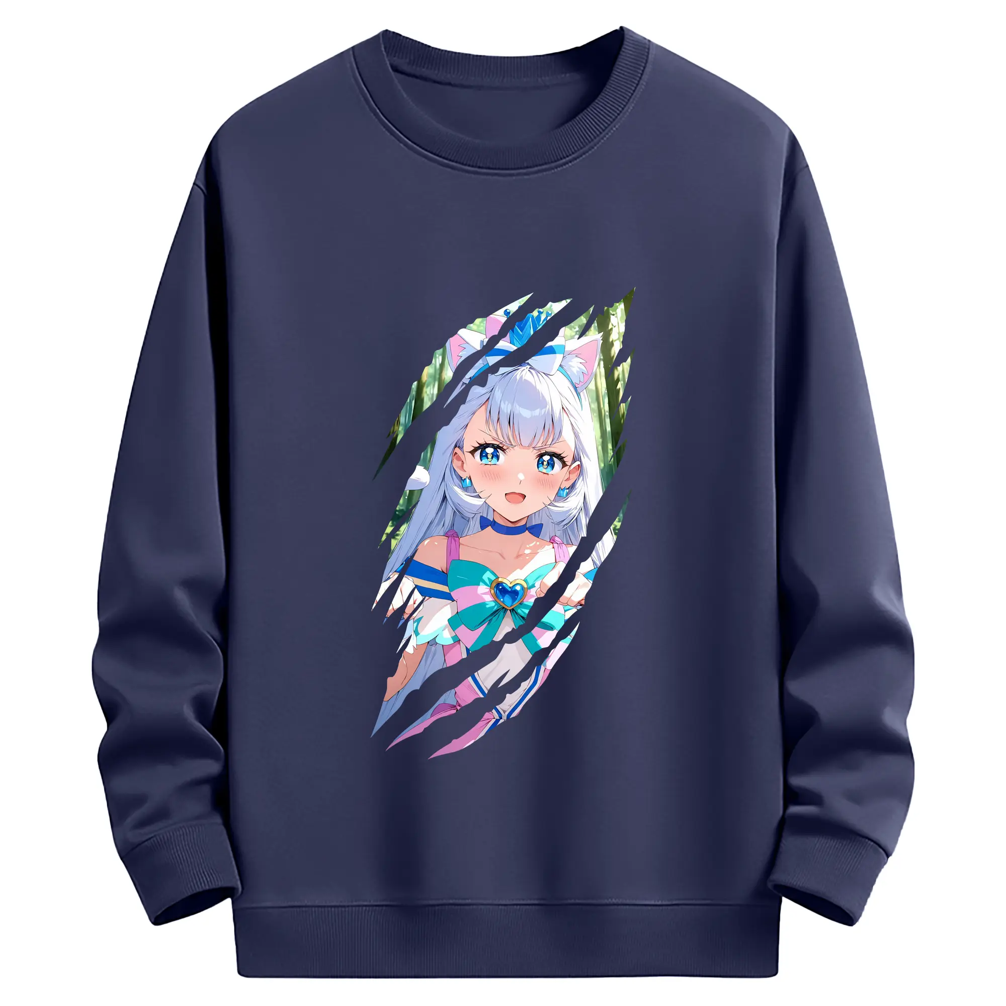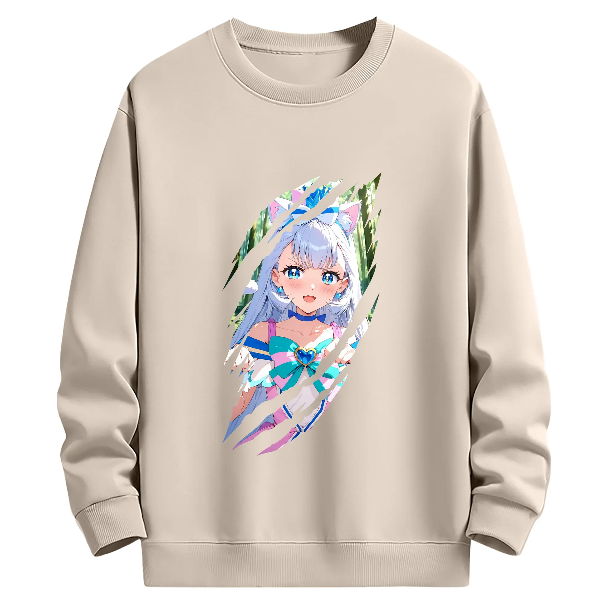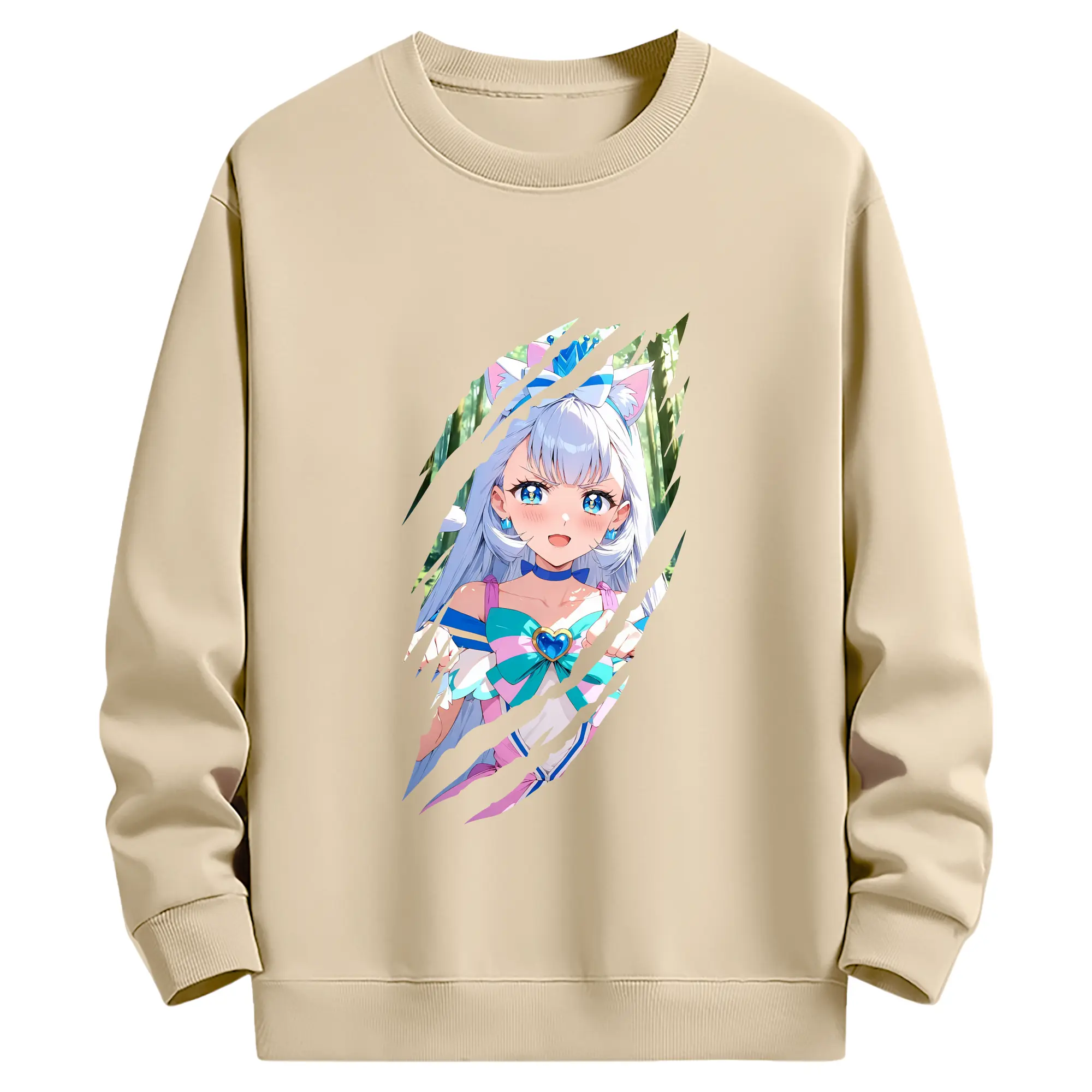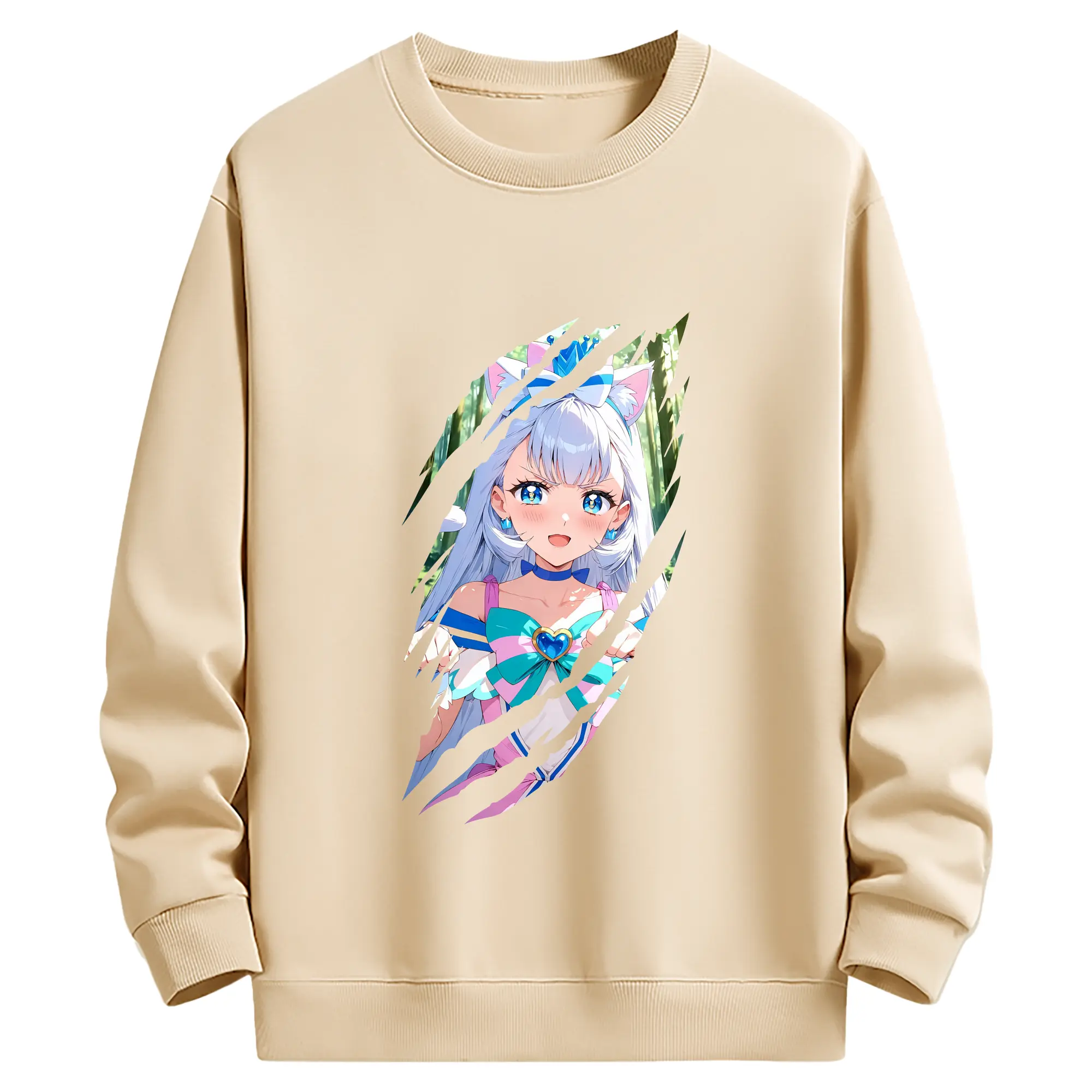 わんだふるぷりきゅあ グッズ 猫屋敷ユキ - 薄手 クルーネック スウェット 裏毛260g · ポリエステル 春秋向け カジュアル 男女兼用 · トレーナー デイリー スポーツ 散歩に最適