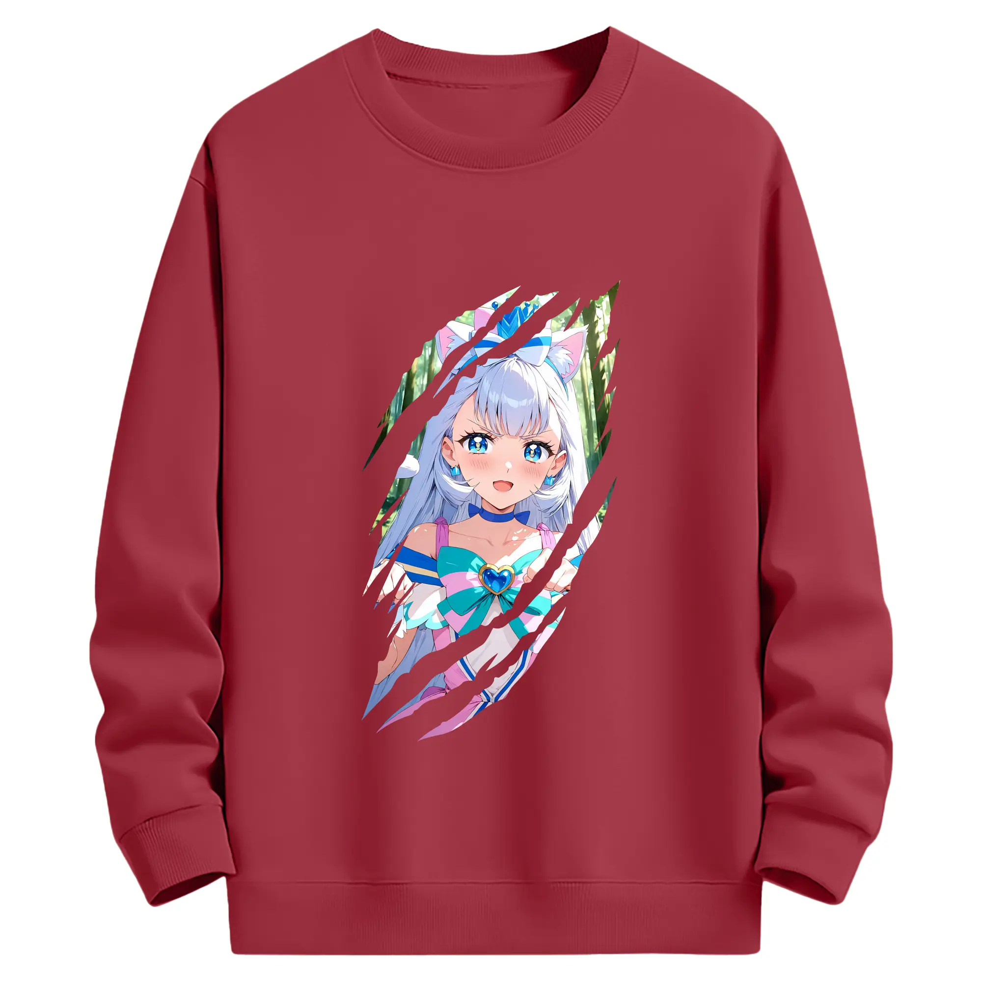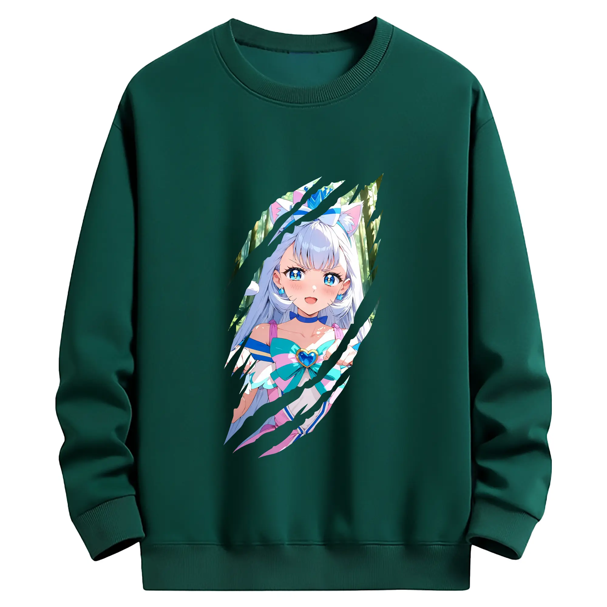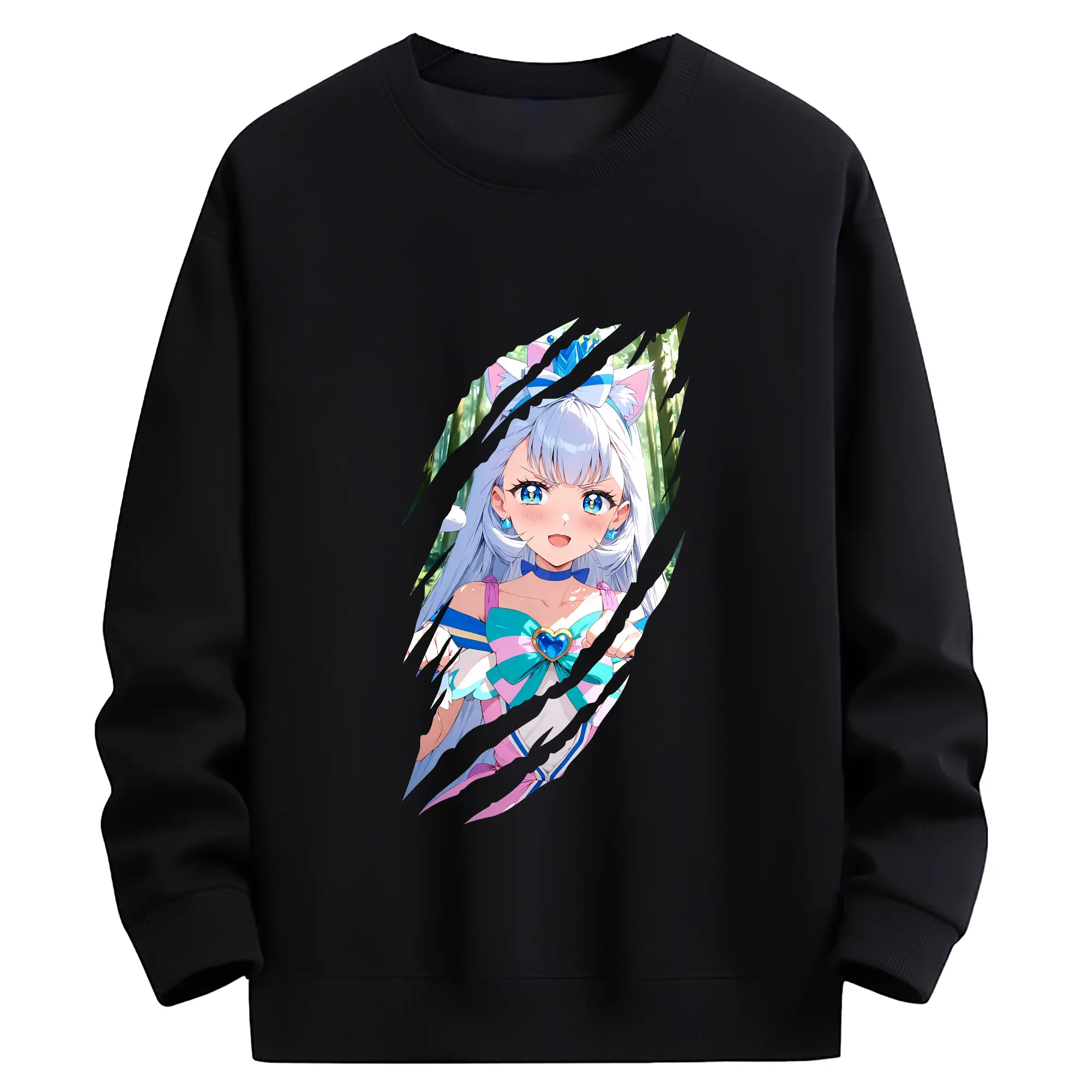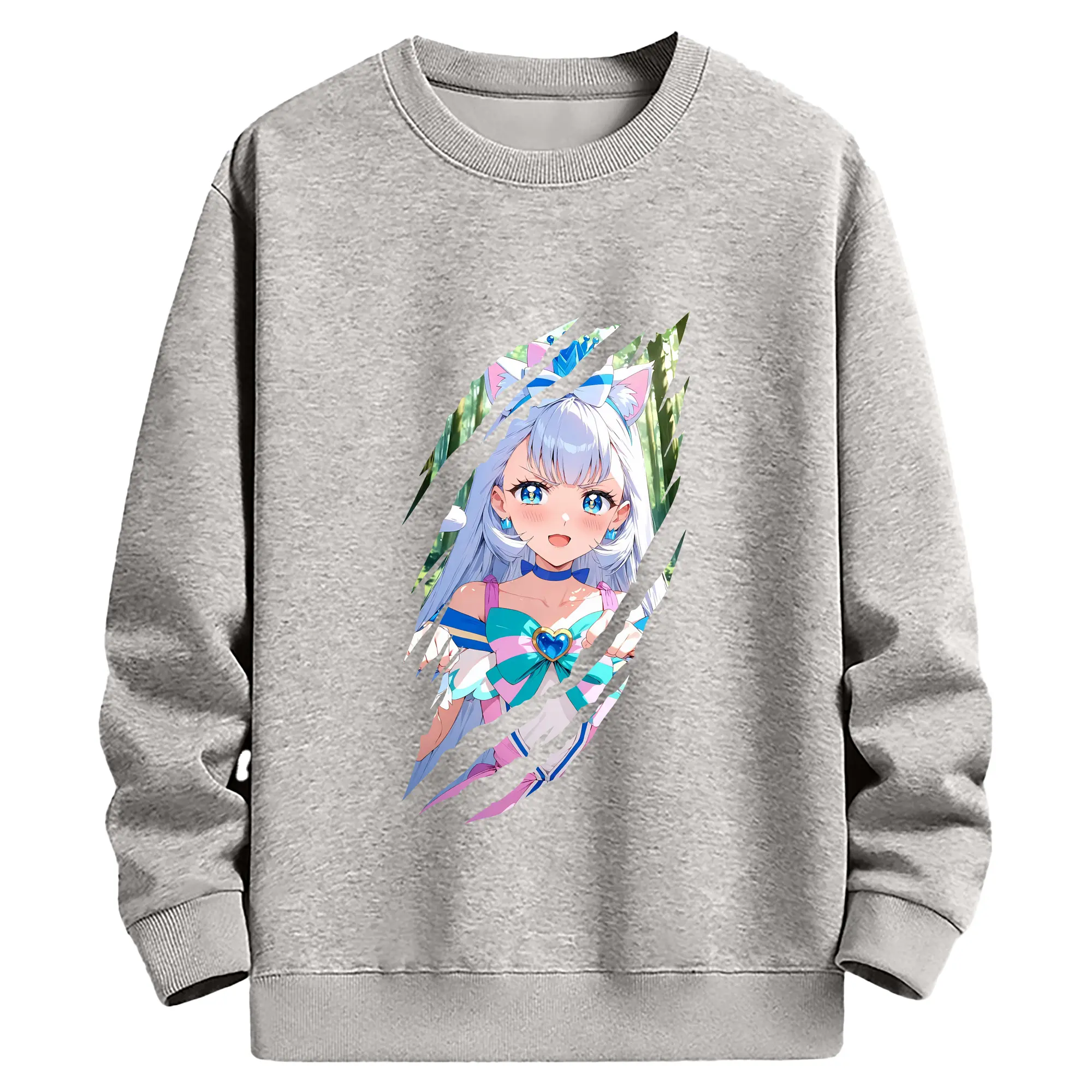 わんだふるぷりきゅあ グッズ 猫屋敷ユキ - 薄手 クルーネック スウェット 裏毛260g · ポリエステル 春秋向け カジュアル 男女兼用 · トレーナー デイリー スポーツ 散歩に最適