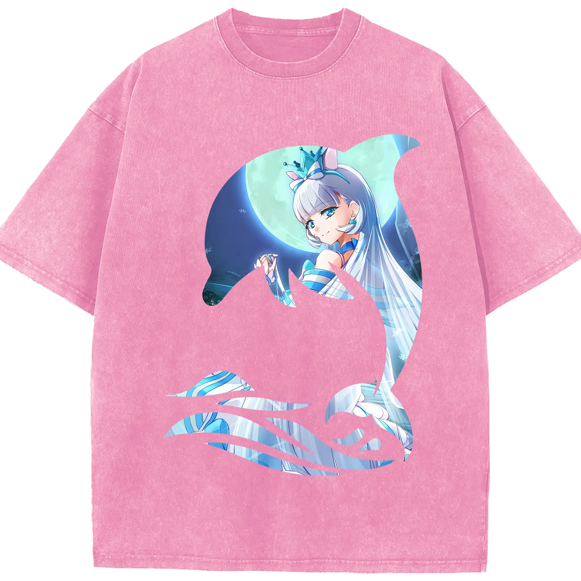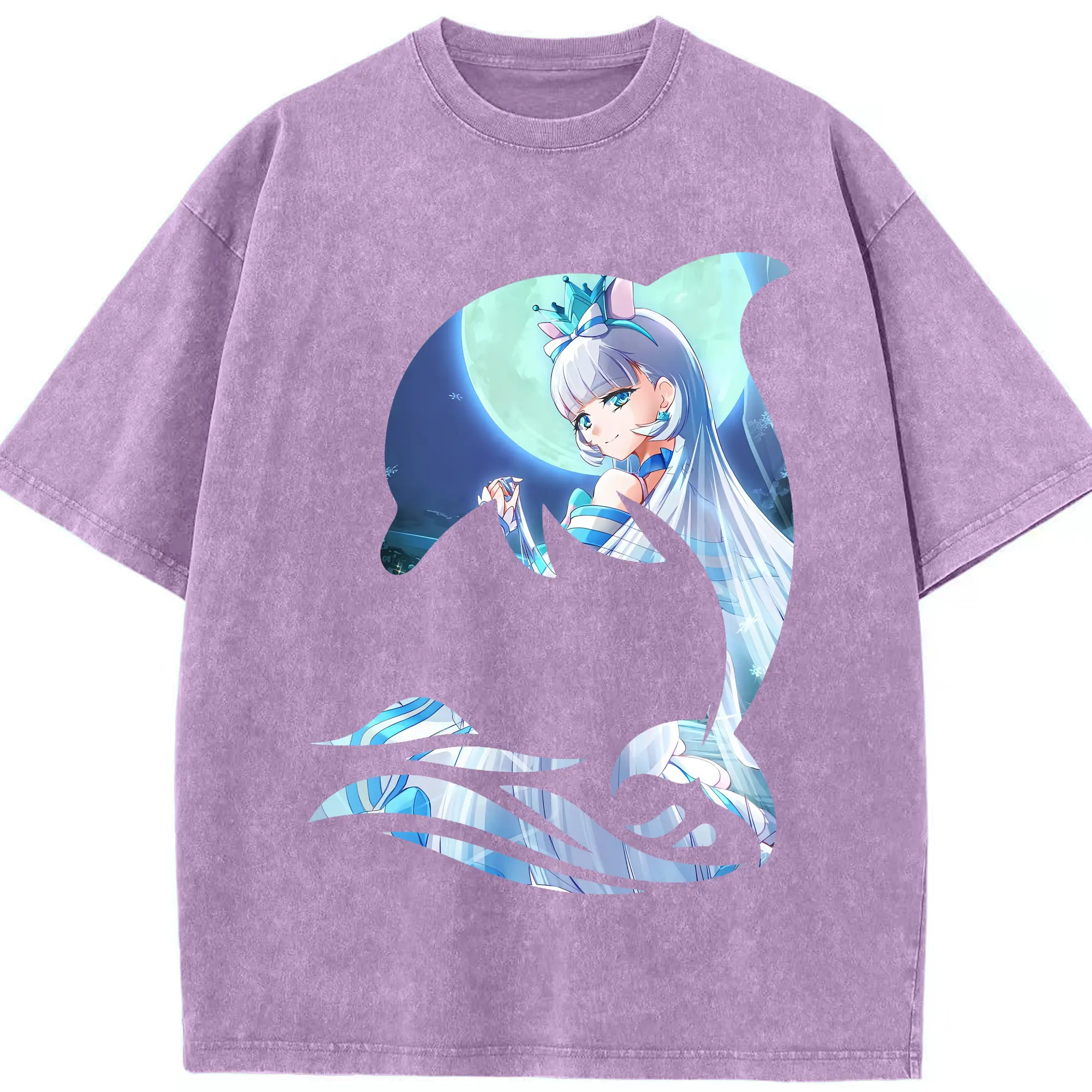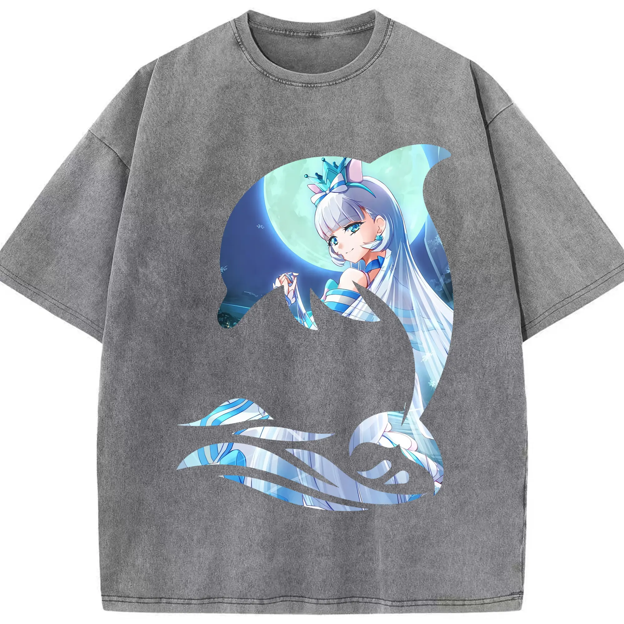わんだふるぷりきゅあ グッズ 猫屋敷ユキ - 綿100% ヴィンテージ風 半袖Tシャツ ・ 背面プリント ・ 柔らか肌触り ・ 通気性 快適 ・ スポーツ カジュアル 外出用